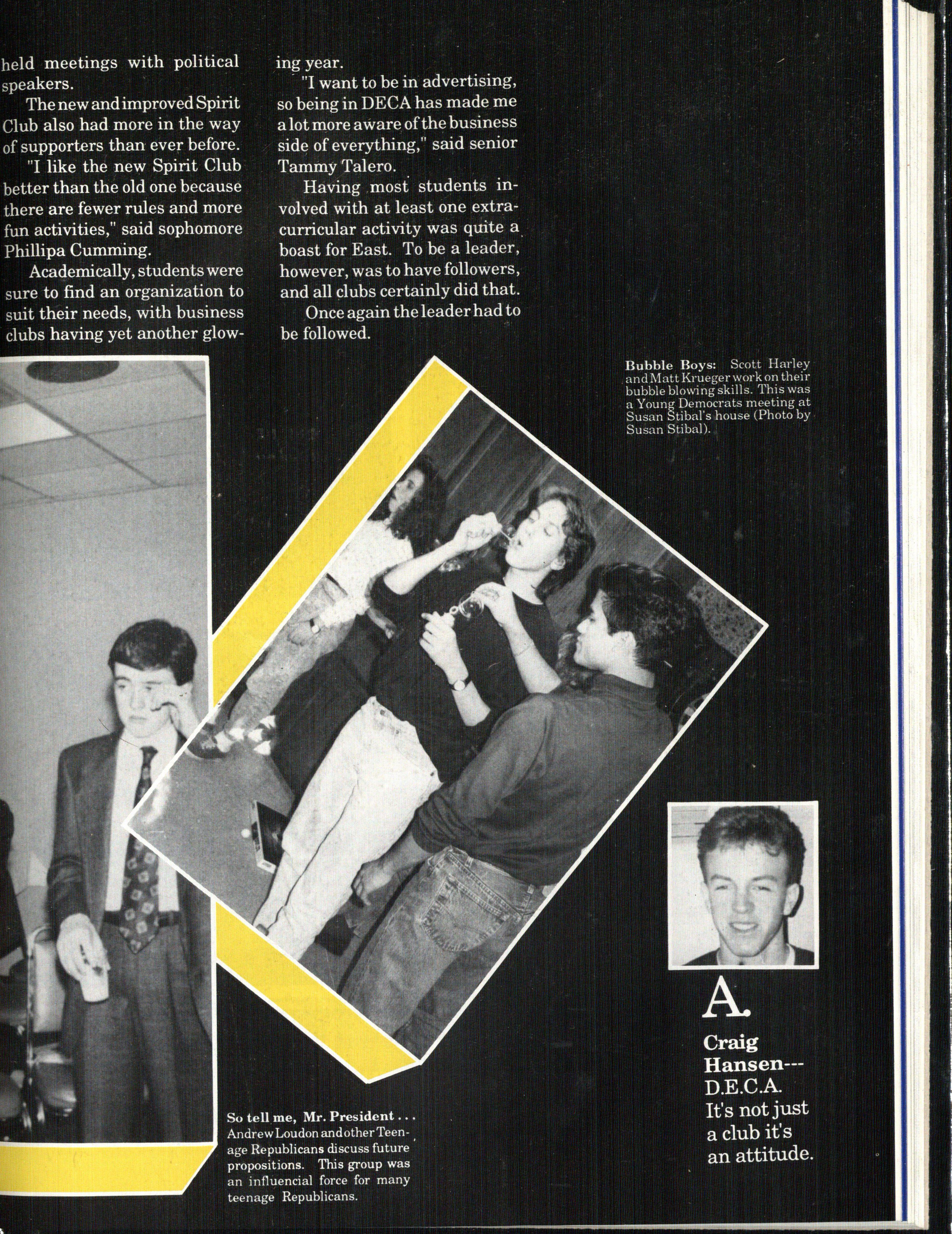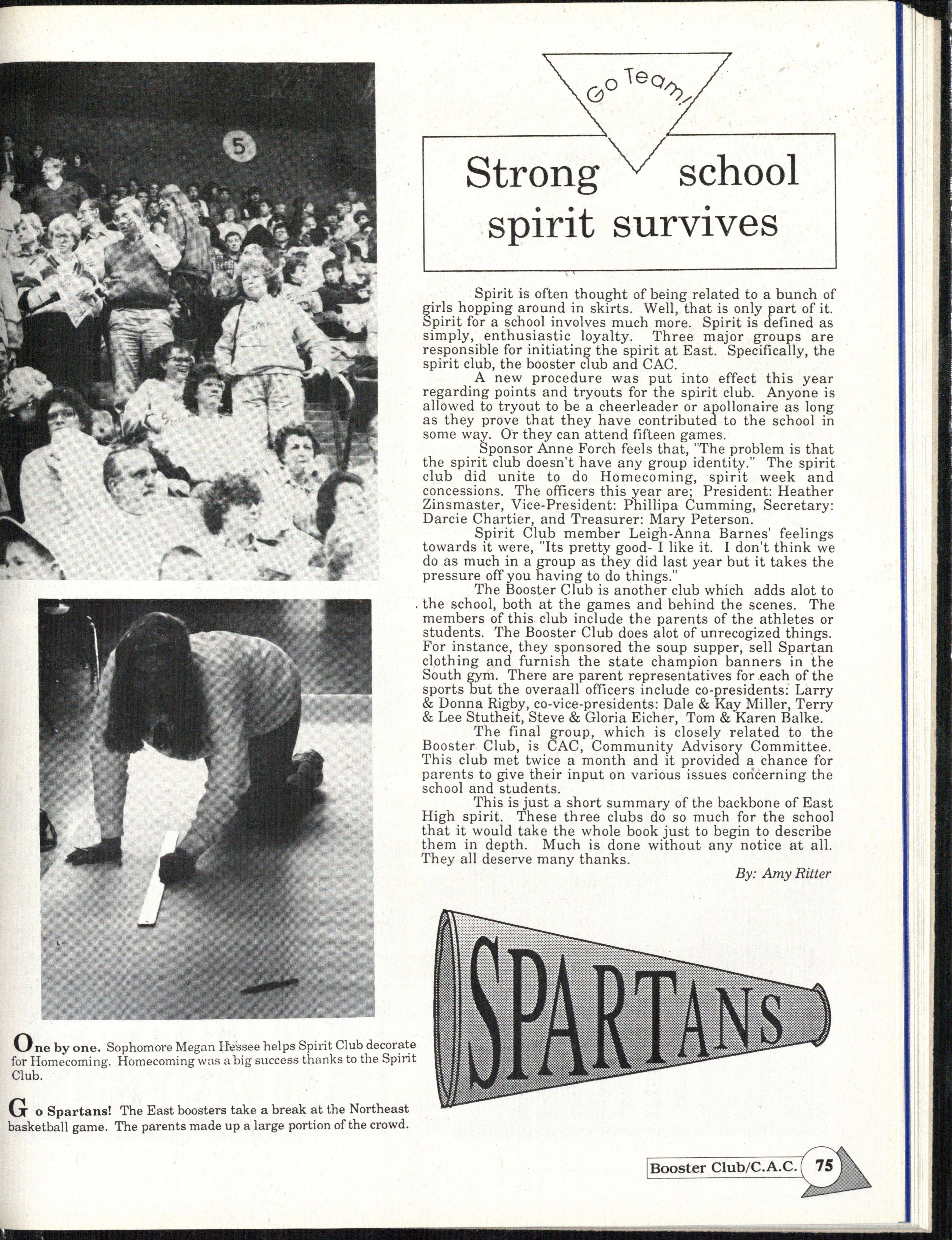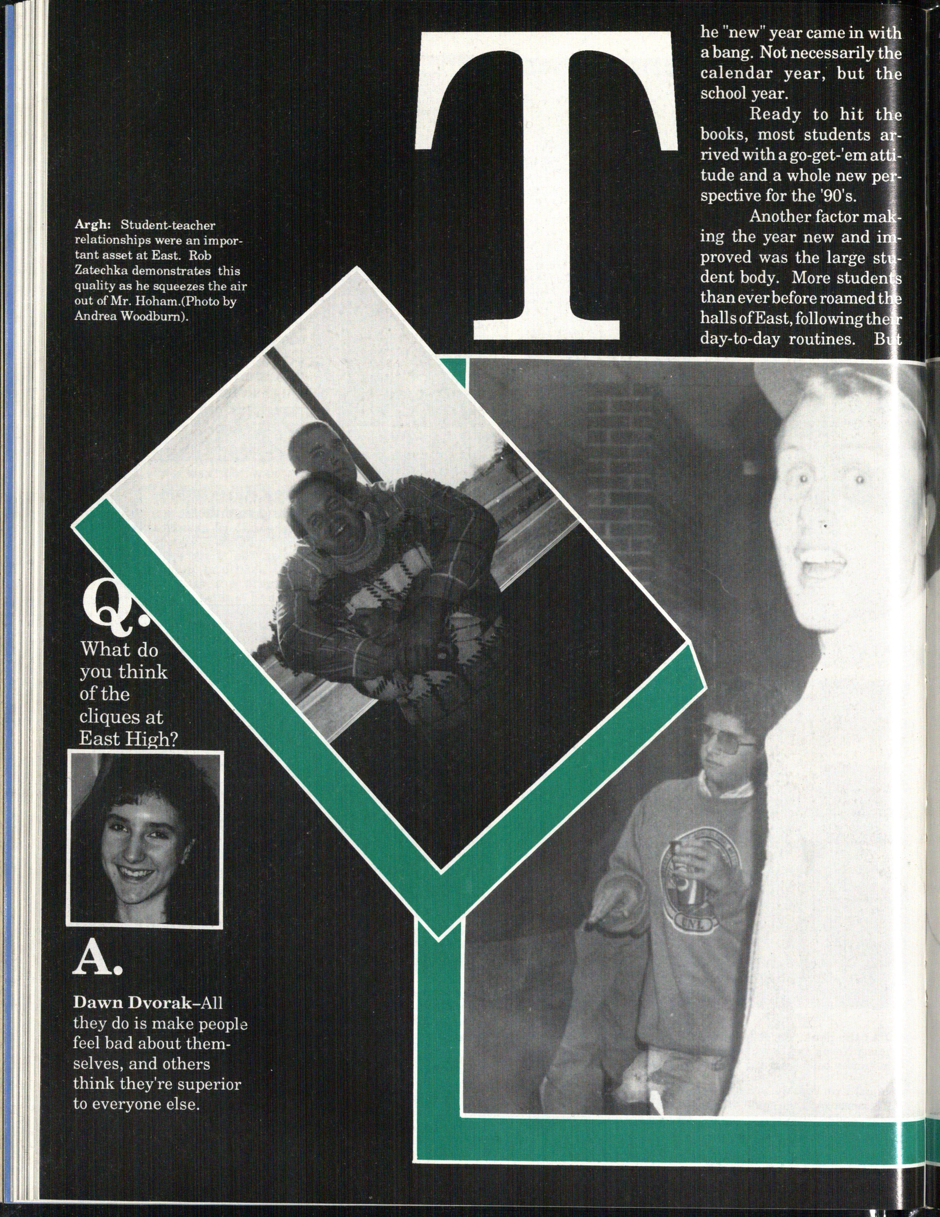 At times, following a few unhappy incidents during the year, it seemed easy to just throw in the towel, to follow a gut feeling of defeat. Thanks to East's strong-willed student body and caring faculty, this attitude was cured by a lot of support and TLC. Said Senior Dan Hale, "I think people dealt with their problems pretty well. Of course, everything takes time "