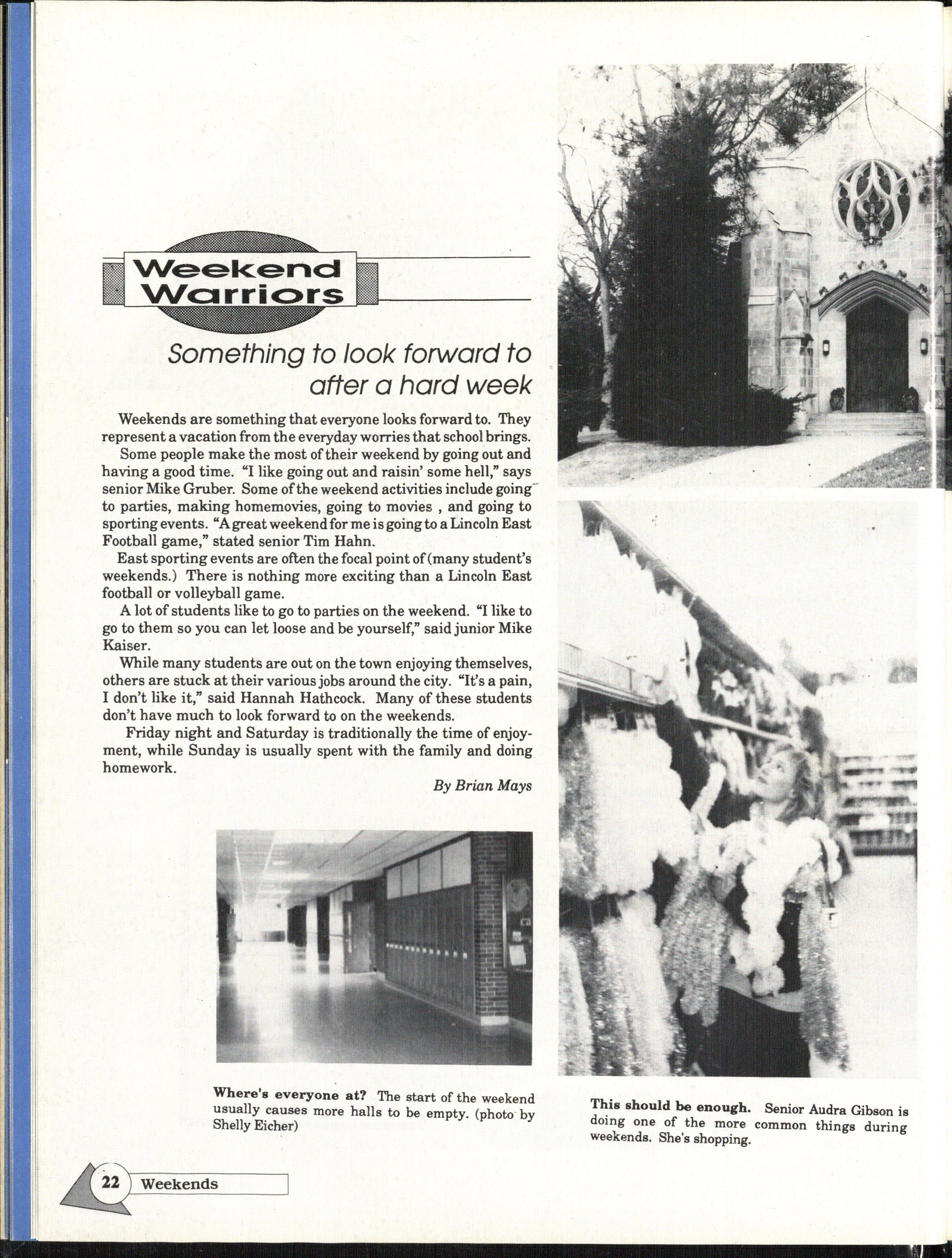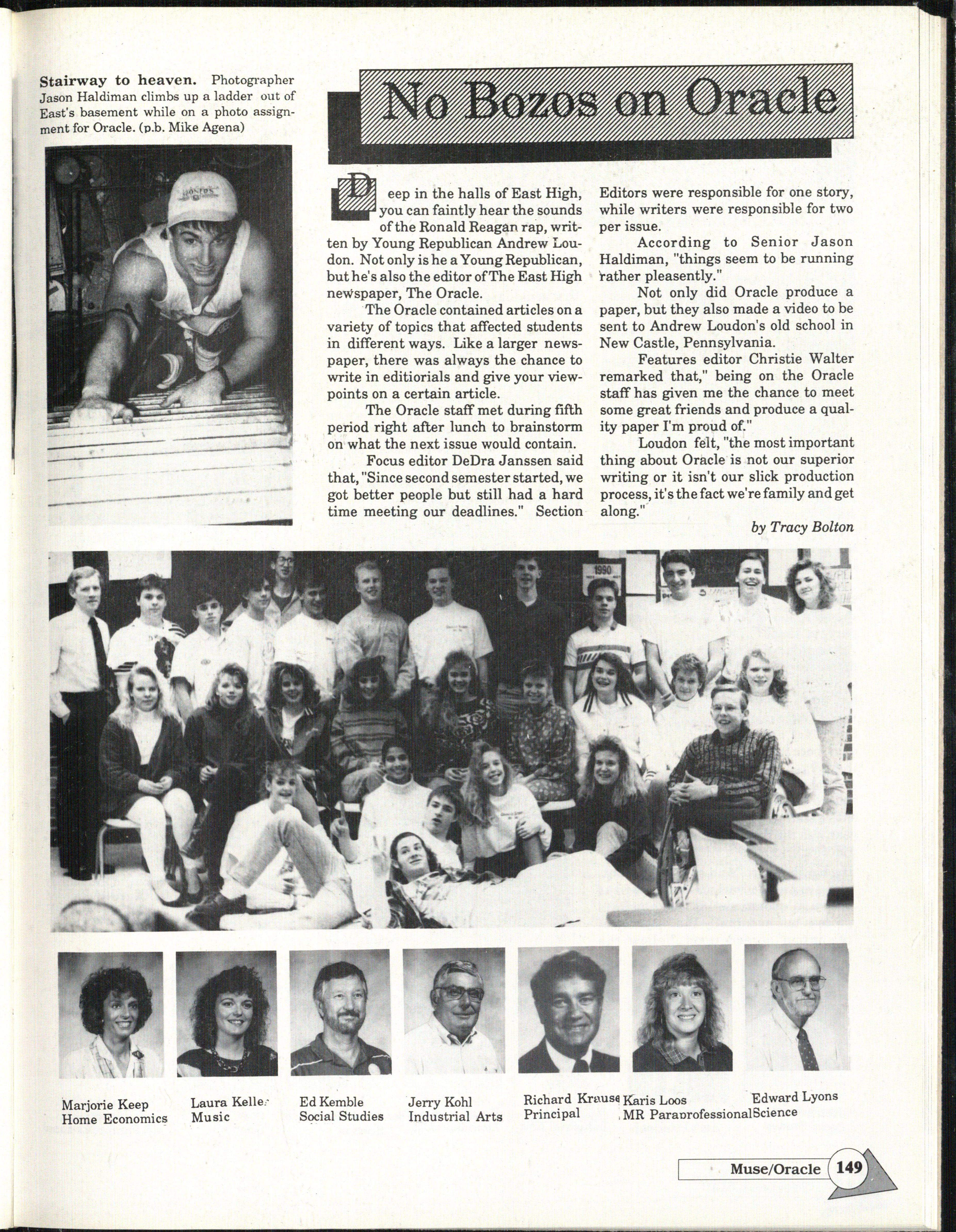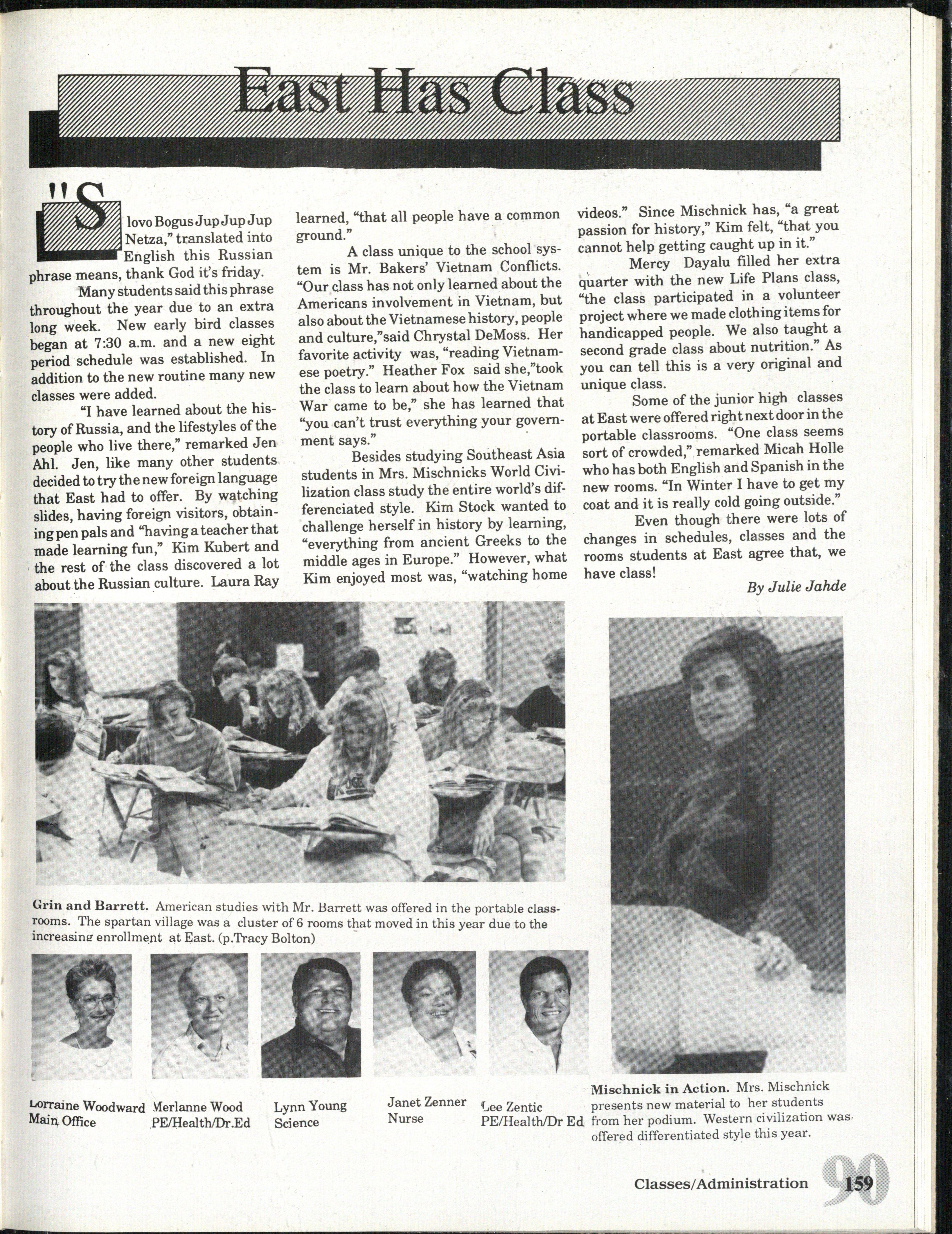 At times, following a few unhappy incidents during the year, it seemed easy to just throw in the towel, to follow a gut feeling of defeat. Thanks to East's strong-willed student body and caring faculty, this attitude was cured by a lot of support and TLC. Said Senior Dan Hale, "I think people dealt with their problems pretty well. Of course, everything takes time "
