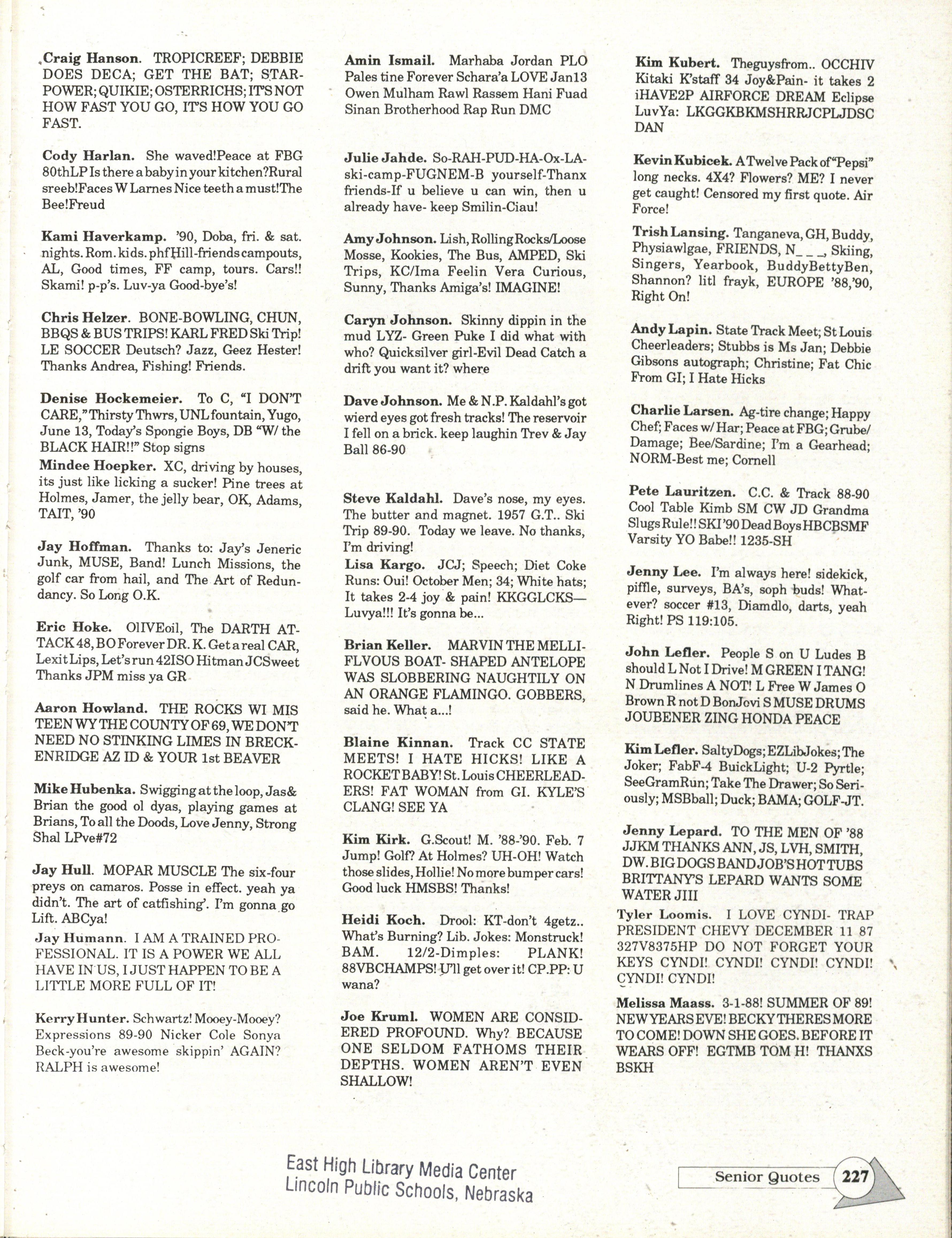 Stephanie Steir. NICE HAIRCUT APPLE JUICE LARRY 11-11-89 GARFIELDA; FMICKEY PARTIES IN CARS ICE FIGHTS STALLED BUG/NO GAS 1-800-3434 BYE 1 RUDY! Senior Quotes