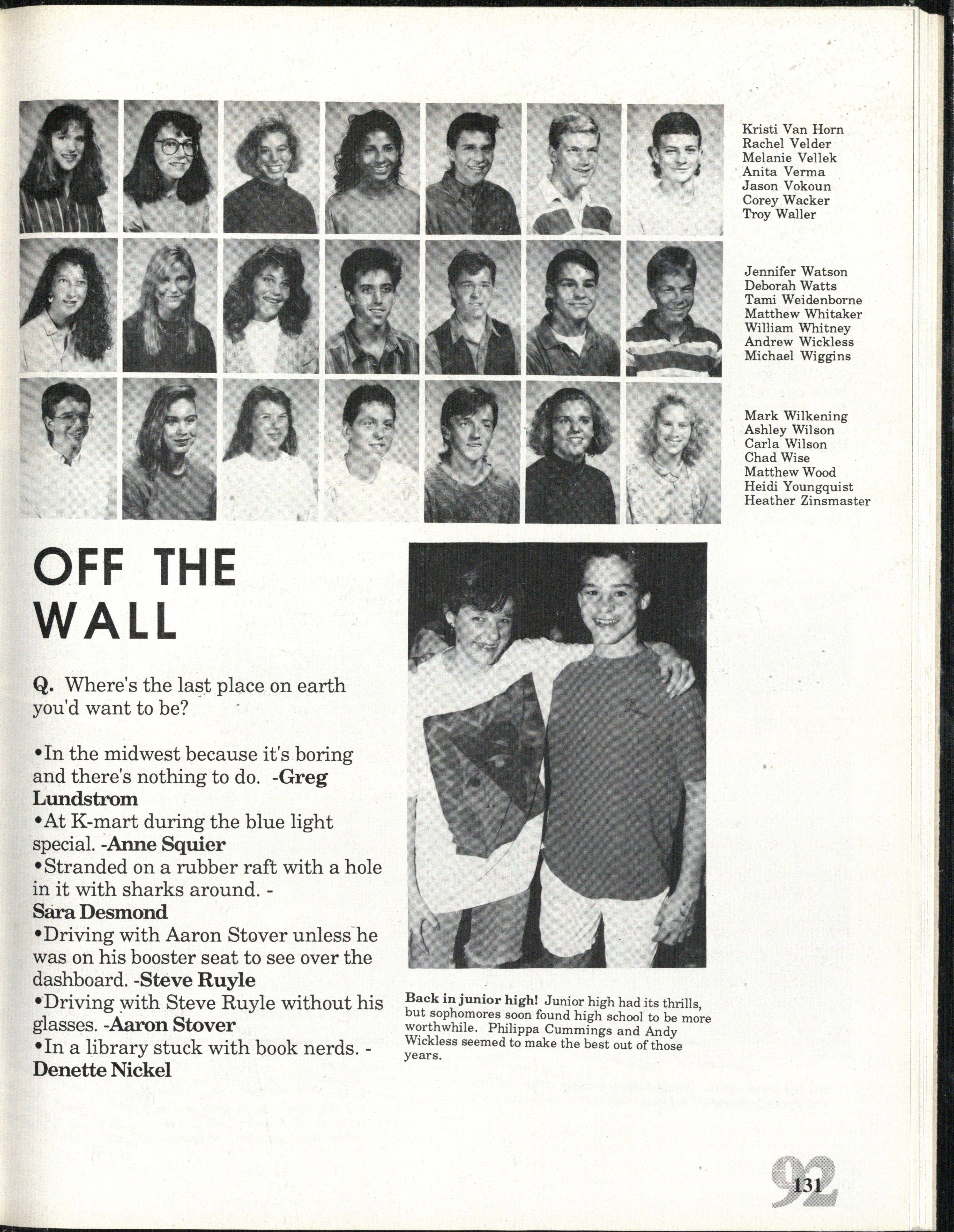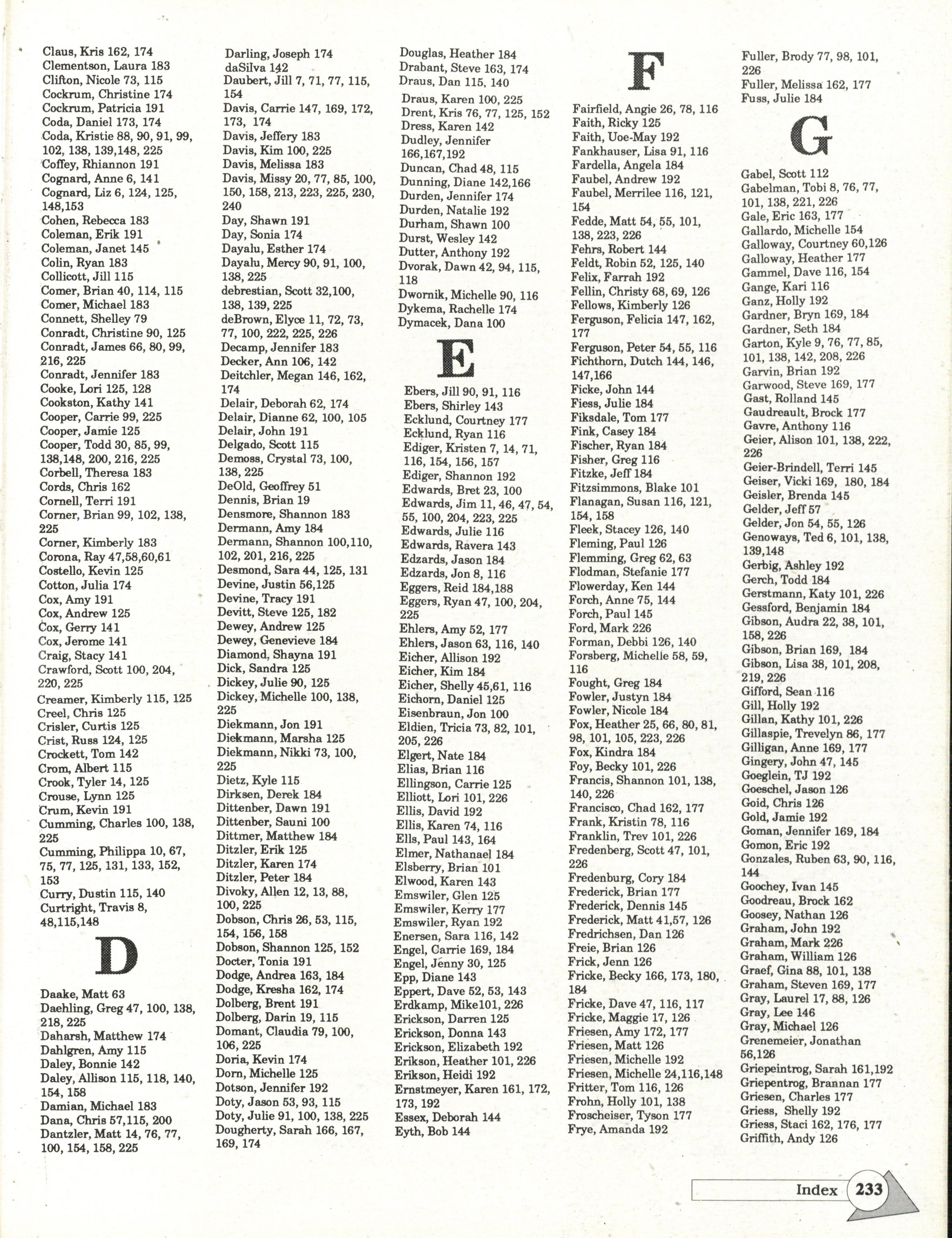 Ads Editor: Missy Davis. Assistants: Kara-Jean Scott and Tammy Talero. Junior High Editor: Amy Miller. . Photographers: Jennifer Brechbill, Scott Steinke and Tammy Talero. Advisor: Jim Schaffer.
