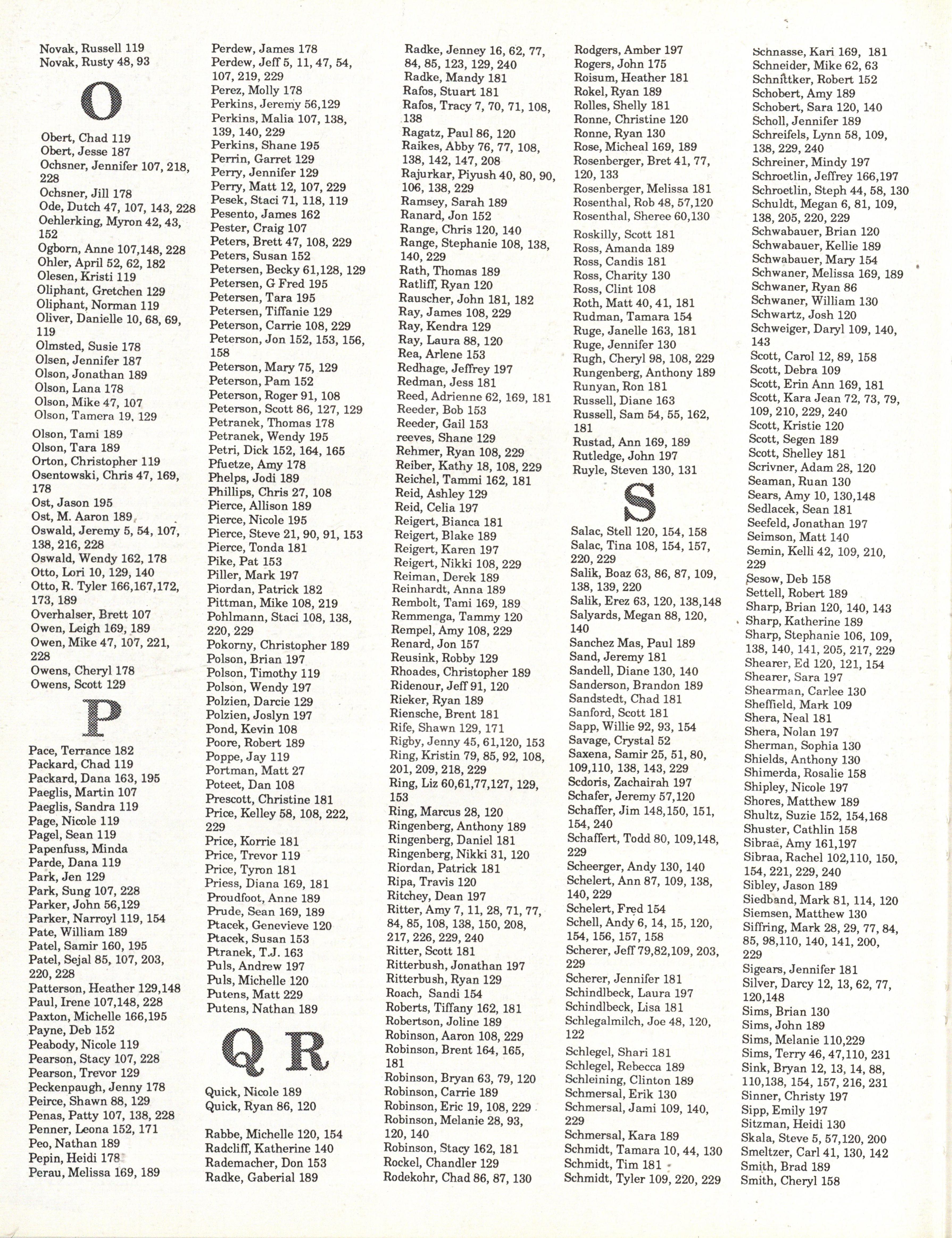 Sand, Jeremy 181 Shearer , E d 120, 121, 154 Owens, Cheryl 178 Polson, Timothy 119 Rhoades, Christopher 189 Sandell, Diane 130, 140 Shearer , S ara 197 Owens, Scott 129 Polson, Wendy 197 Ridenour, Jeff 91, 120