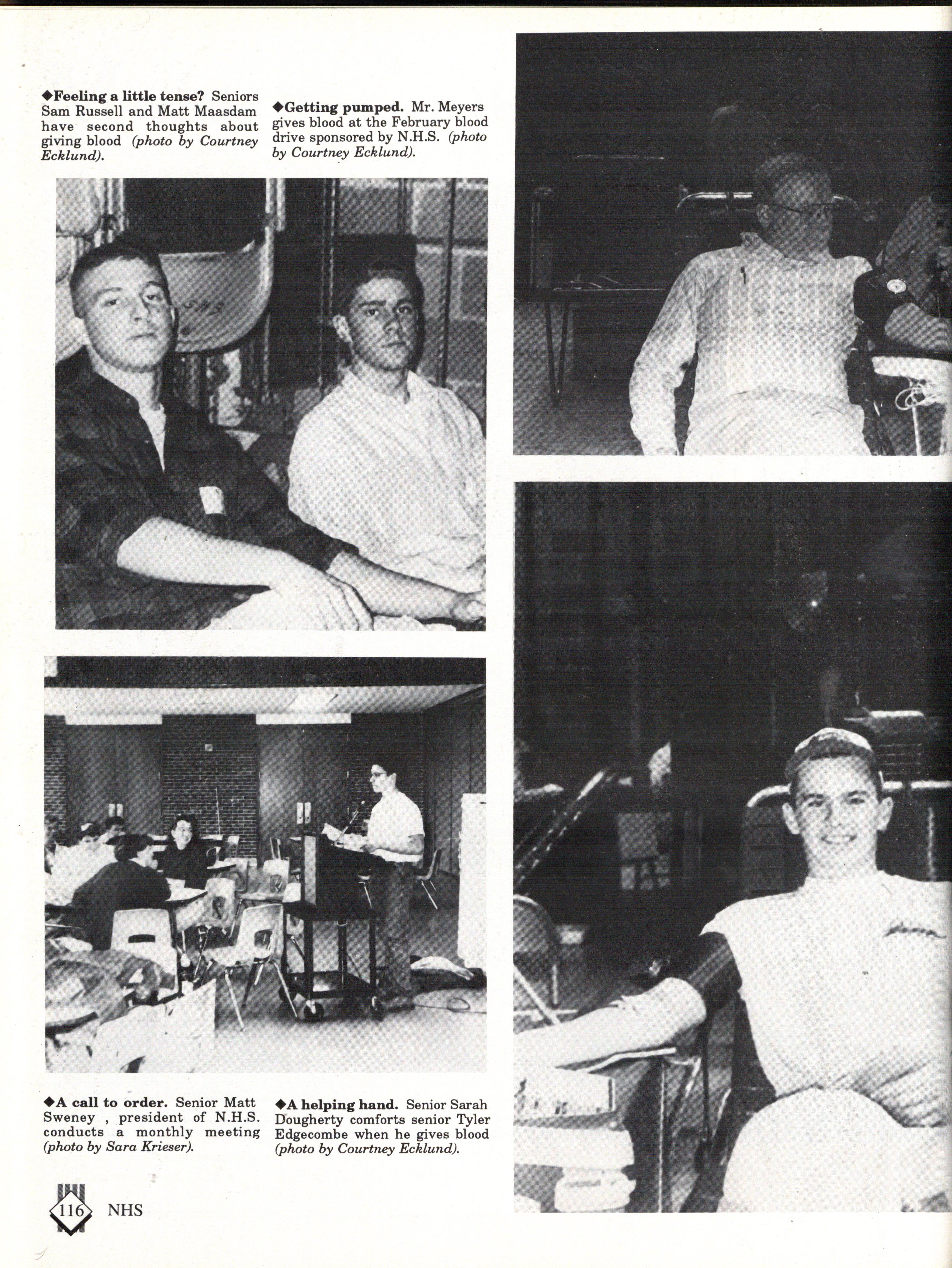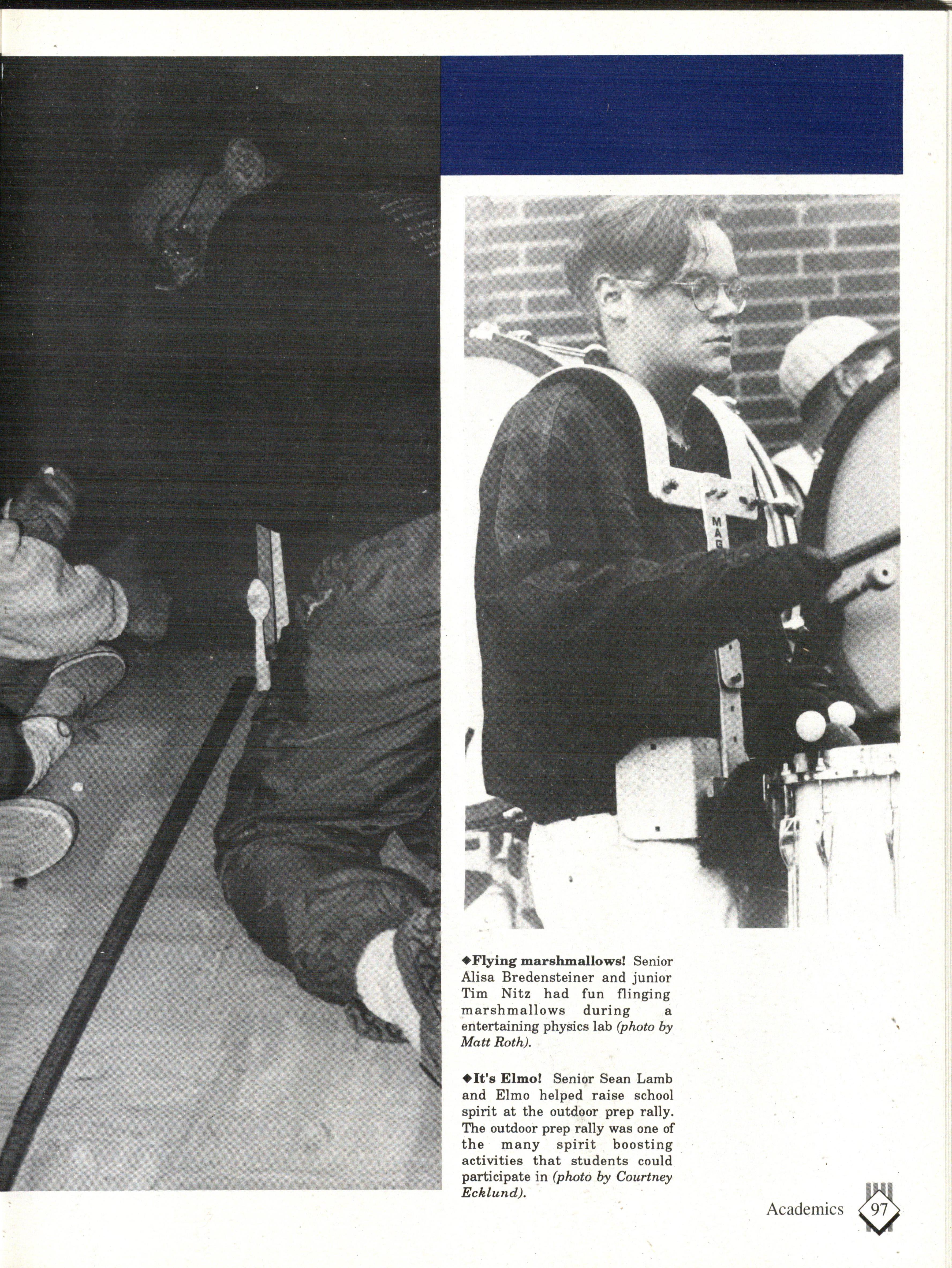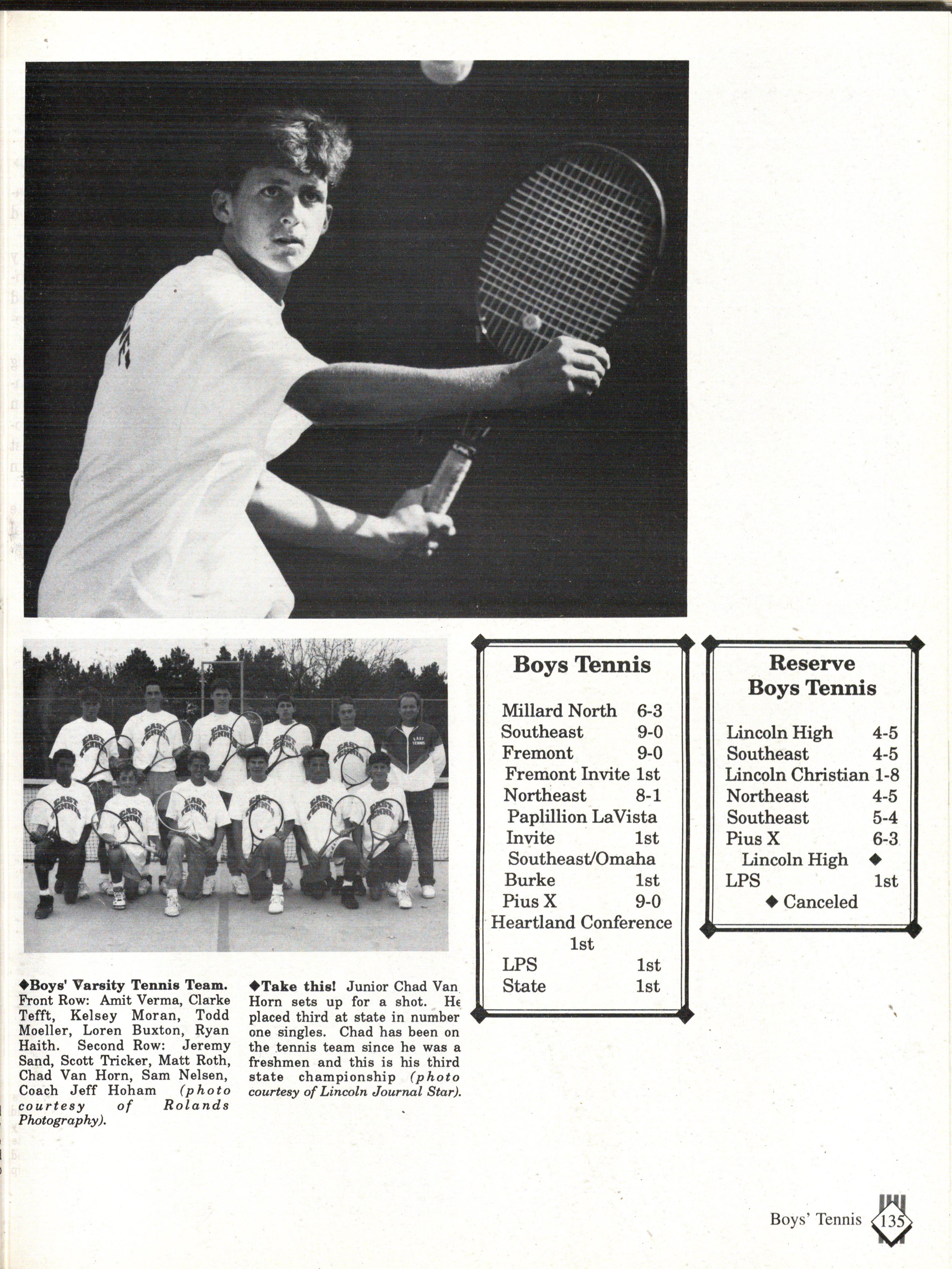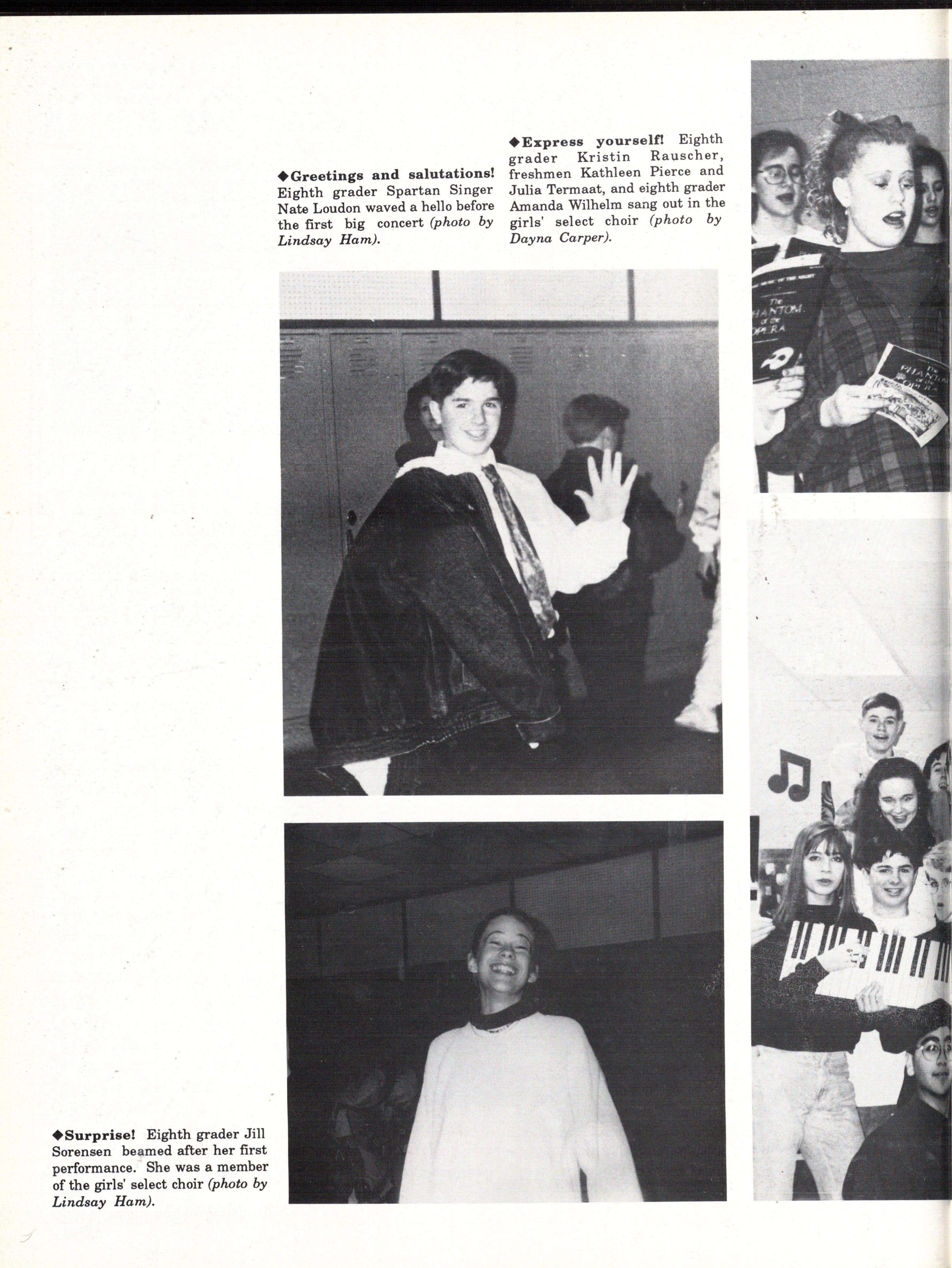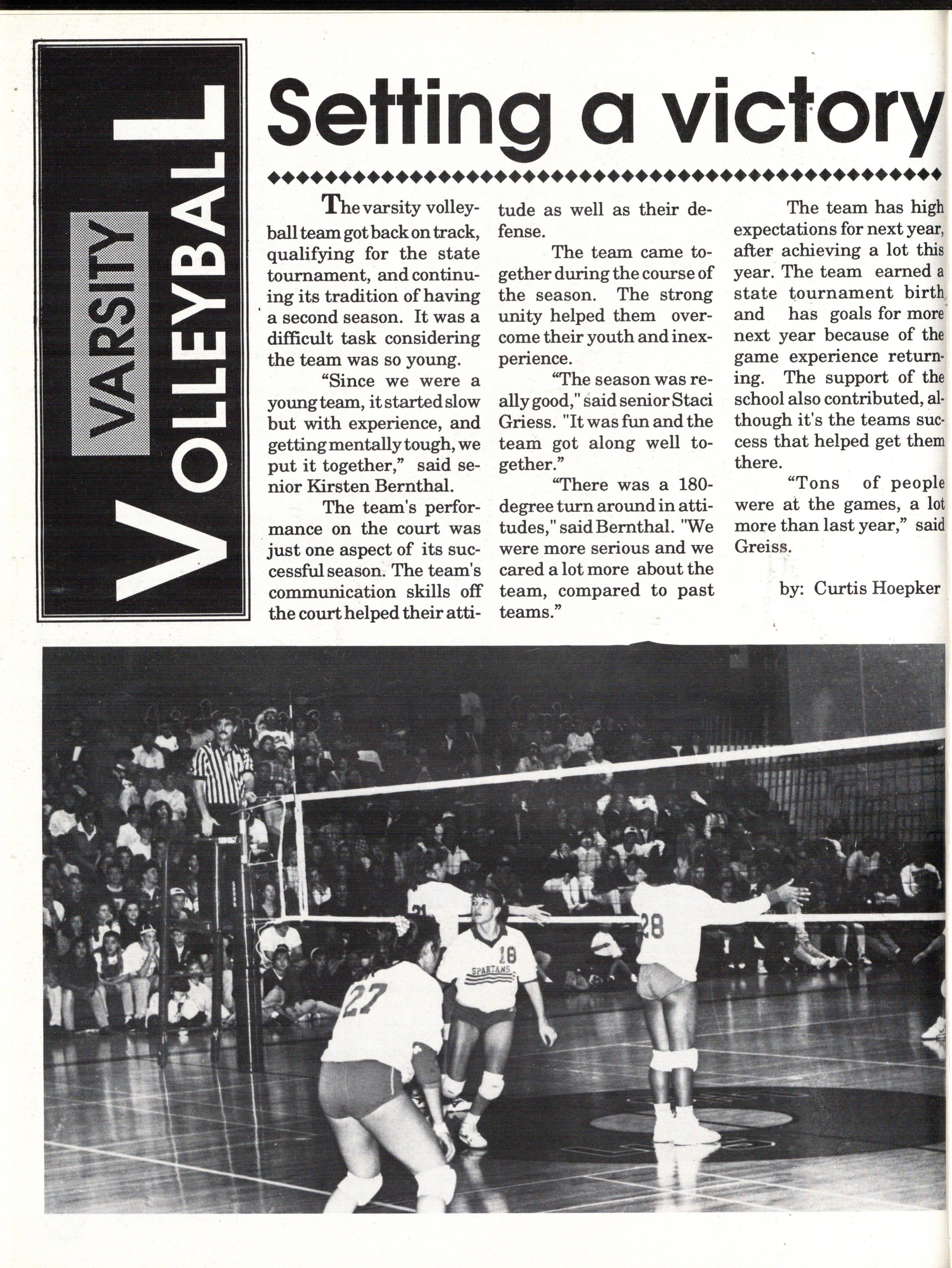 The students were very involved. Many play sports an:d are involved in clubs. Their spirit and dedication were matched bynoone. Thetennisteam won their fifth state tennis title while the varsity volleyball team won the silver pool in a national tournament. SeniorsNateBieck, Addie Reed, Mike Robb, Erin Ann Scott; juniors Jill Loweery, Vicki Geiser, Matt Krohn and Megan Zeece made NMEA AllState Chorus.