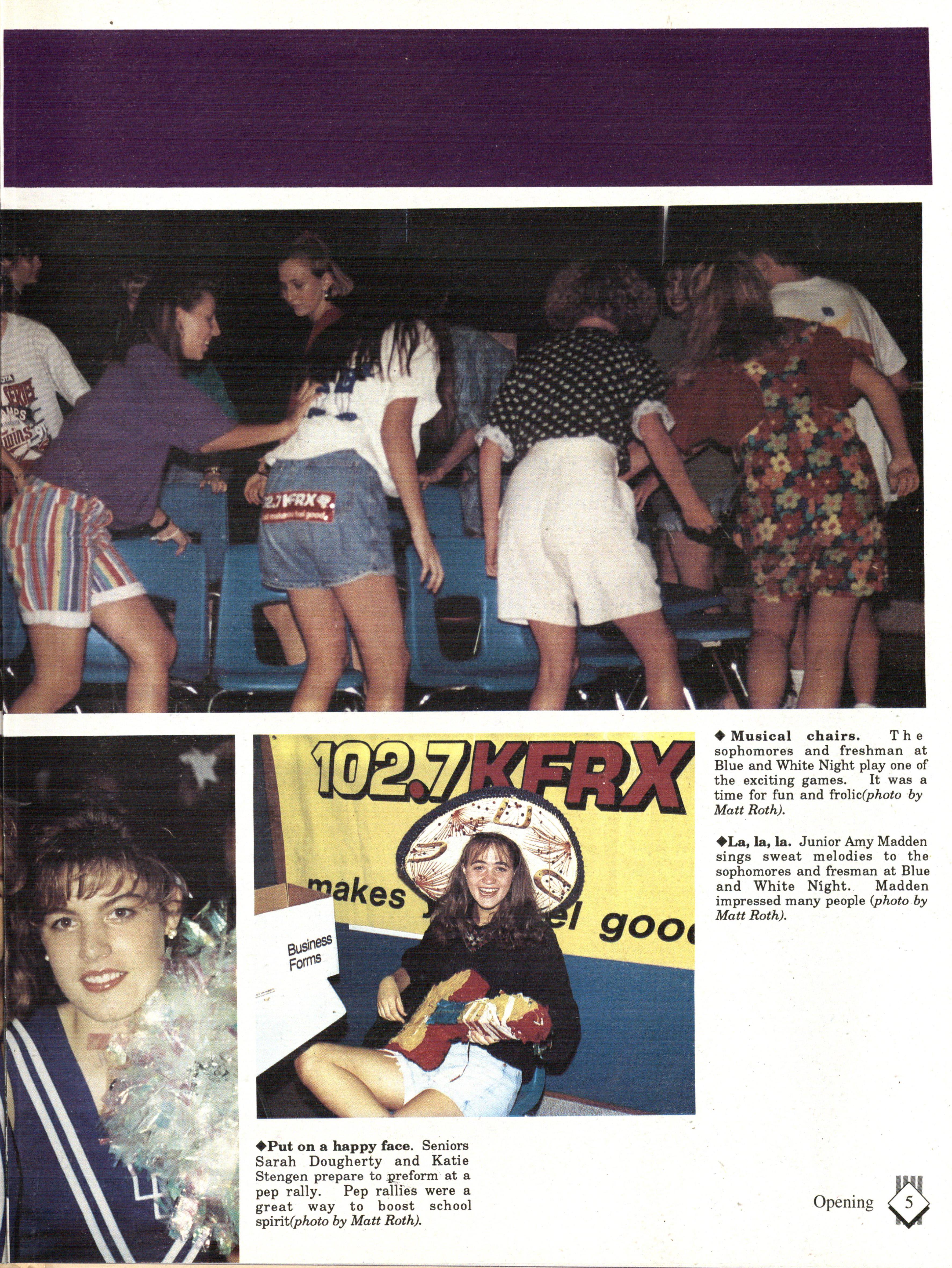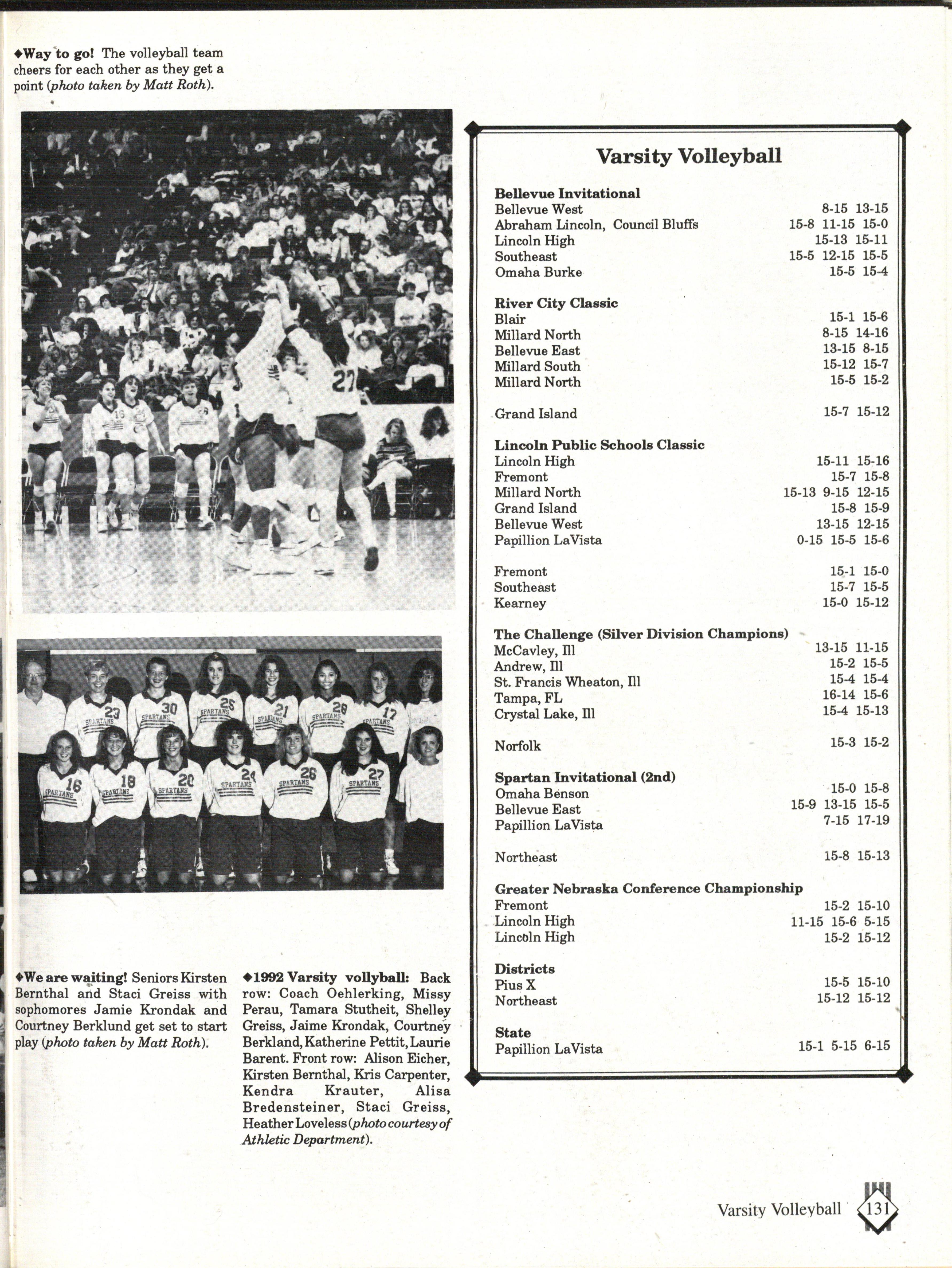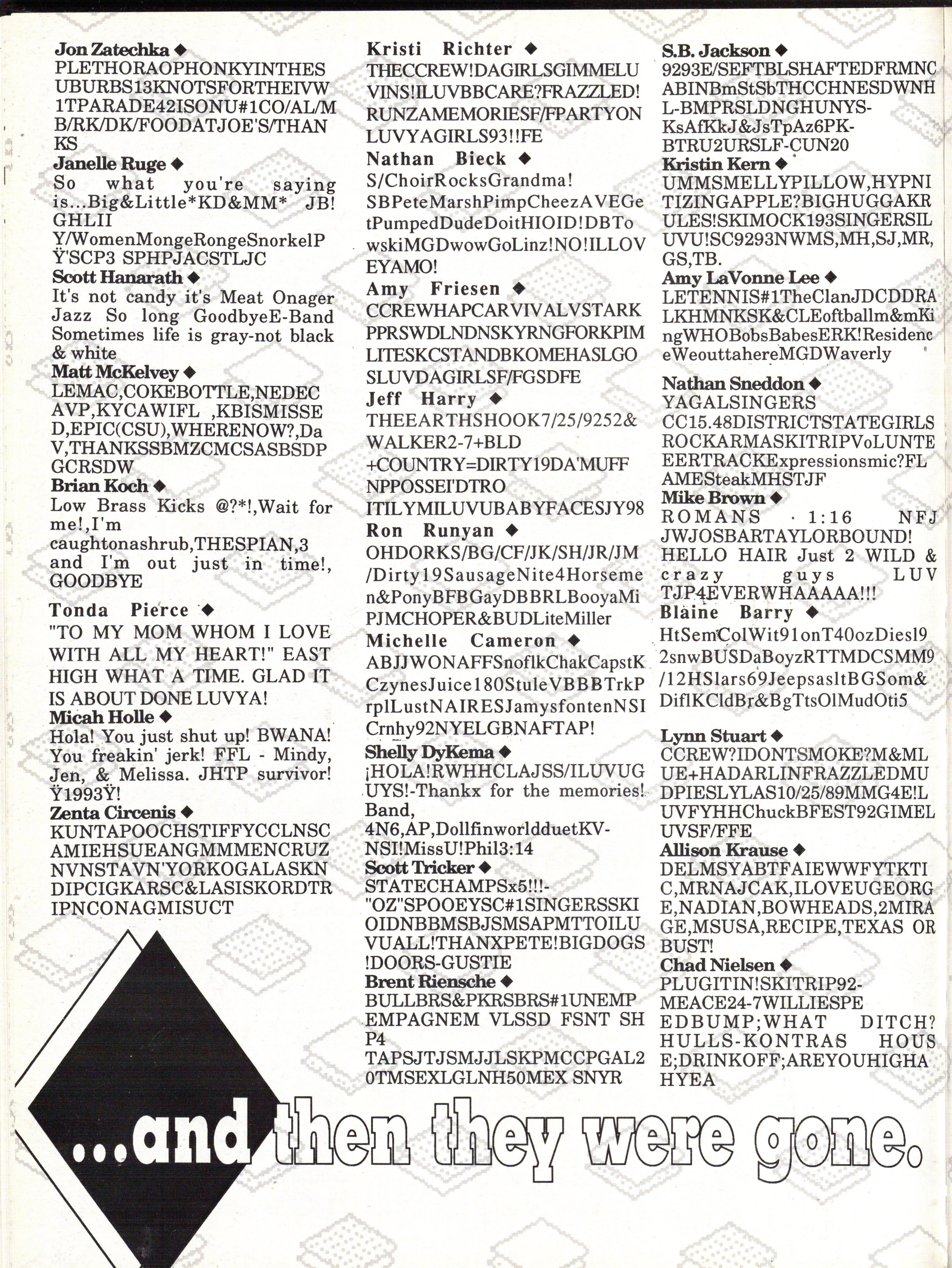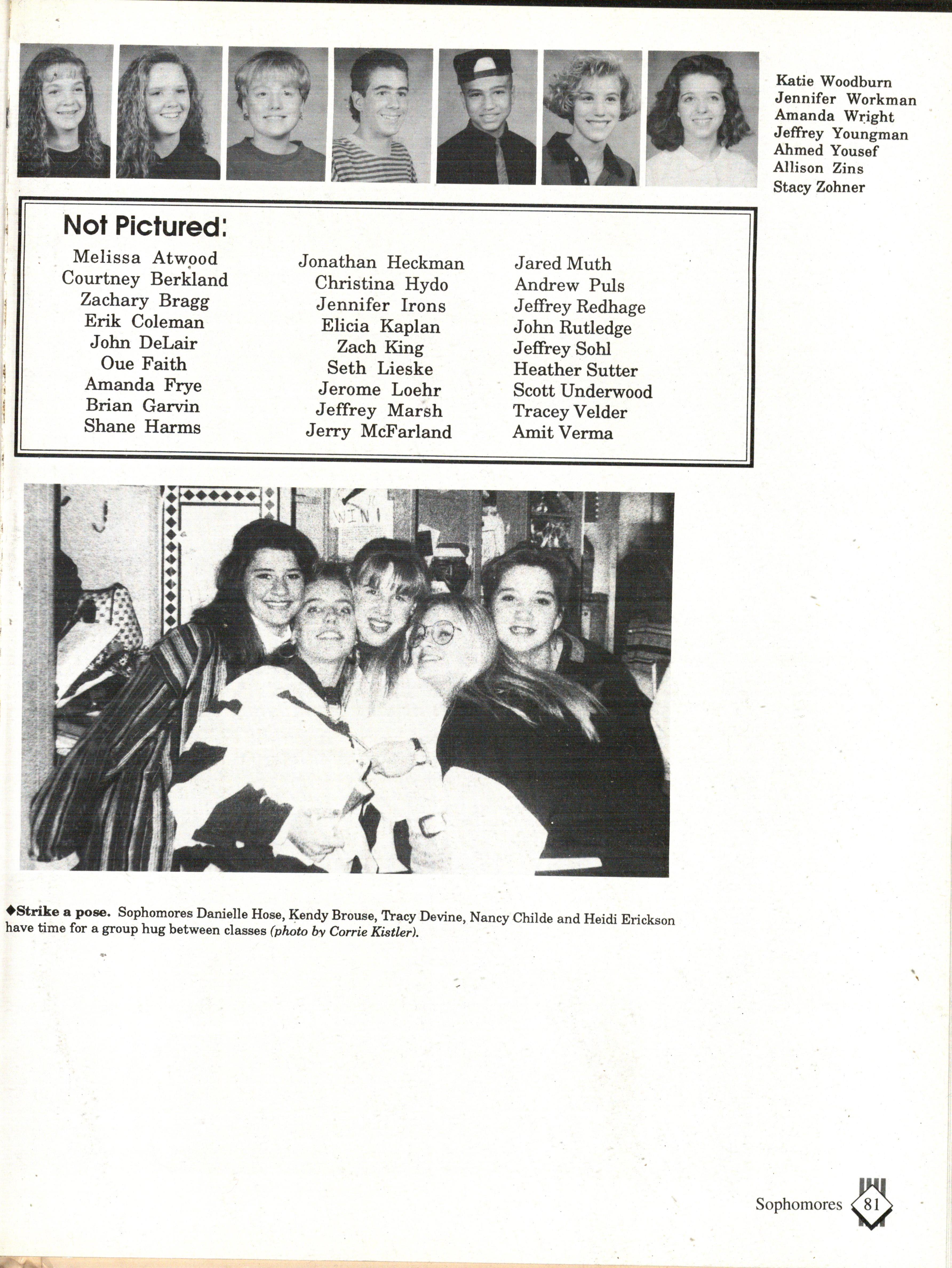 The students were very involved. Many play sports an:d are involved in clubs. Their spirit and dedication were matched bynoone. Thetennisteam won their fifth state tennis title while the varsity volleyball team won the silver pool in a national tournament. SeniorsNateBieck, Addie Reed, Mike Robb, Erin Ann Scott; juniors Jill Loweery, Vicki Geiser, Matt Krohn and Megan Zeece made NMEA AllState Chorus.