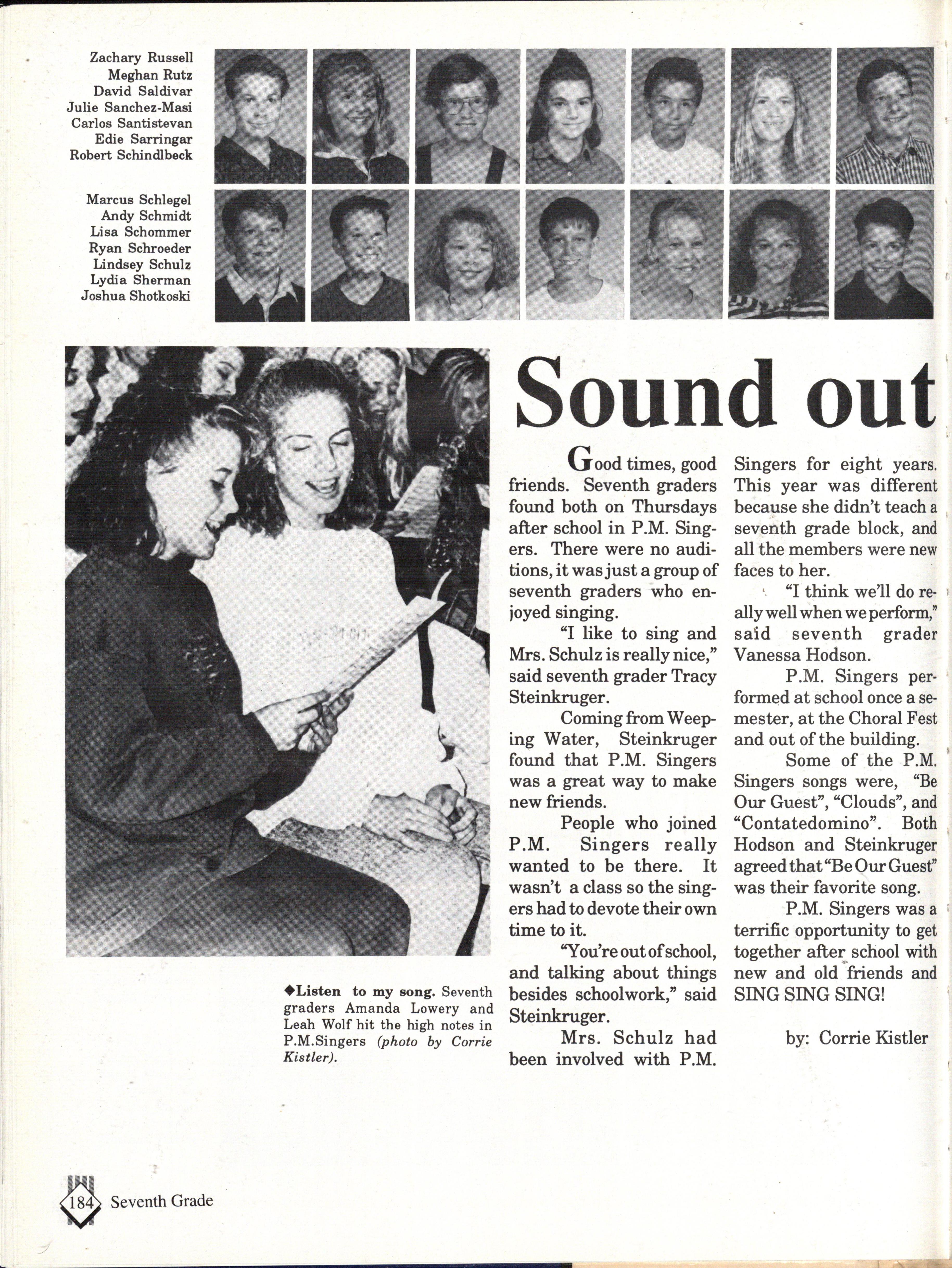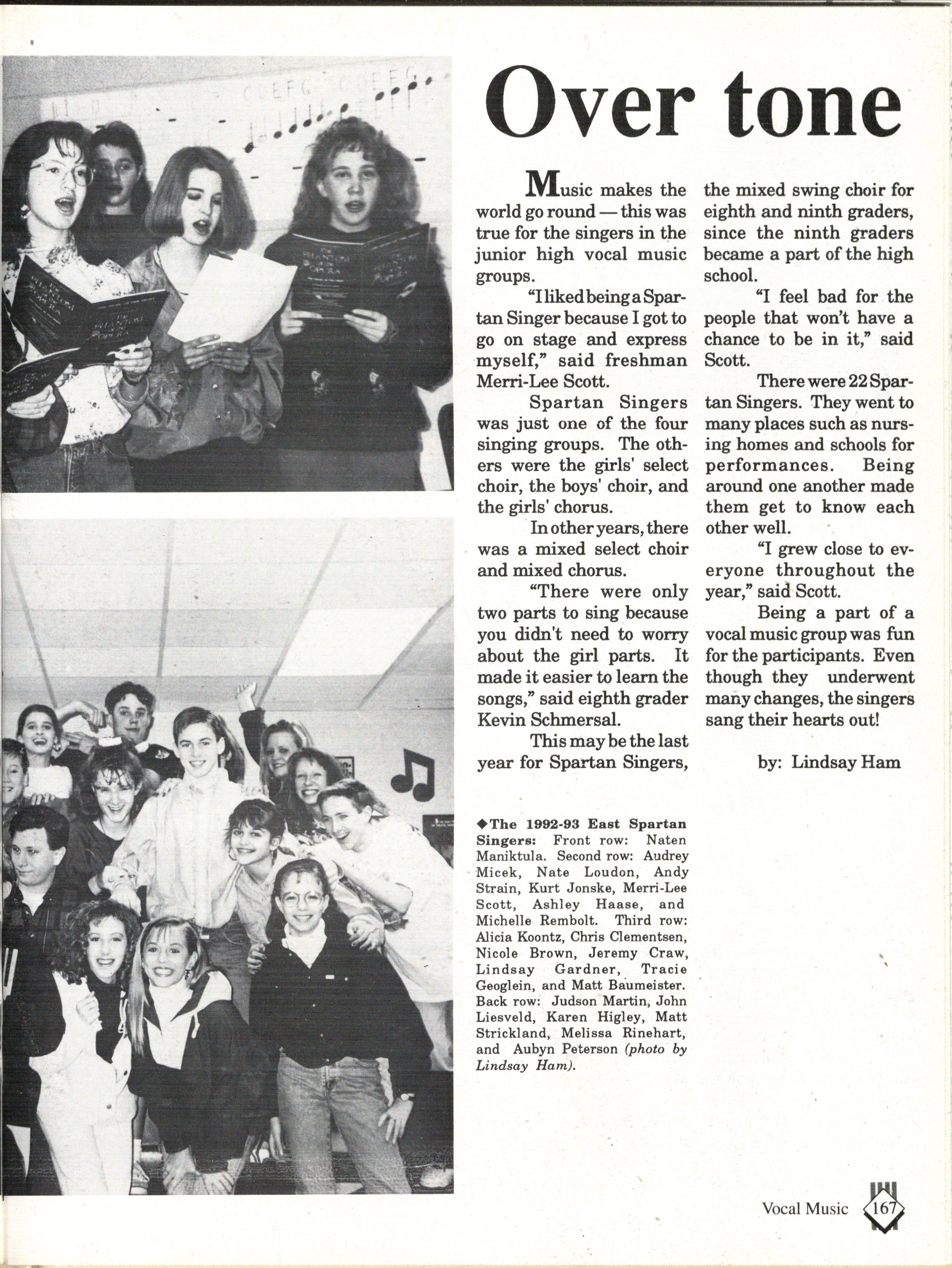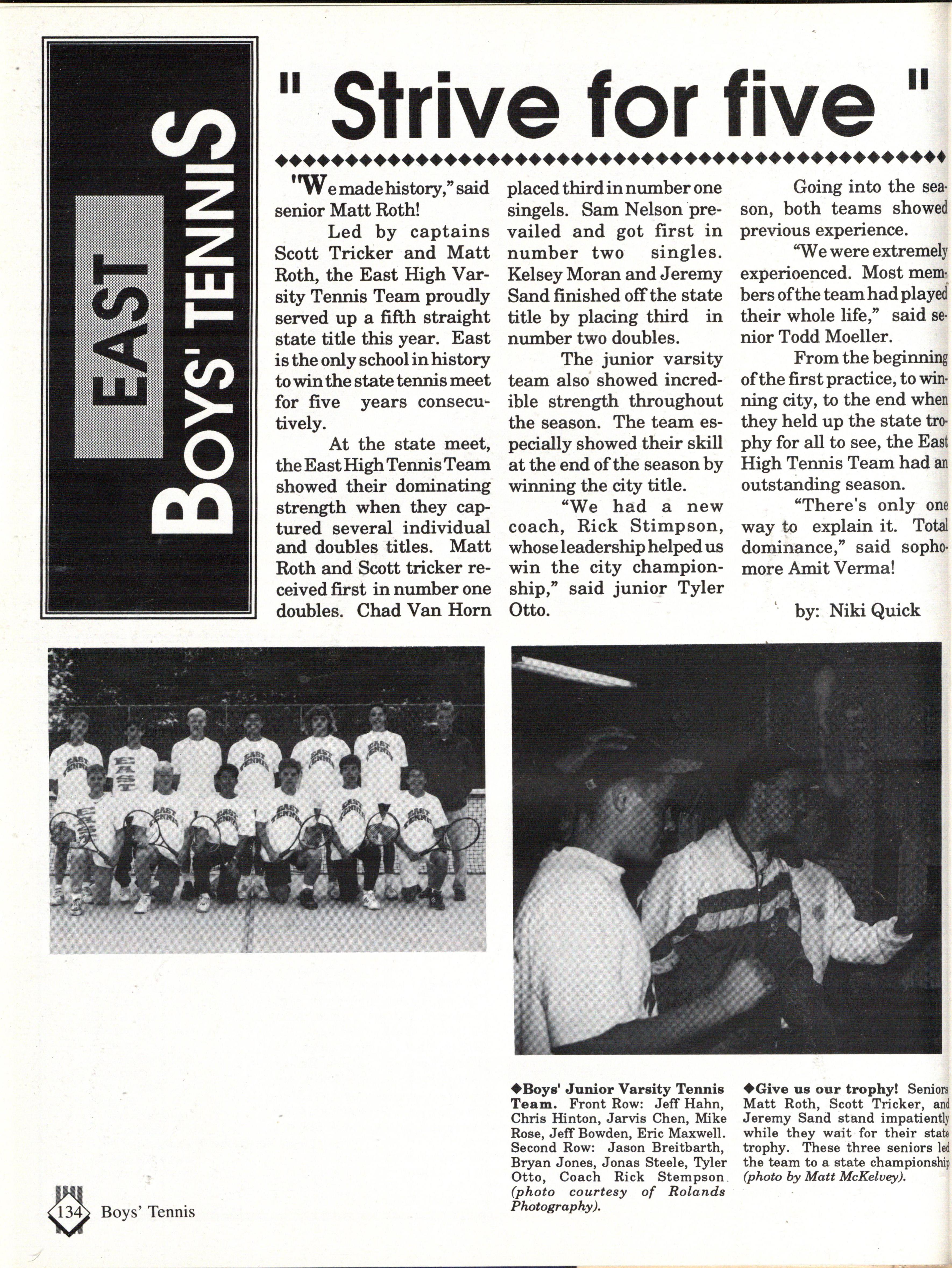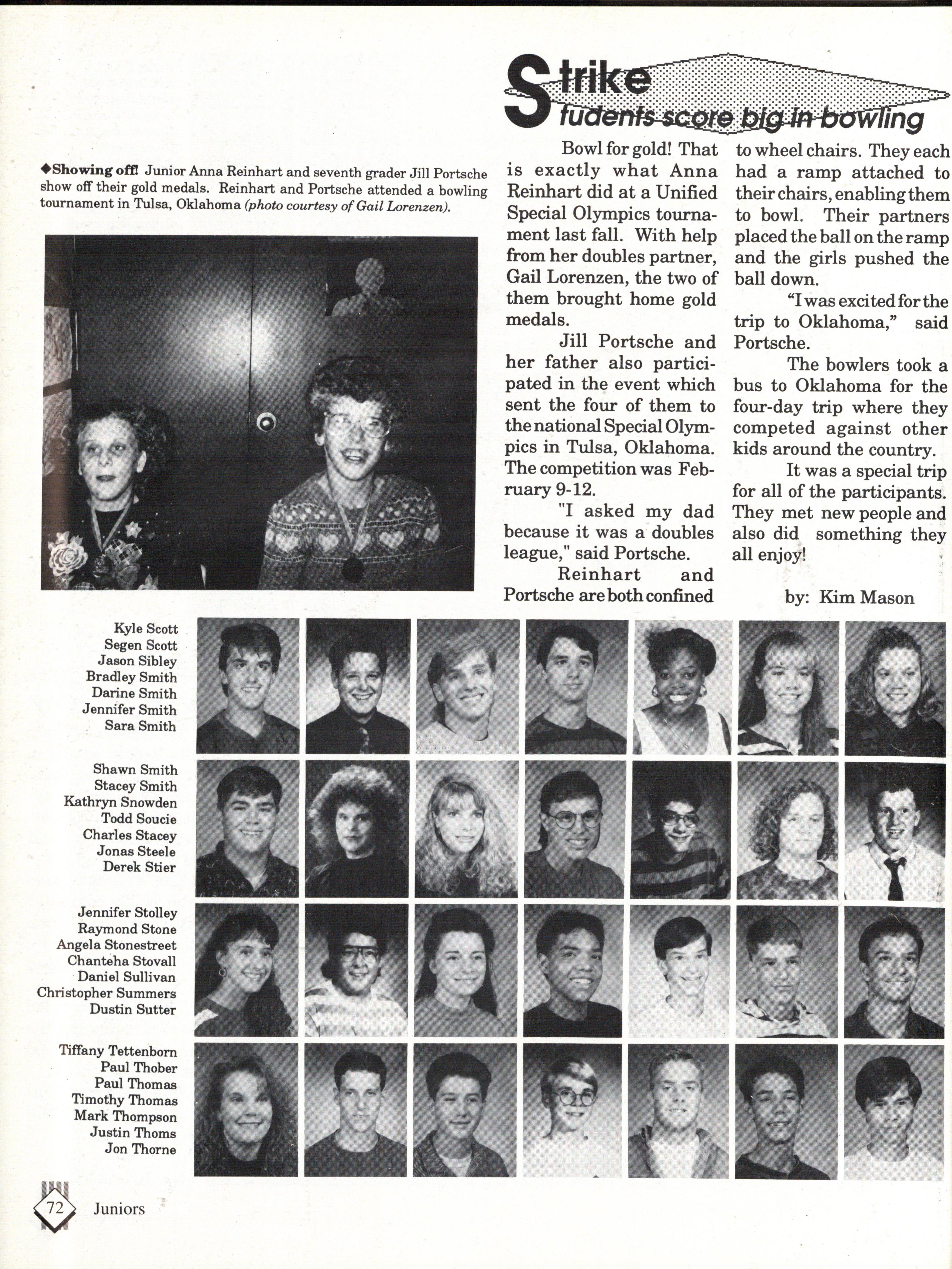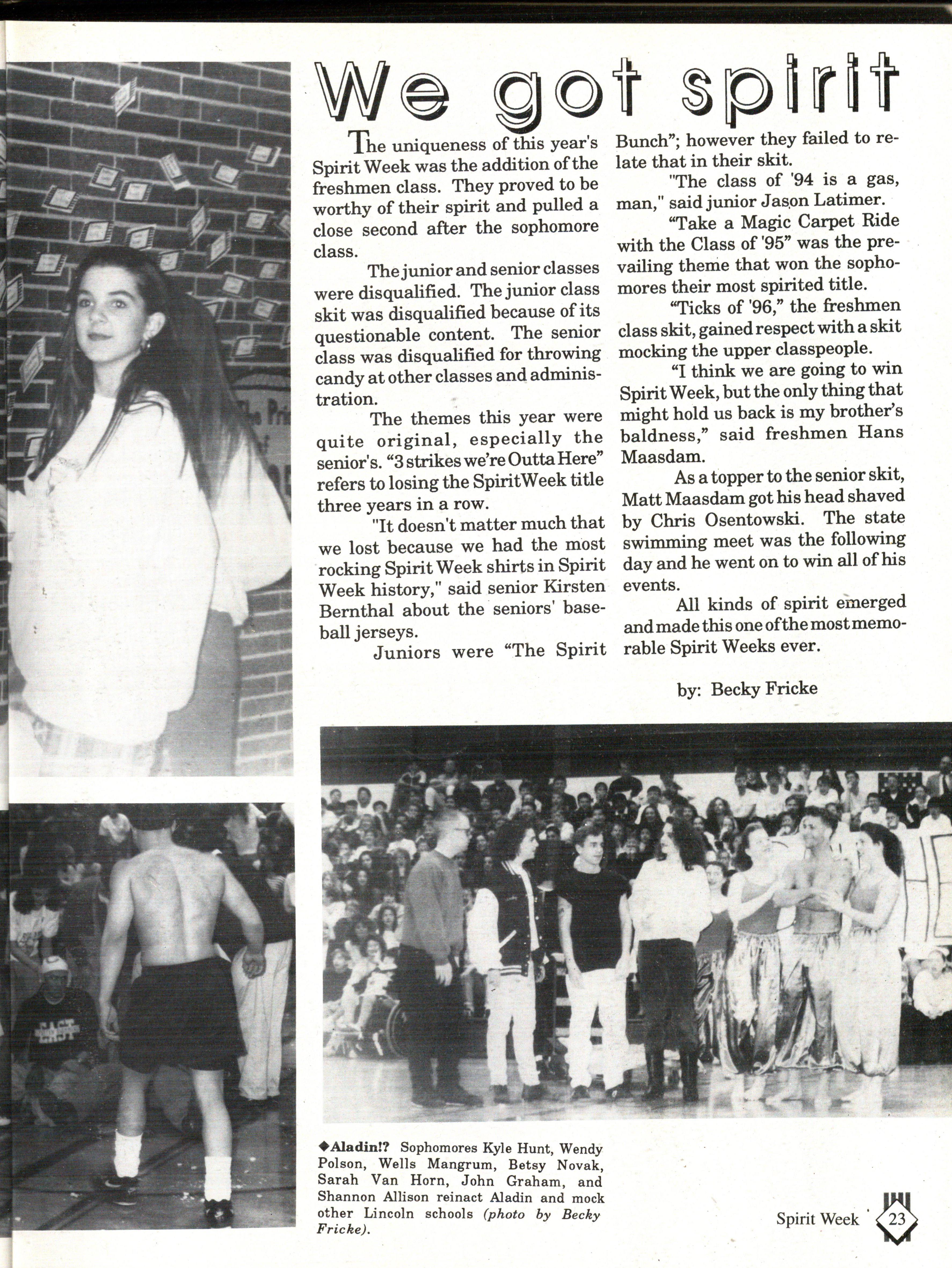 The students were very involved. Many play sports an:d are involved in clubs. Their spirit and dedication were matched bynoone. Thetennisteam won their fifth state tennis title while the varsity volleyball team won the silver pool in a national tournament. SeniorsNateBieck, Addie Reed, Mike Robb, Erin Ann Scott; juniors Jill Loweery, Vicki Geiser, Matt Krohn and Megan Zeece made NMEA AllState Chorus.