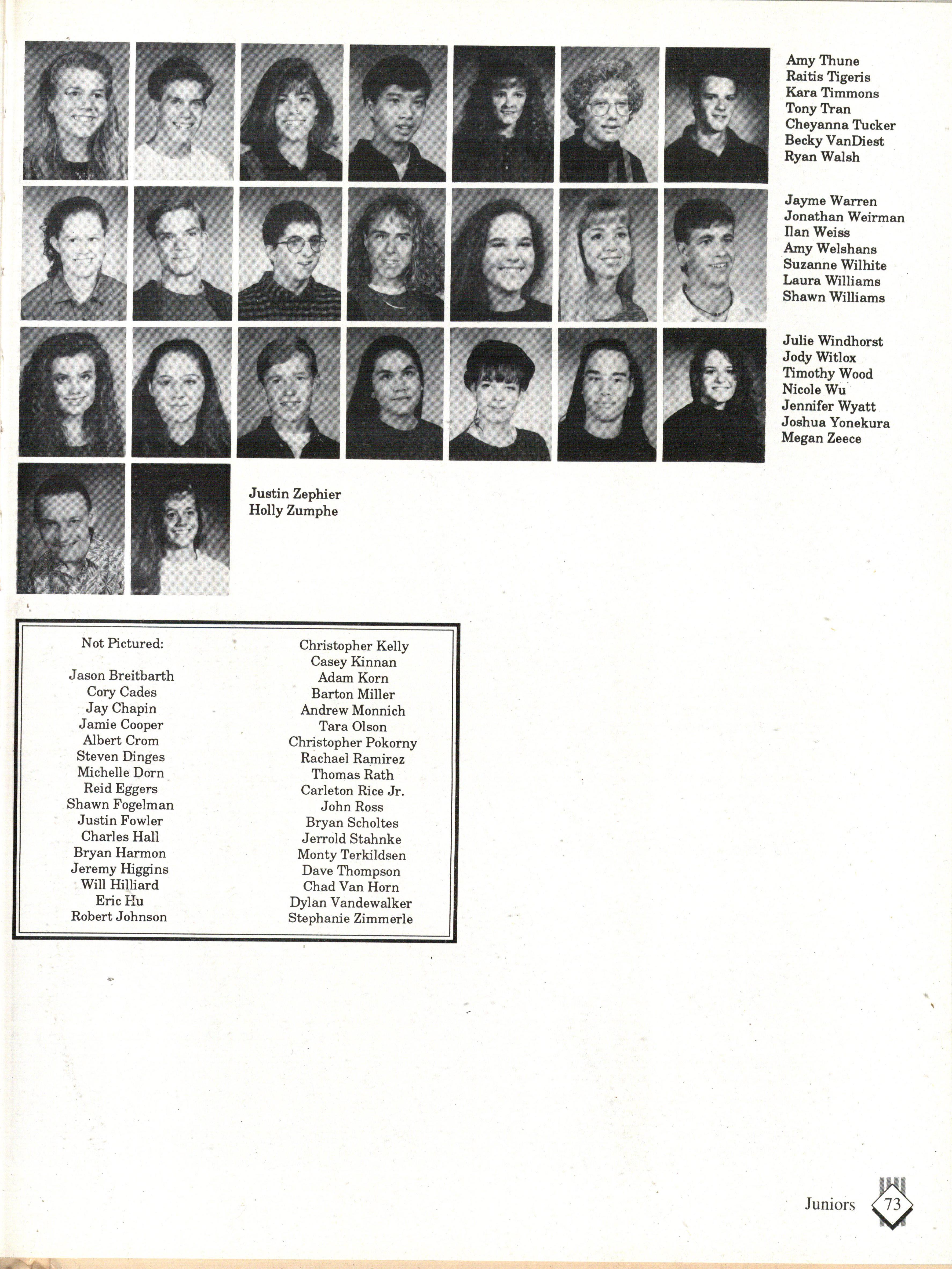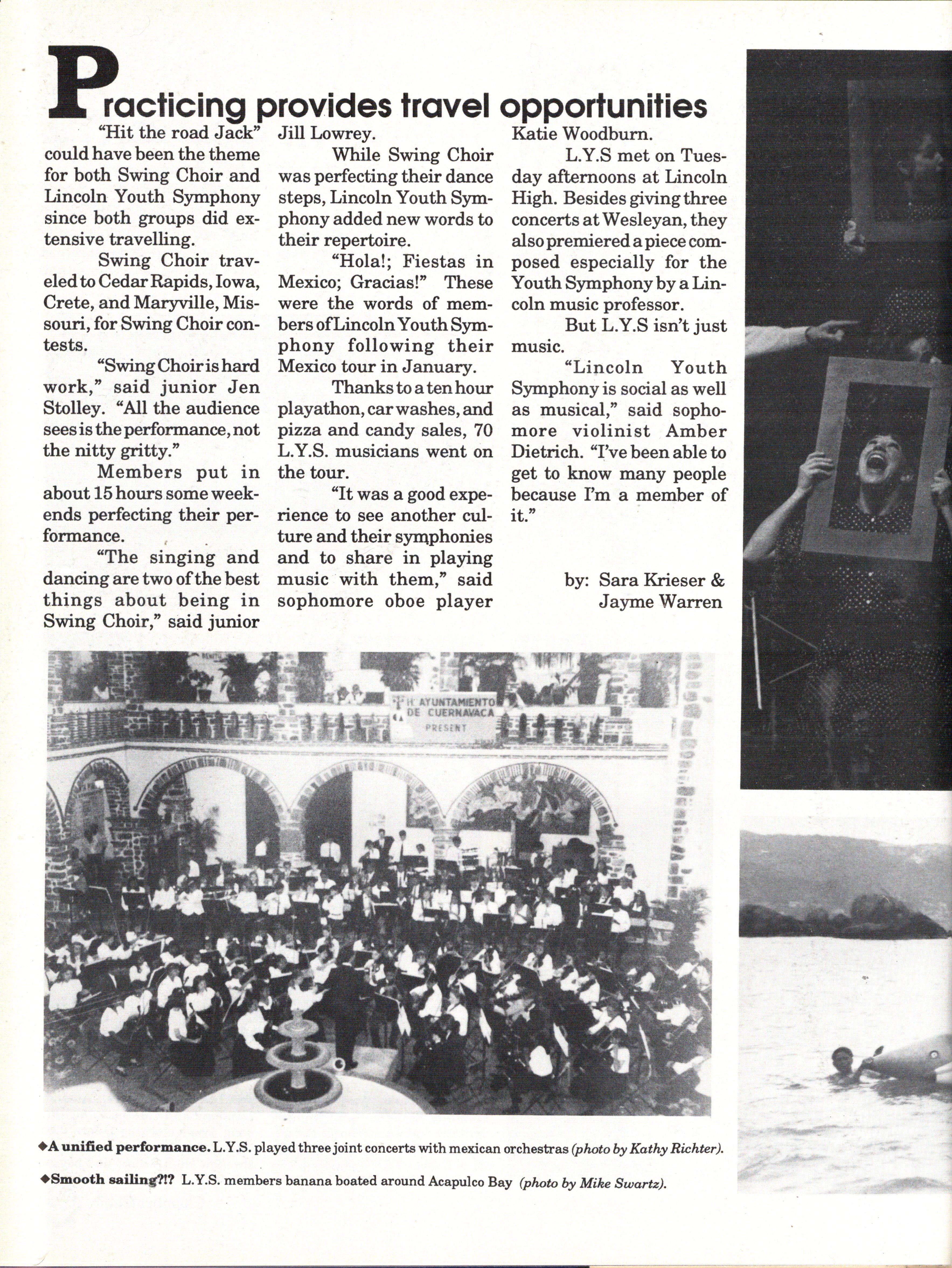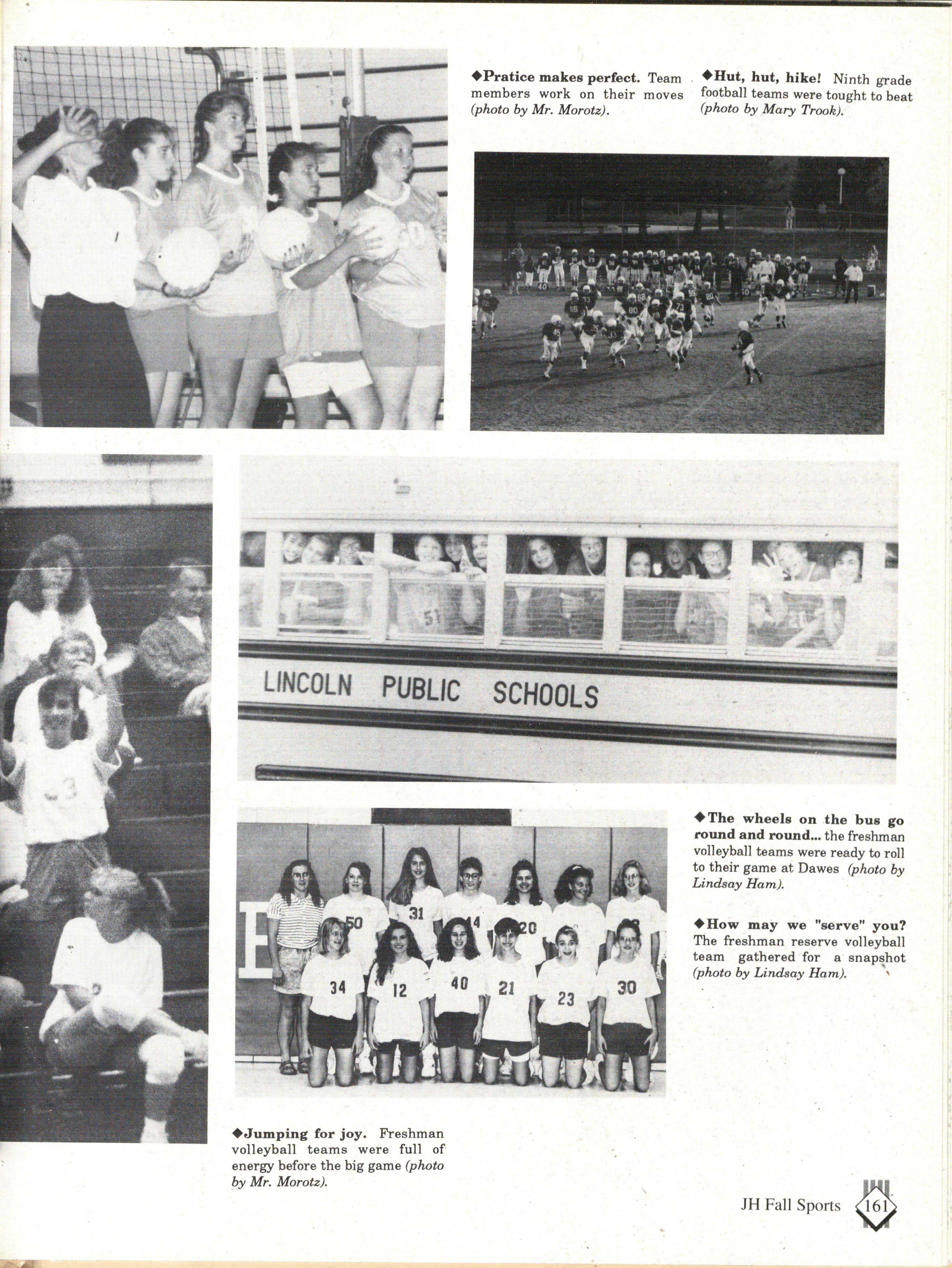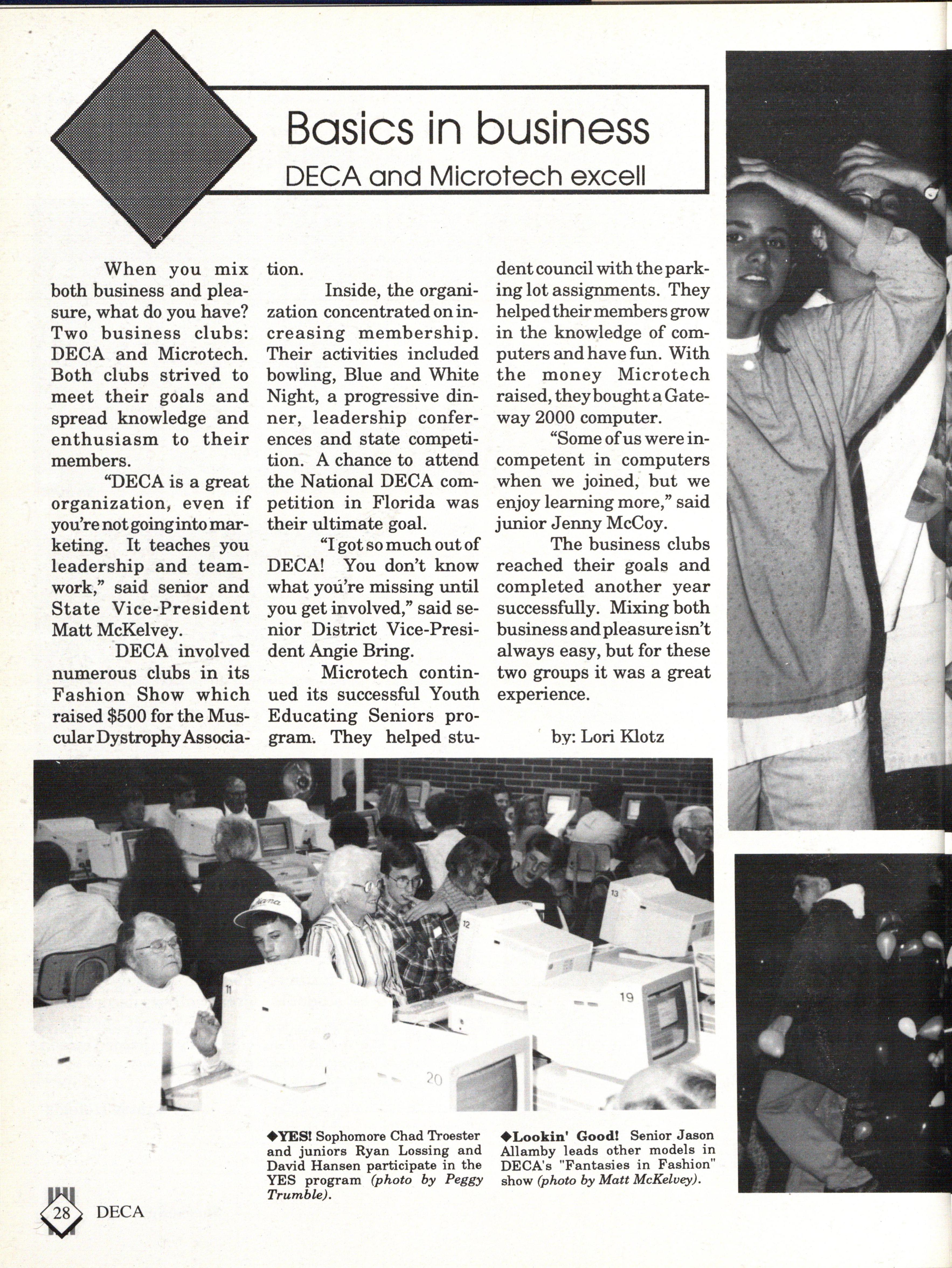 The students were very involved. Many play sports an:d are involved in clubs. Their spirit and dedication were matched bynoone. Thetennisteam won their fifth state tennis title while the varsity volleyball team won the silver pool in a national tournament. SeniorsNateBieck, Addie Reed, Mike Robb, Erin Ann Scott; juniors Jill Loweery, Vicki Geiser, Matt Krohn and Megan Zeece made NMEA AllState Chorus.