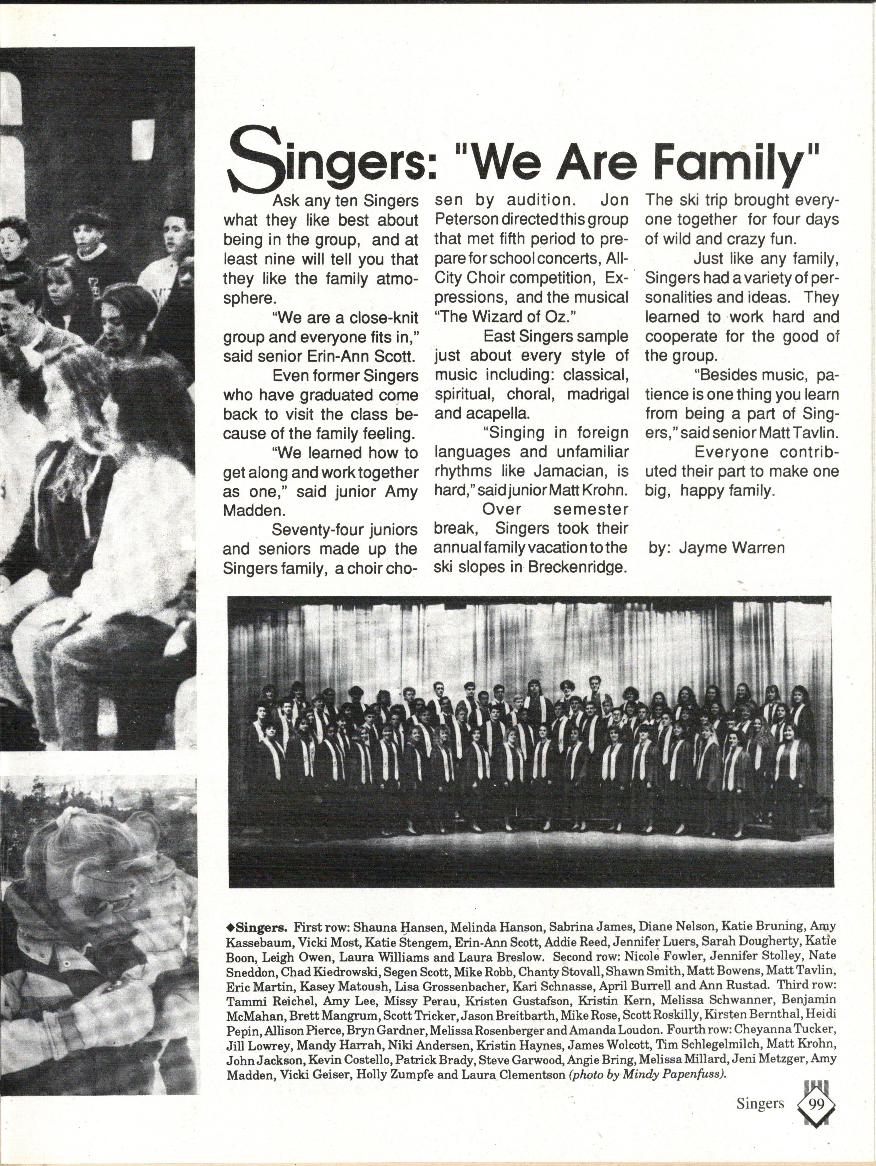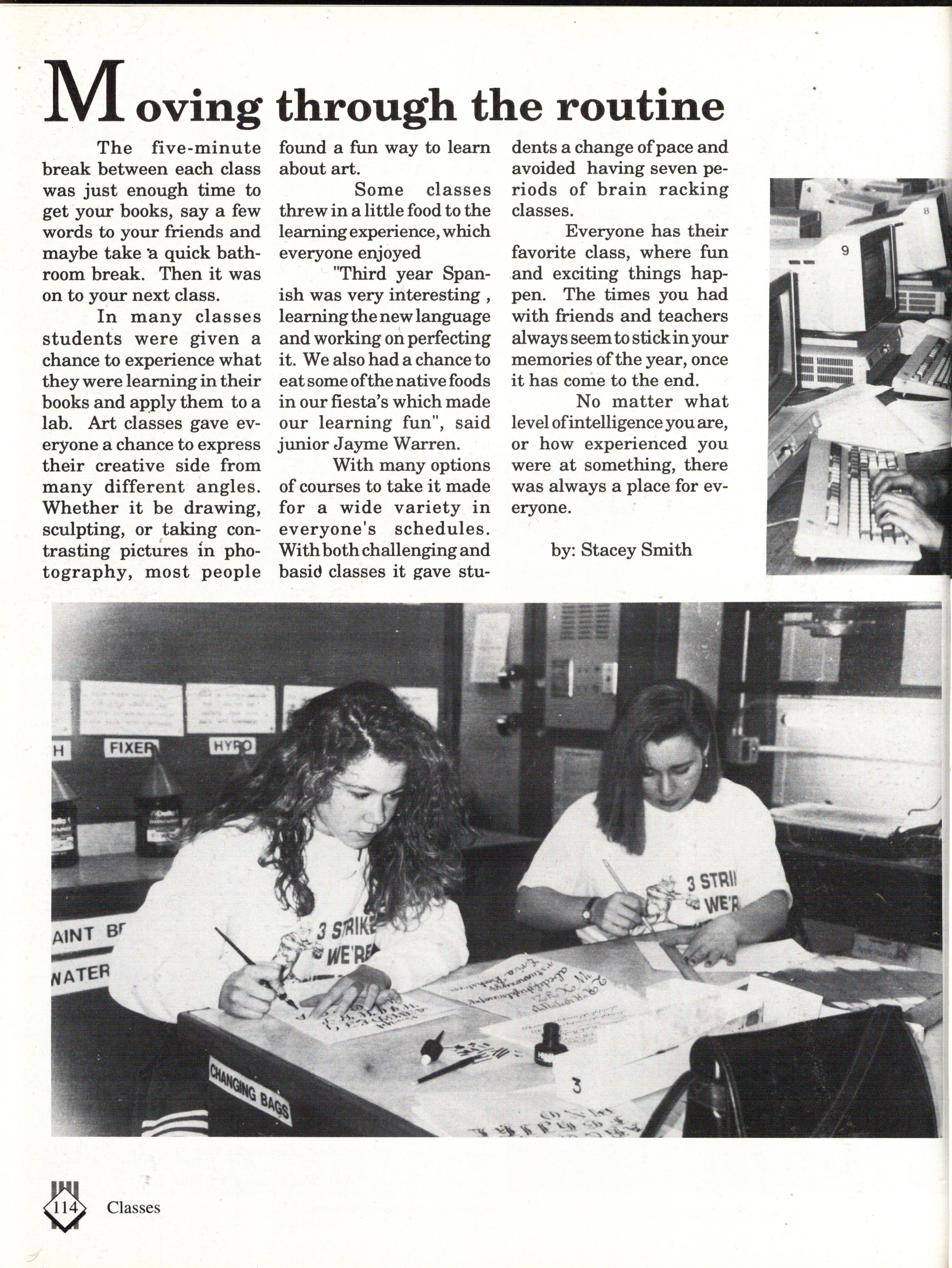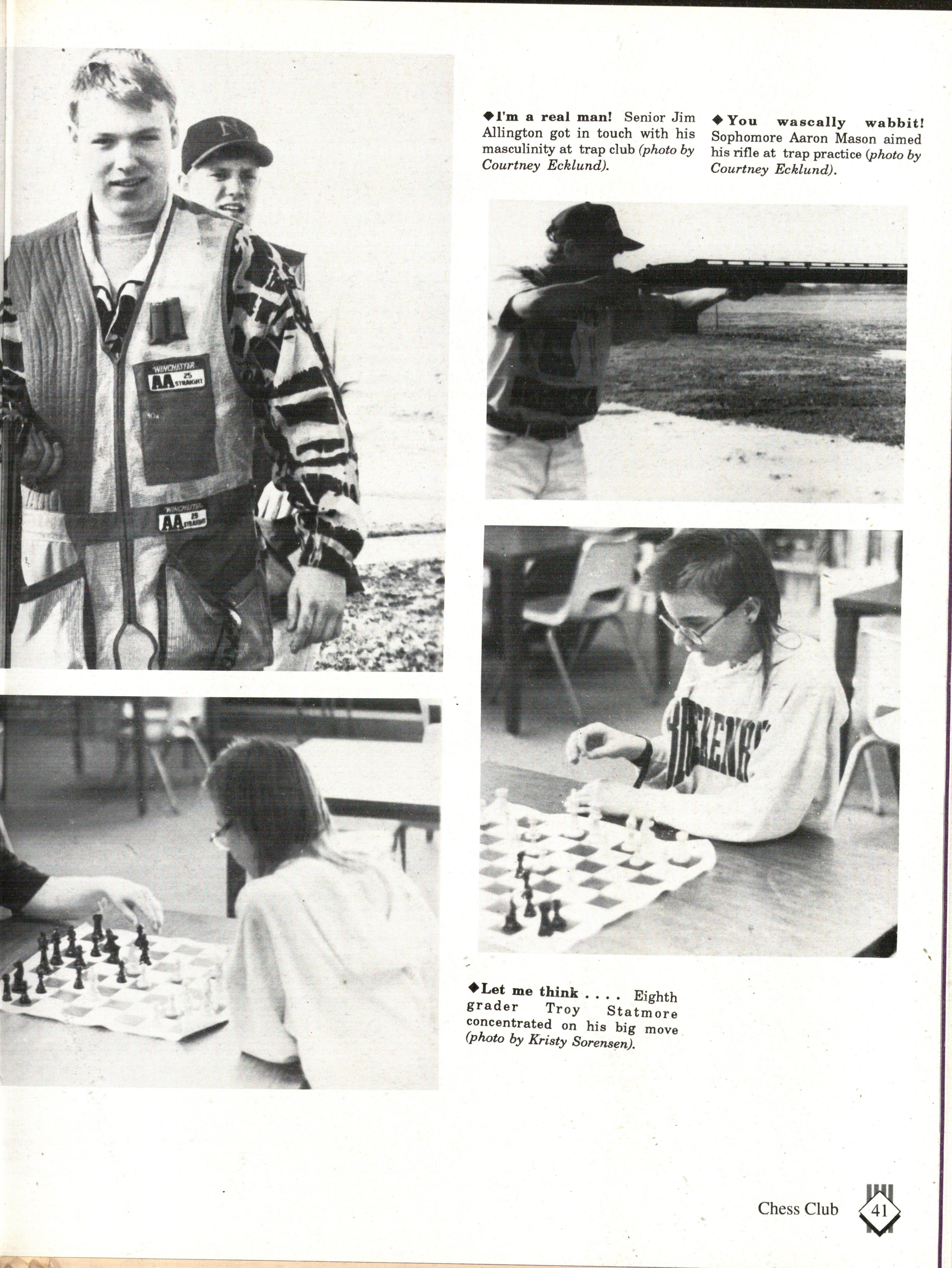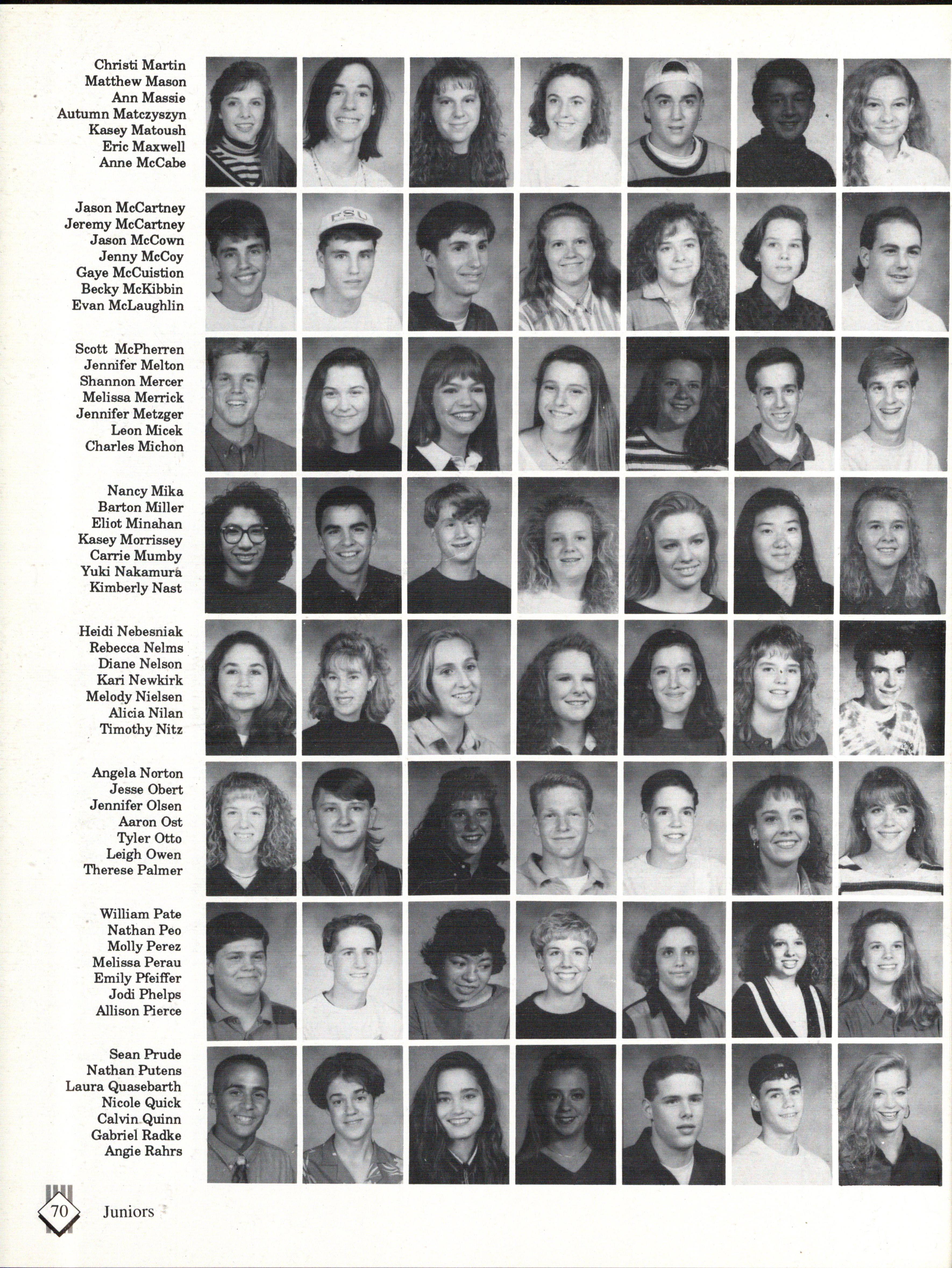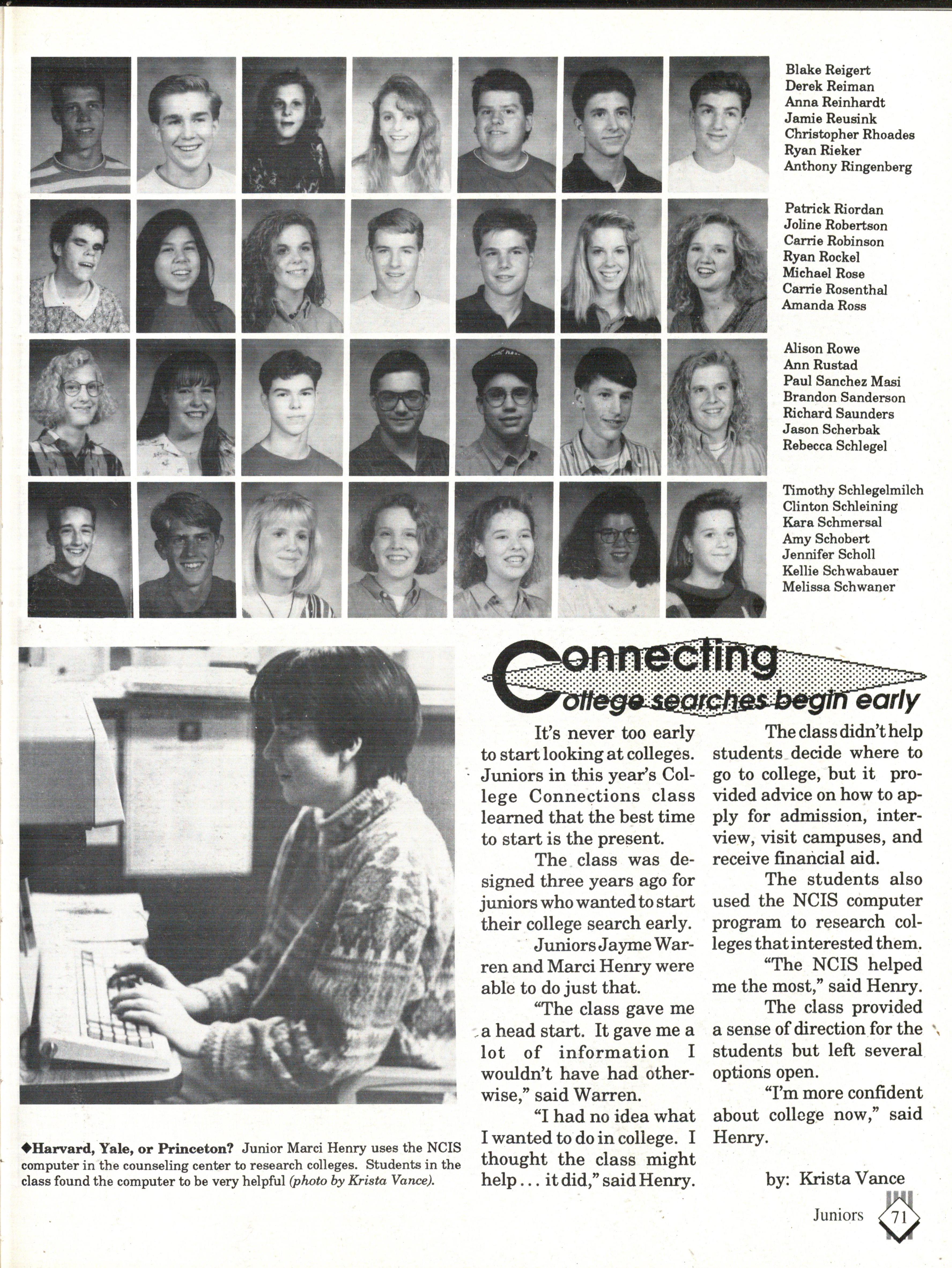 The students were very involved. Many play sports an:d are involved in clubs. Their spirit and dedication were matched bynoone. Thetennisteam won their fifth state tennis title while the varsity volleyball team won the silver pool in a national tournament. SeniorsNateBieck, Addie Reed, Mike Robb, Erin Ann Scott; juniors Jill Loweery, Vicki Geiser, Matt Krohn and Megan Zeece made NMEA AllState Chorus.