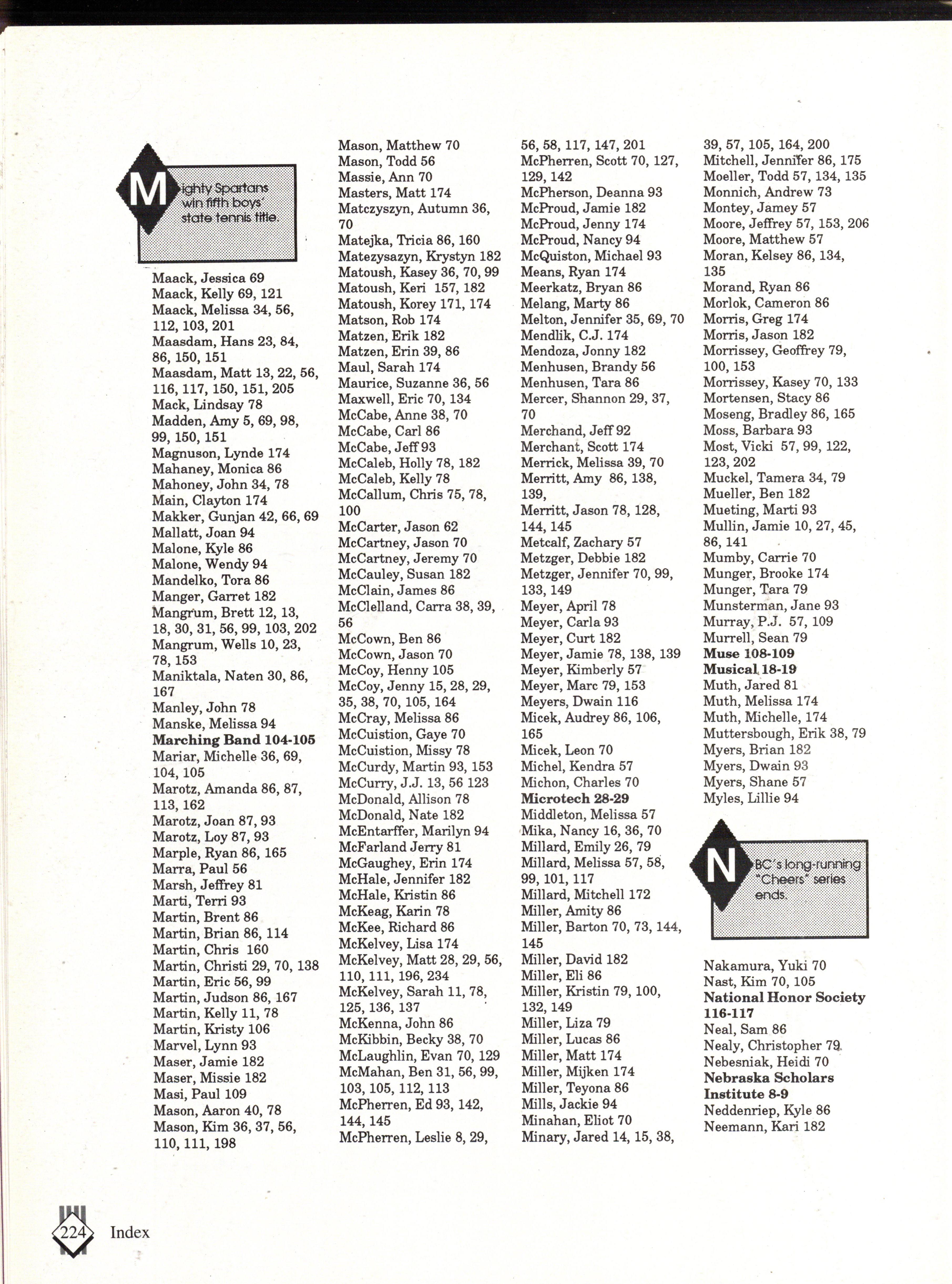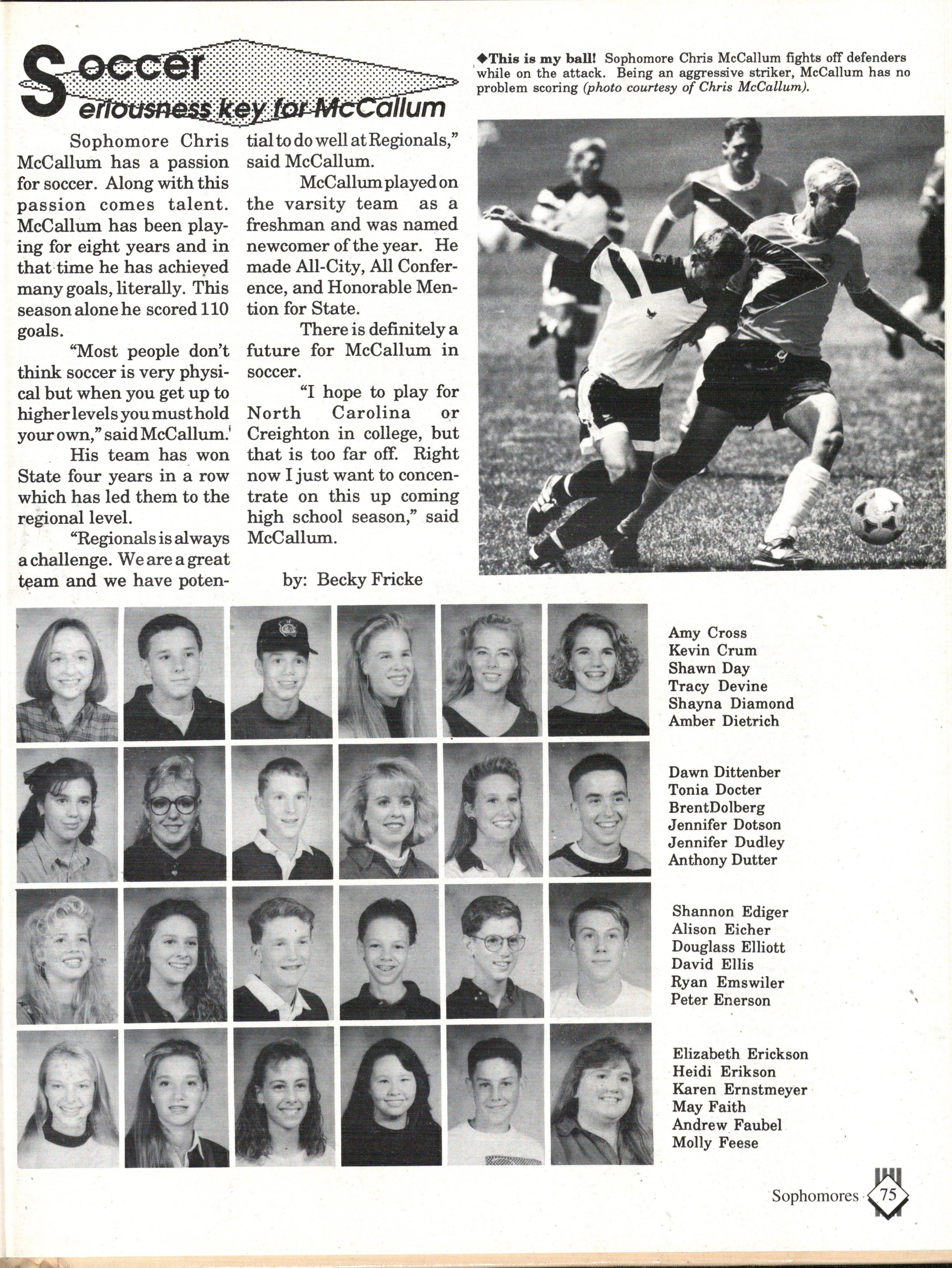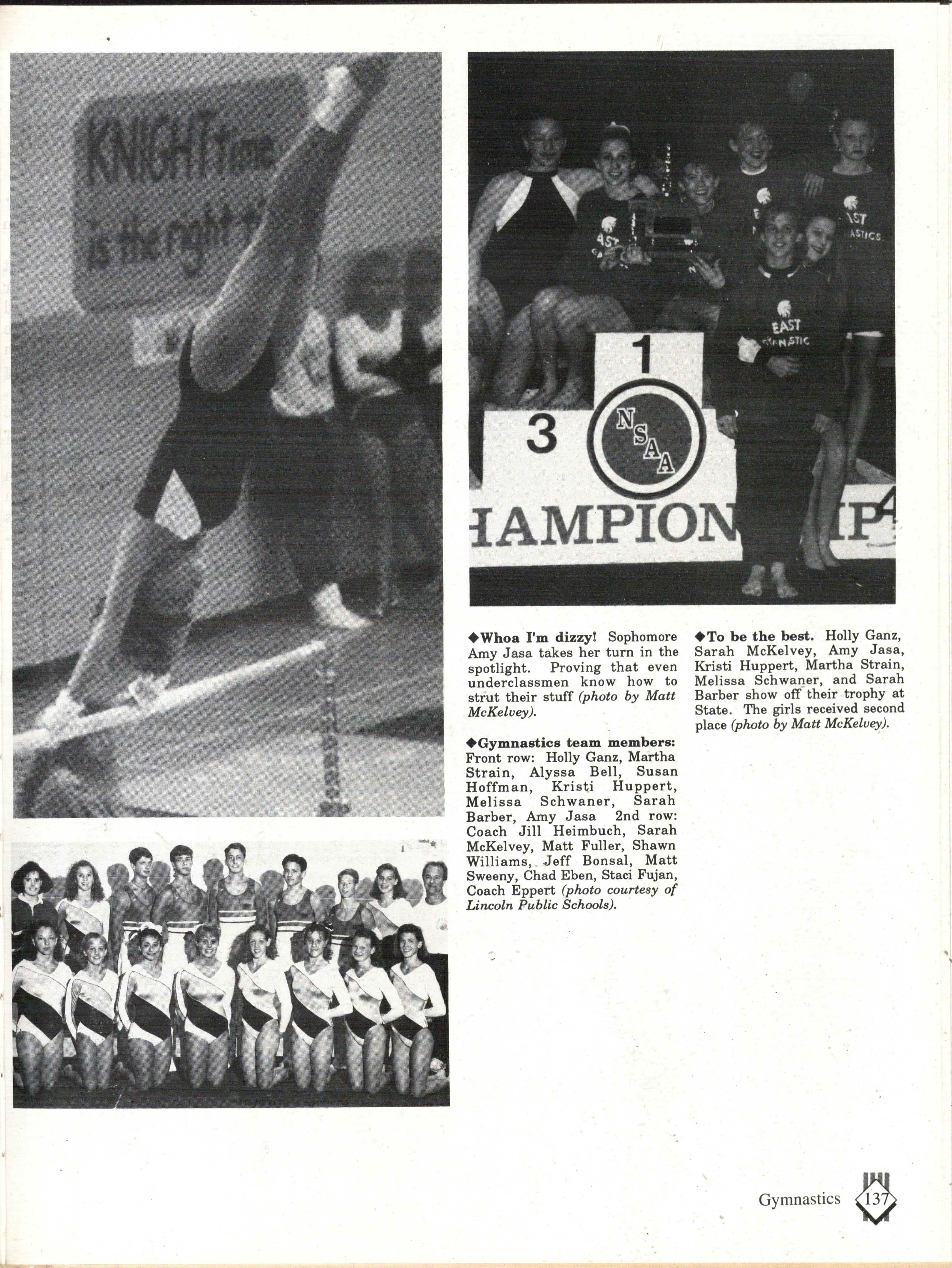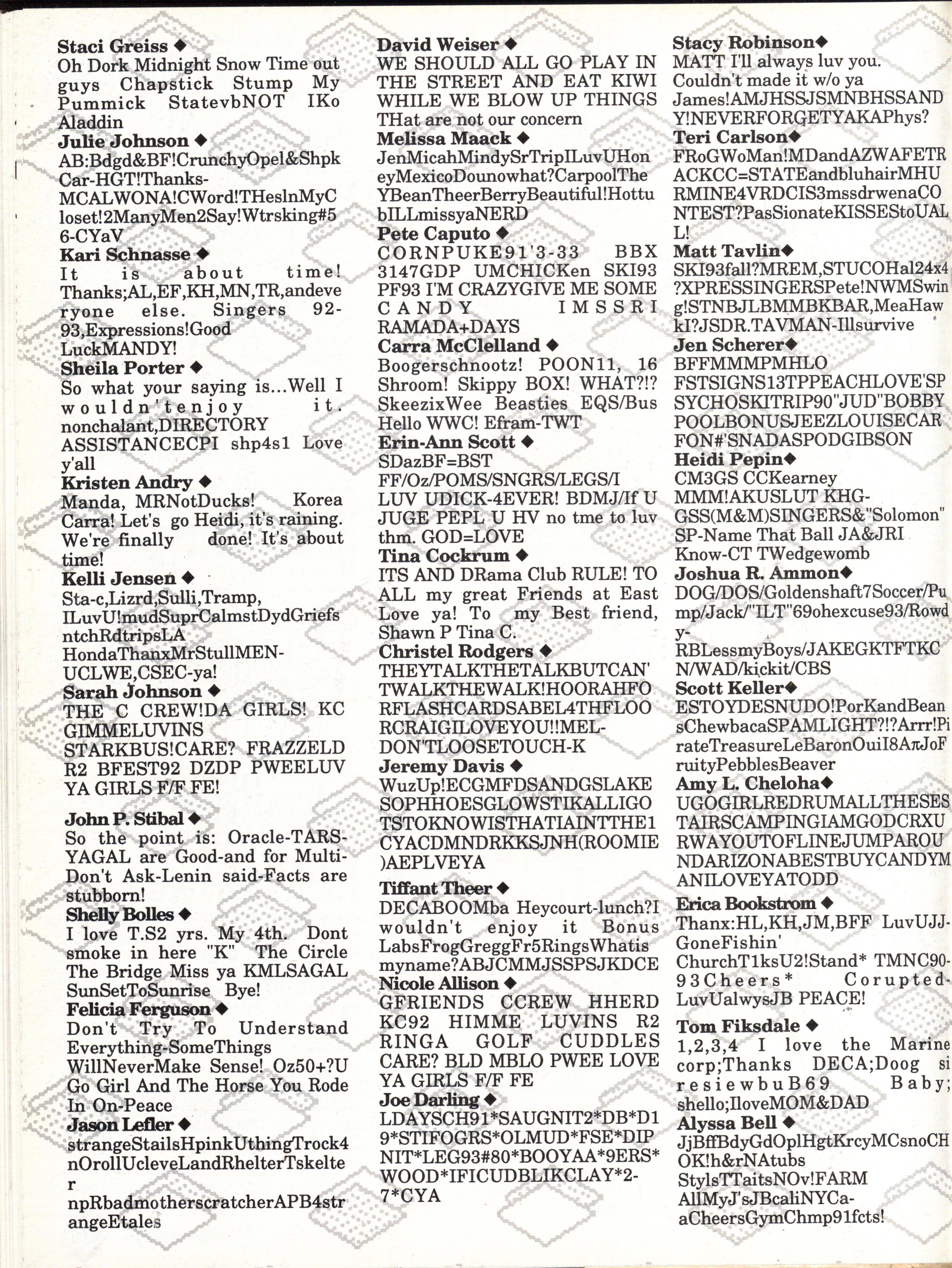 The students were very involved. Many play sports an:d are involved in clubs. Their spirit and dedication were matched bynoone. Thetennisteam won their fifth state tennis title while the varsity volleyball team won the silver pool in a national tournament. SeniorsNateBieck, Addie Reed, Mike Robb, Erin Ann Scott; juniors Jill Loweery, Vicki Geiser, Matt Krohn and Megan Zeece made NMEA AllState Chorus.