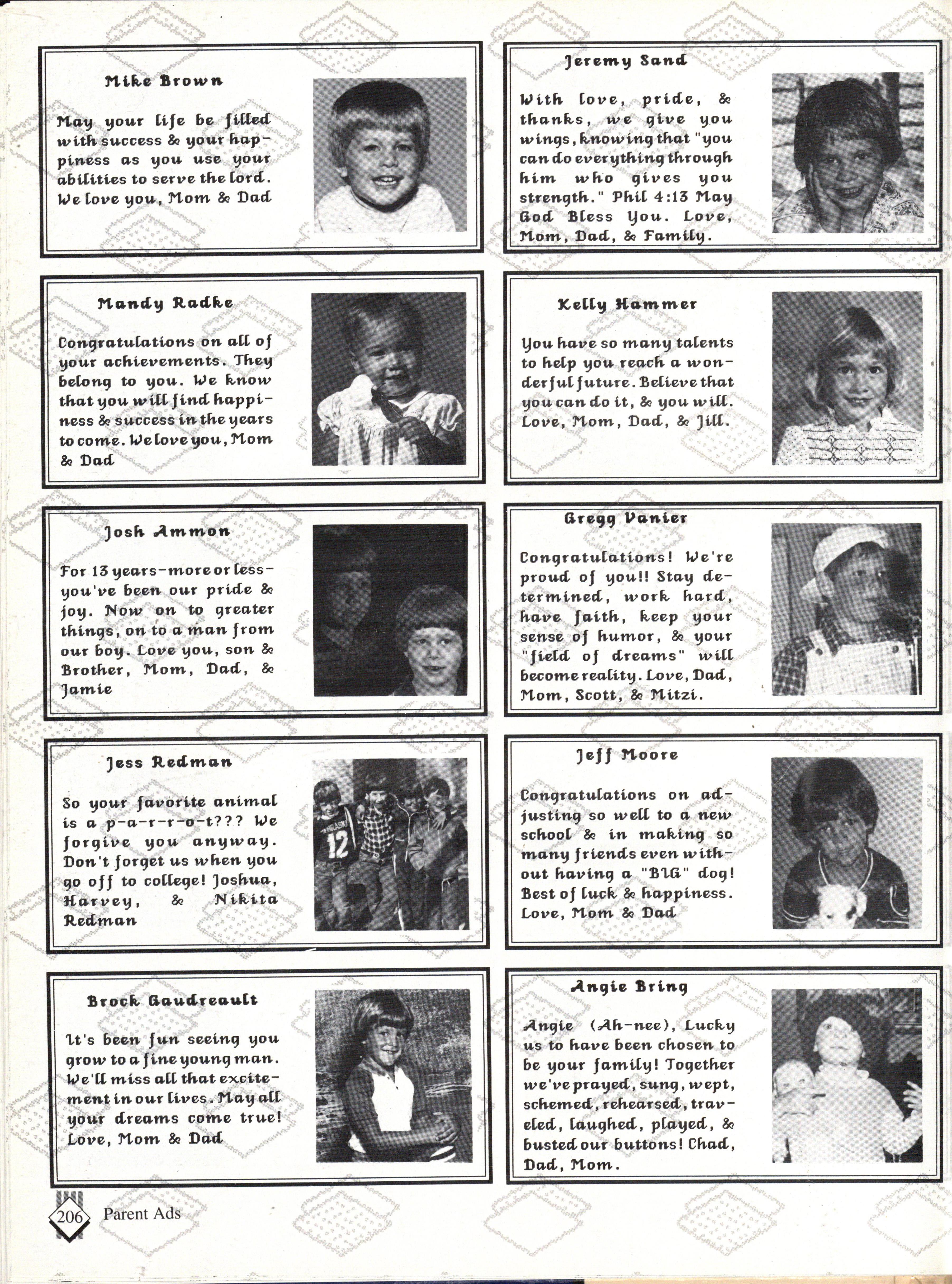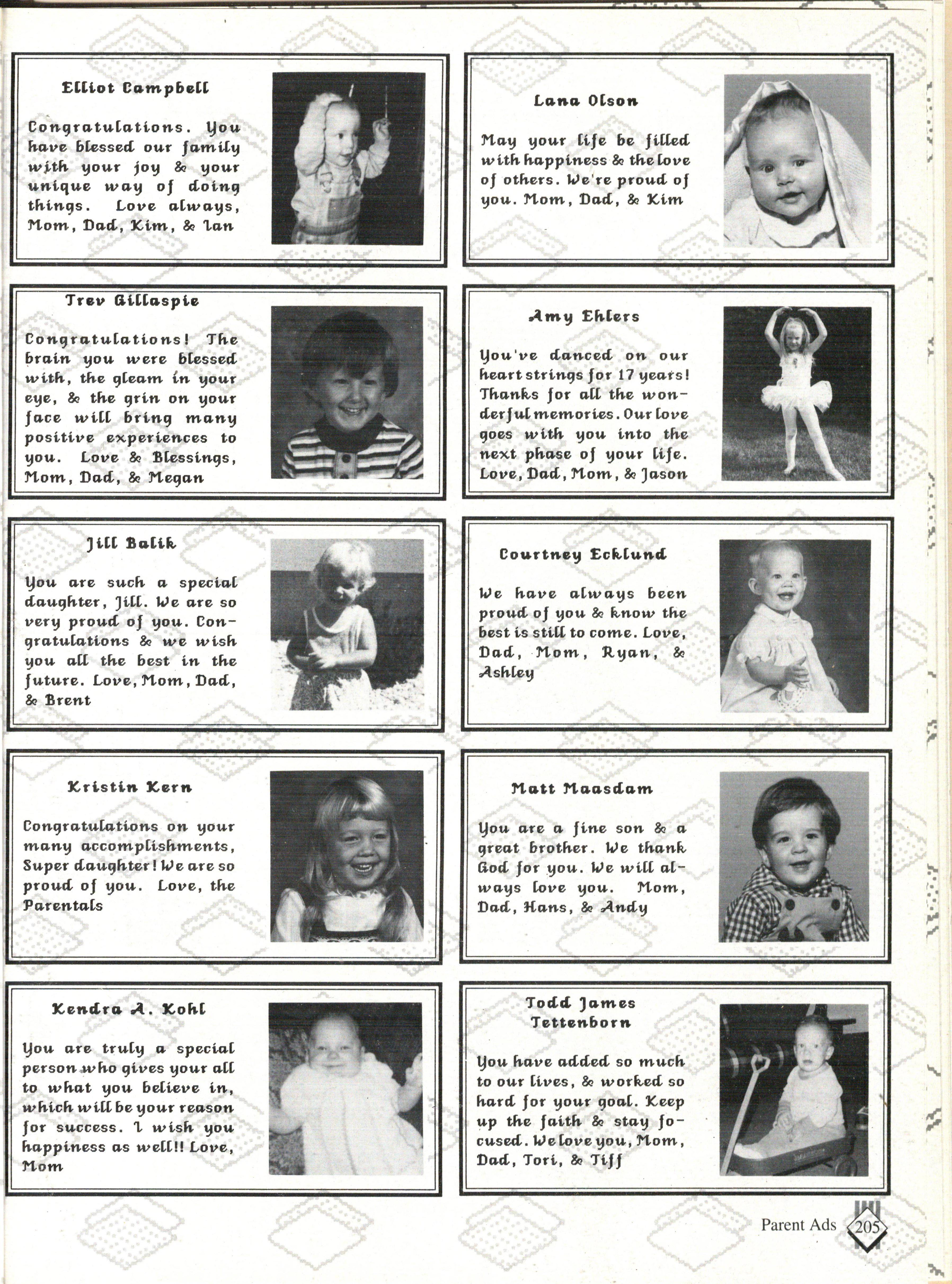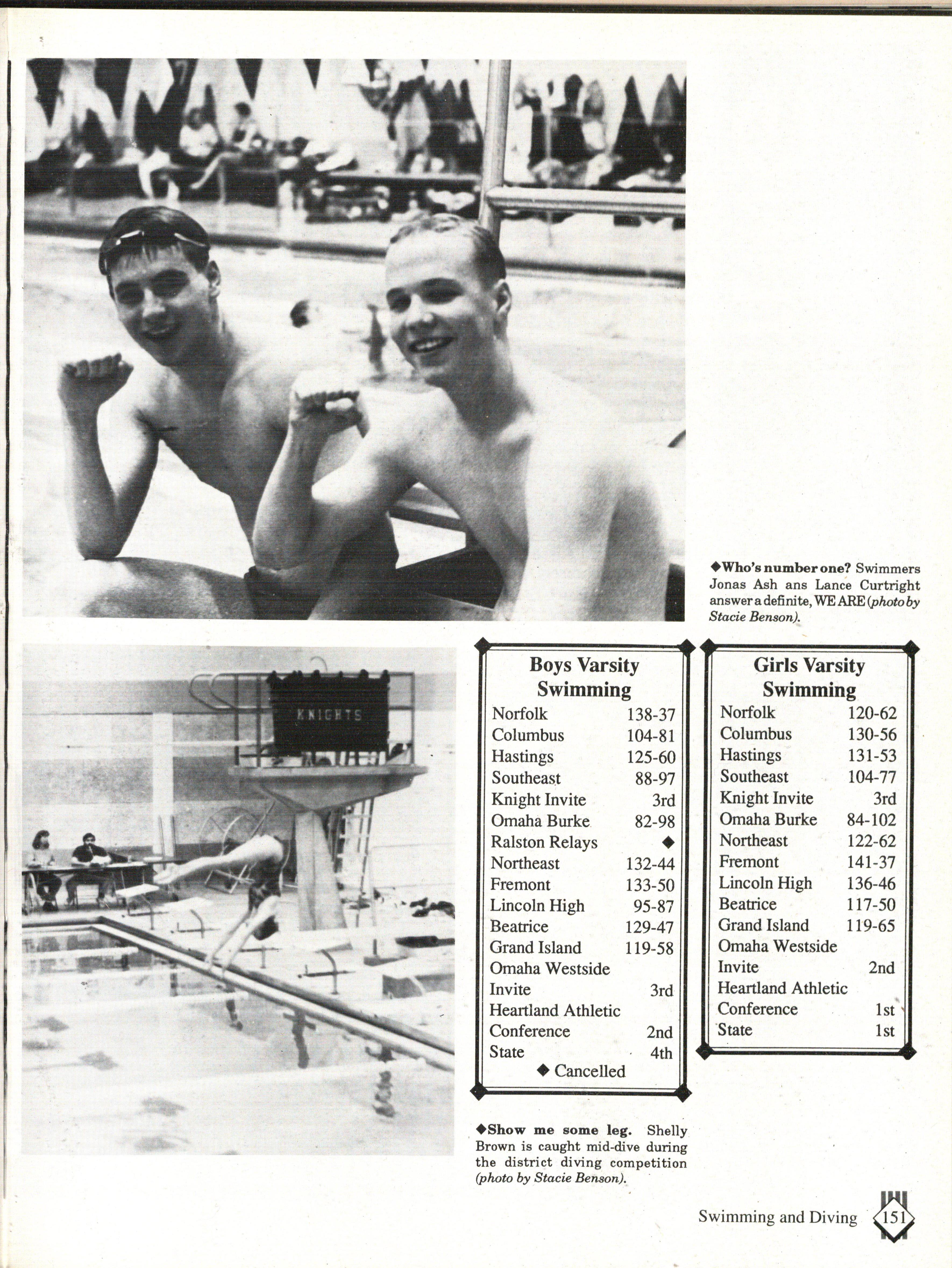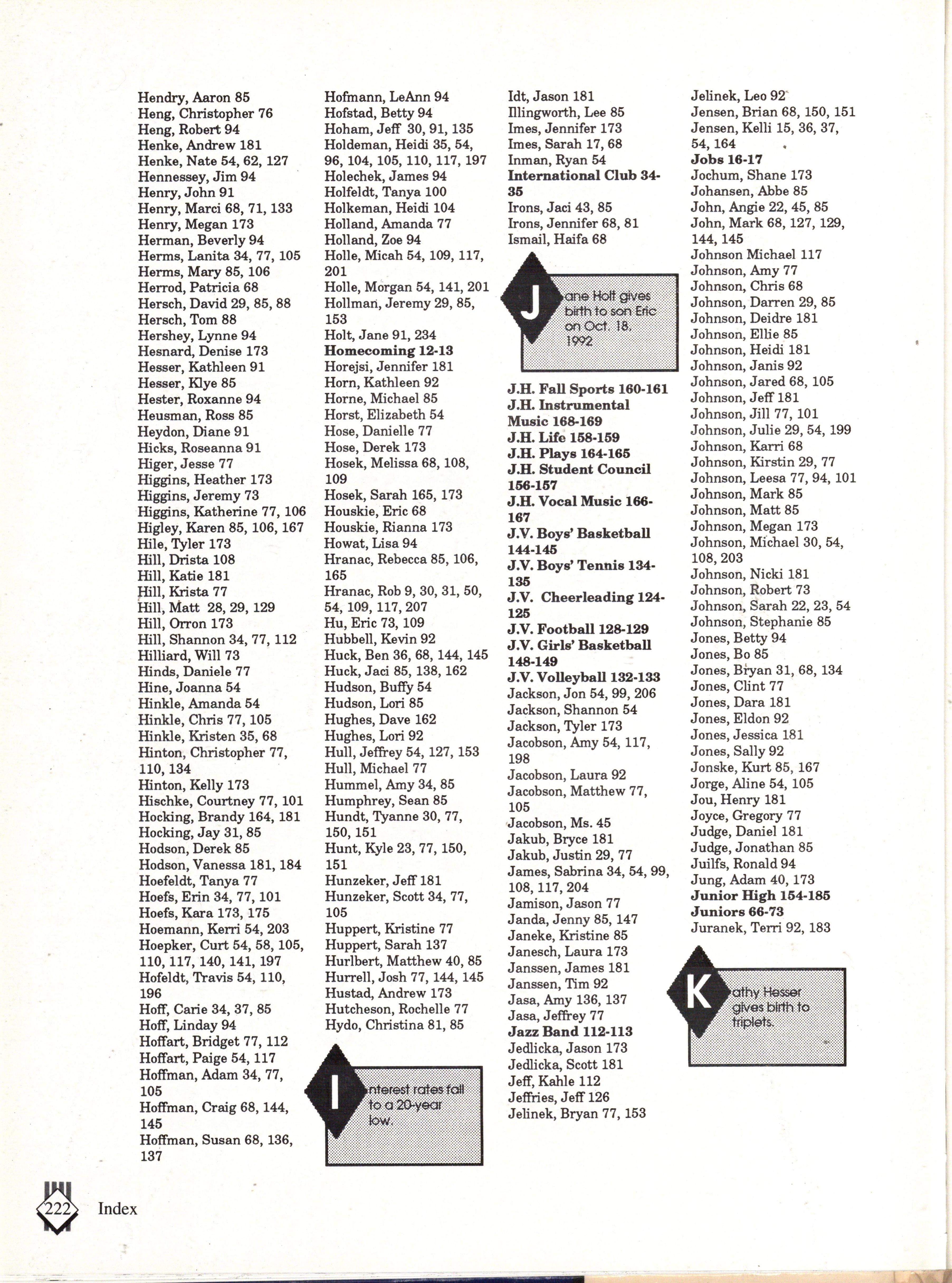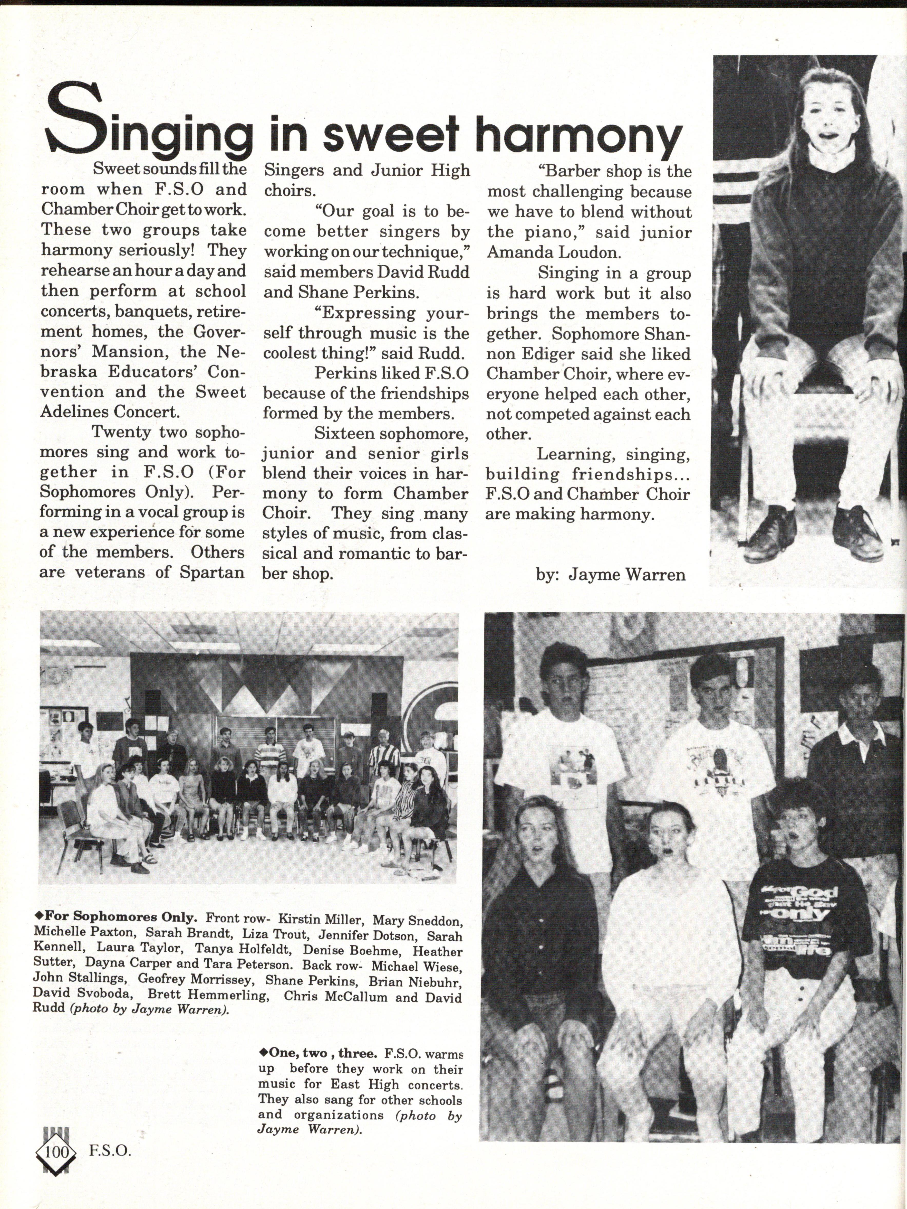 The students were very involved. Many play sports an:d are involved in clubs. Their spirit and dedication were matched bynoone. Thetennisteam won their fifth state tennis title while the varsity volleyball team won the silver pool in a national tournament. SeniorsNateBieck, Addie Reed, Mike Robb, Erin Ann Scott; juniors Jill Loweery, Vicki Geiser, Matt Krohn and Megan Zeece made NMEA AllState Chorus.