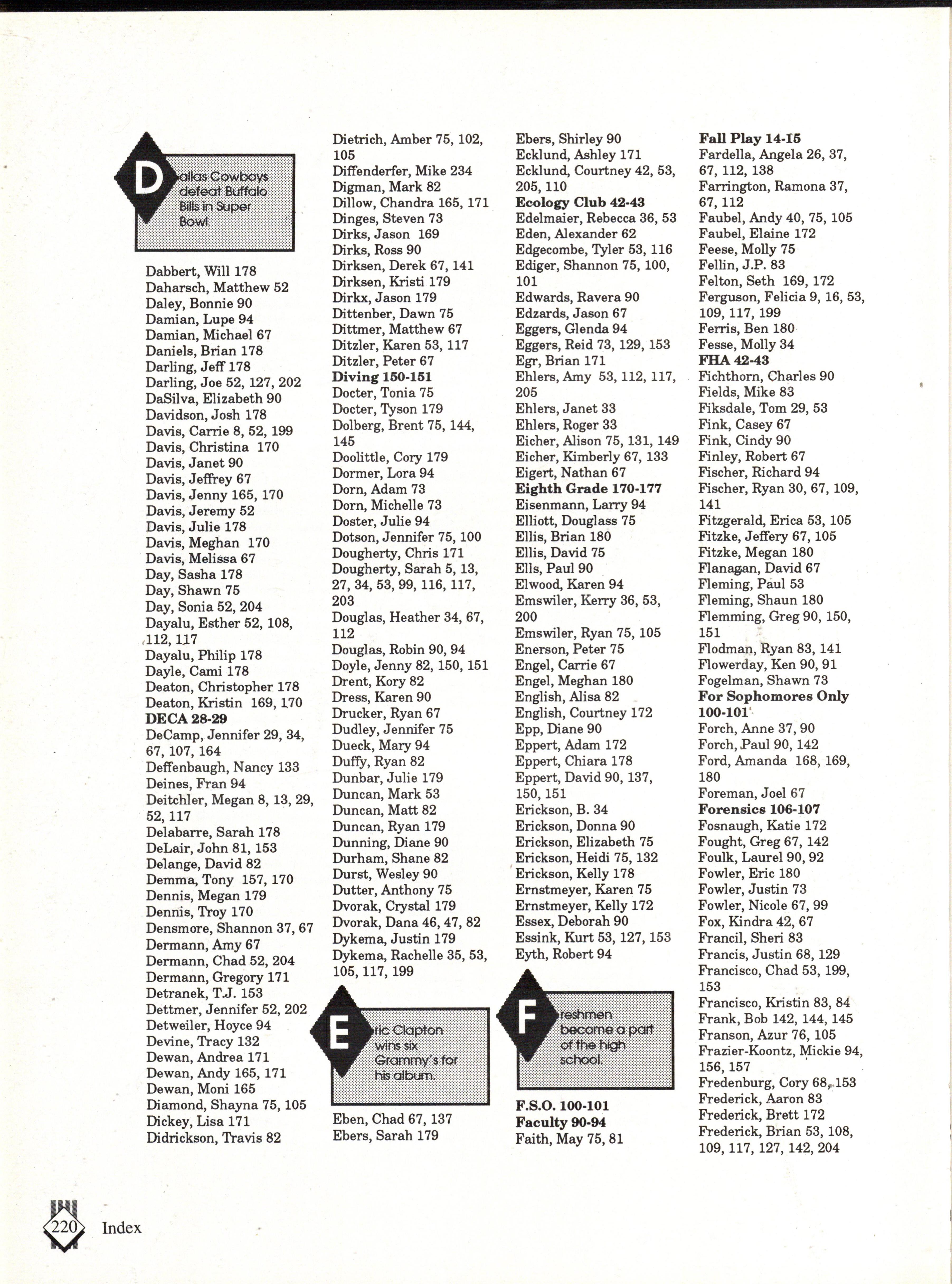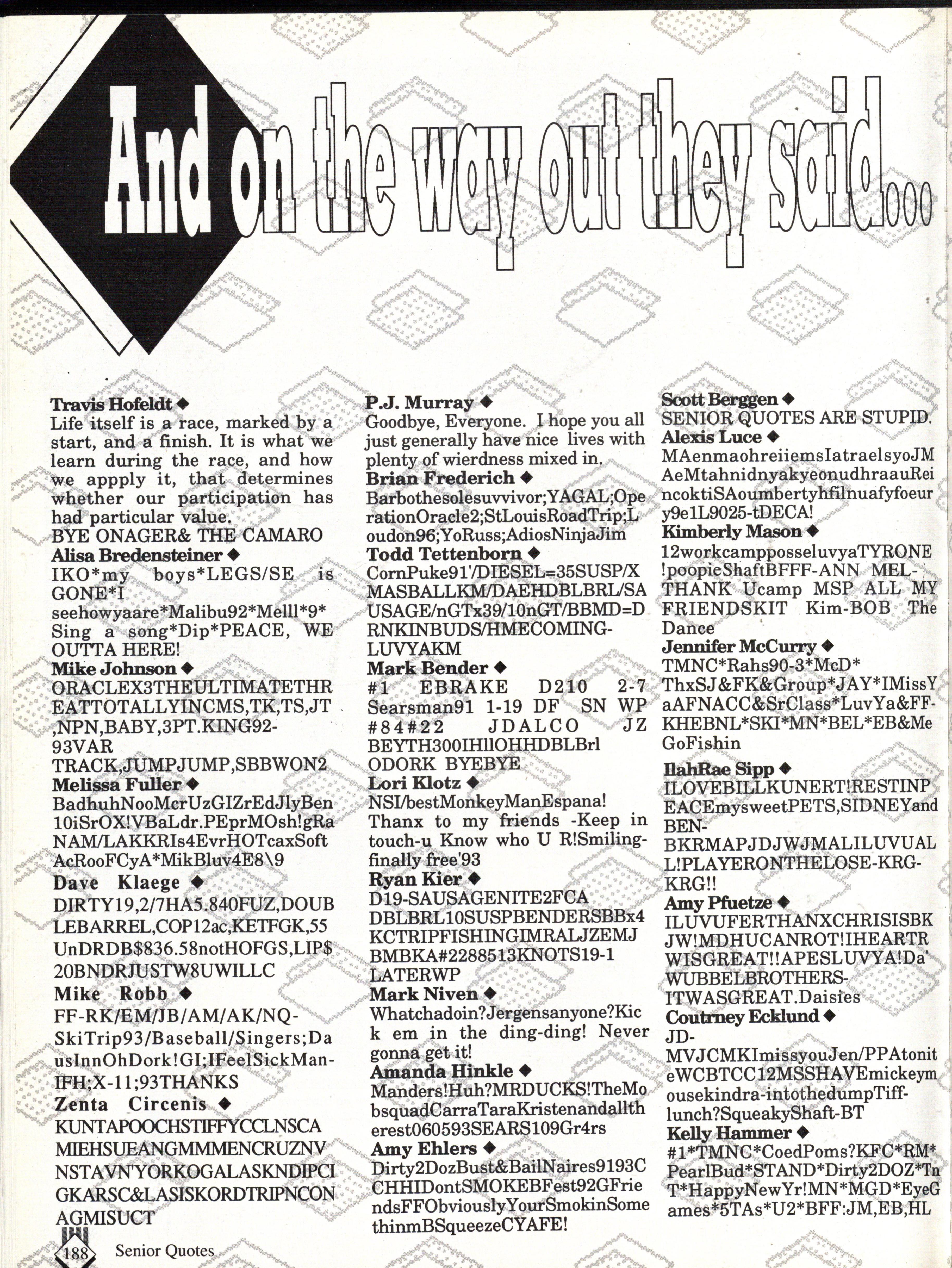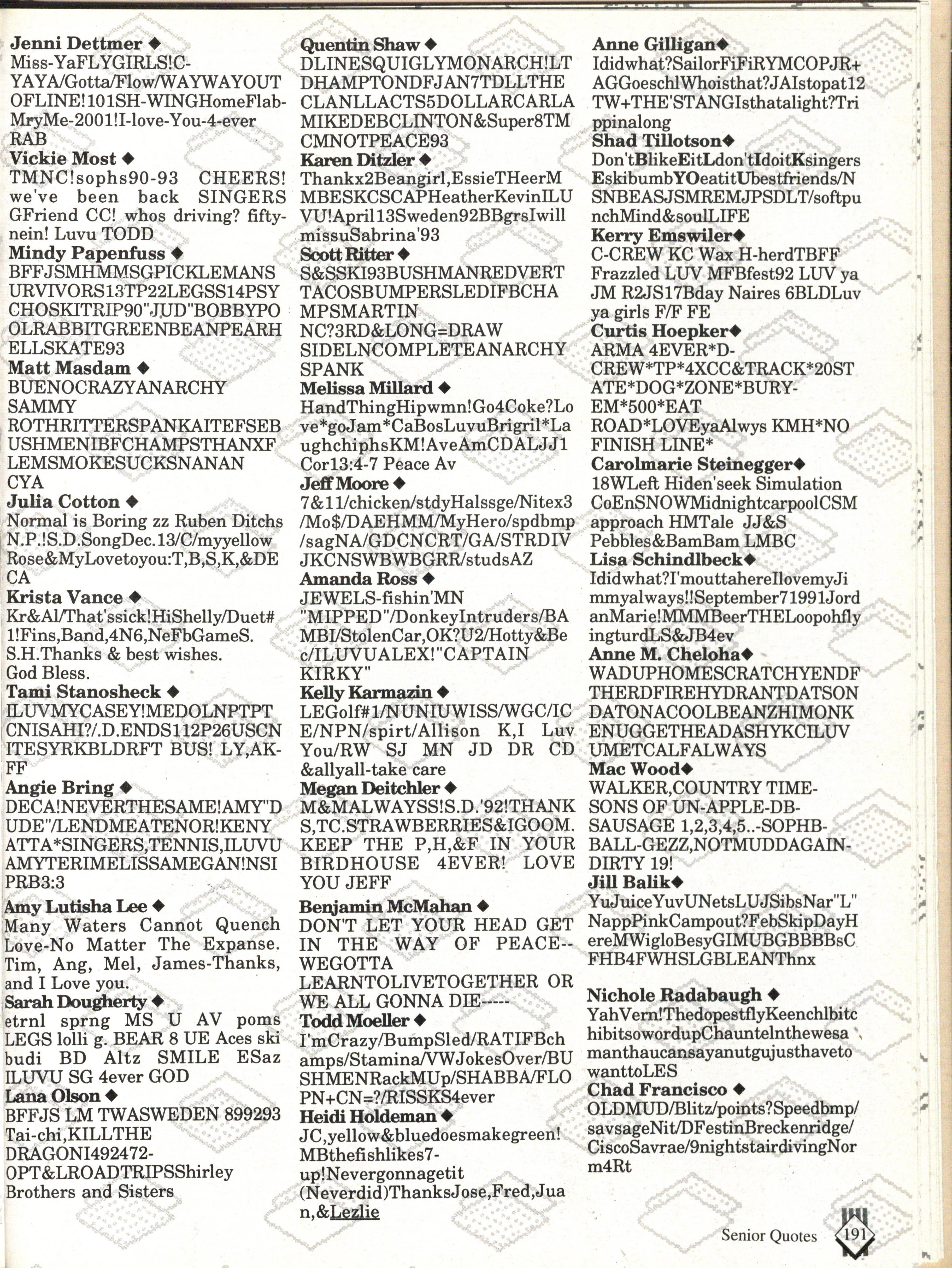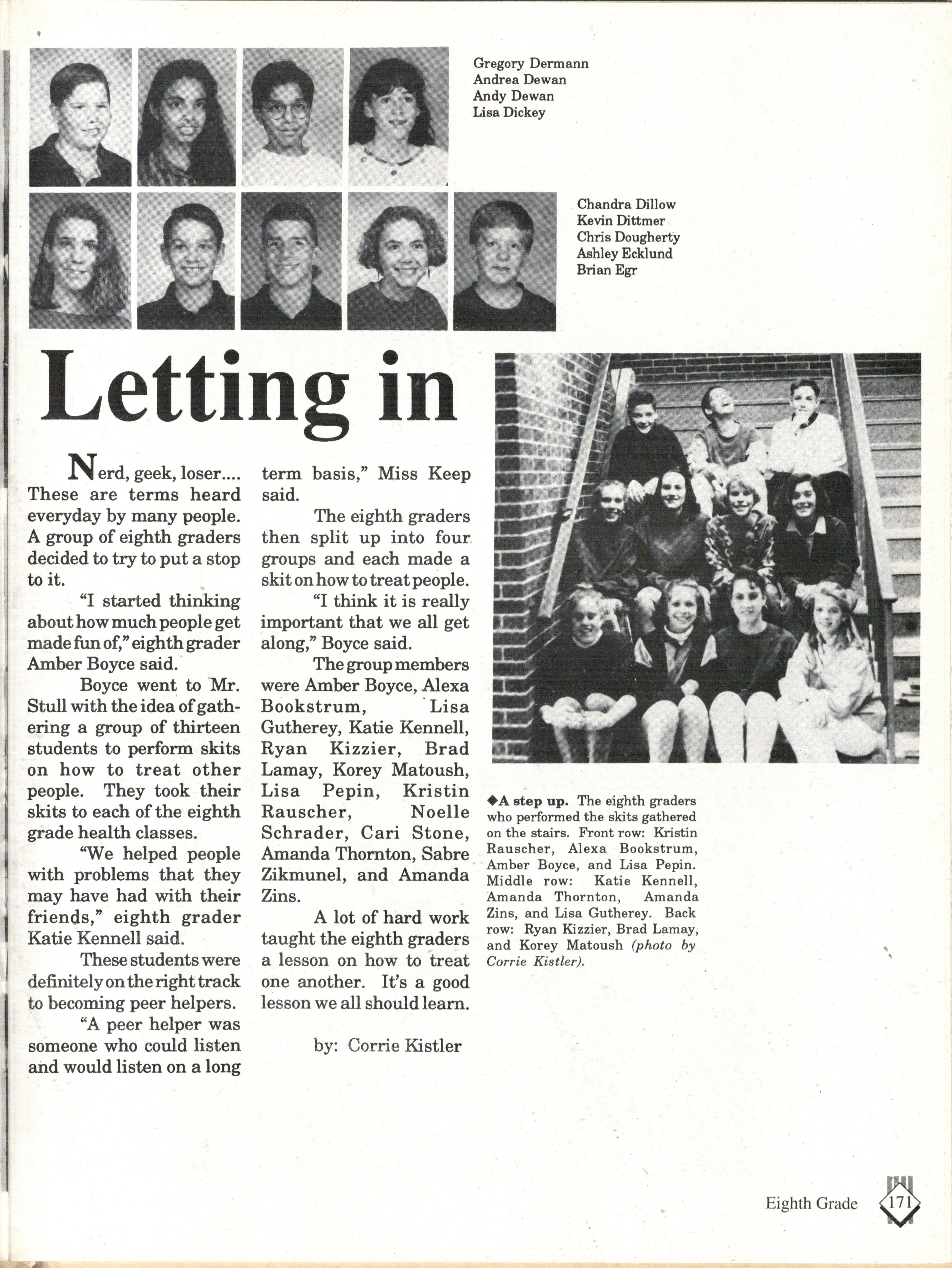Special thanks go to Mike Diffenderfer, our Walsworth representative, Mrs. Boslau for taking the time, effort, and patience to work with us in our advisor's absence, and to our advisor Mrs. Jane Holt for her support and enthusiasm.