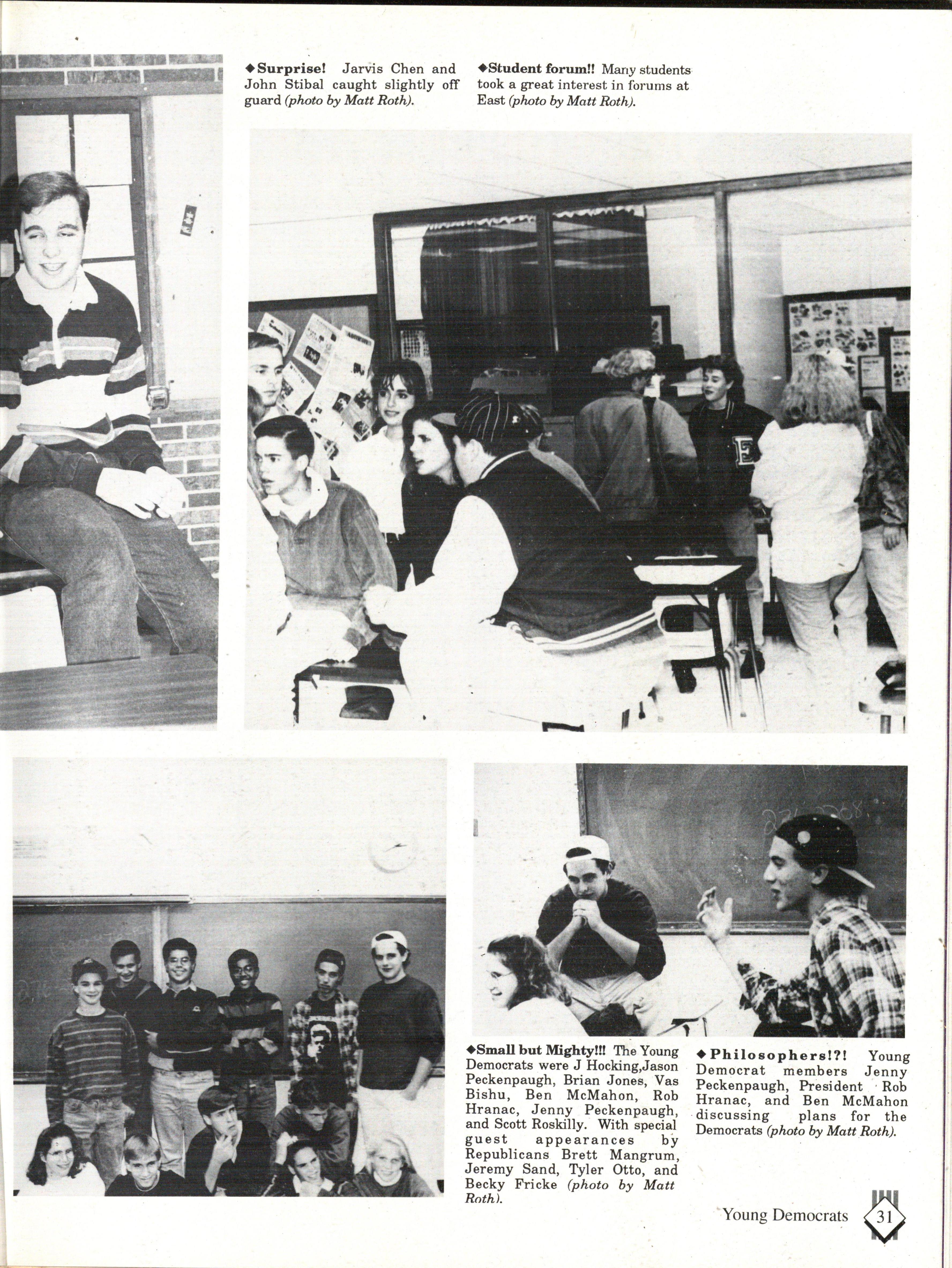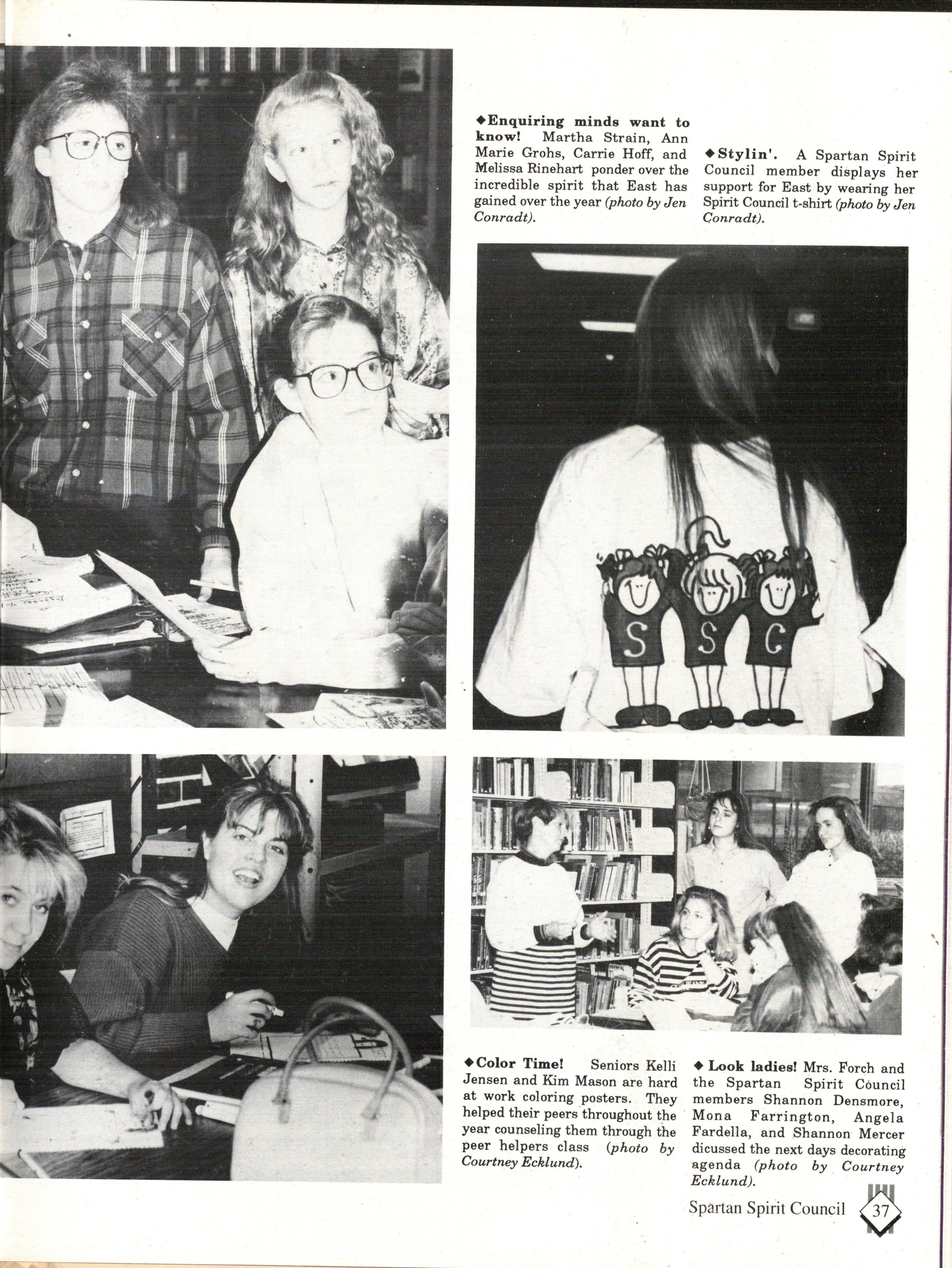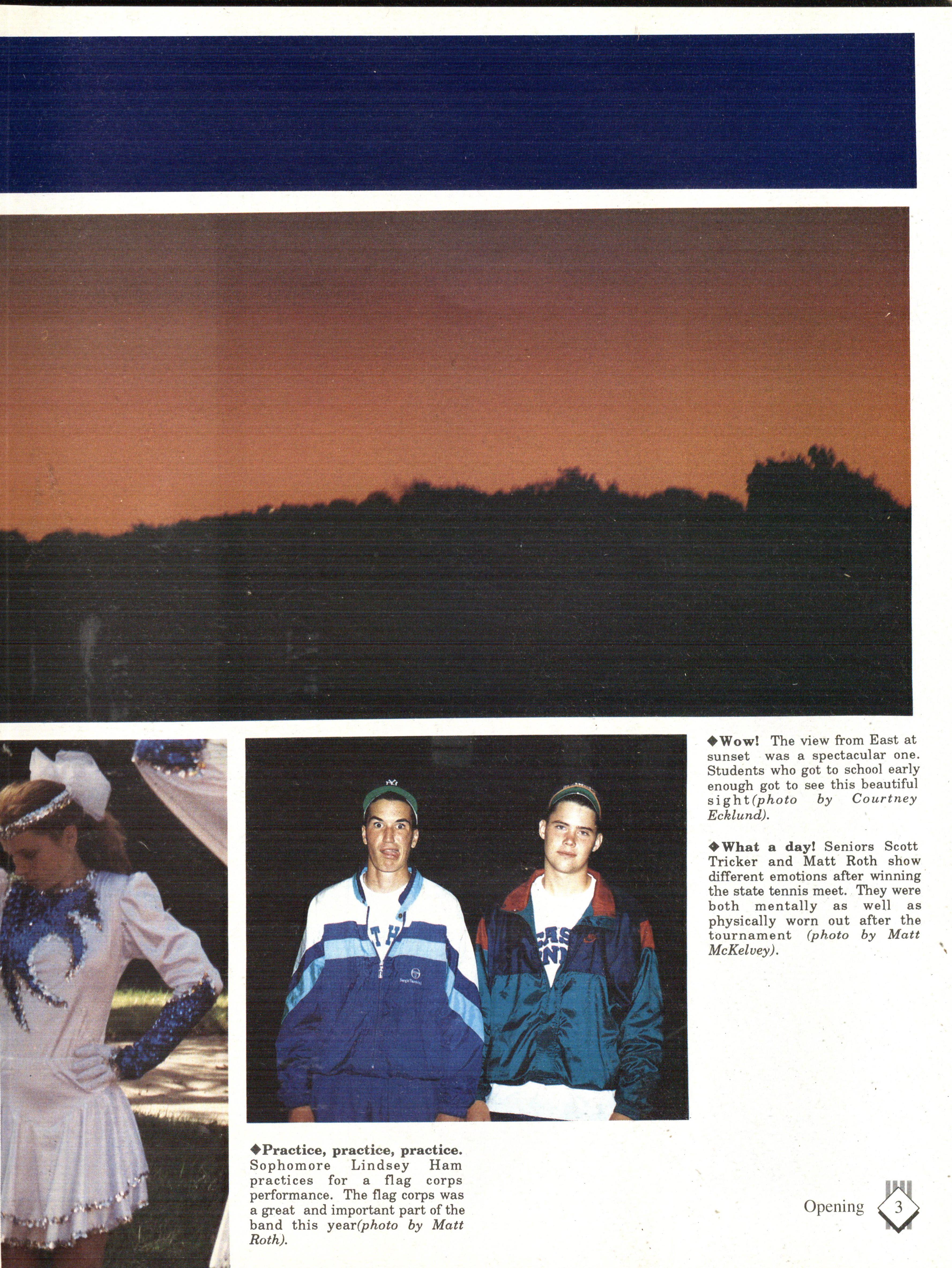 Although the appearence of East contributed to our color, the mixture of attitudes and personalities was what really made East colorful. Some have said that East is sheltered from the real world, but the students who walked East's halls on a daily basis knew otherwise. During the course of a student's life at East, you are exposed to a wide variety of people, situations and activities.