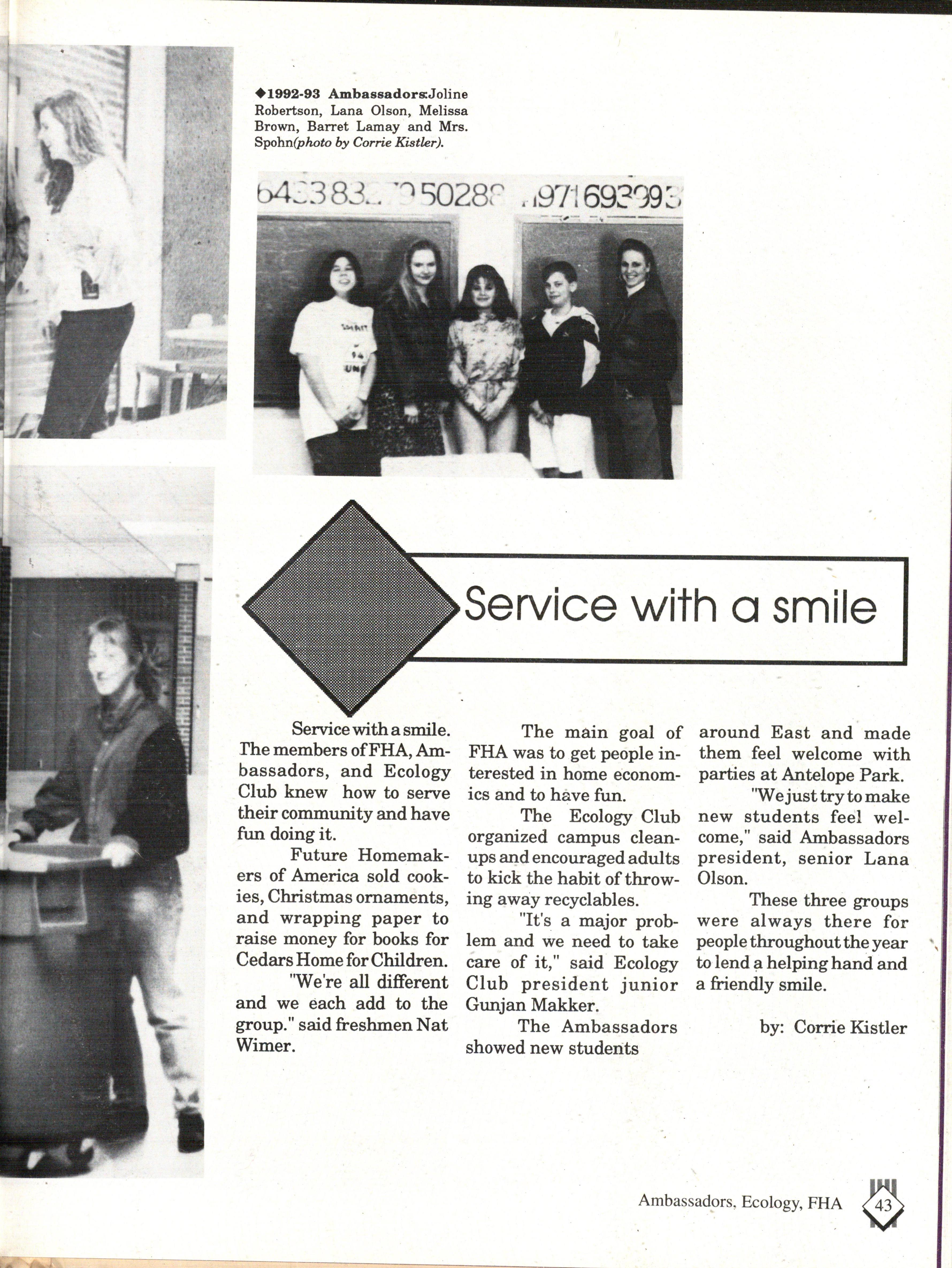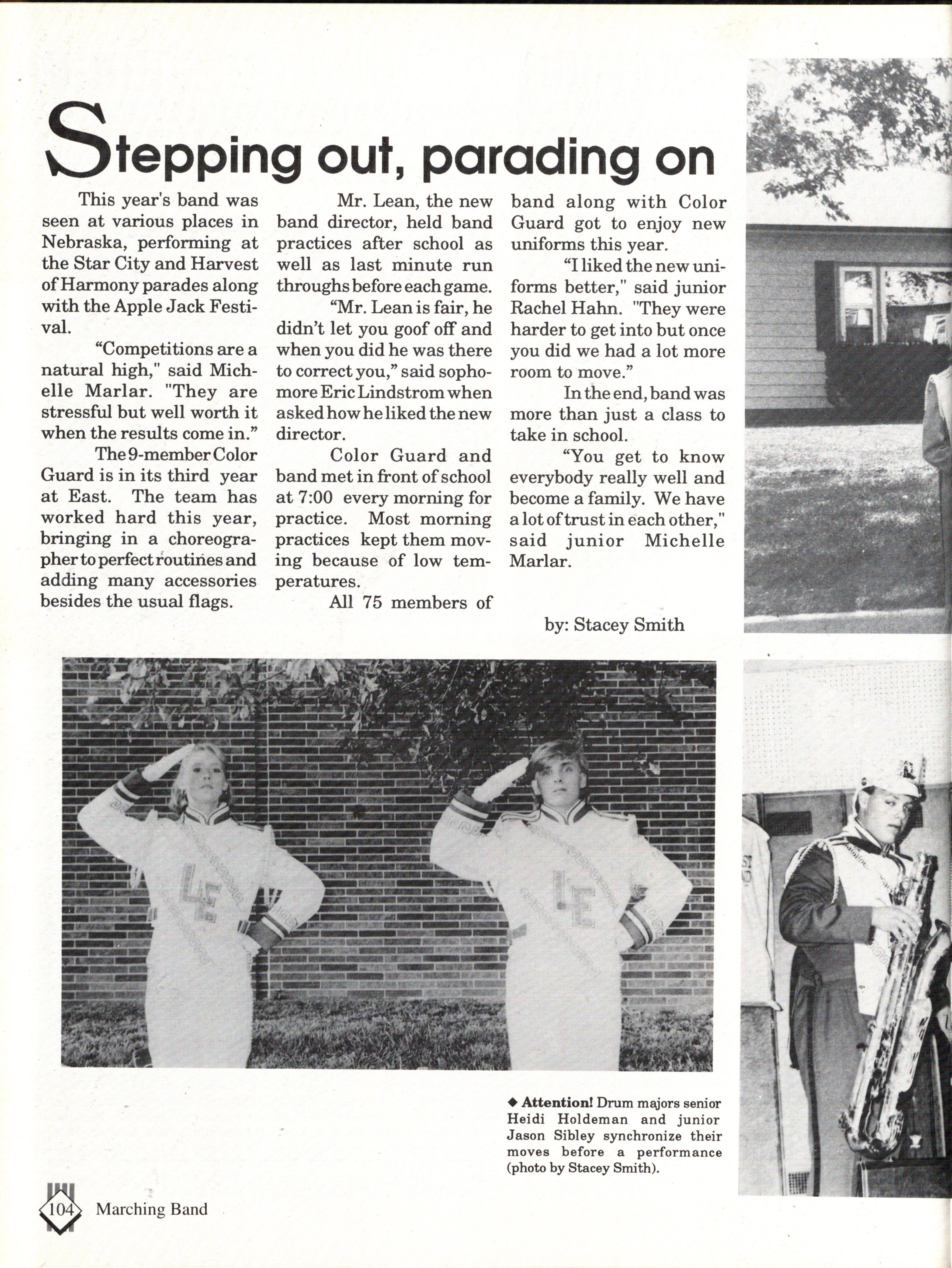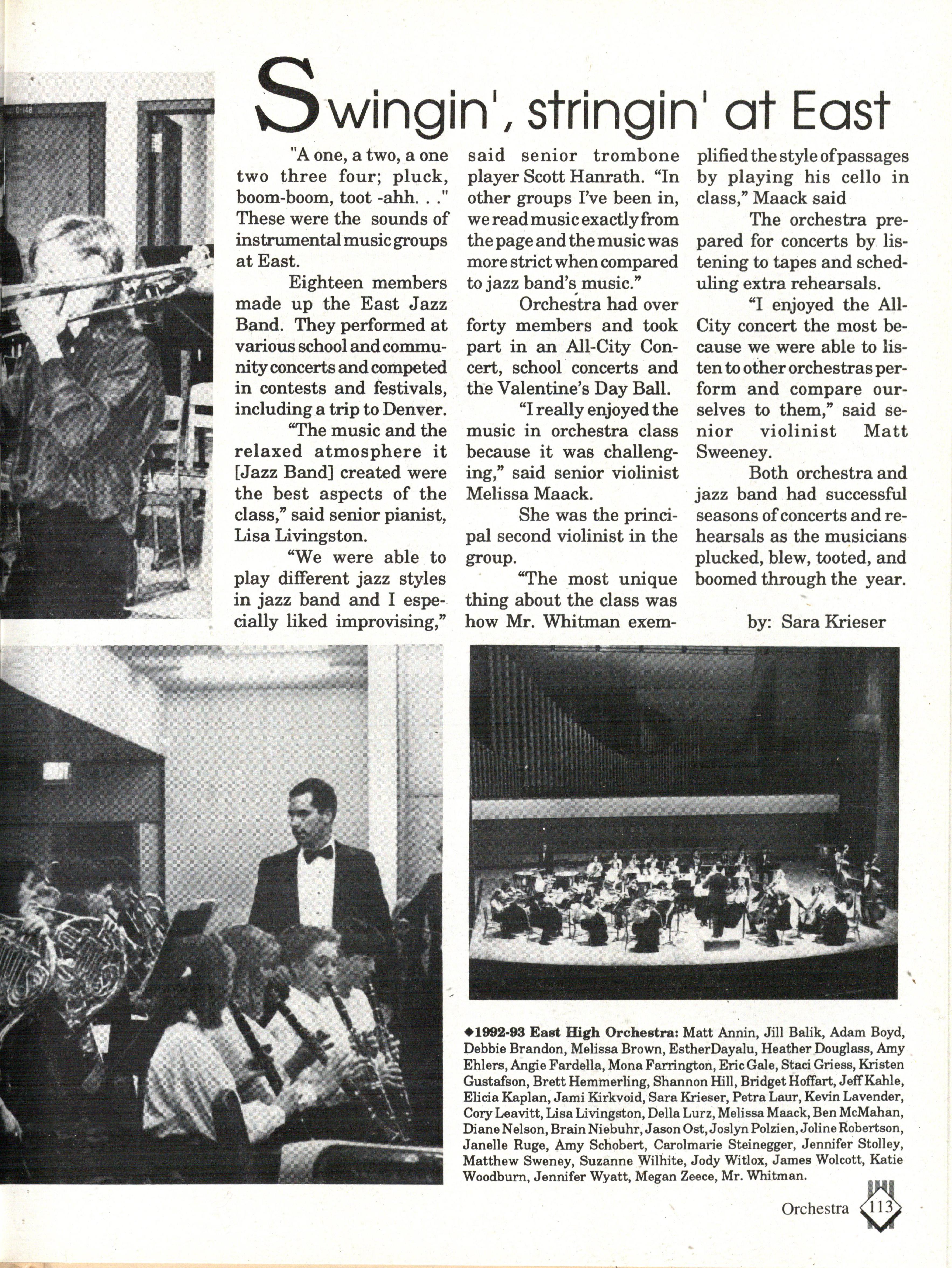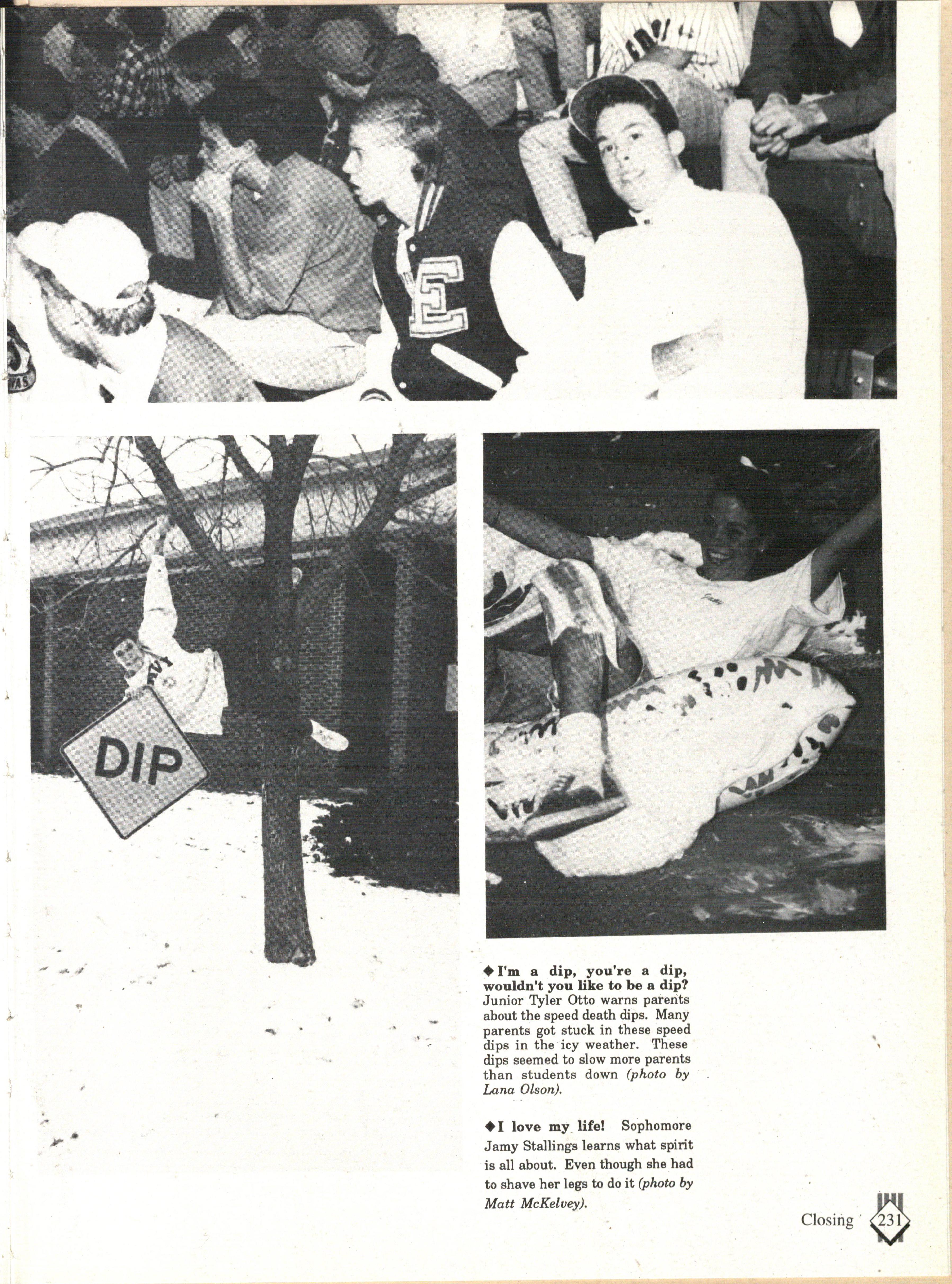 Although the appearence of East contributed to our color, the mixture of attitudes and personalities was what really made East colorful. Some have said that East is sheltered from the real world, but the students who walked East's halls on a daily basis knew otherwise. During the course of a student's life at East, you are exposed to a wide variety of people, situations and activities.