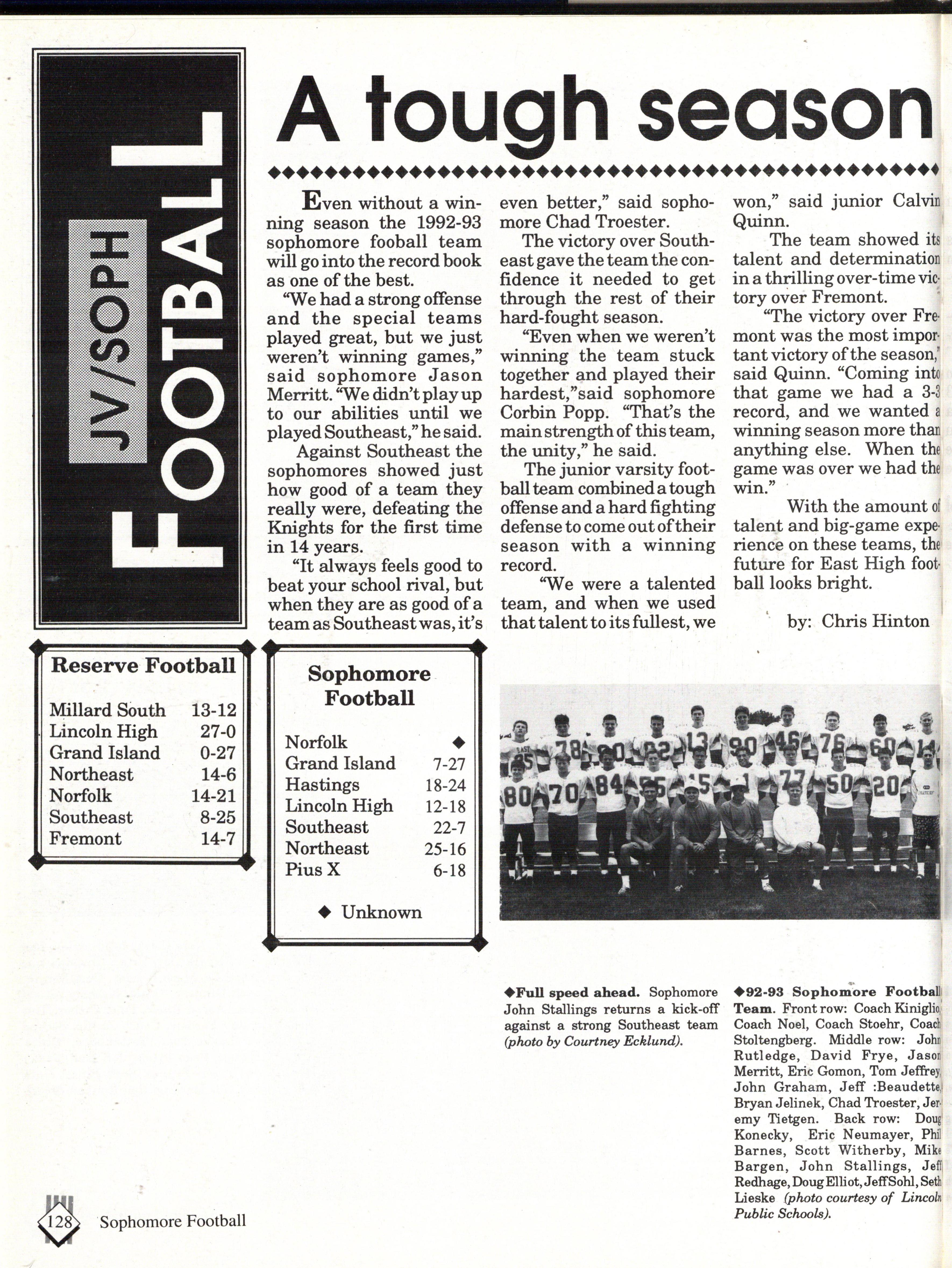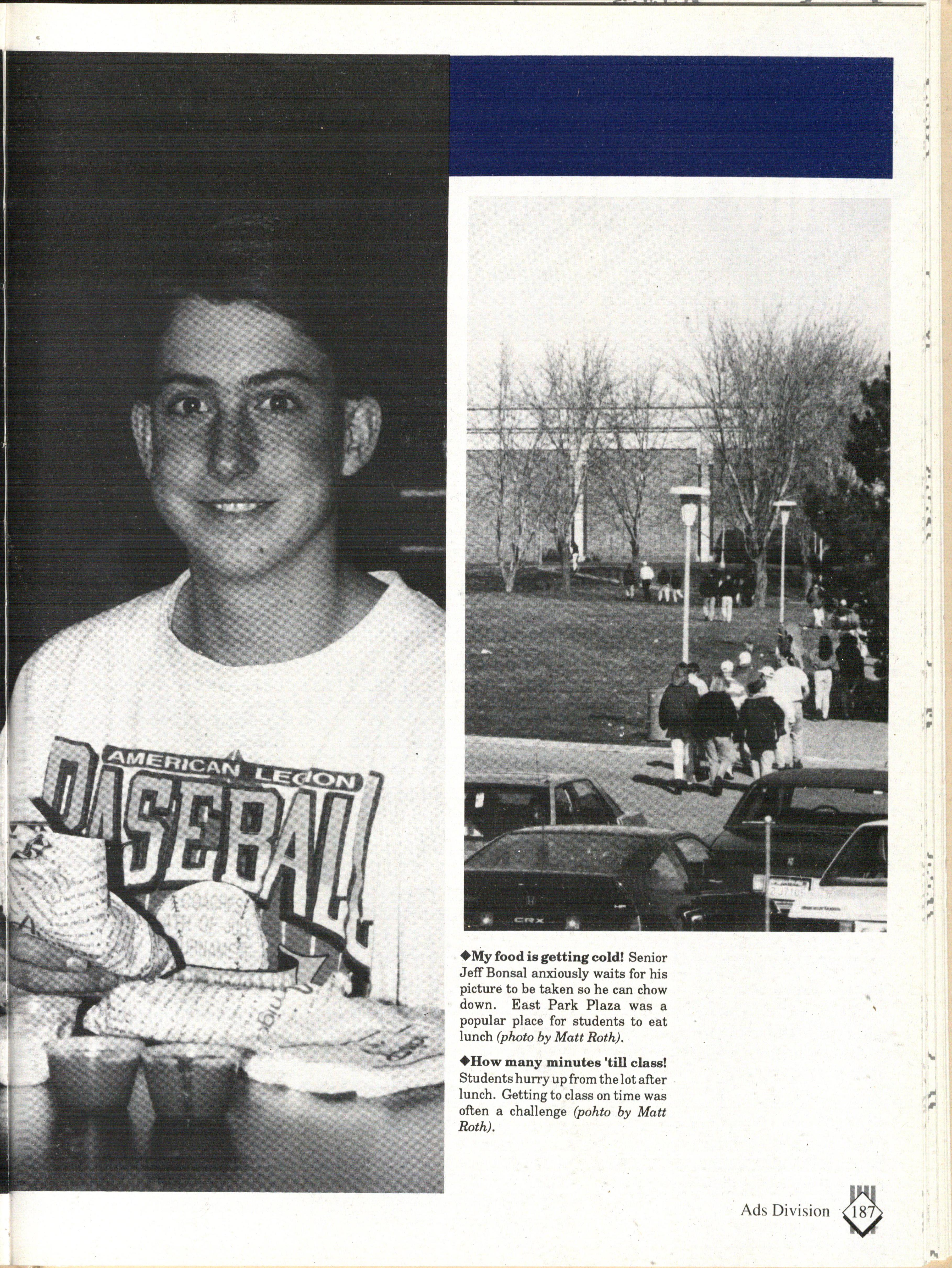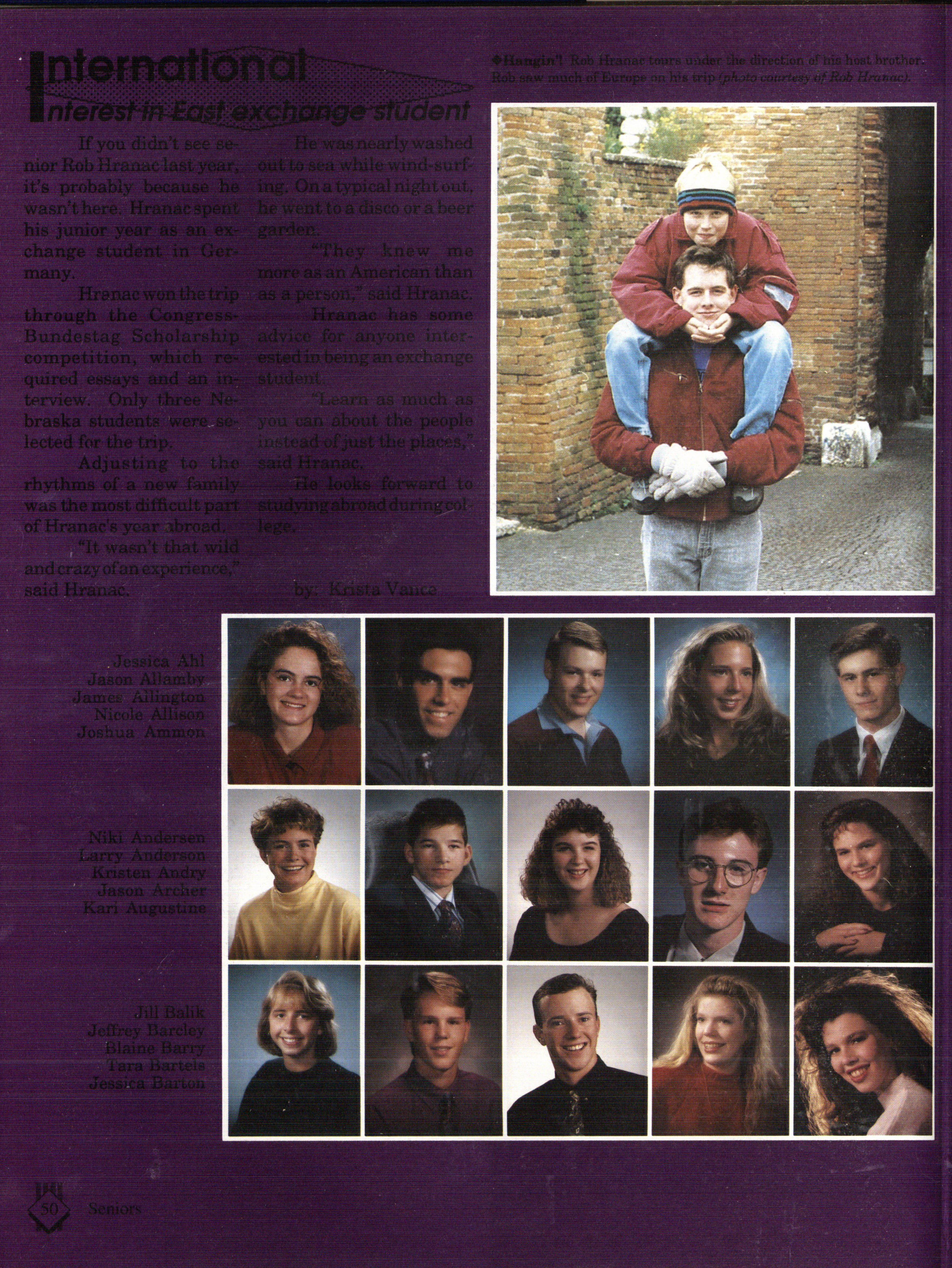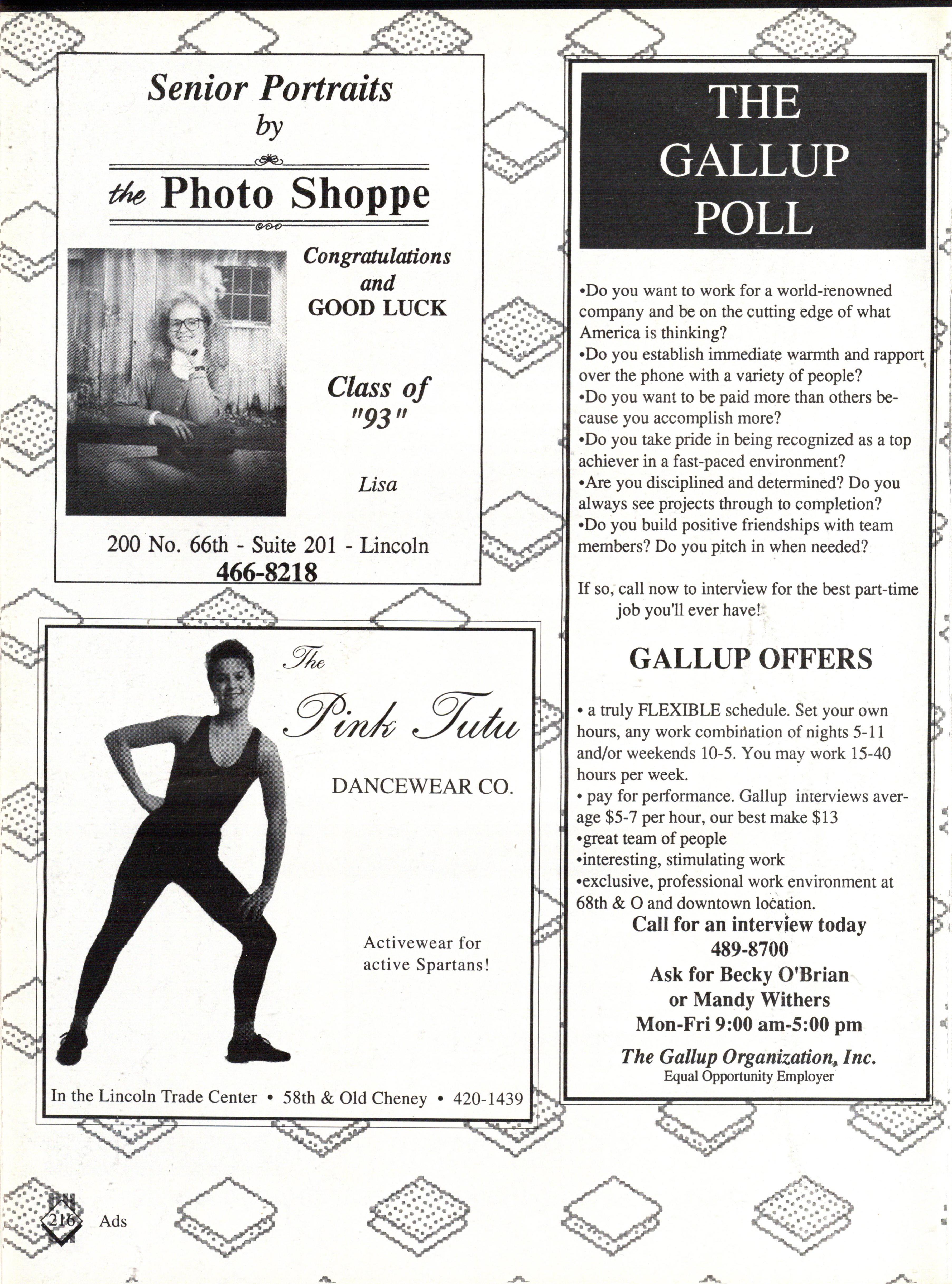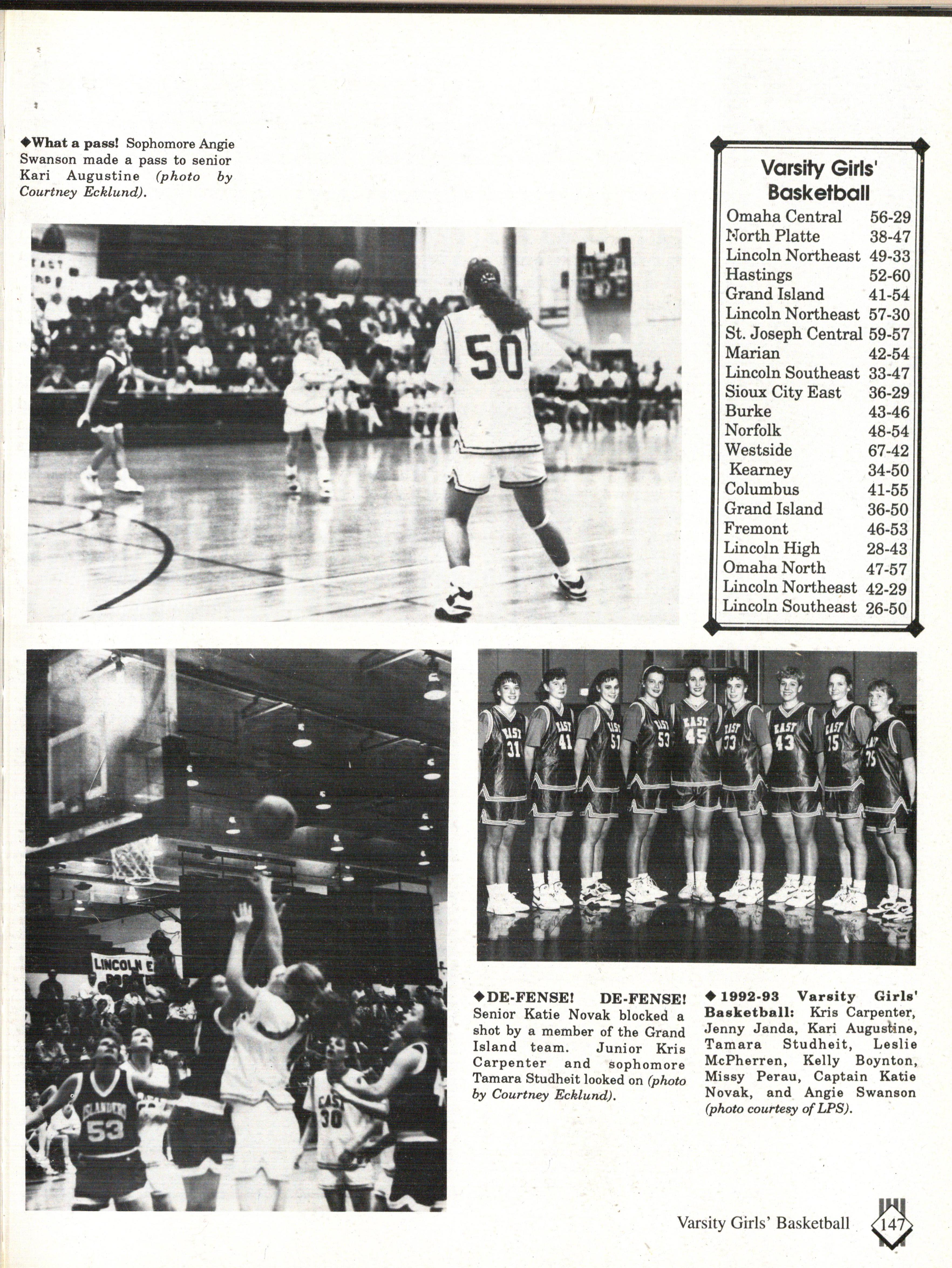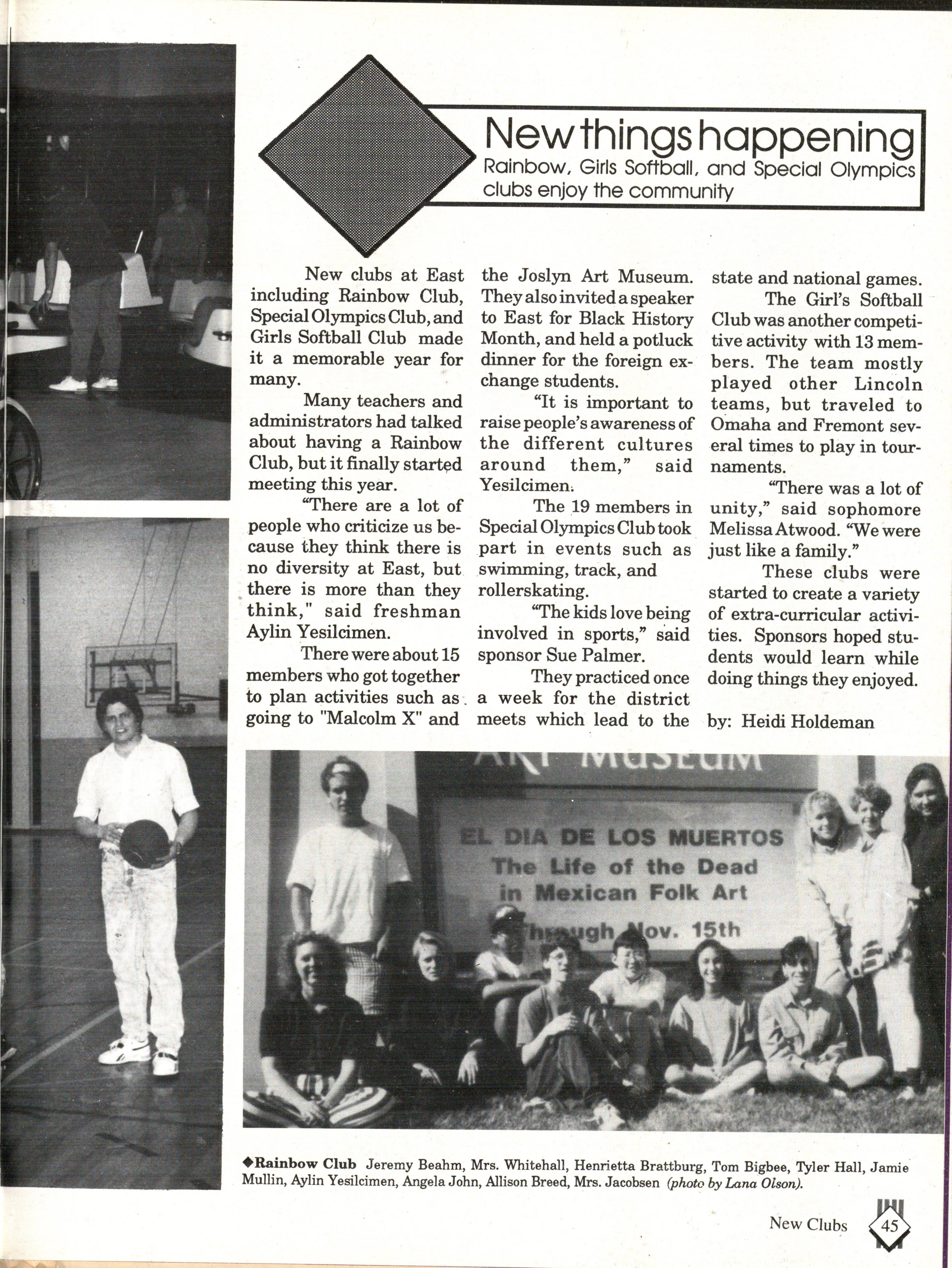 From the Inside Out was the theme of the 1992-1993 Lincoln East Epic. It was chosen because the staffwanted other schools to see what East was really like instead of just relying on the rumors. The 26th Epic was published by Walsworth Publishing 1 Company . of Marceline, Missouri who printed 1400 copies. The 234-page book included a spring supplement and a plastic cover. The package sold for $25 in the fall and $30 in the spring.