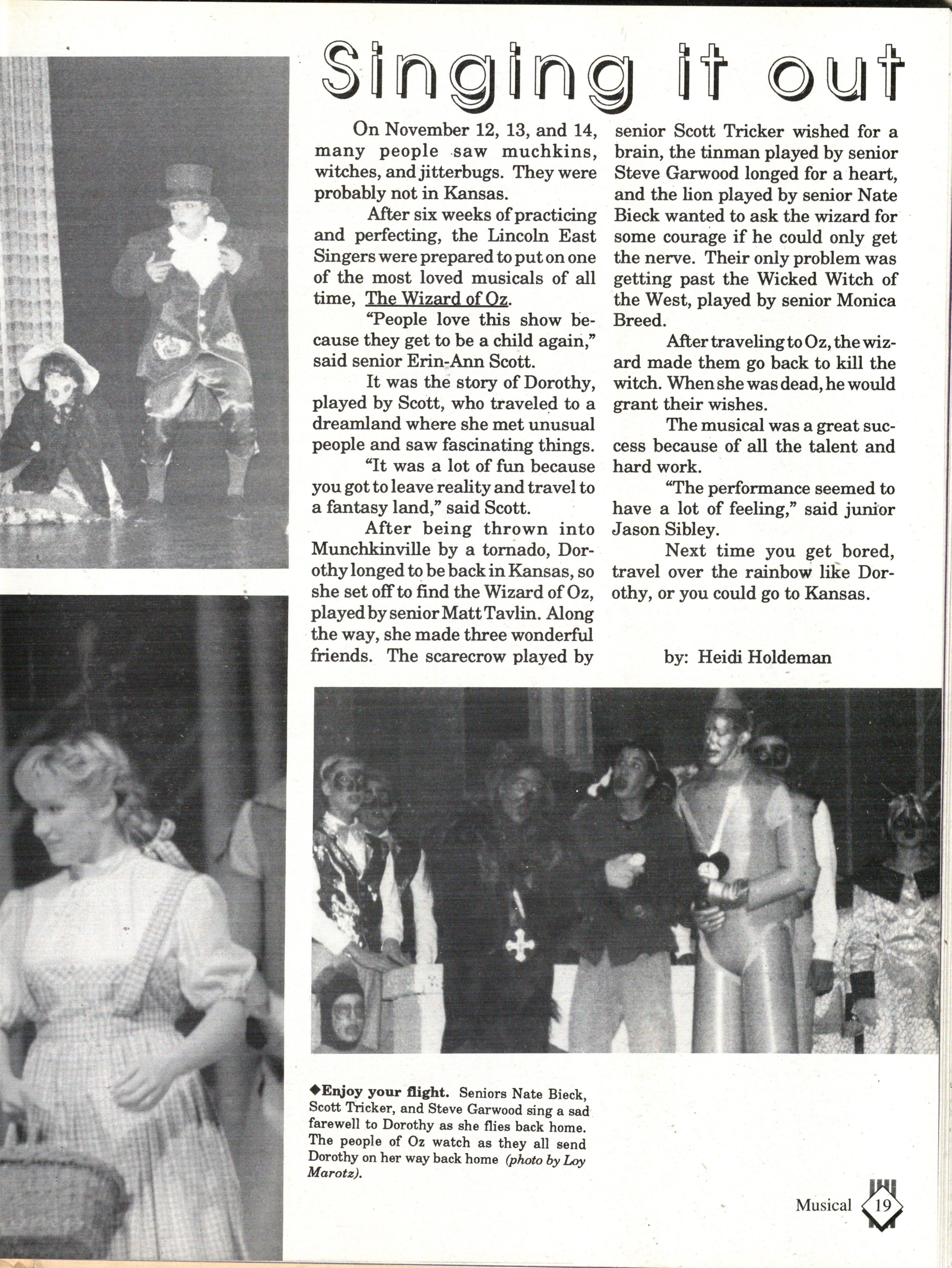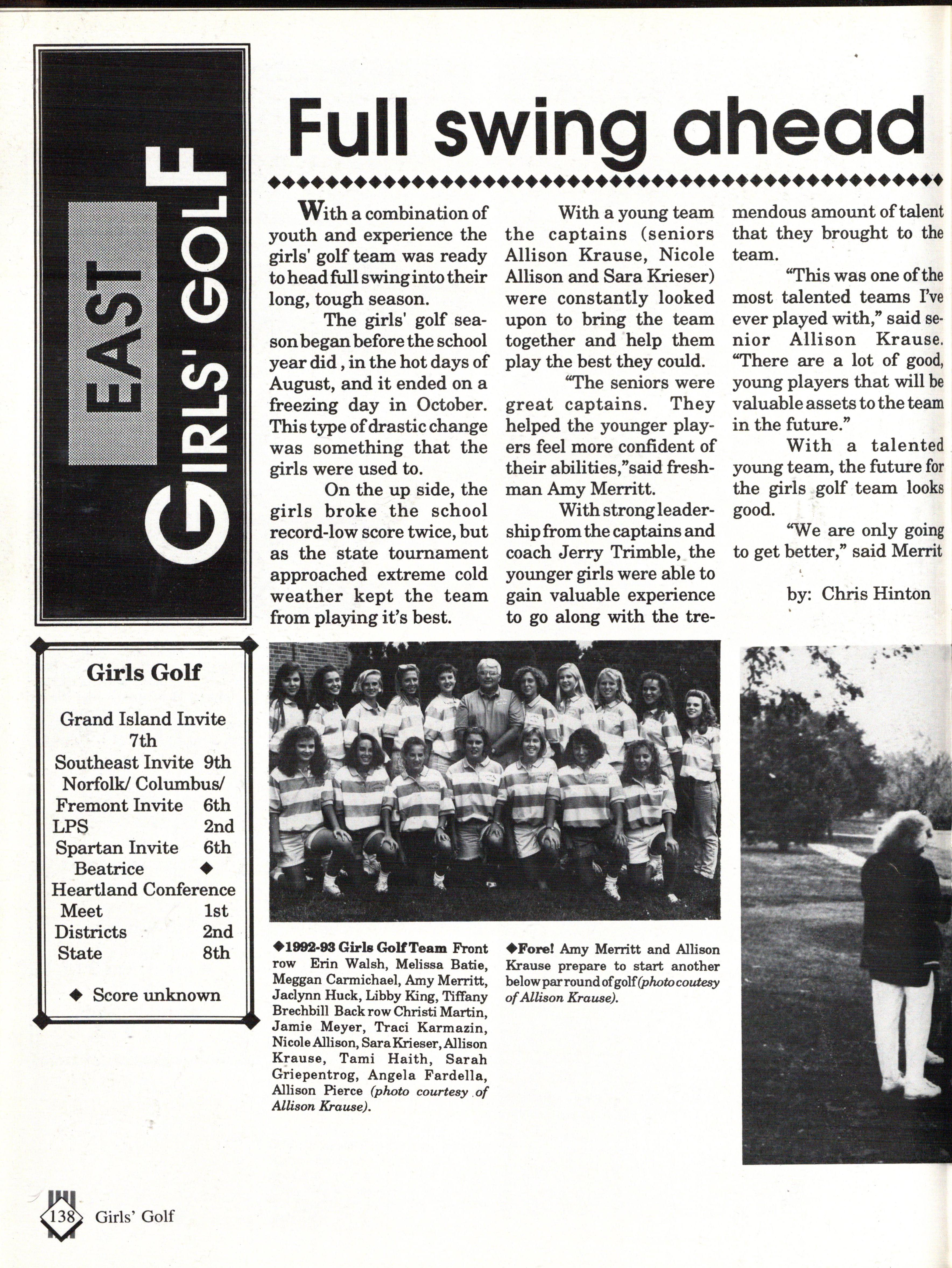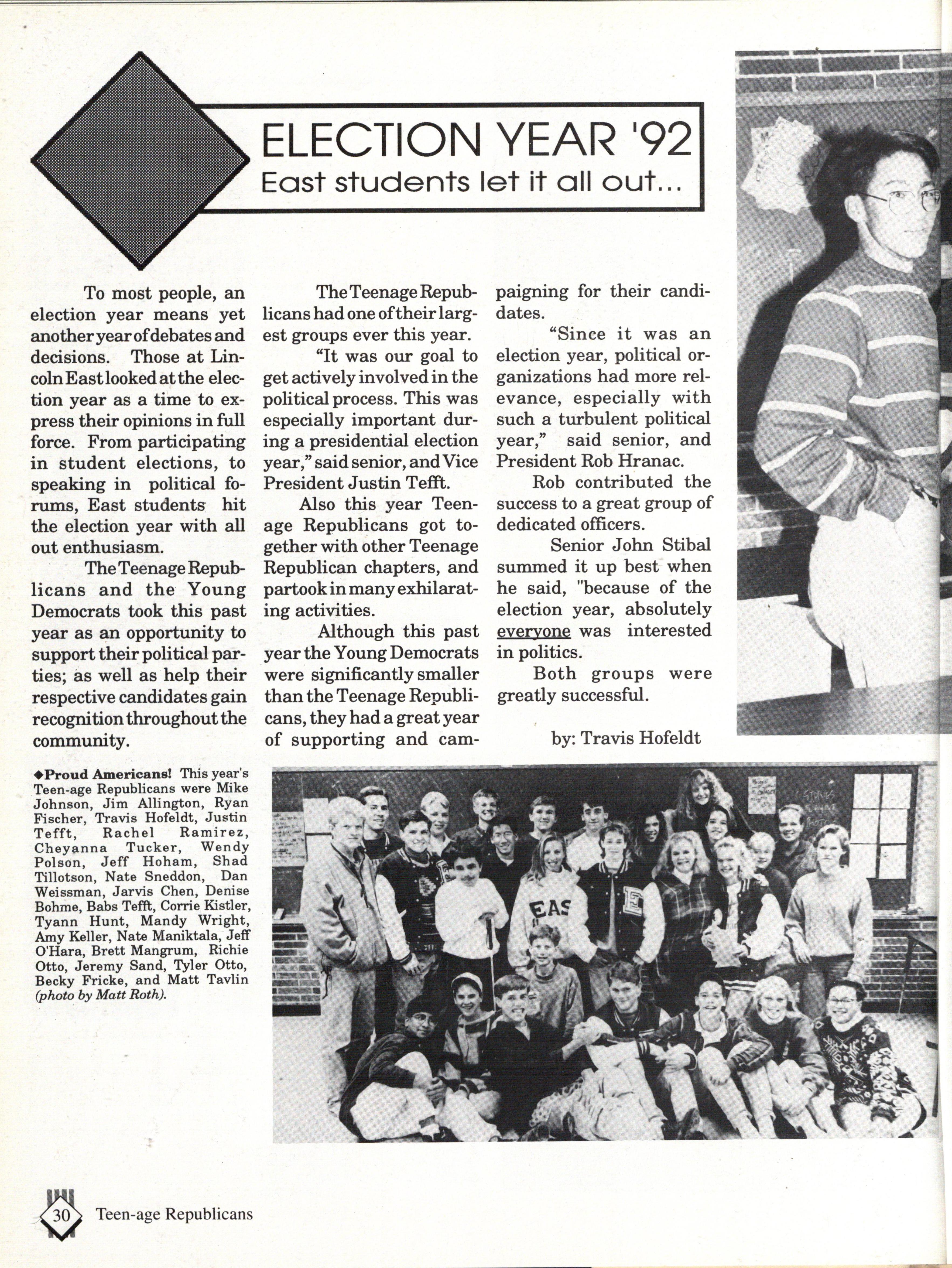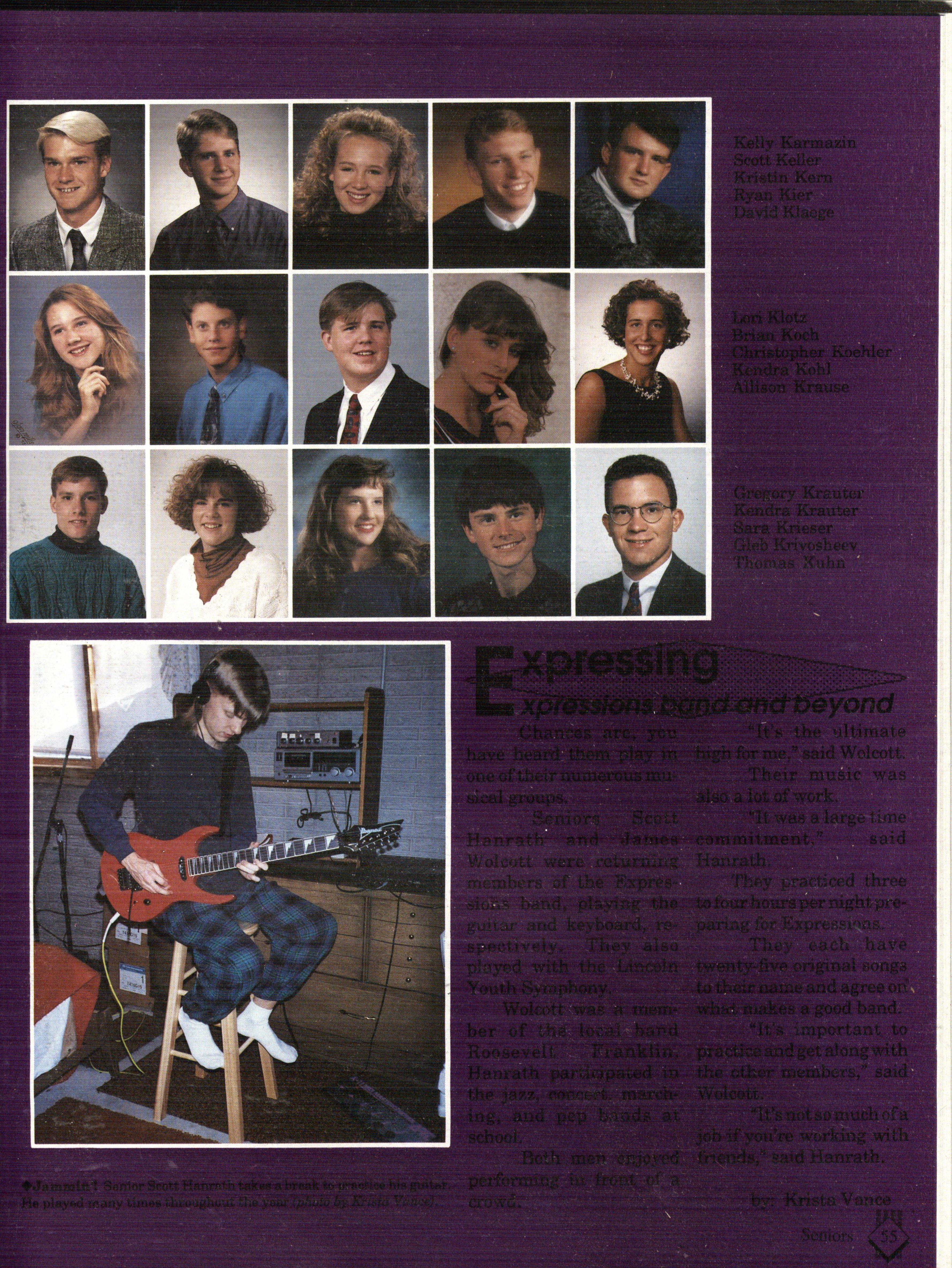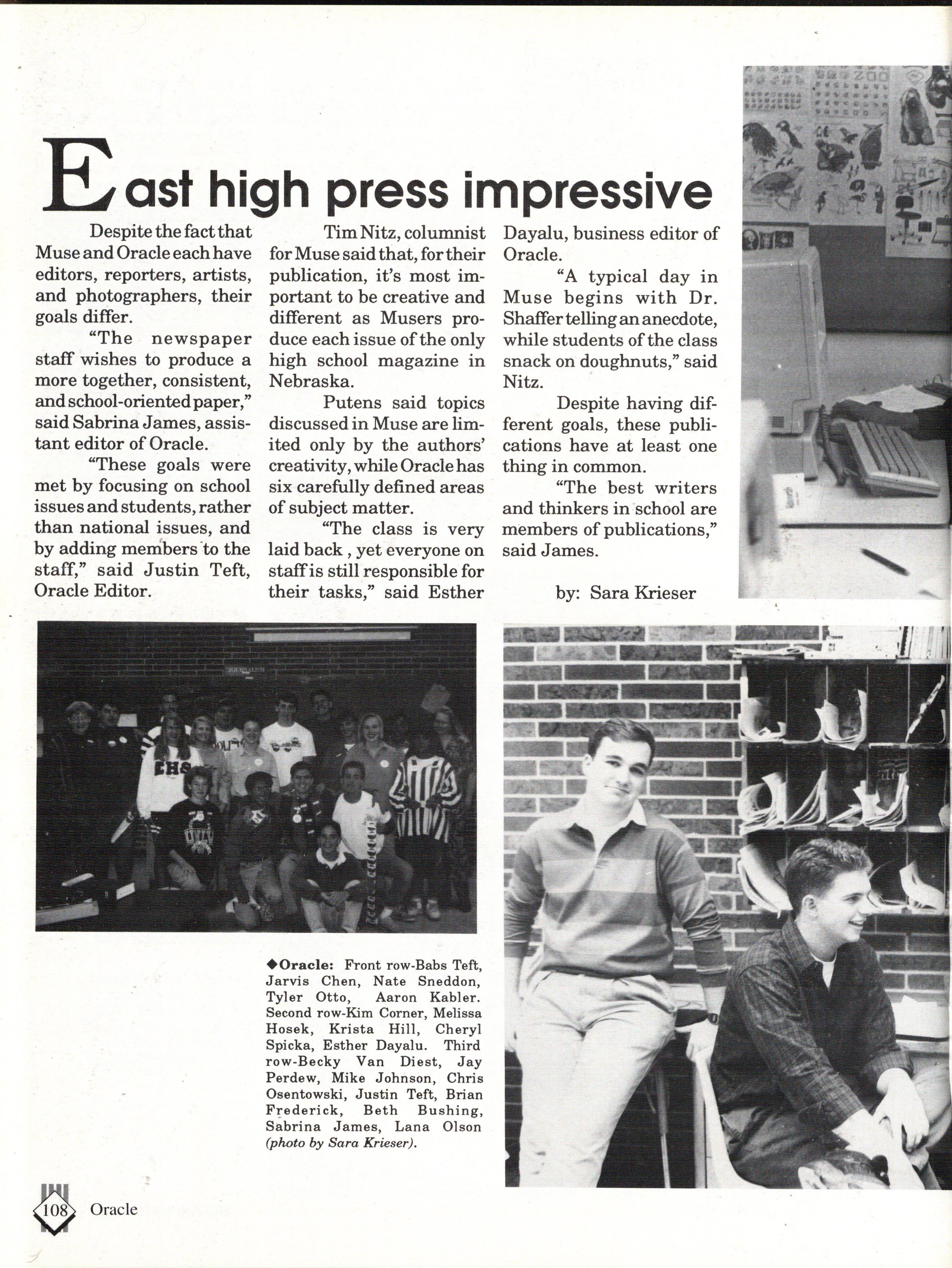 From the Inside Out was the theme of the 1992-1993 Lincoln East Epic. It was chosen because the staffwanted other schools to see what East was really like instead of just relying on the rumors. The 26th Epic was published by Walsworth Publishing 1 Company . of Marceline, Missouri who printed 1400 copies. The 234-page book included a spring supplement and a plastic cover. The package sold for $25 in the fall and $30 in the spring.