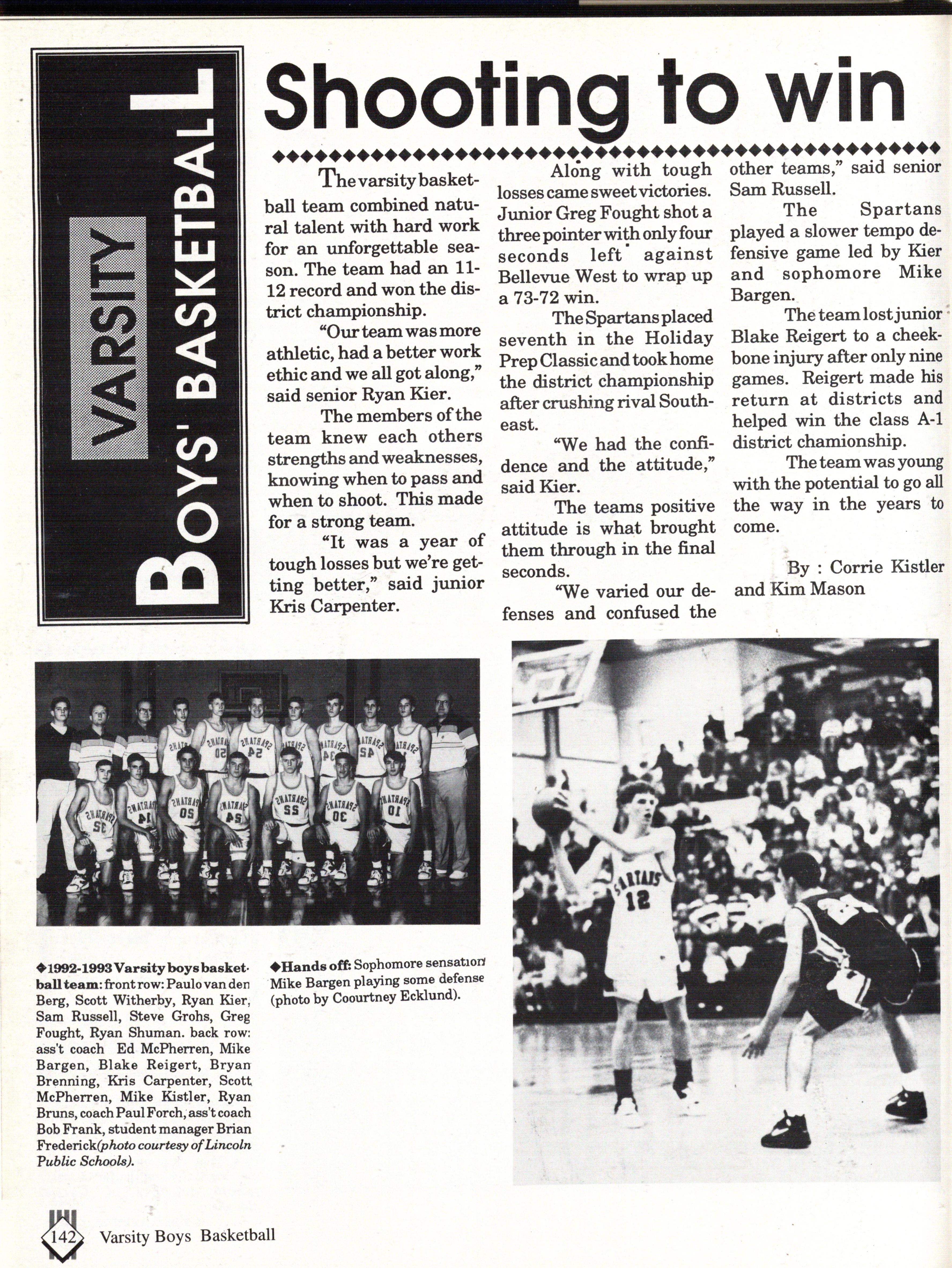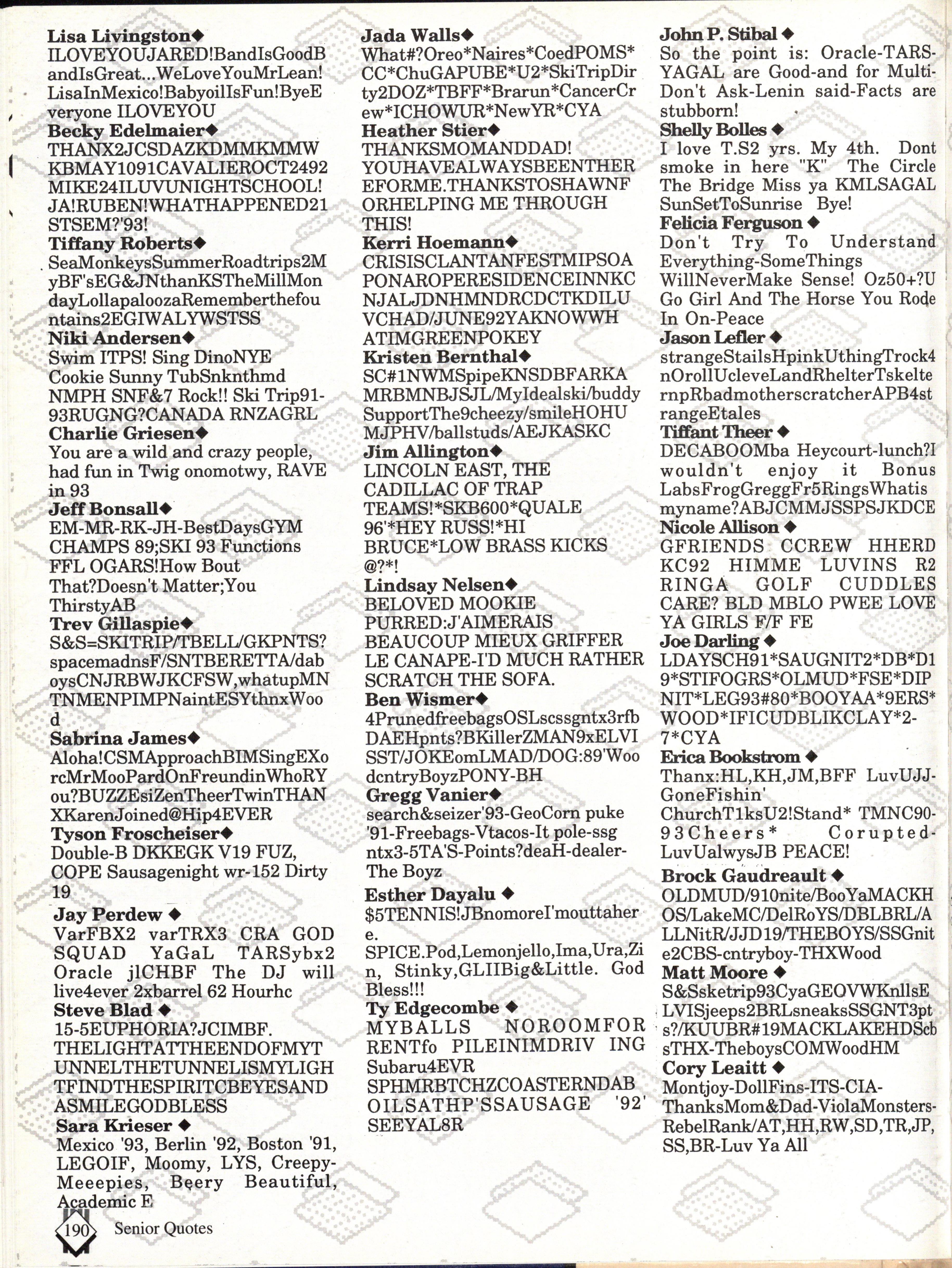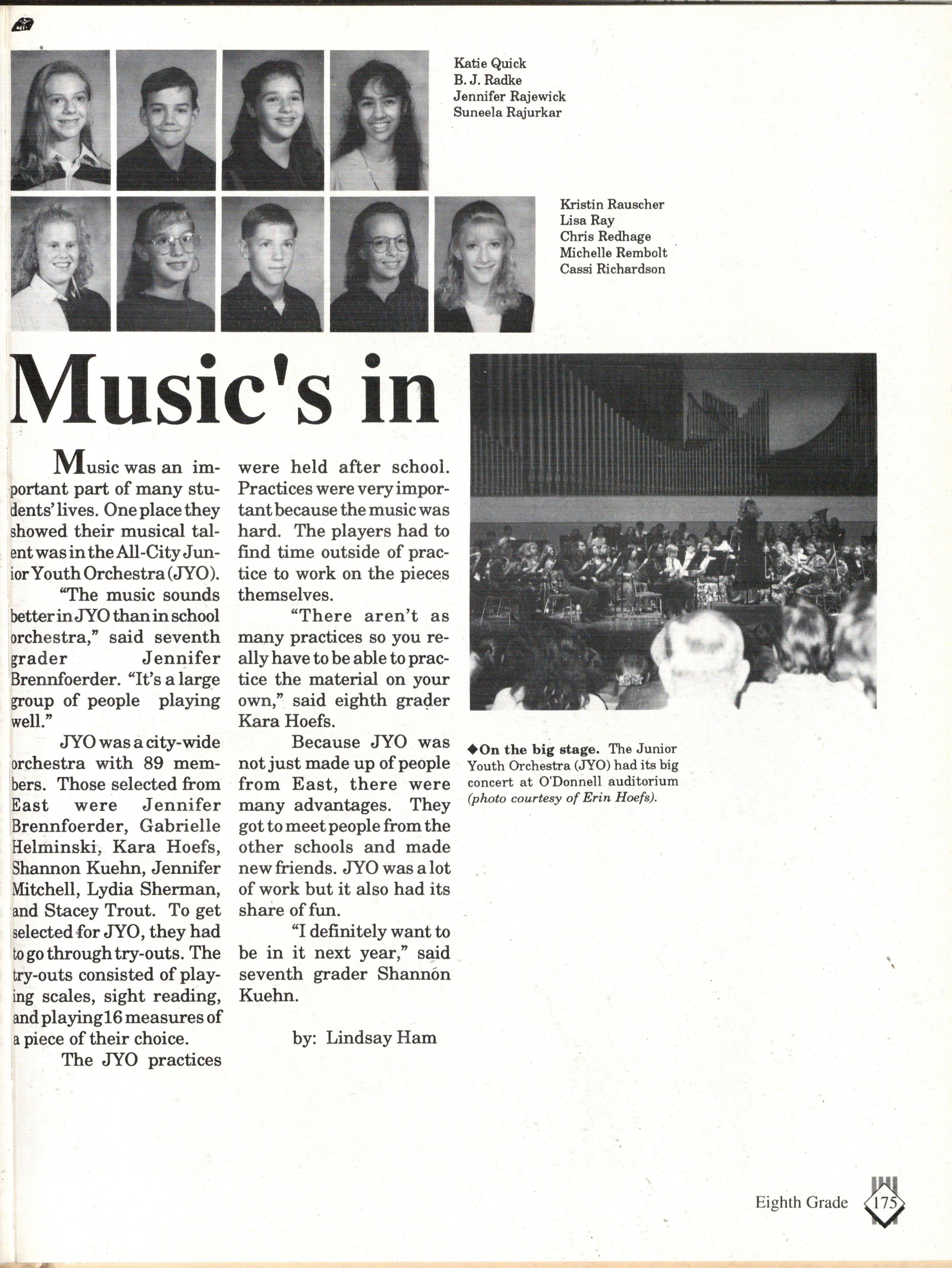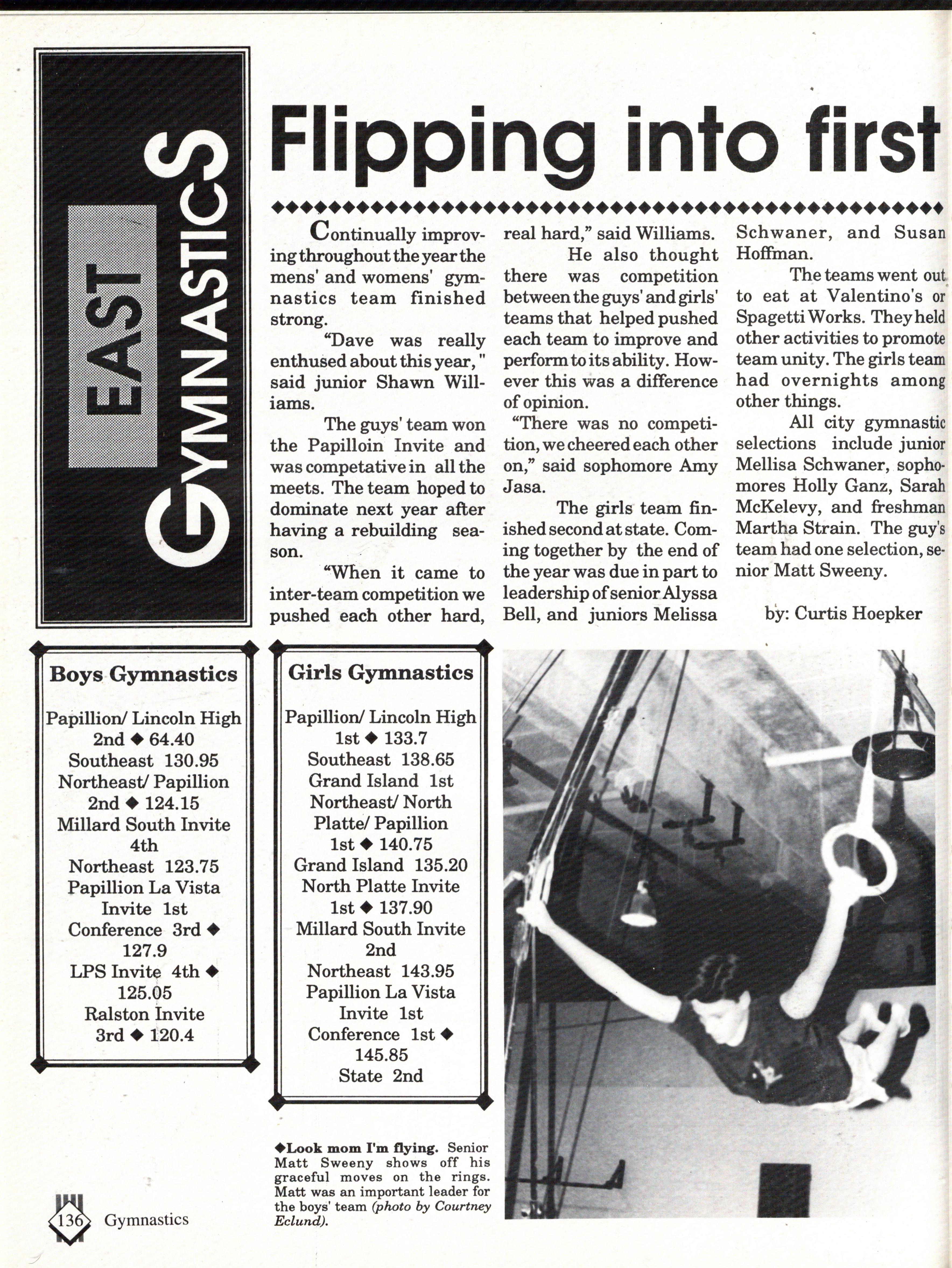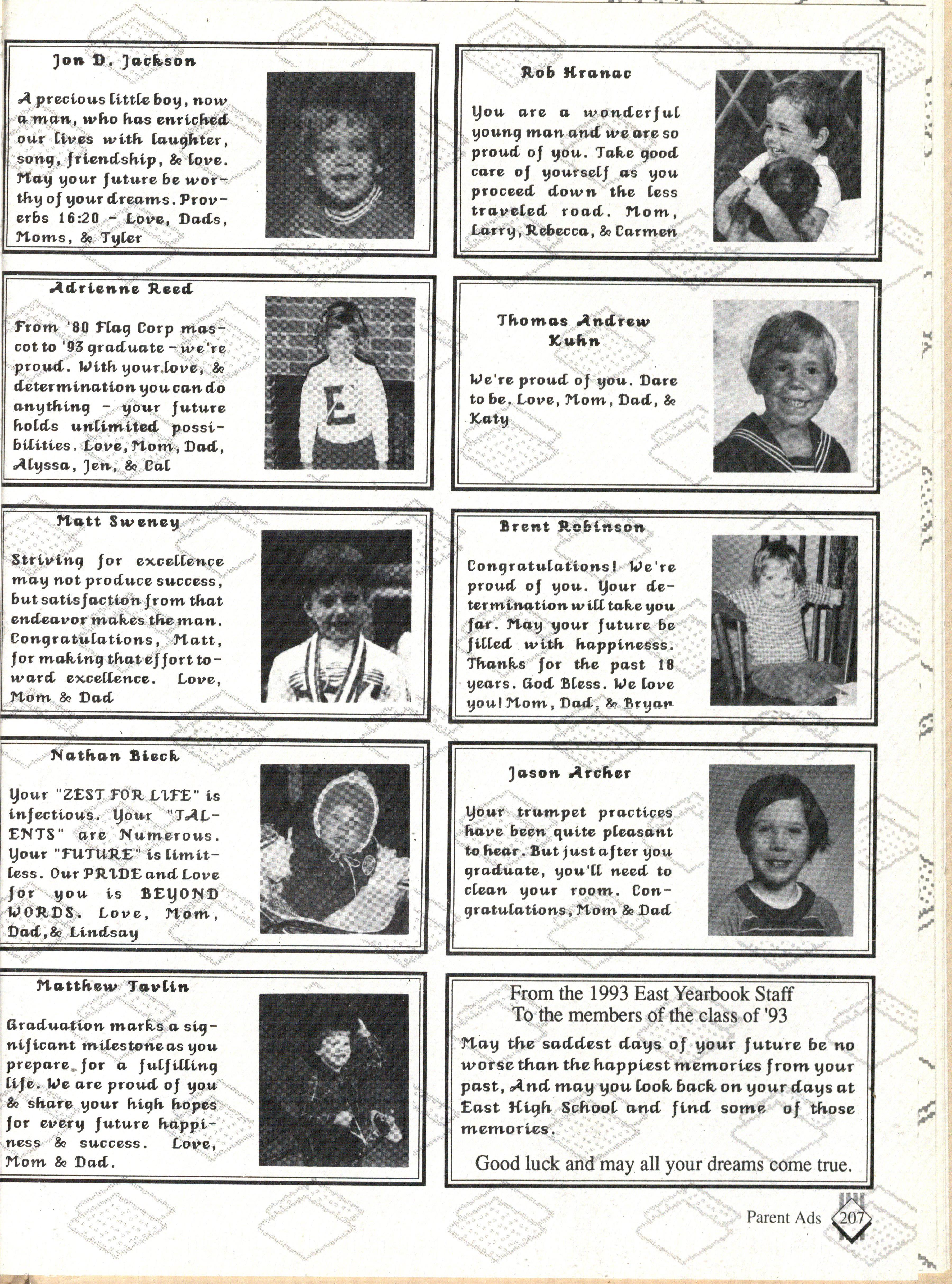 From the Inside Out was the theme of the 1992-1993 Lincoln East Epic. It was chosen because the staffwanted other schools to see what East was really like instead of just relying on the rumors. The 26th Epic was published by Walsworth Publishing 1 Company . of Marceline, Missouri who printed 1400 copies. The 234-page book included a spring supplement and a plastic cover. The package sold for $25 in the fall and $30 in the spring.