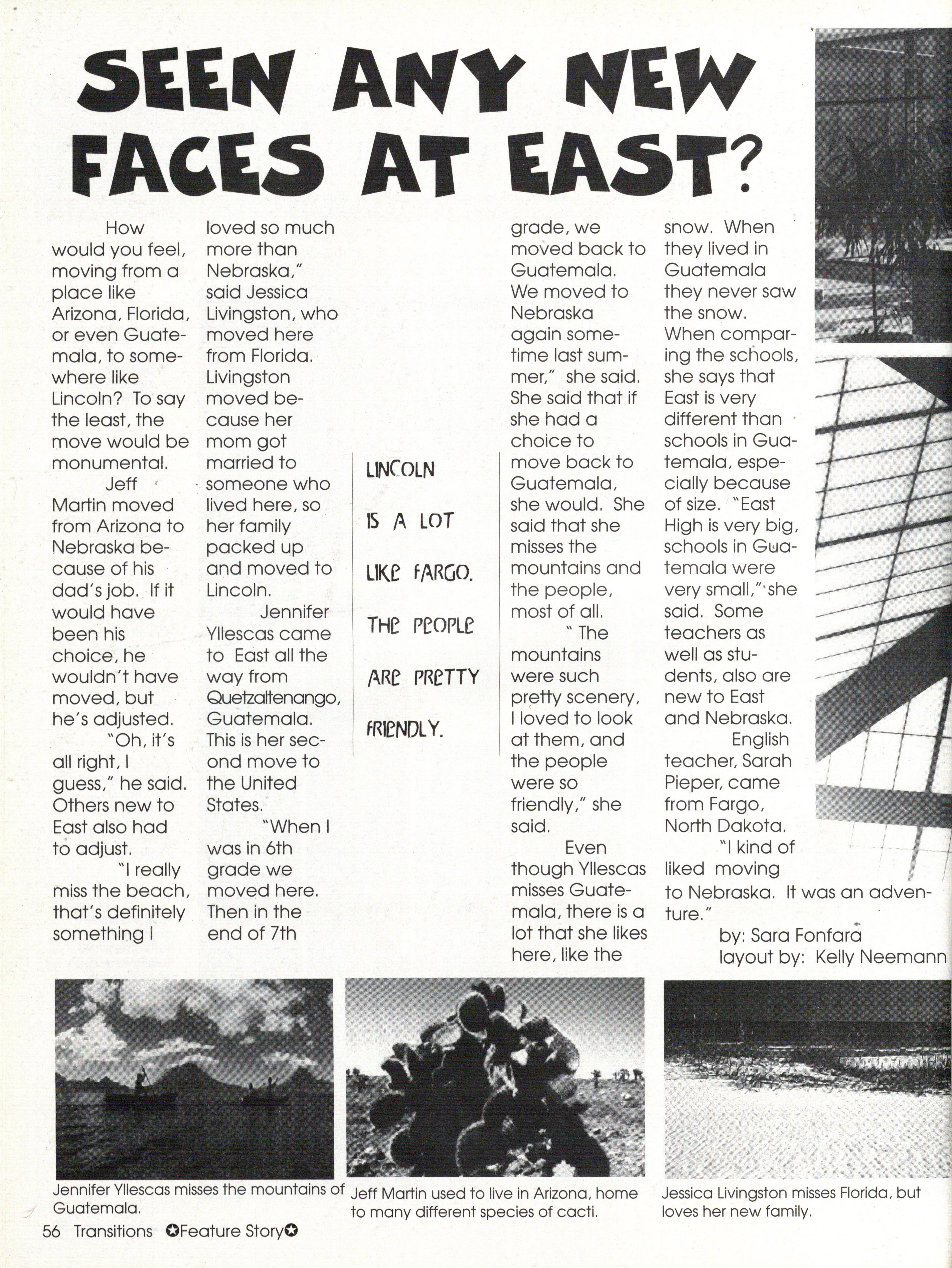 ur focus for the 1997 Epic was to create a publication entirely new and different from past editions. We searched for new designs, ideas, and different layout techniques in order to achieve an entirely new look, reflecting the new image of Lincoln East. Editors Bridget Small and Katie Quick attended a one-week journalism camp which exposed them to these new ideas and the latest trends.