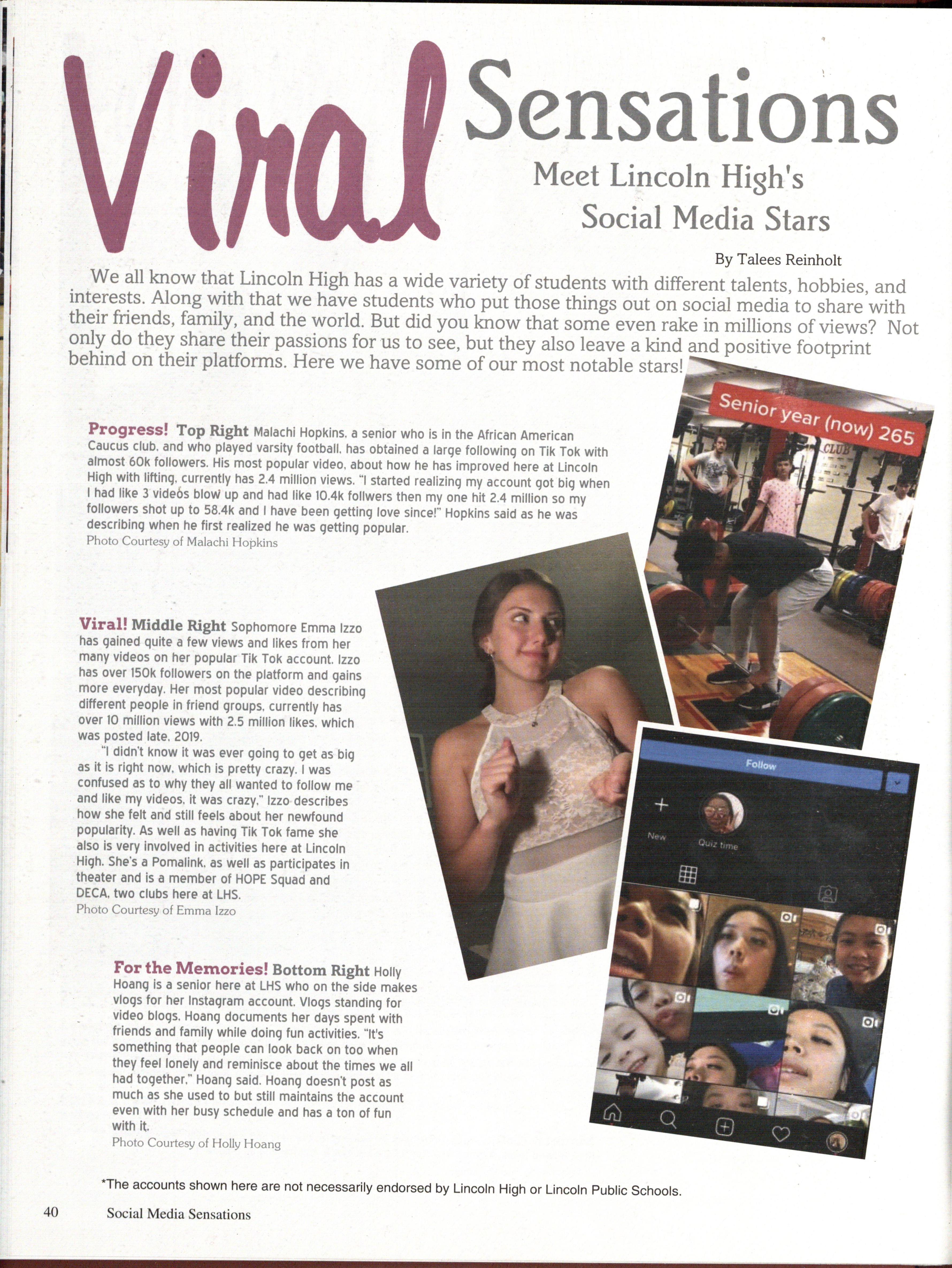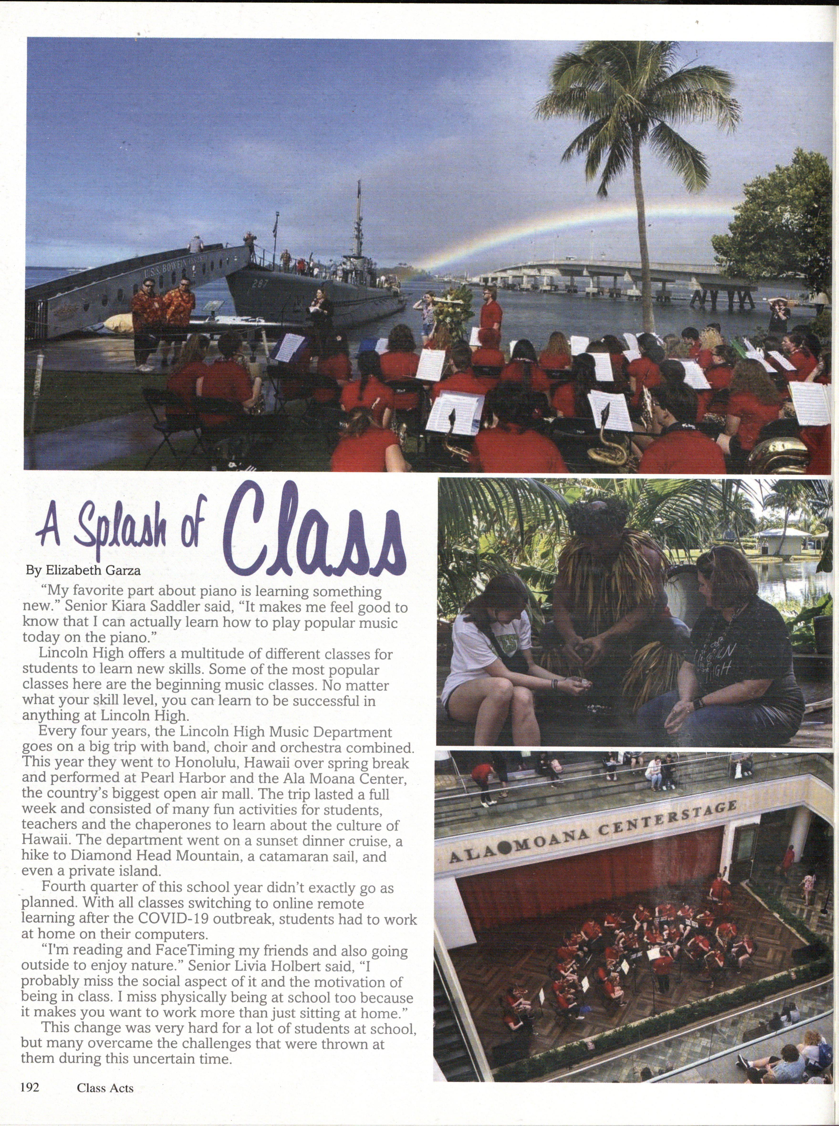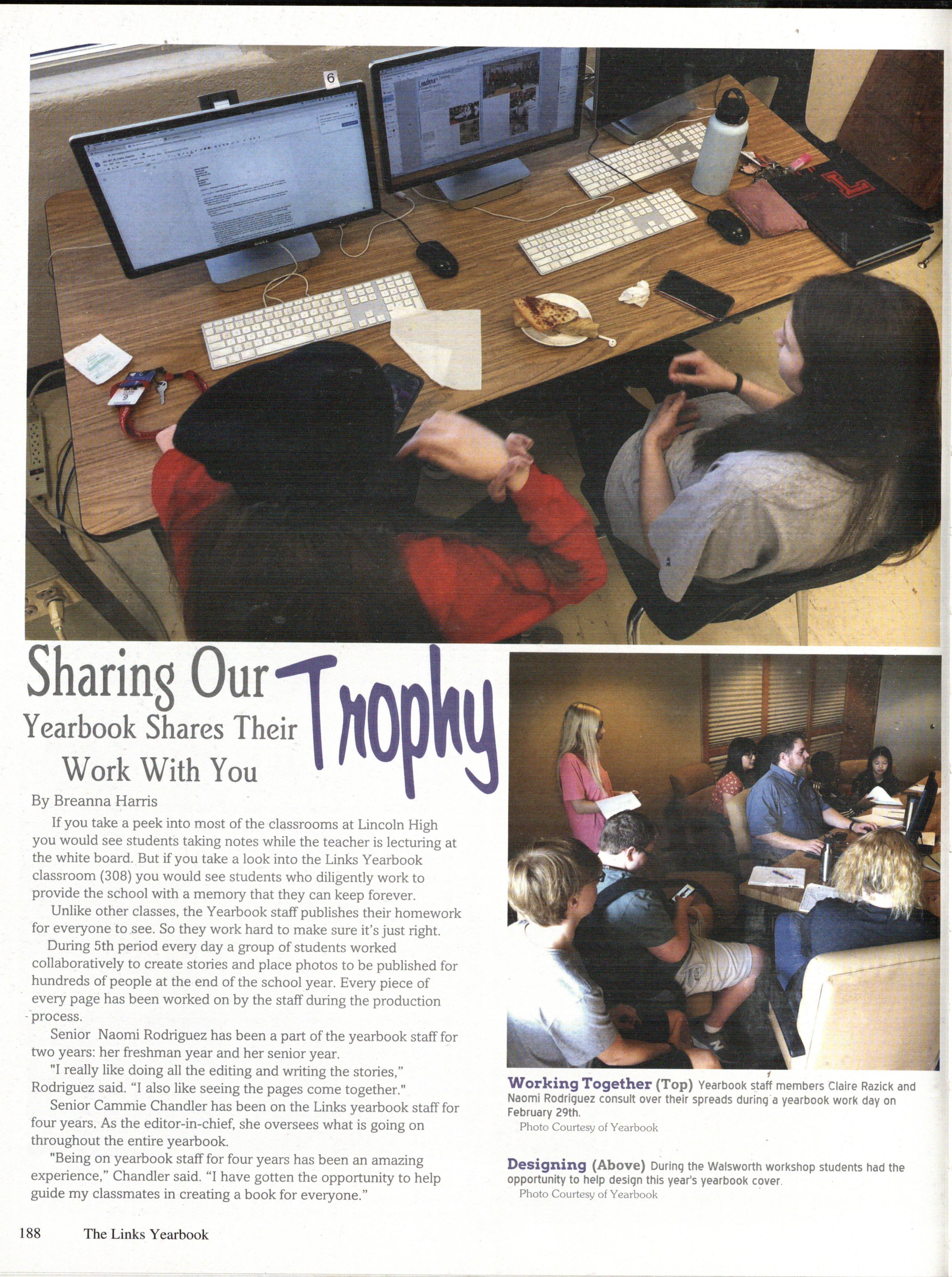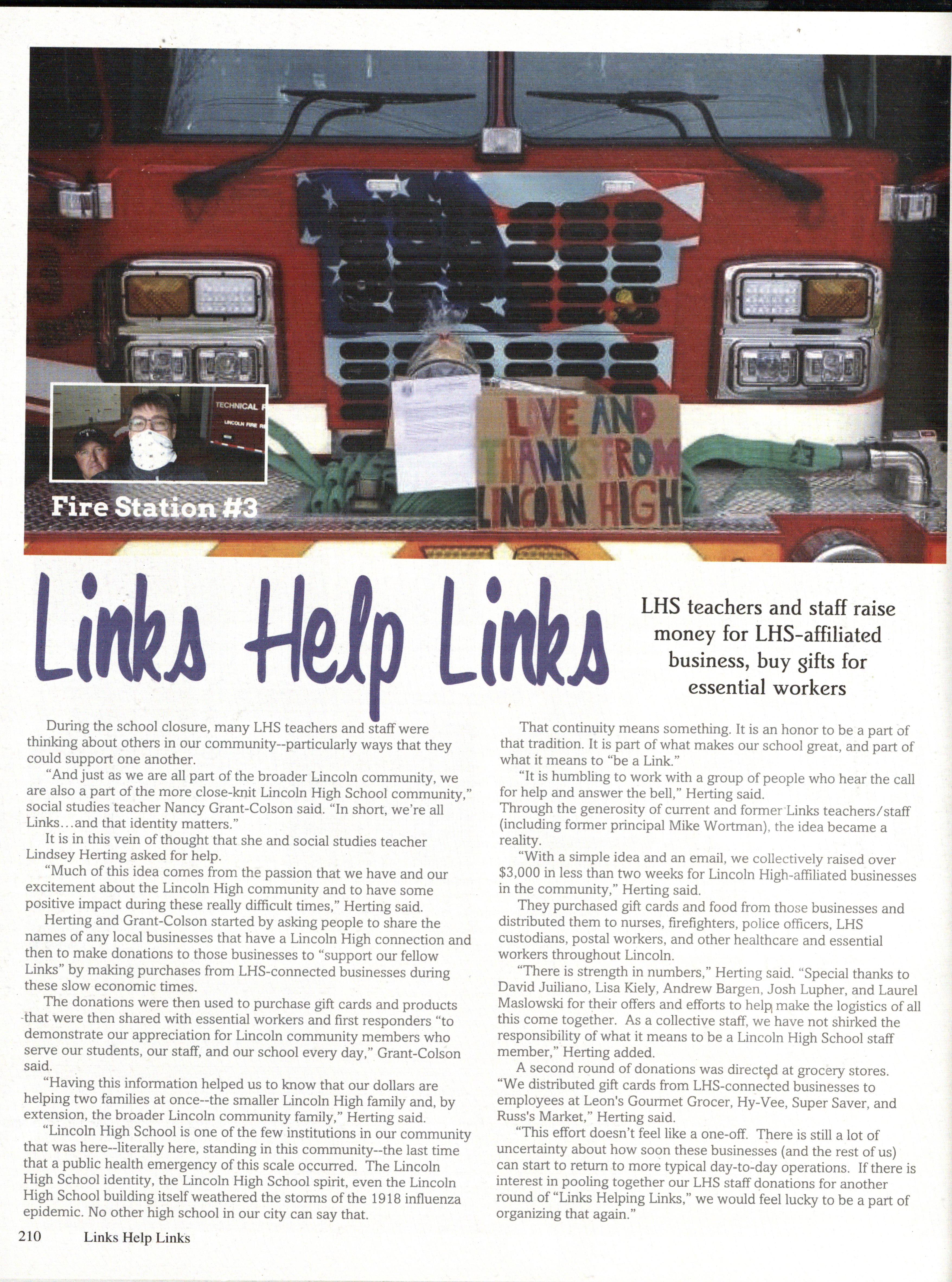 The 2020 issue of the Lincoln High School yearbook, The Links , was published by Walsworth Publishing Company of Marcelene, Missouri. The book was created using Walsworths Publishing Company's Online Design Program, as well as Adobe Photoshop, Photo Machanic, and Google Documents. The fonts and colors of the book were picked by Editor-in-Cheif Cammie Chandler. The fonts Include Arvo, Livingston, Bluehighway, Sunset, s•u•a, Dean, AvantGaurd, Times, and Helvetica. The colors include FOSSO , F46OO , FO28O , F344O, and FOO6O.