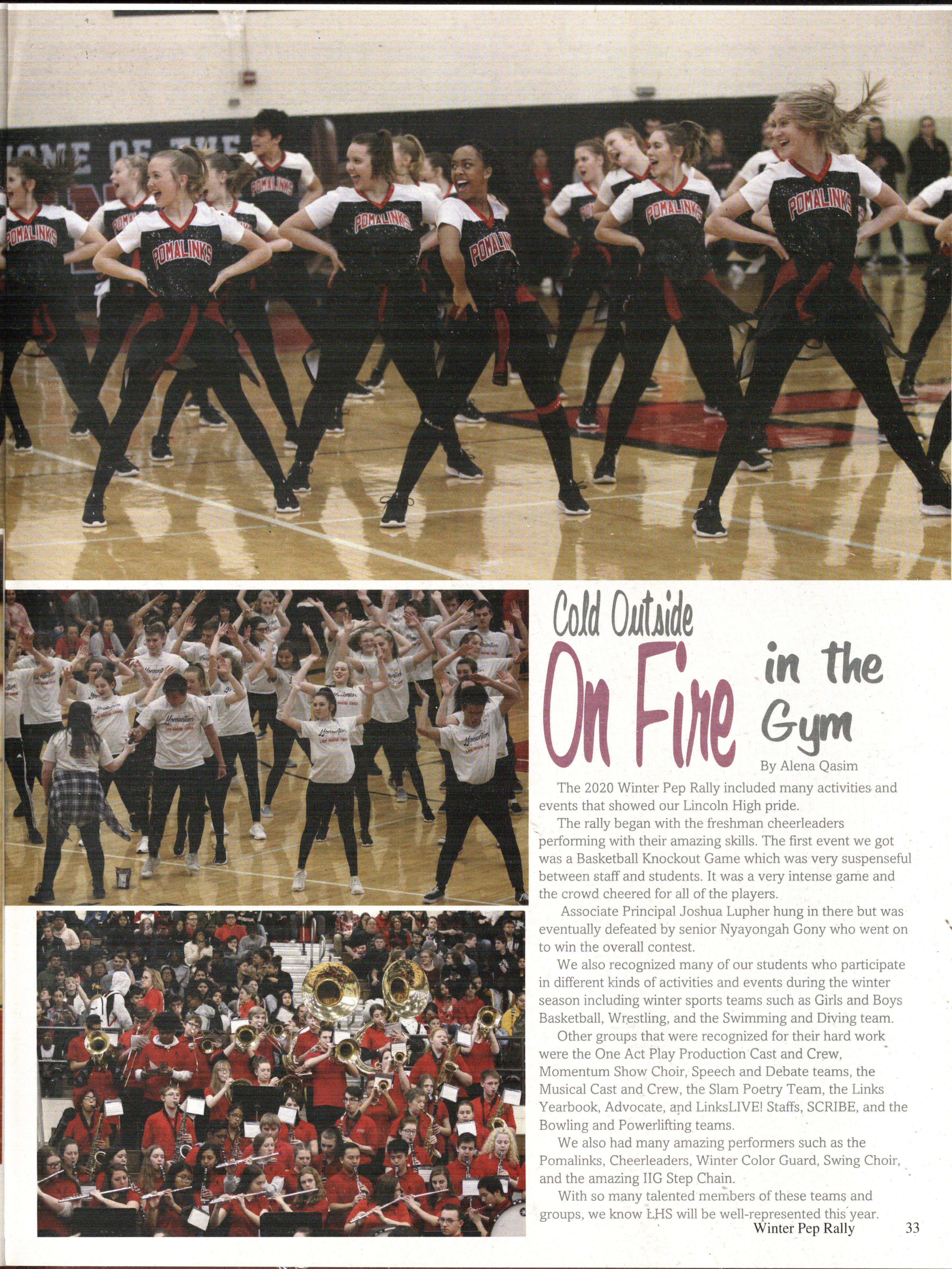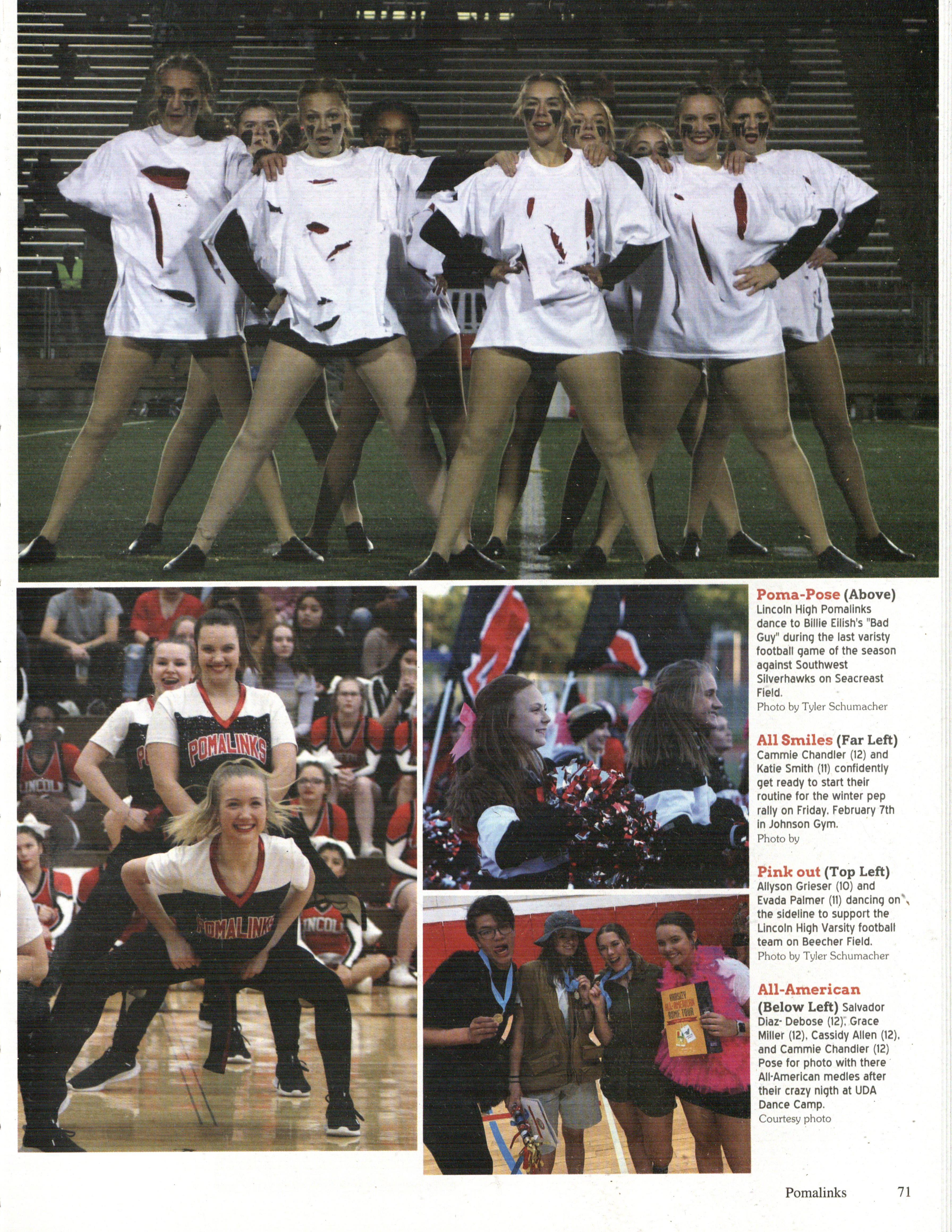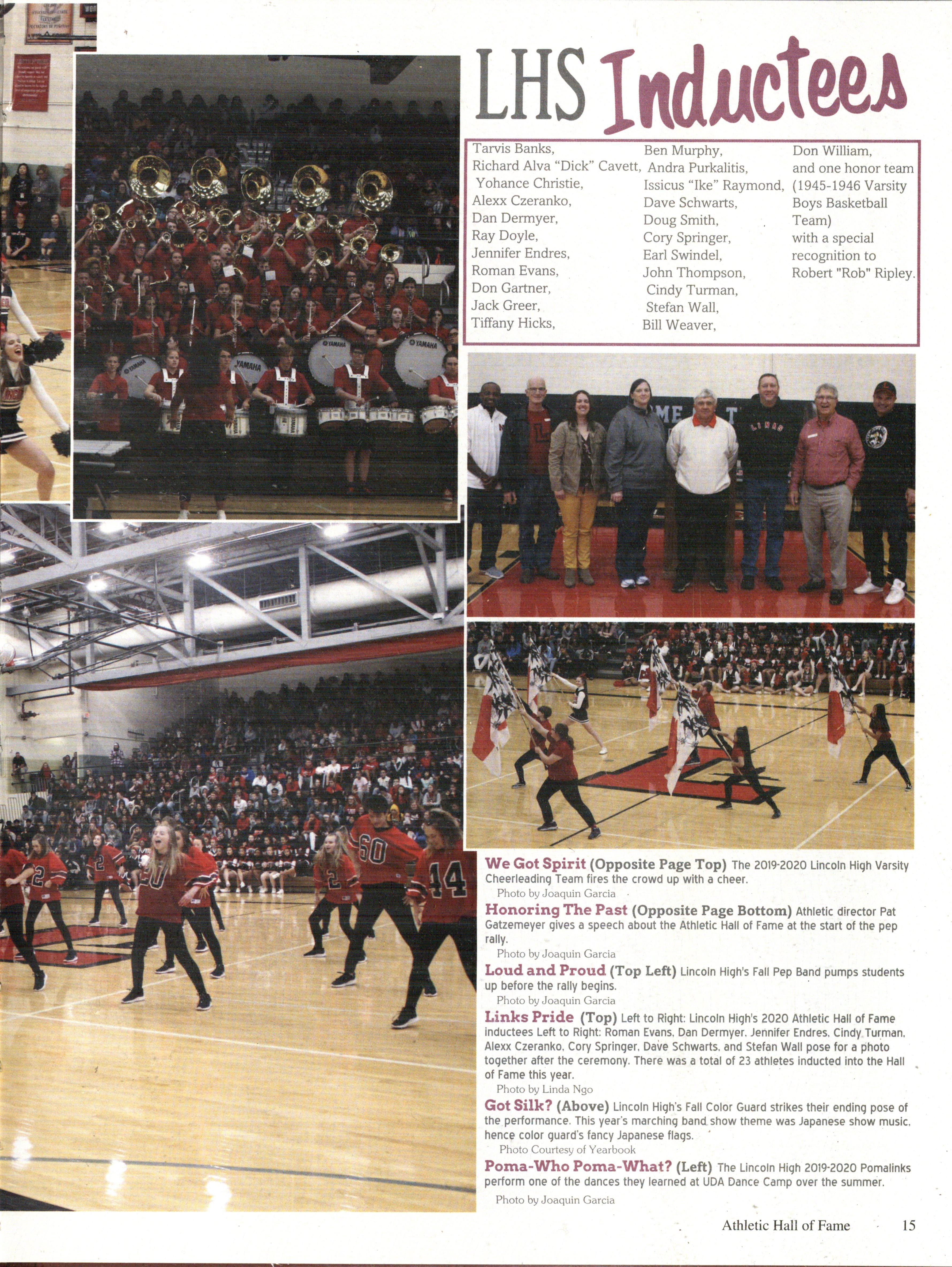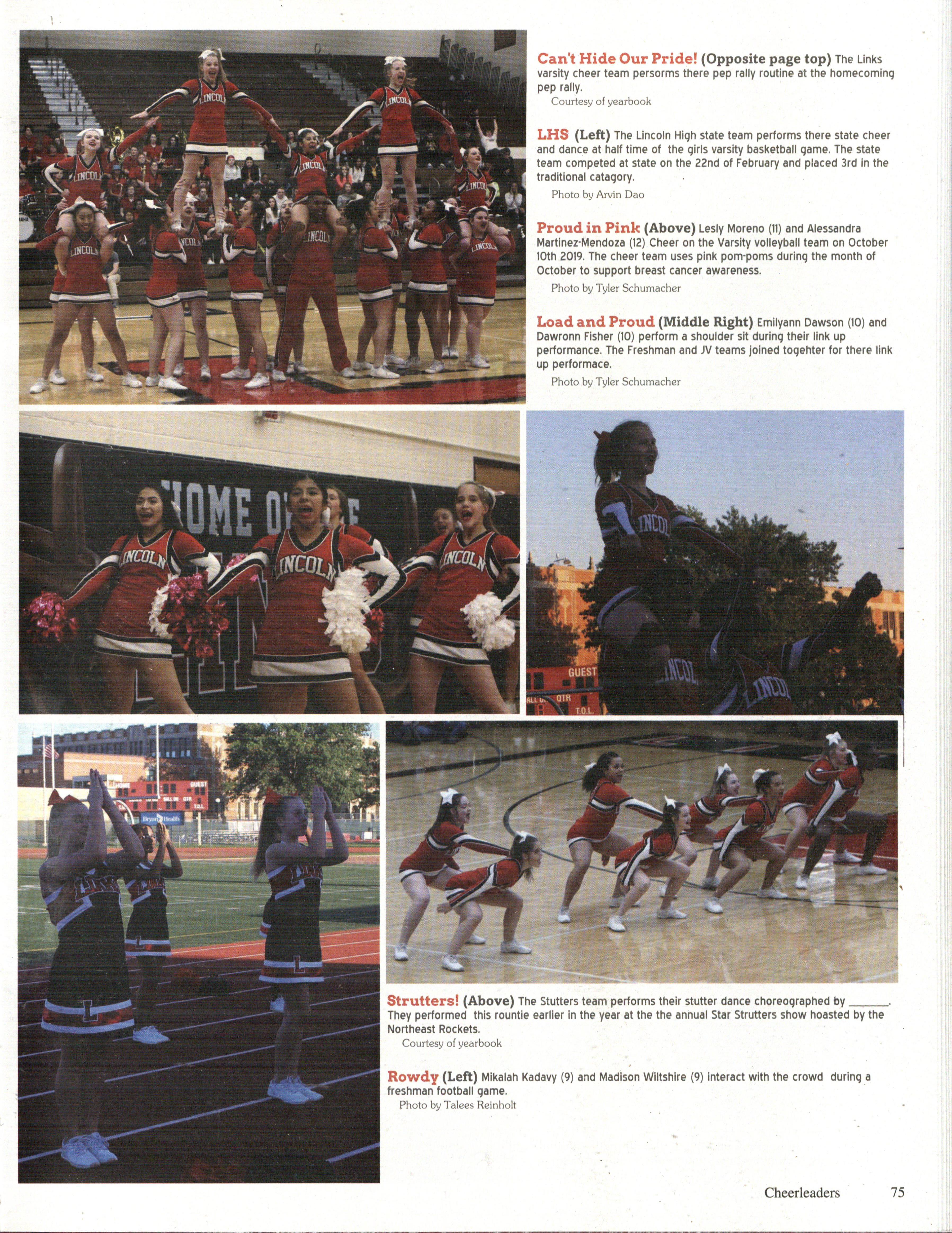 Homecoming is a time for celebration and cheer. Lincoln High celebrates Homecoming with an annual dance, pep rally, and Athletic Hall of Fame induction. During the pep rally, all three Lincoln High cheerleading teams performed a cheer as well as a dance.