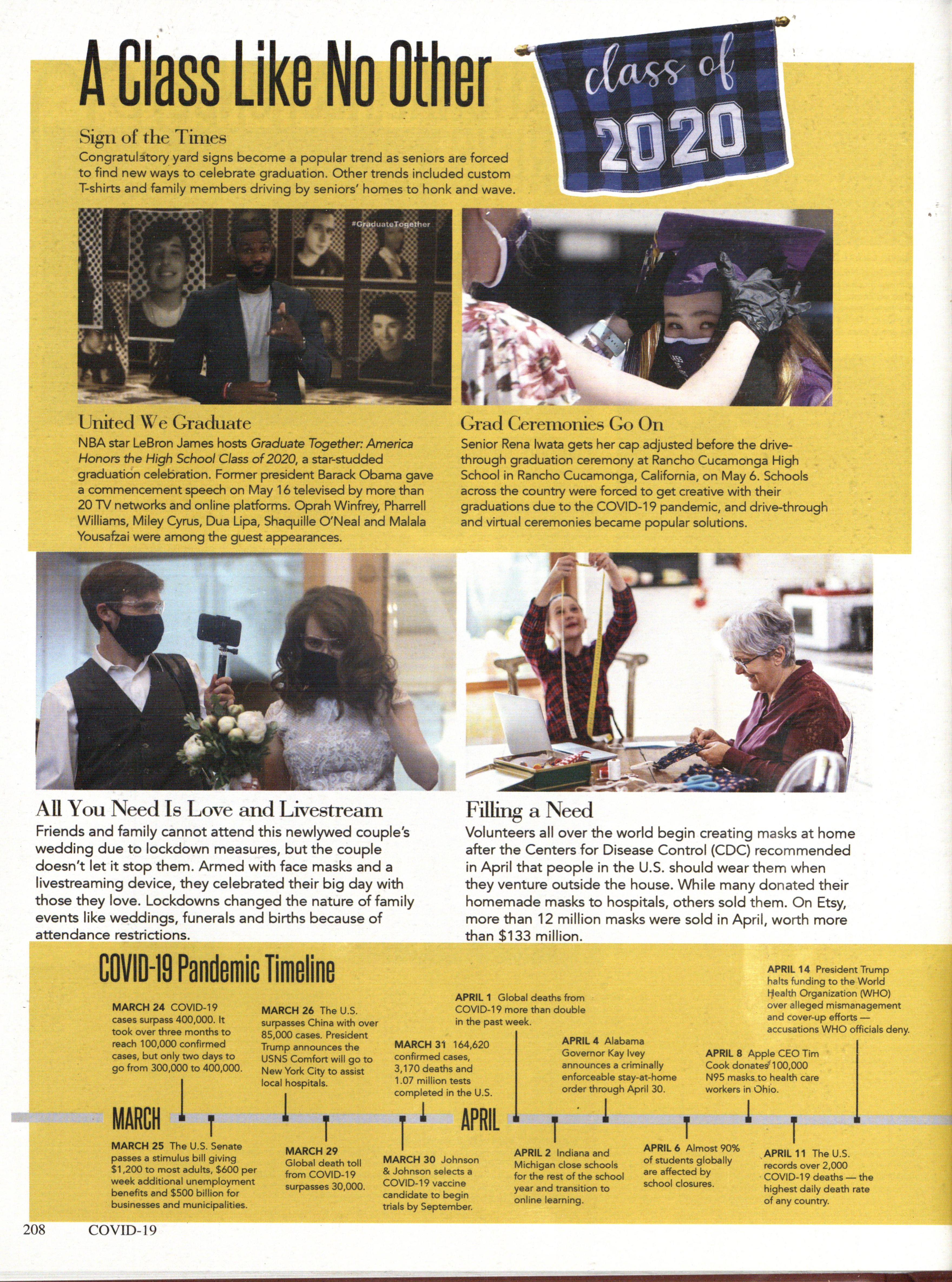 Special thanks also to Greg Adams, our Walsworth representative, and all of the people at Walsworth who helped us come up with many solutions along th~ way during this crazy year and who continued working despite the danger to themslves.