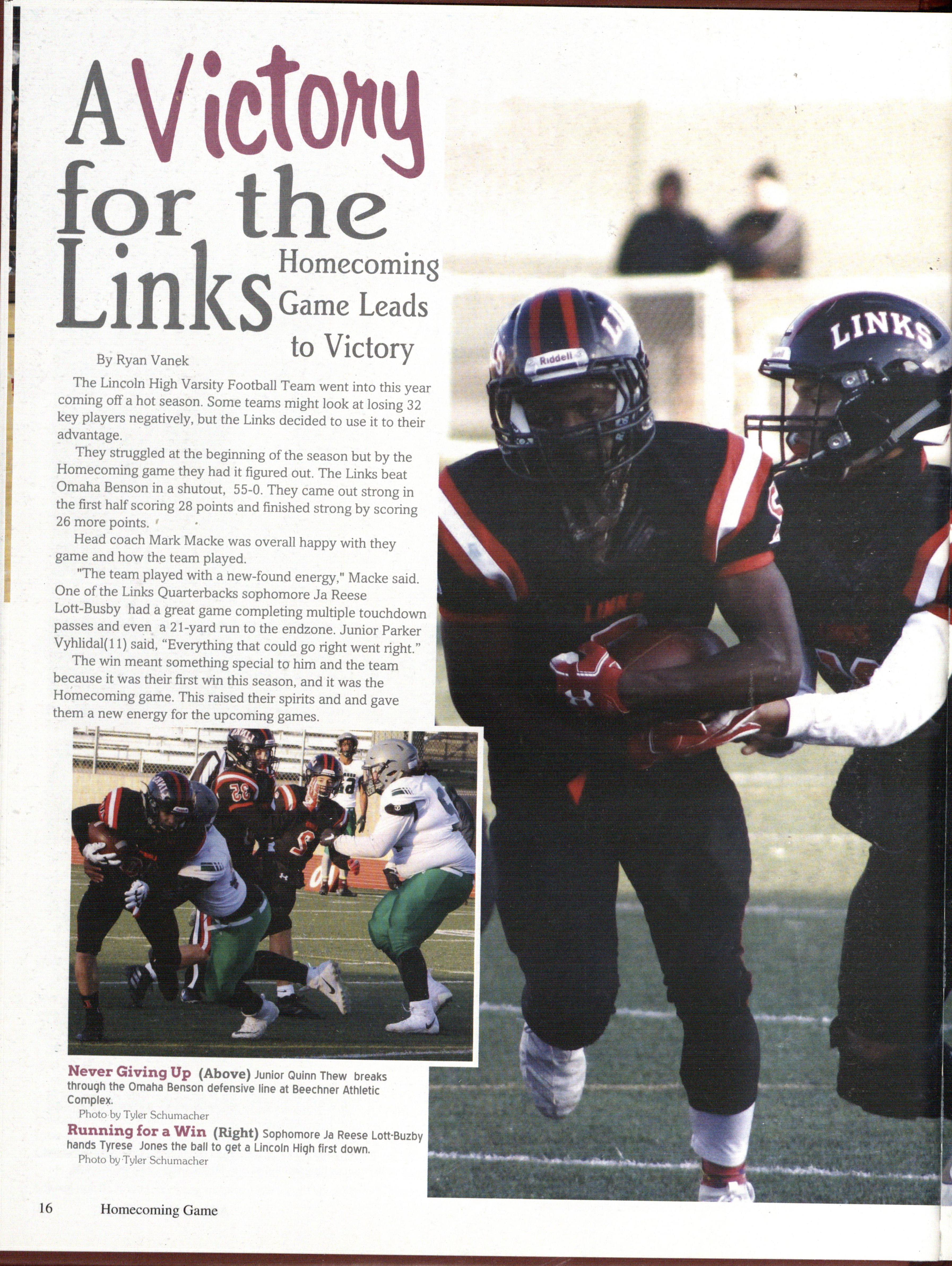They struggled at the beginning of the season but by the Homecoming game they had it figured out. The Links beat Omaha Benson in a shutout, 55-0. They came out strong in the first half scoring 28 points and finished strong by scoring 26 more points.