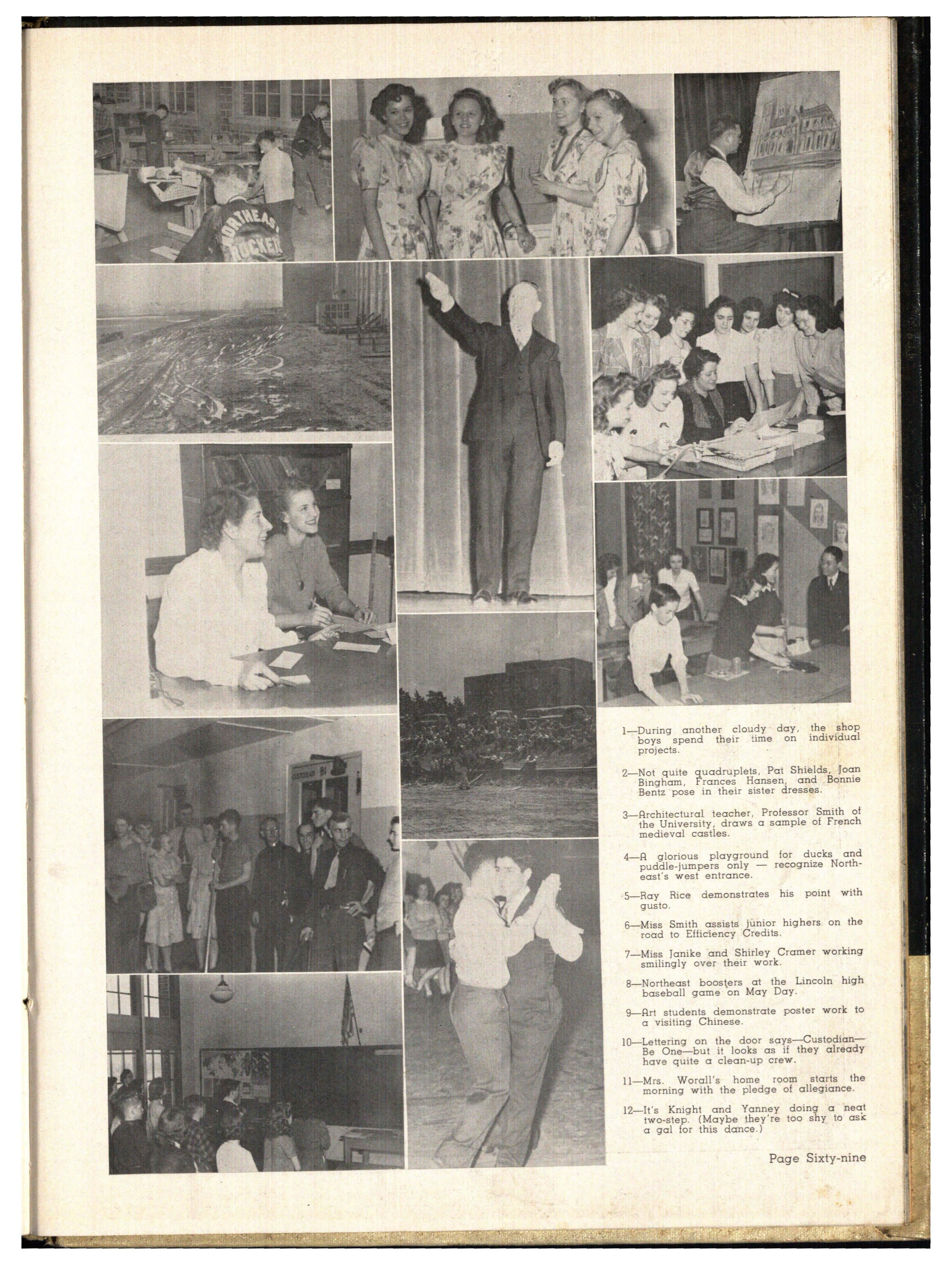 Following the pattern established for Lincoln Schools by Superintendent M C. Lefler, Assistant Superintendent 0 H. Bimson and members of the School Board, Northeast, under the direction of Dr. J E Loder , strives to maintain a working democracy w i thin the school. Assisting in the adminis t ration of Northeast are Mr. R. S. Mickle, Counselor and Vocational Guidance Director ; Mrs. Mabel D Thompson , Assistant Principal of Senior _High; and Miss Grace Janike , Assistant Principal of Junior High . The Child Center , with pupils in kindergarten and the first four grades , is directed by Mrs. Velma Hodder.