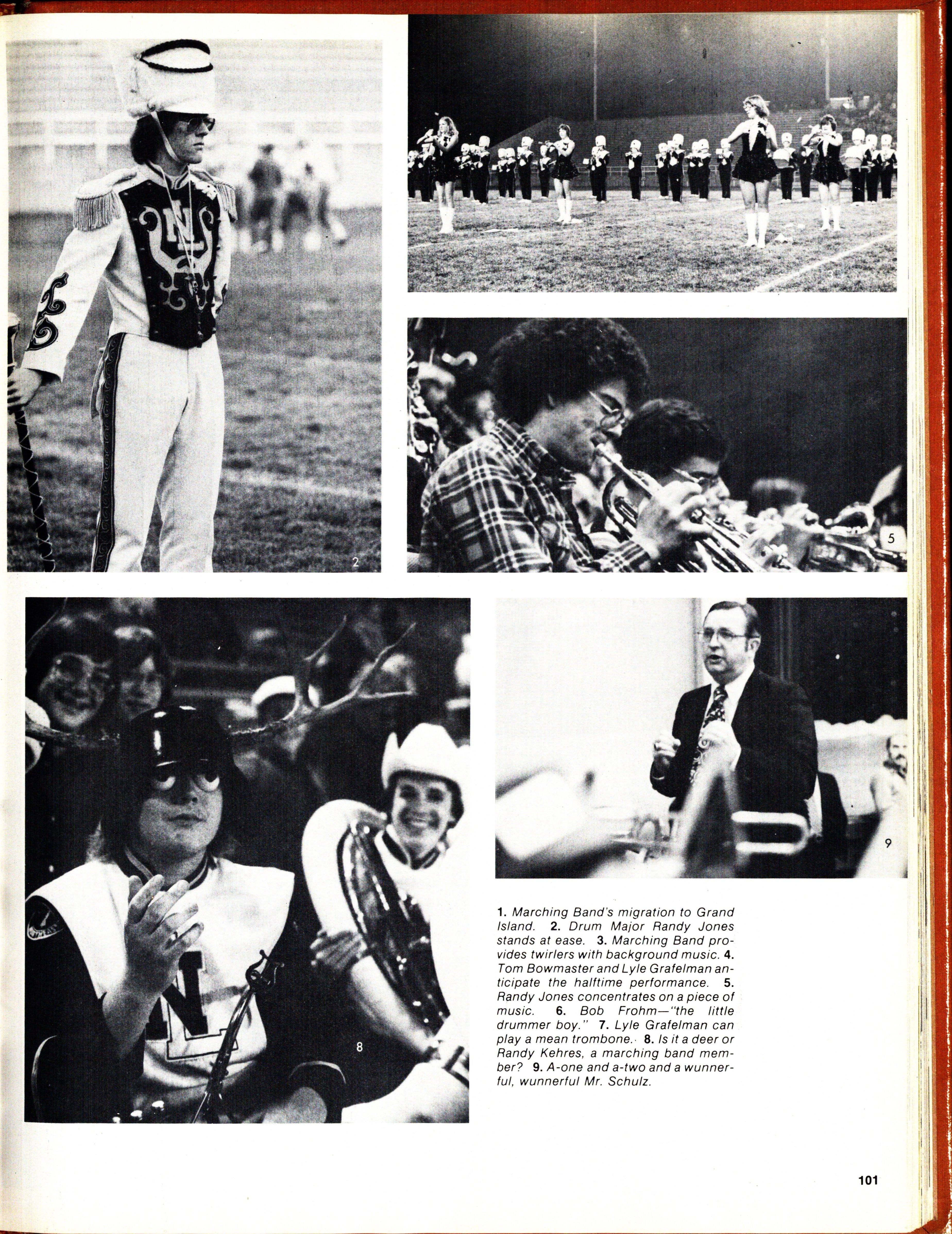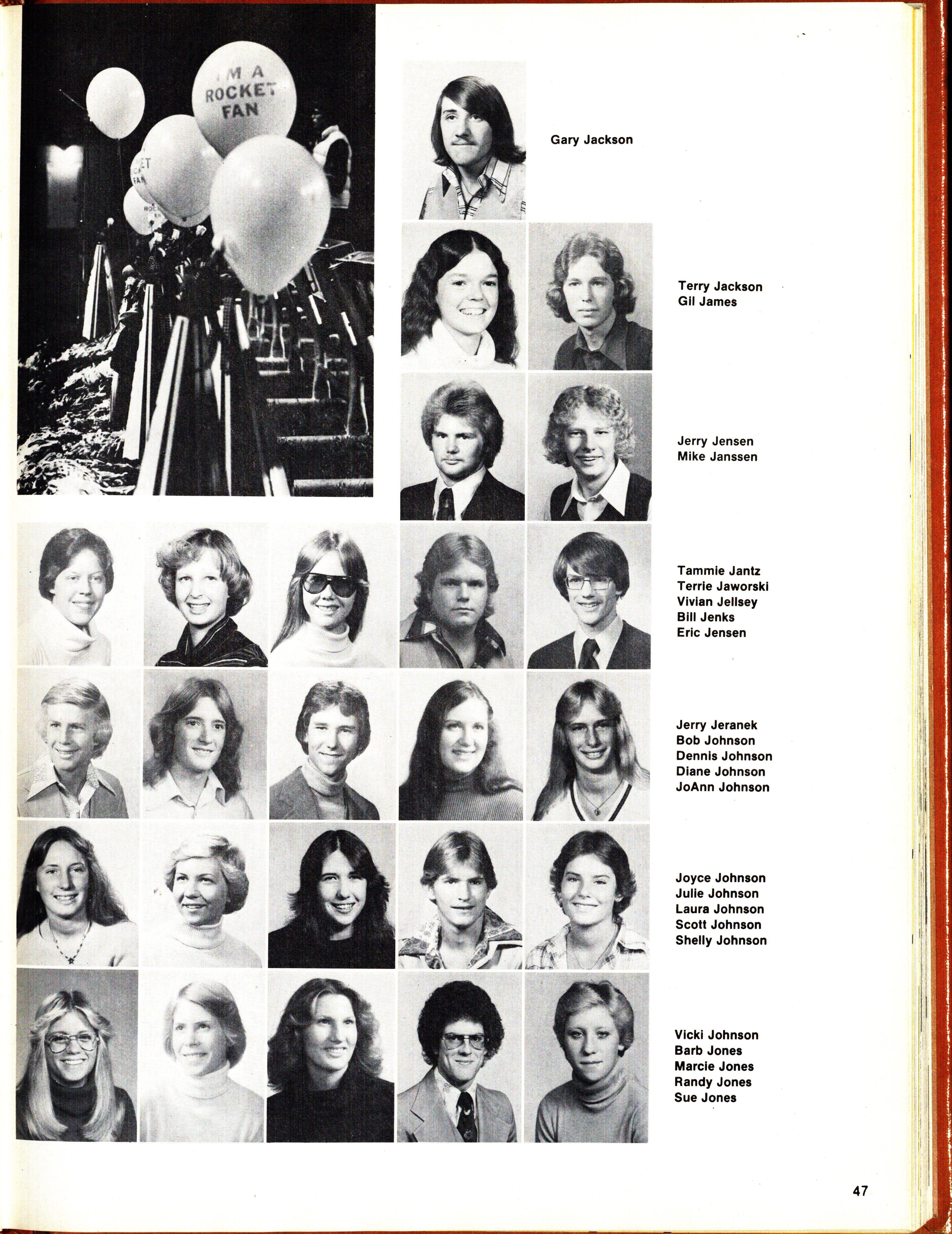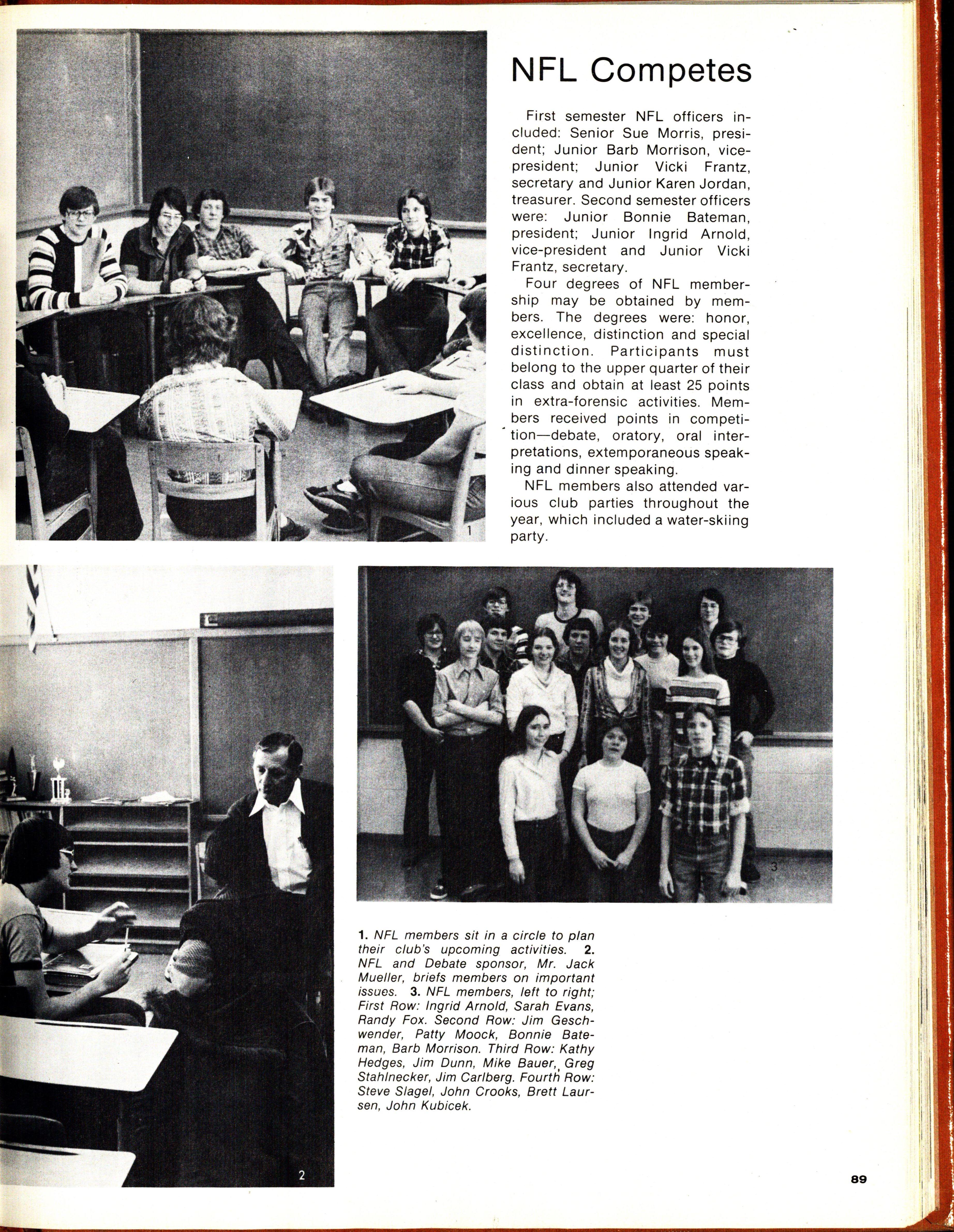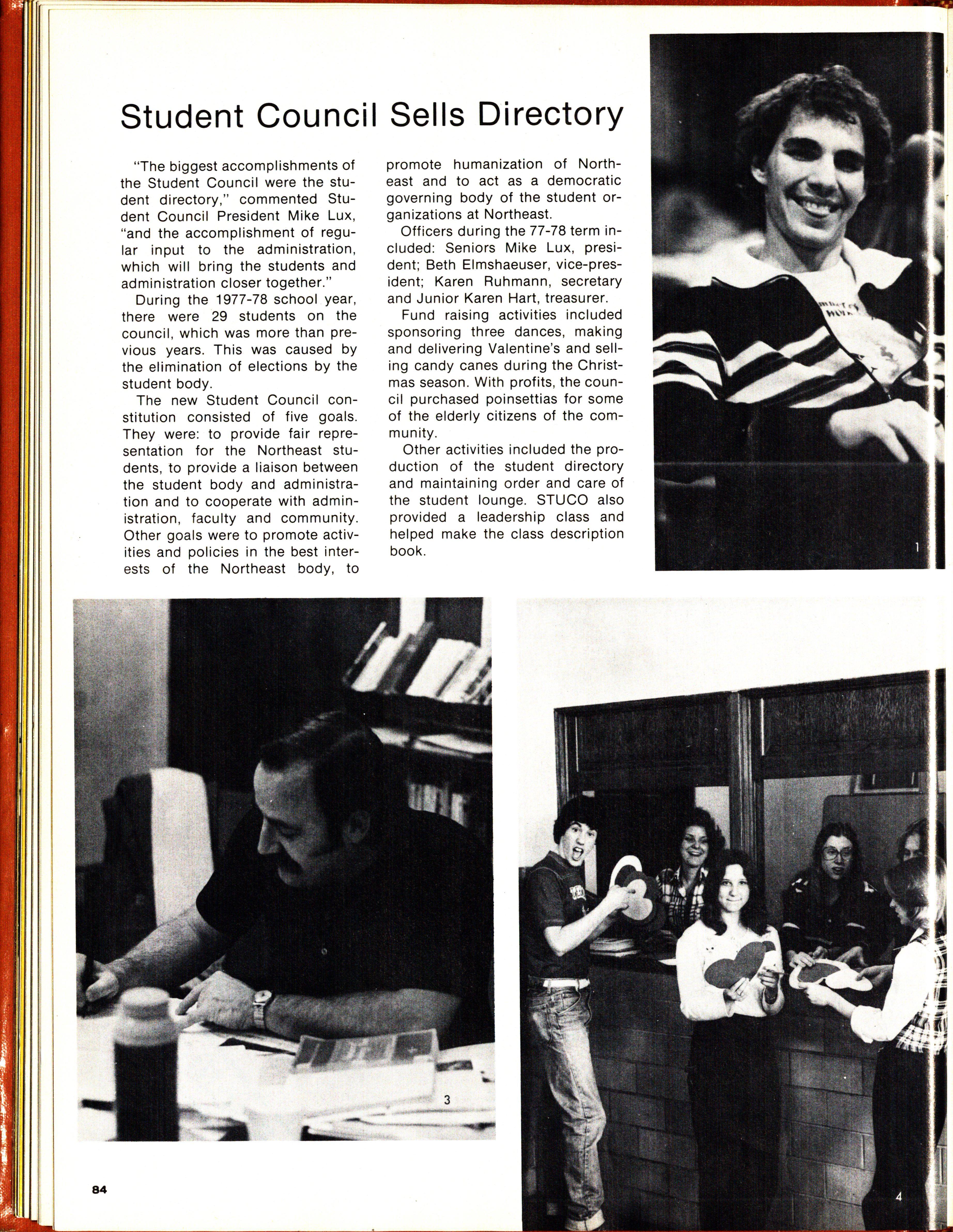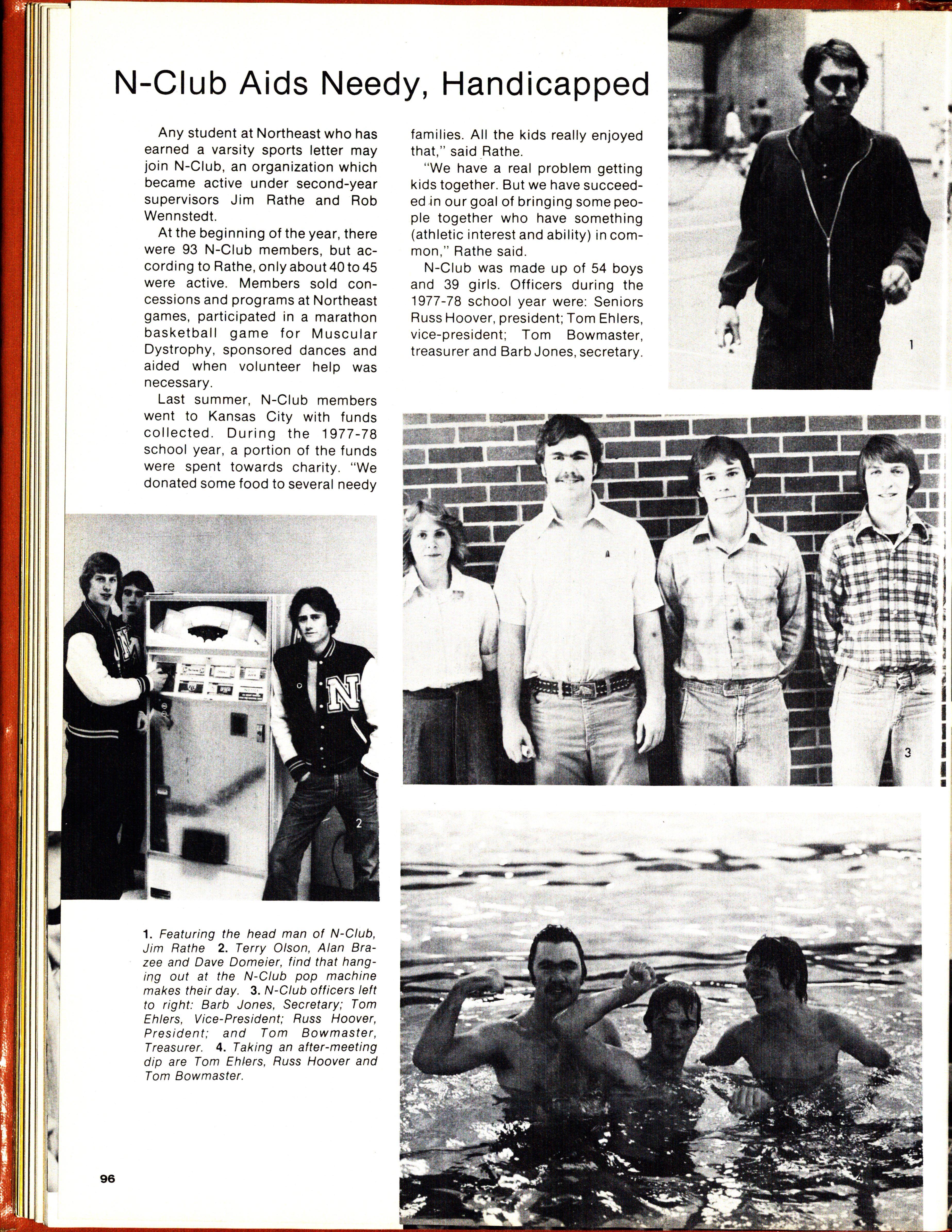 1. Movies such as Star Wars and Saturday Night Fever were highlights of conversation among Northeast students. 2. A favorite activity many students enjoy is listening to albums and tapes 3. Is it the school parking lot or Gearhead City? 4. Not everyone has four-wheel drive. Some enjoy the luxury of a two-wheel Continental