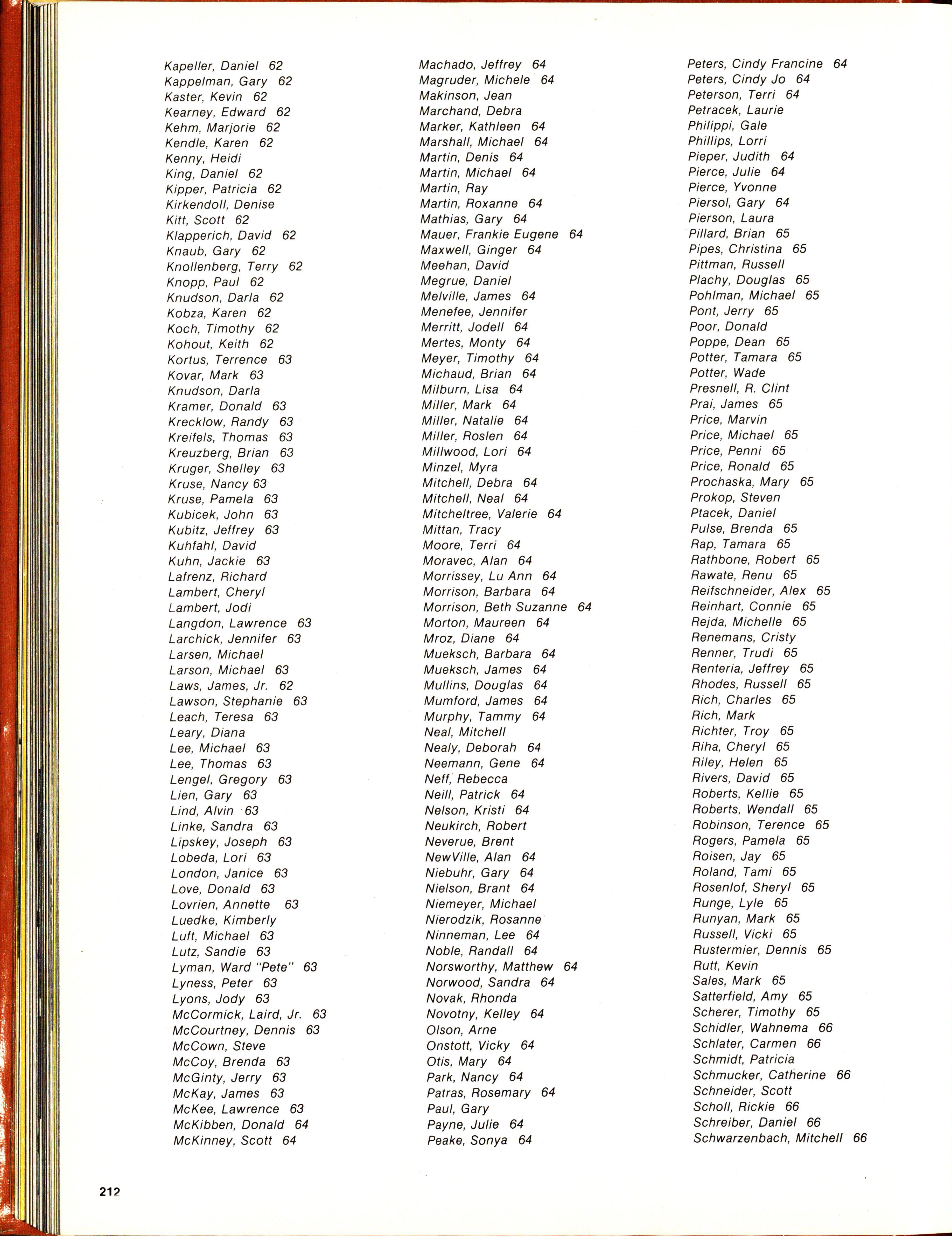 1. Robert James , Science 2. Buren Thomas, Math 3. Robert Curtright , Science. 4. Robert Els, Math. 5. Randy Emry , Science 6. Gale Cook , Science 7. Robert Wohlers, Math. 8. Bob Wagner , Math 9. Miss ·Patti Hartz , Math Assistant. 10. Bill Rogge , Math . 11. Carl Walin , Math. 12. Richard Temme , Science 13. Lloyd Schmadeke , Agriculture 14. Kenneth Katzer, Science 15. Jim Campbell , Math 16. Mrs Debra Stephenson, Math 17. Dave Hunter , Science. 18. Richard Nagele, Math.