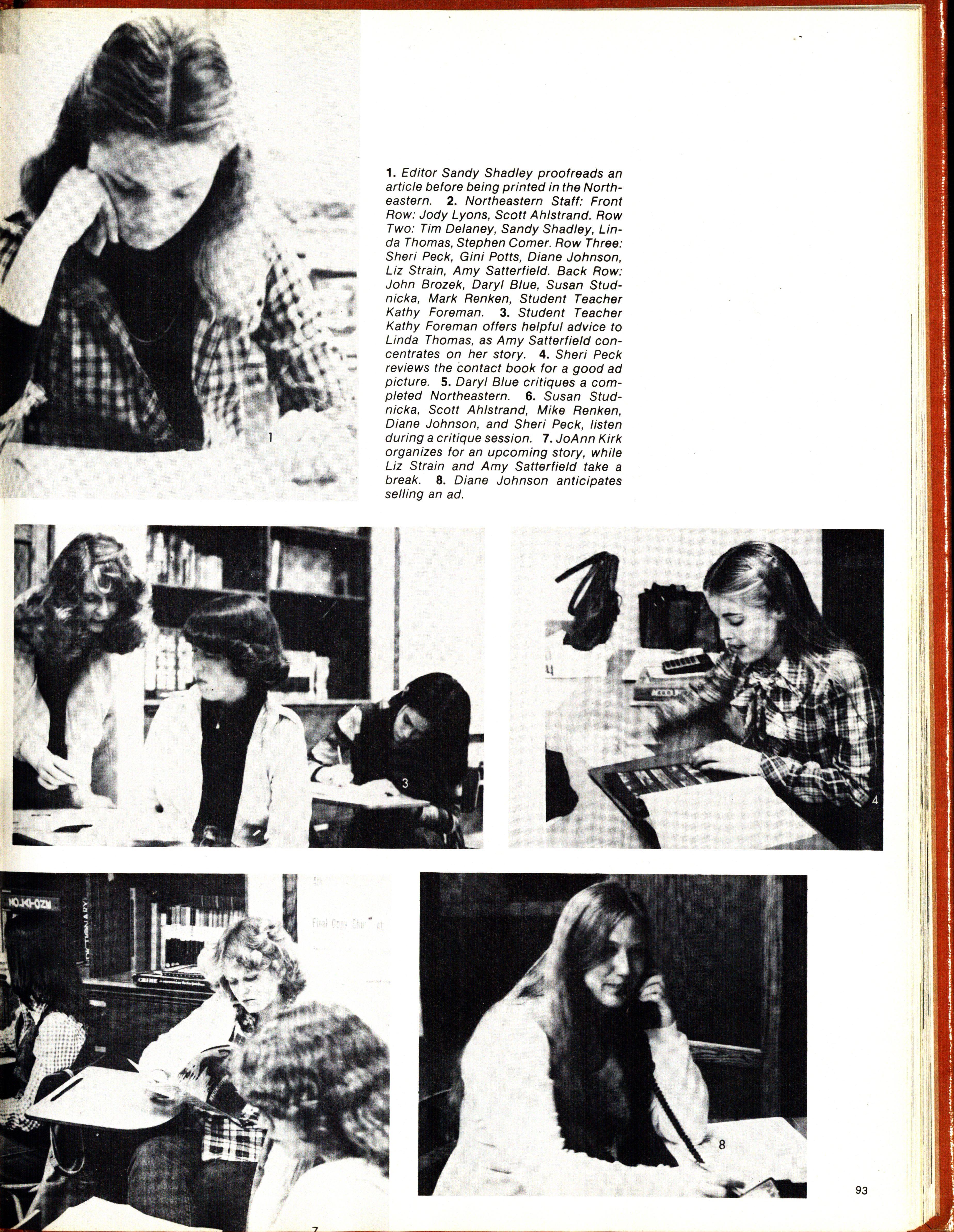 Other in-school activities involved the Northeastern, Montage and Rocket staffs , which provided interesting reading material for the benefit of students. Members of publications classes learned writing techniques in what most termed "fun surroundings."