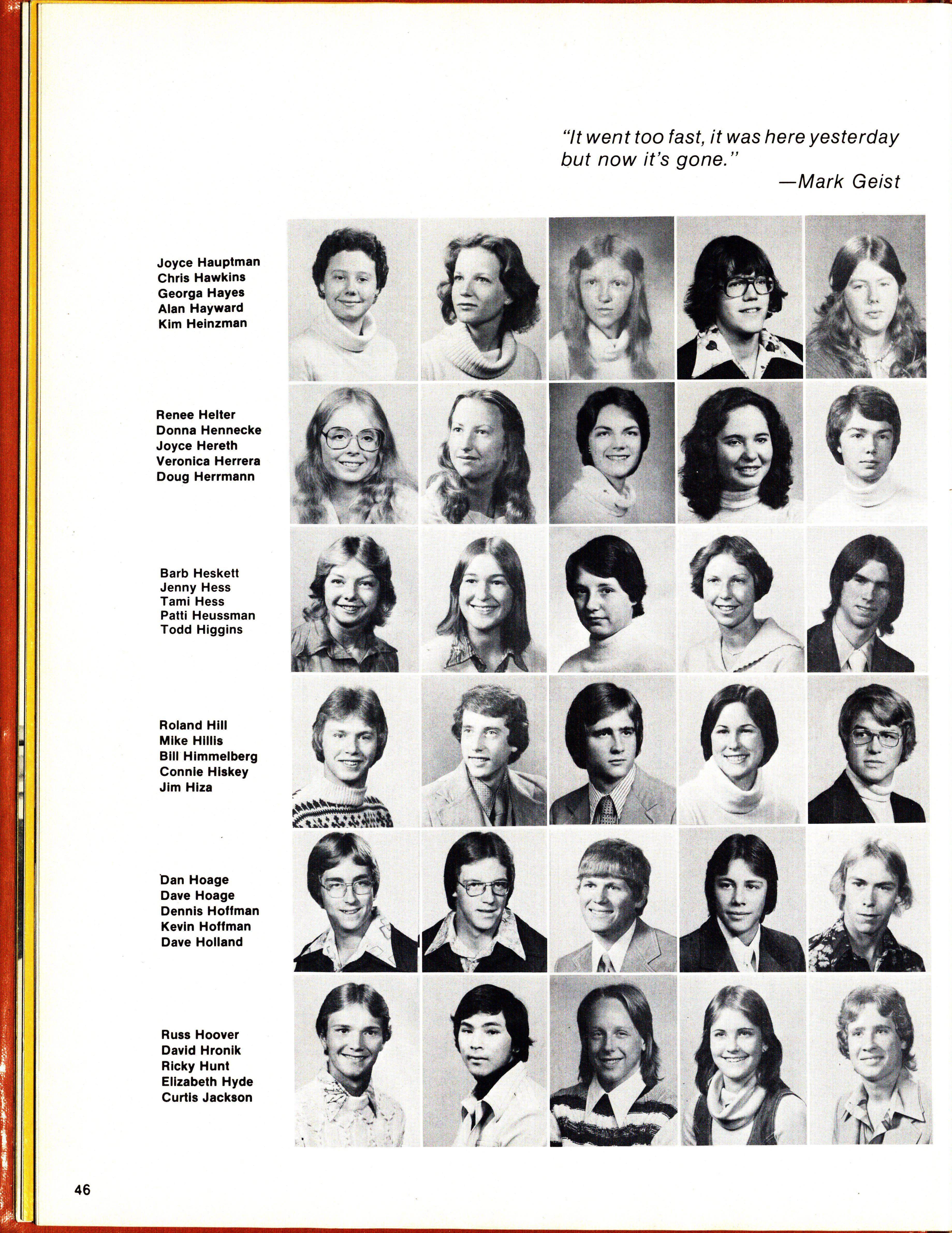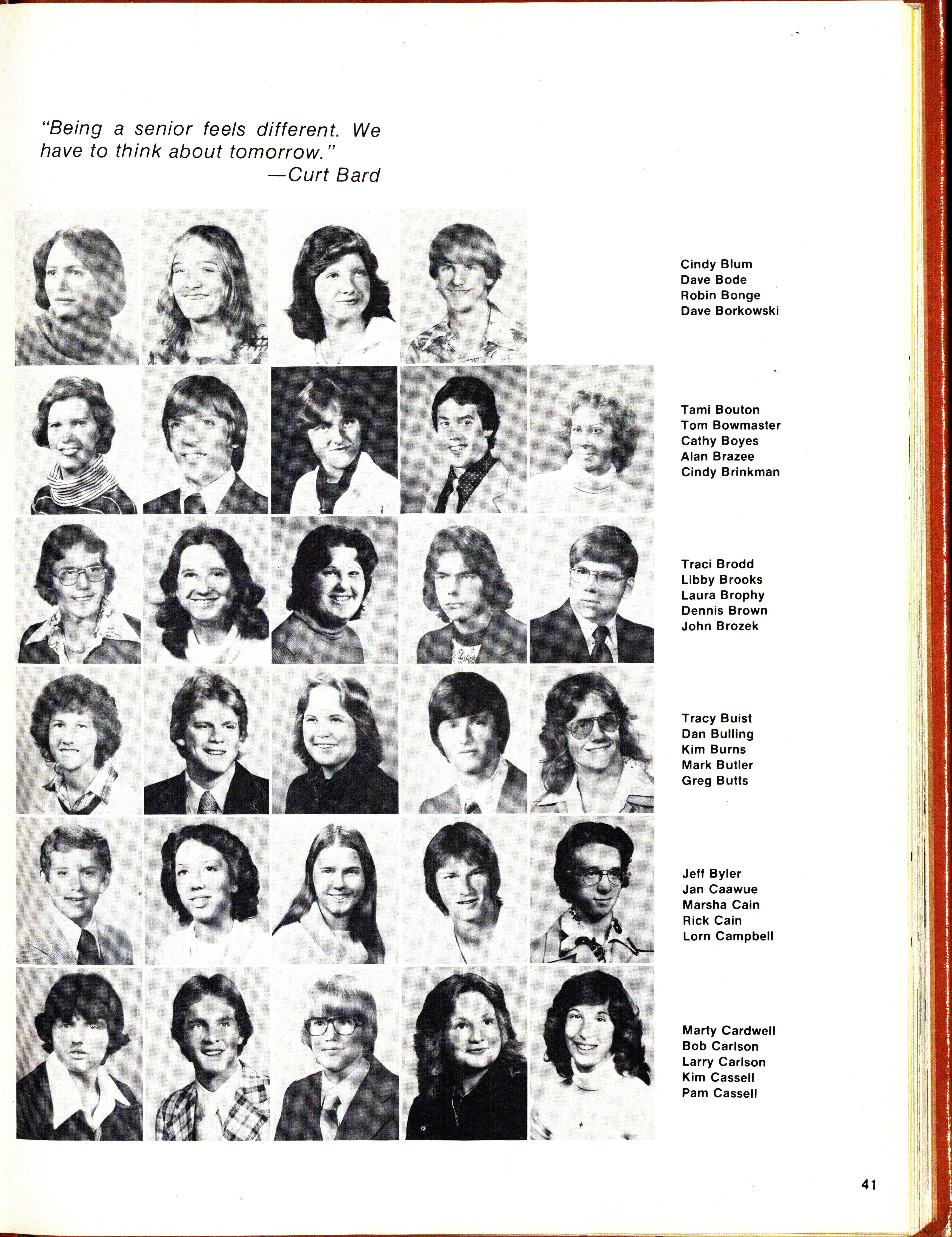 The class of 1978 found their senior year was a very important time in their lives. They came to the end of one road and had to begin traveling a new one. Many students would go on to further their education. Others, who felt they'd had enough schooling, would get a job. Whatever the class of '78 chose to do with their life it was their decision.