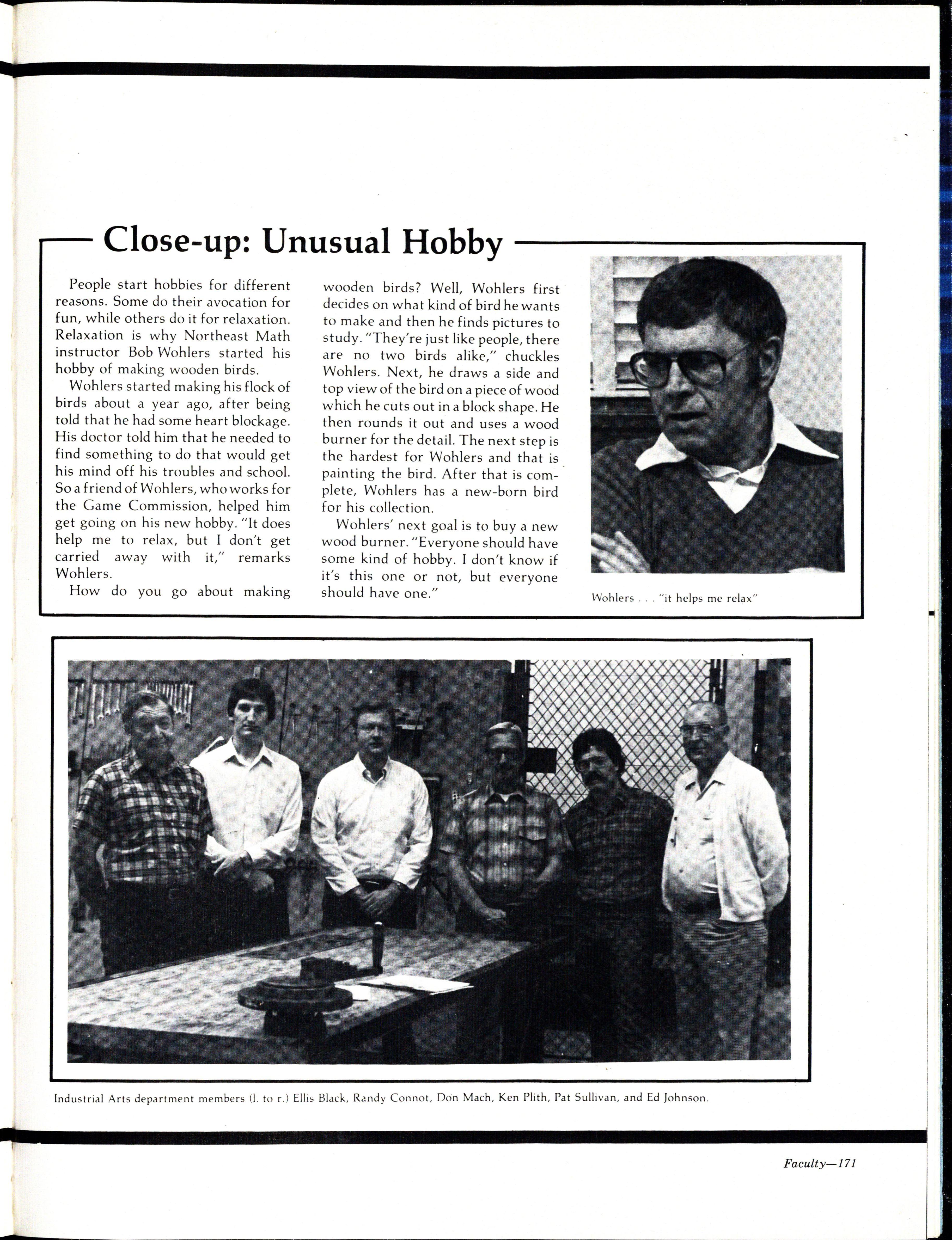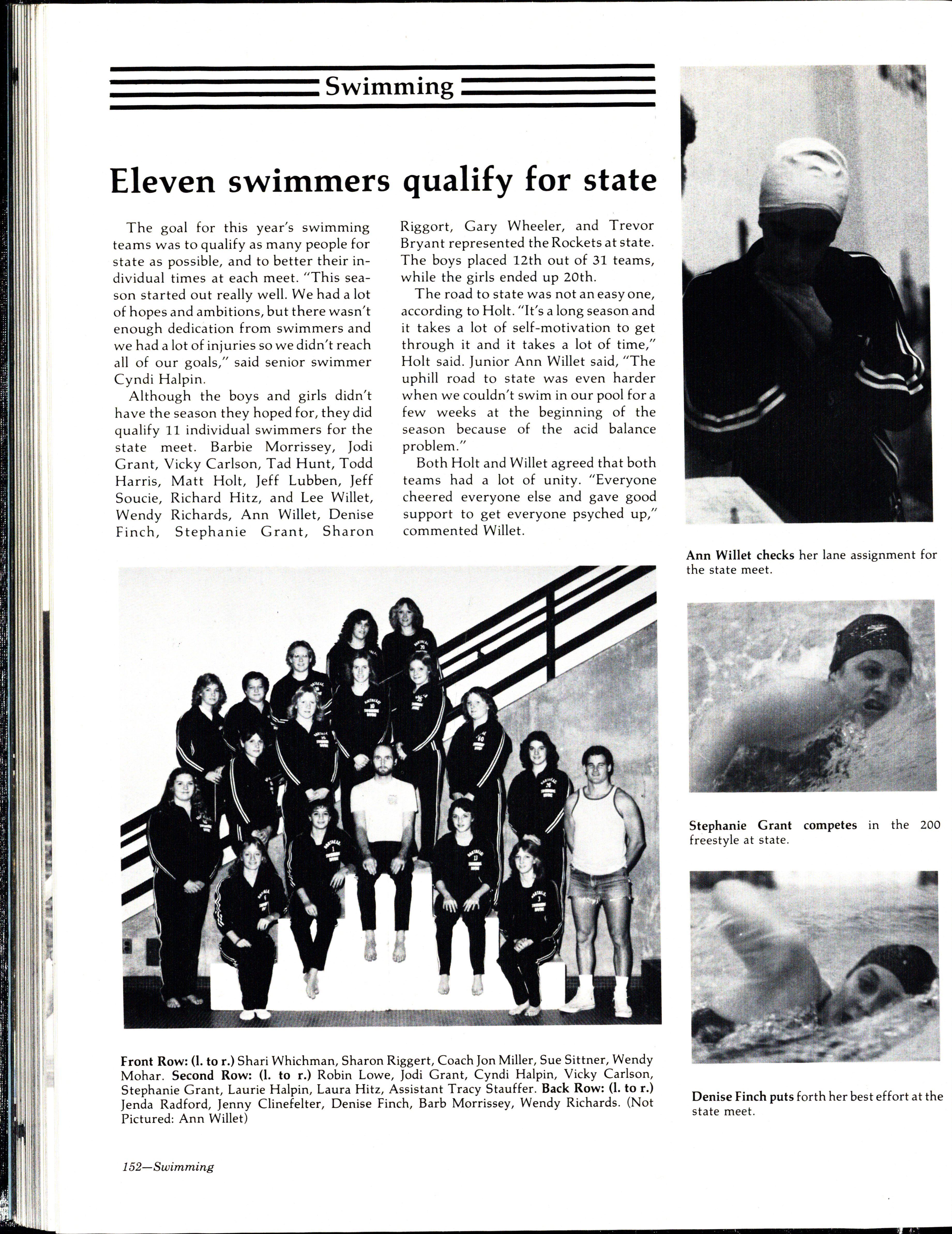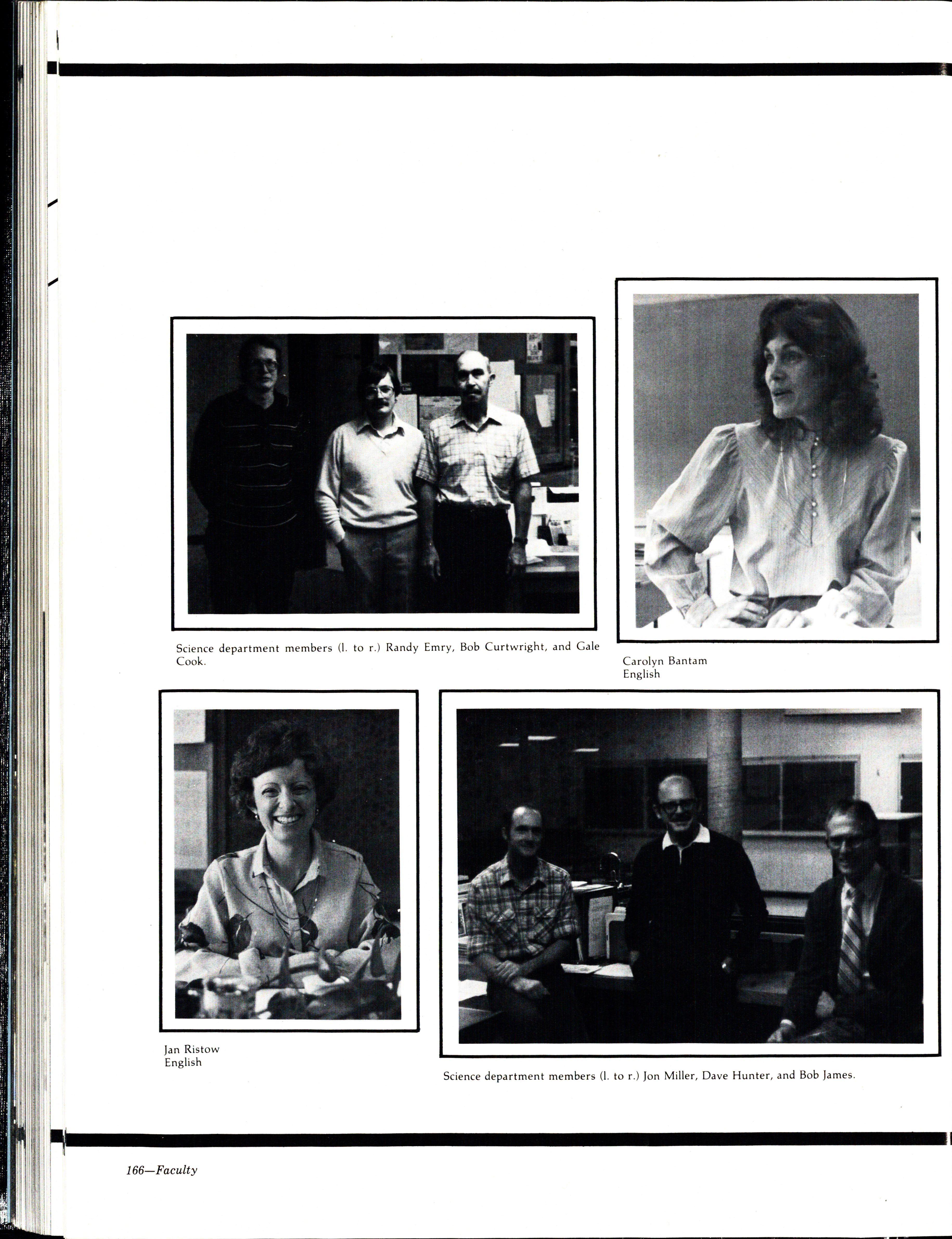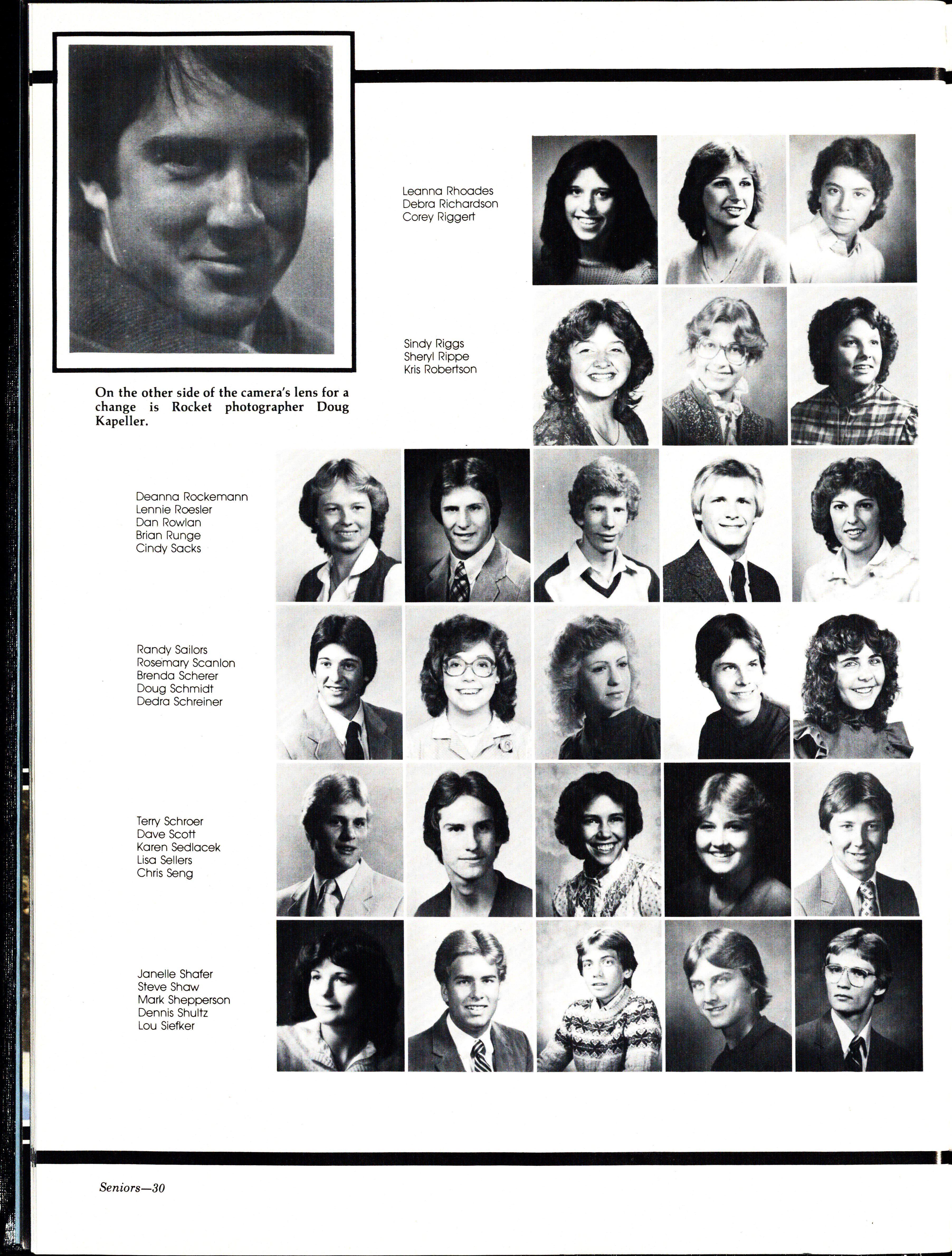 1983 ROCKET Staff (I. tor.) Back Row: Kyle Beals (Sports), Amy Kadavy (Clubs ), Lori Pickerel (Student Section Editor ), Rene Bomberger (Faculty Section Editor), Kathy Smith (Faculty). Third Row: Dawn Zoller (Students), Tammy Johnson (Ad Staff), Shawna Standley (Students) , and Cindy Lesoing (Clu b Section Edito r). Second Row: Steve Higgins (Photographer), Tyra Isaacson (Clu bs ), Doug Kapeller (Photographer-In-Chief), David Scott (Ad Staff) , and Amy Squire (Sports Editor) Front Row: Chris Fusco (Ad Staff), and Jacki Wilke (Sports). •