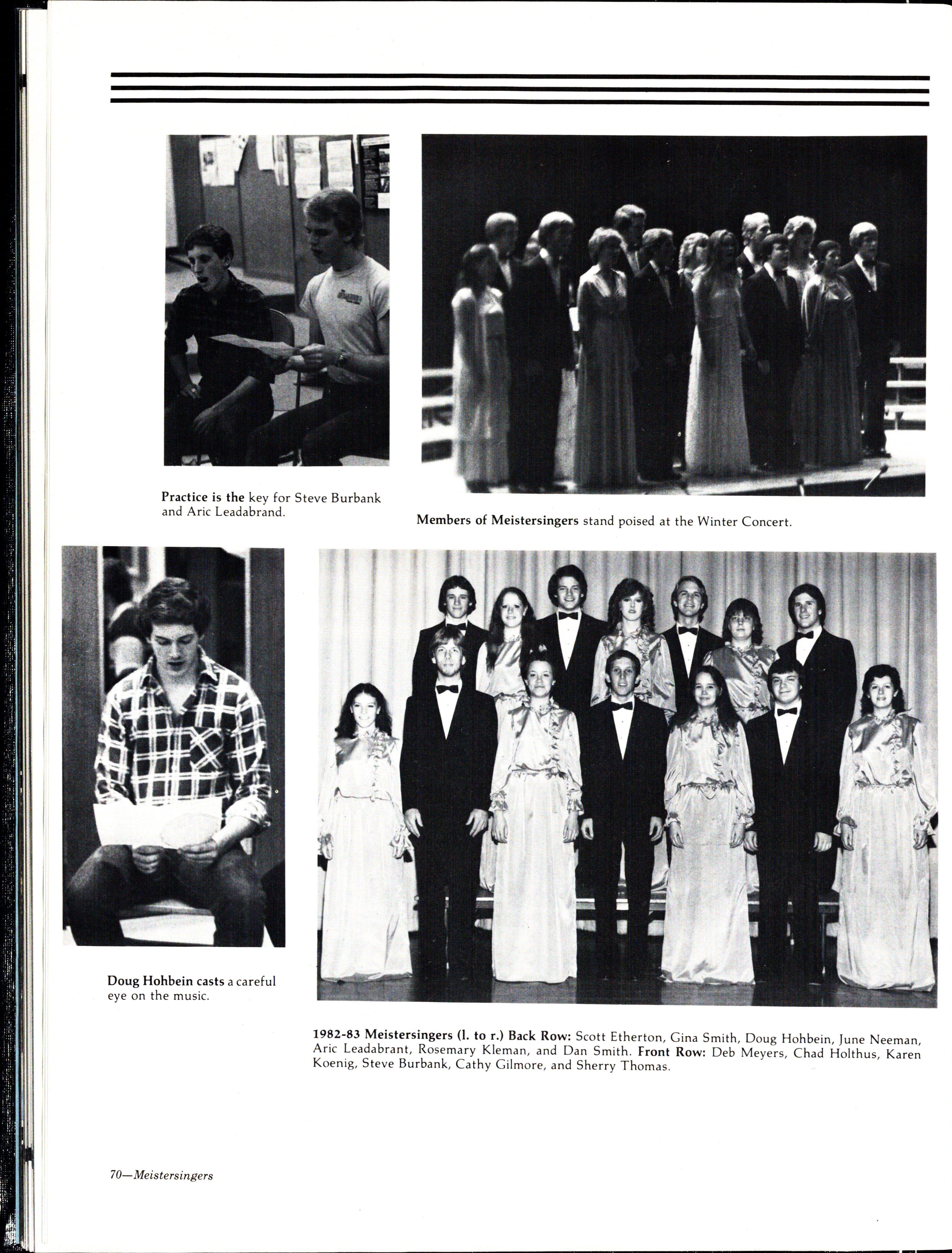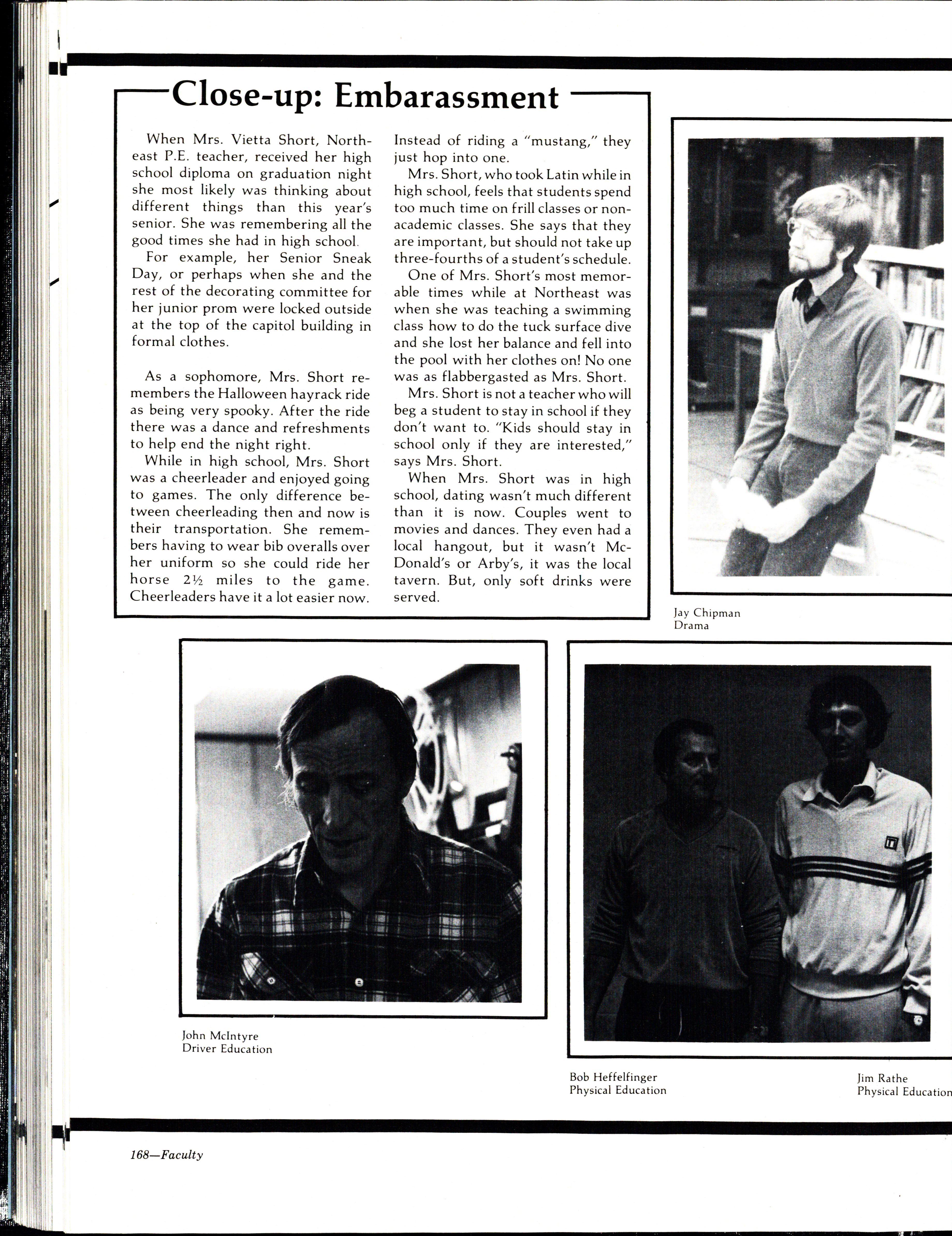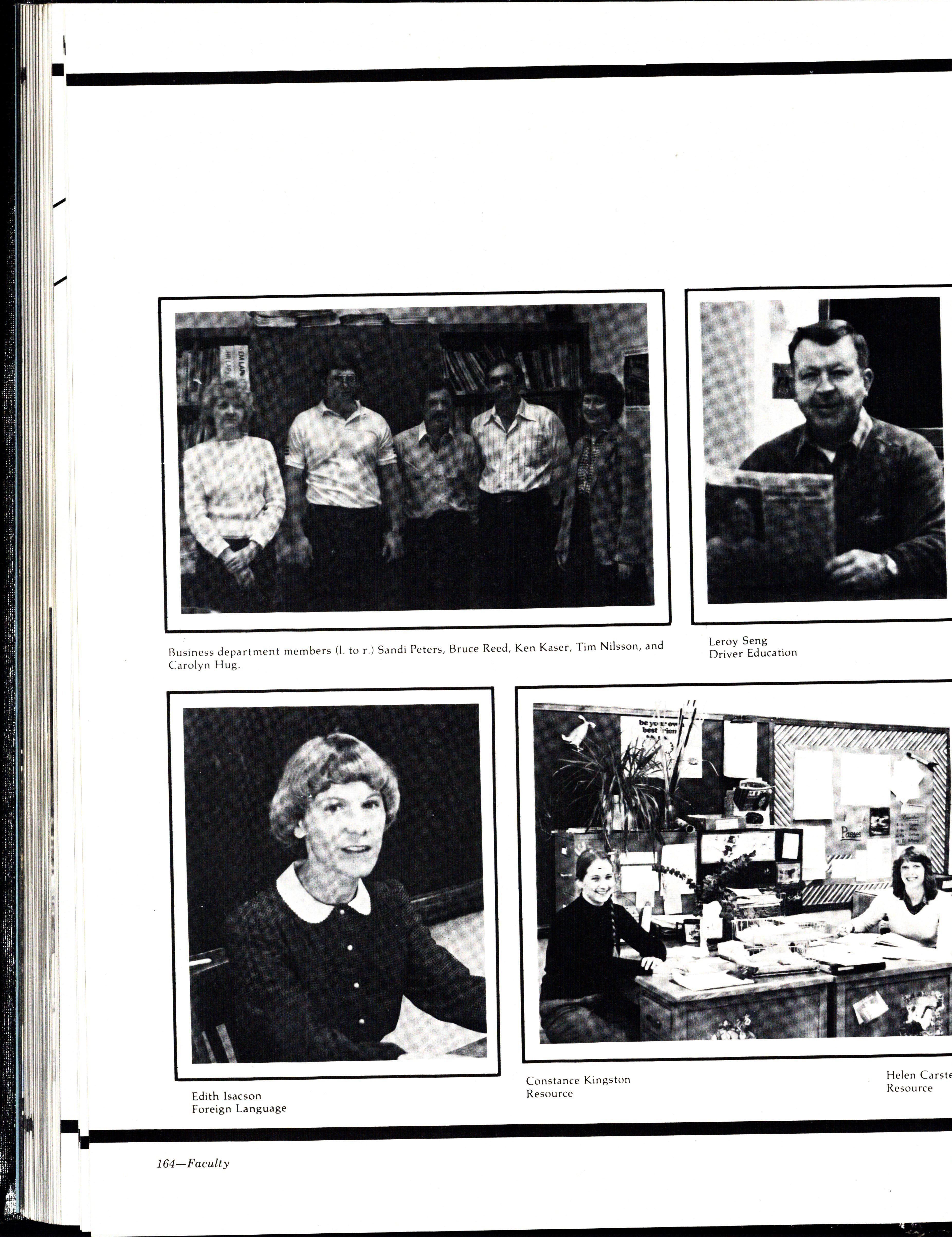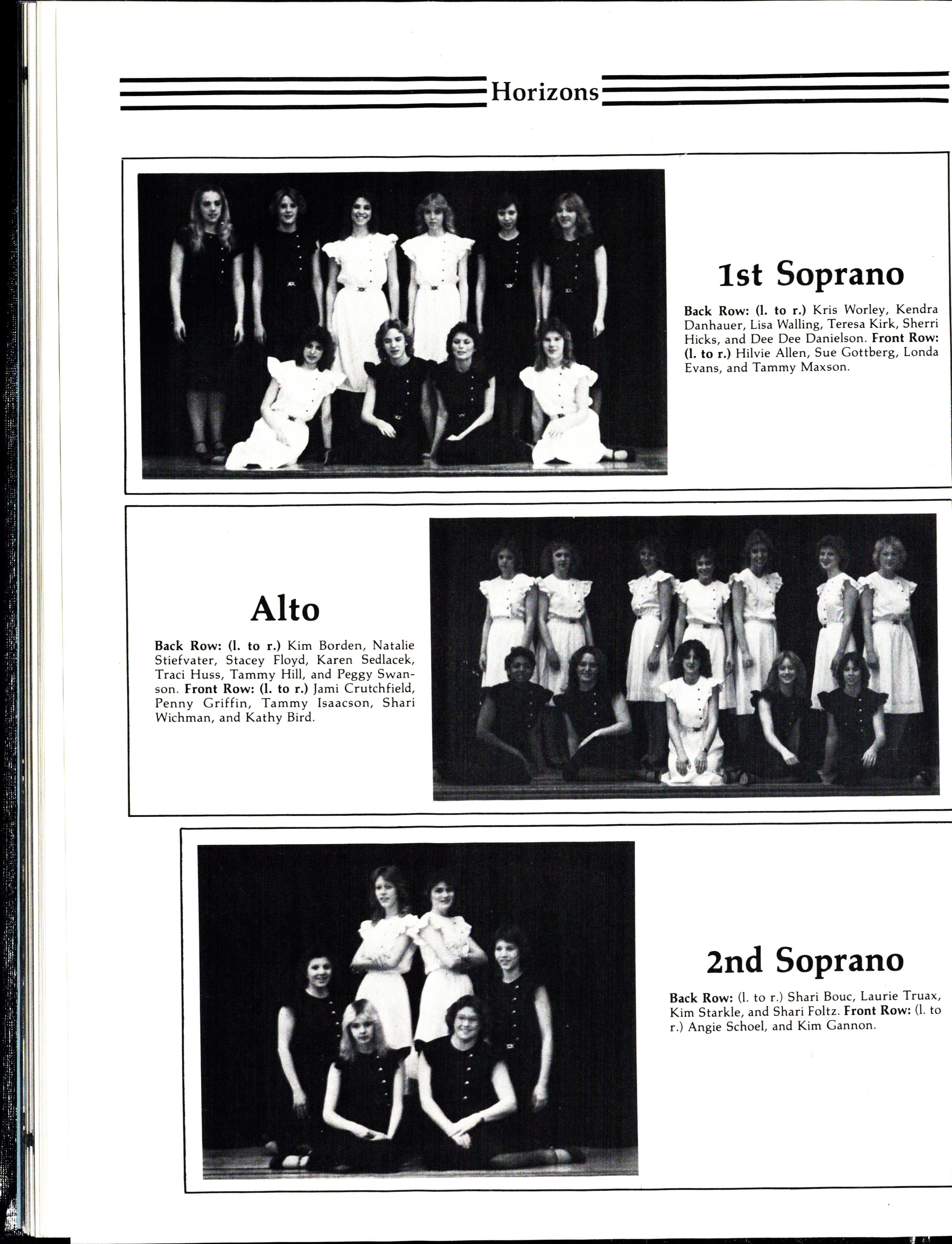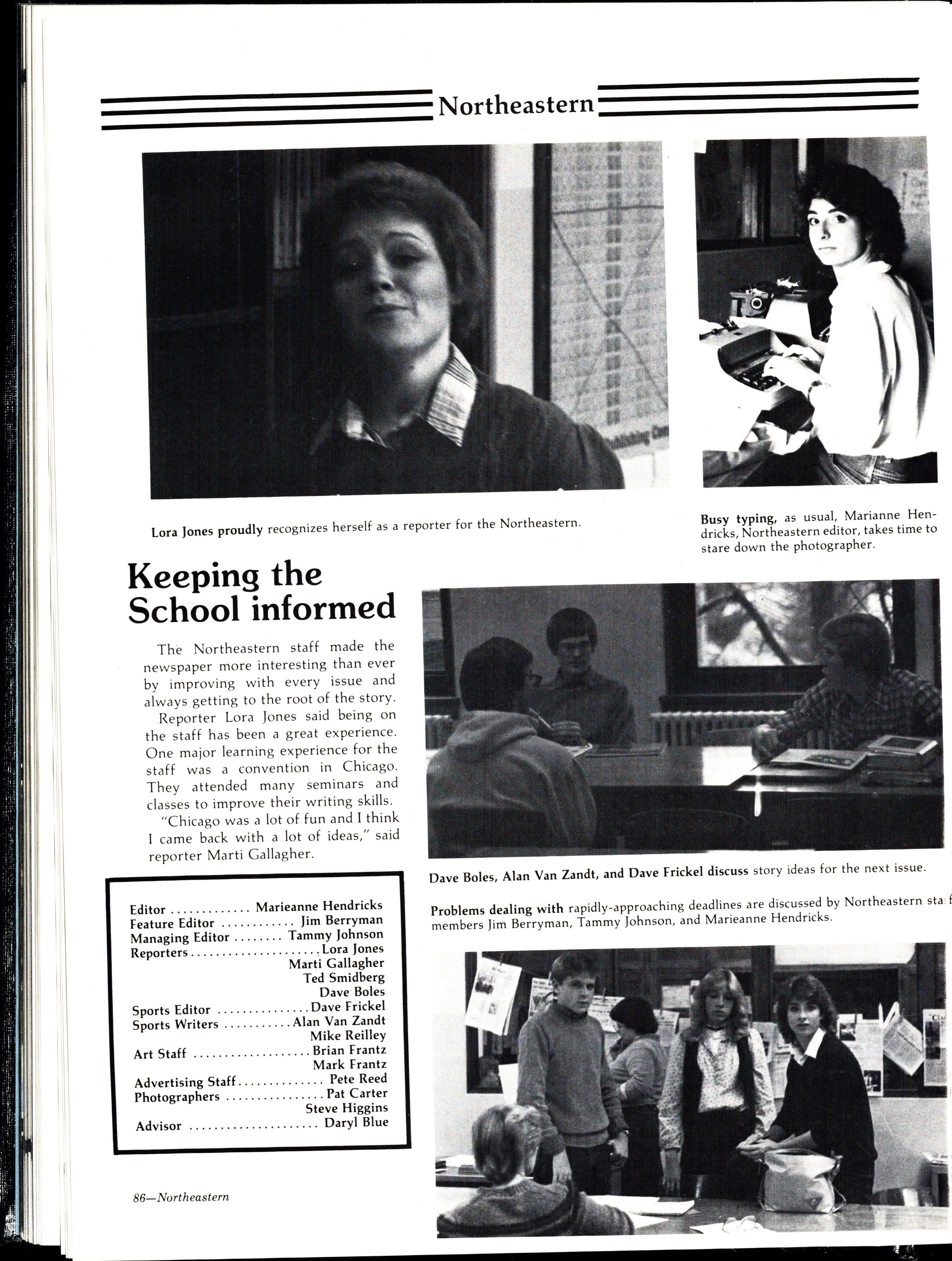 1983 ROCKET Staff (I. tor.) Back Row: Kyle Beals (Sports), Amy Kadavy (Clubs ), Lori Pickerel (Student Section Editor ), Rene Bomberger (Faculty Section Editor), Kathy Smith (Faculty). Third Row: Dawn Zoller (Students), Tammy Johnson (Ad Staff), Shawna Standley (Students) , and Cindy Lesoing (Clu b Section Edito r). Second Row: Steve Higgins (Photographer), Tyra Isaacson (Clu bs ), Doug Kapeller (Photographer-In-Chief), David Scott (Ad Staff) , and Amy Squire (Sports Editor) Front Row: Chris Fusco (Ad Staff), and Jacki Wilke (Sports). •