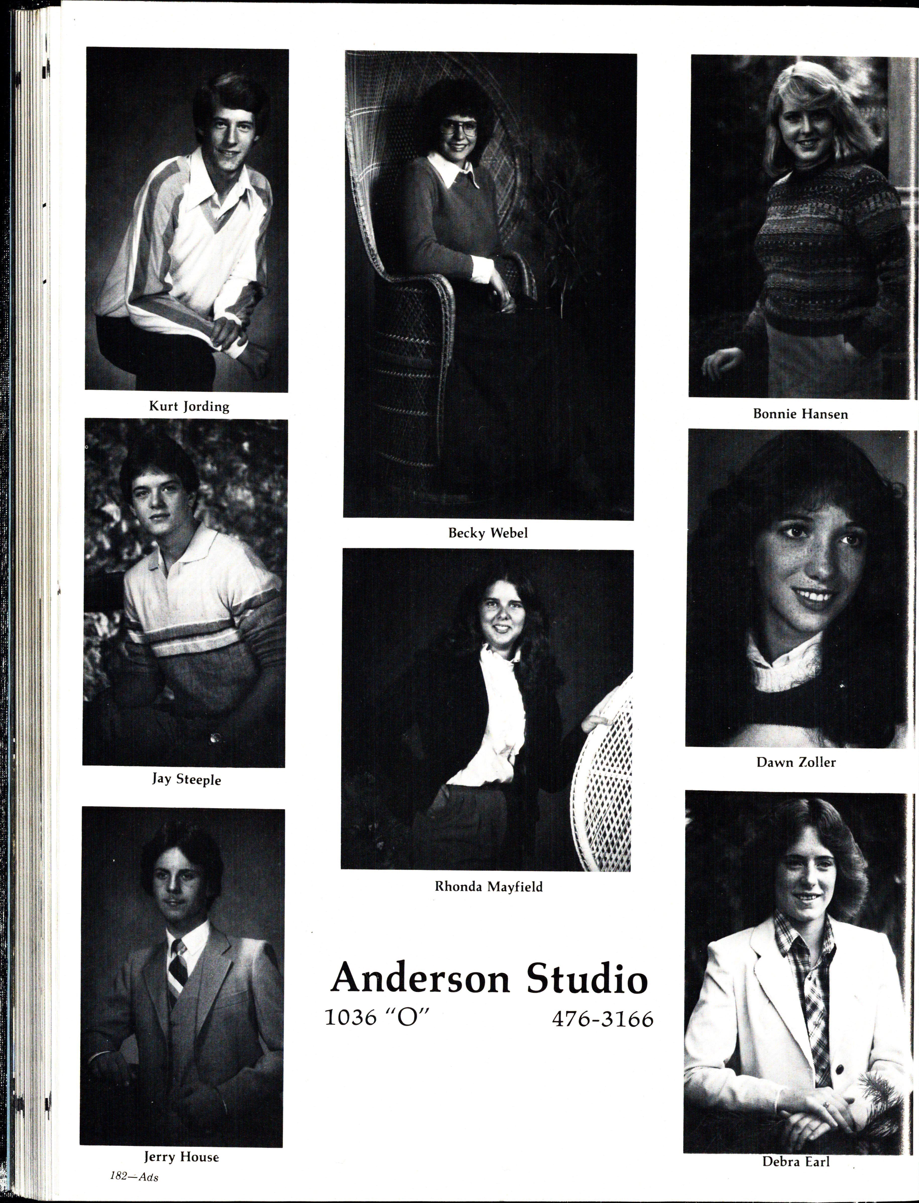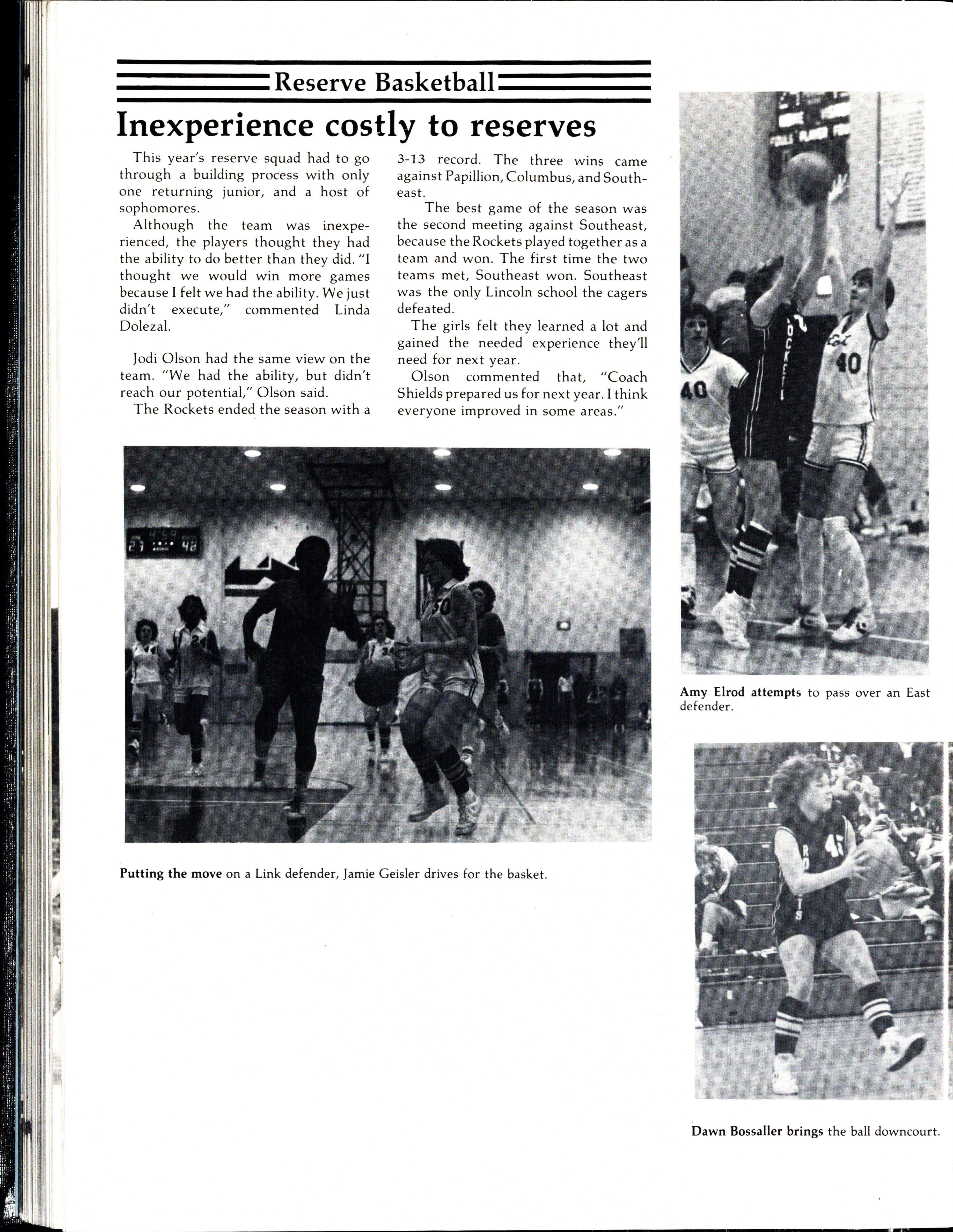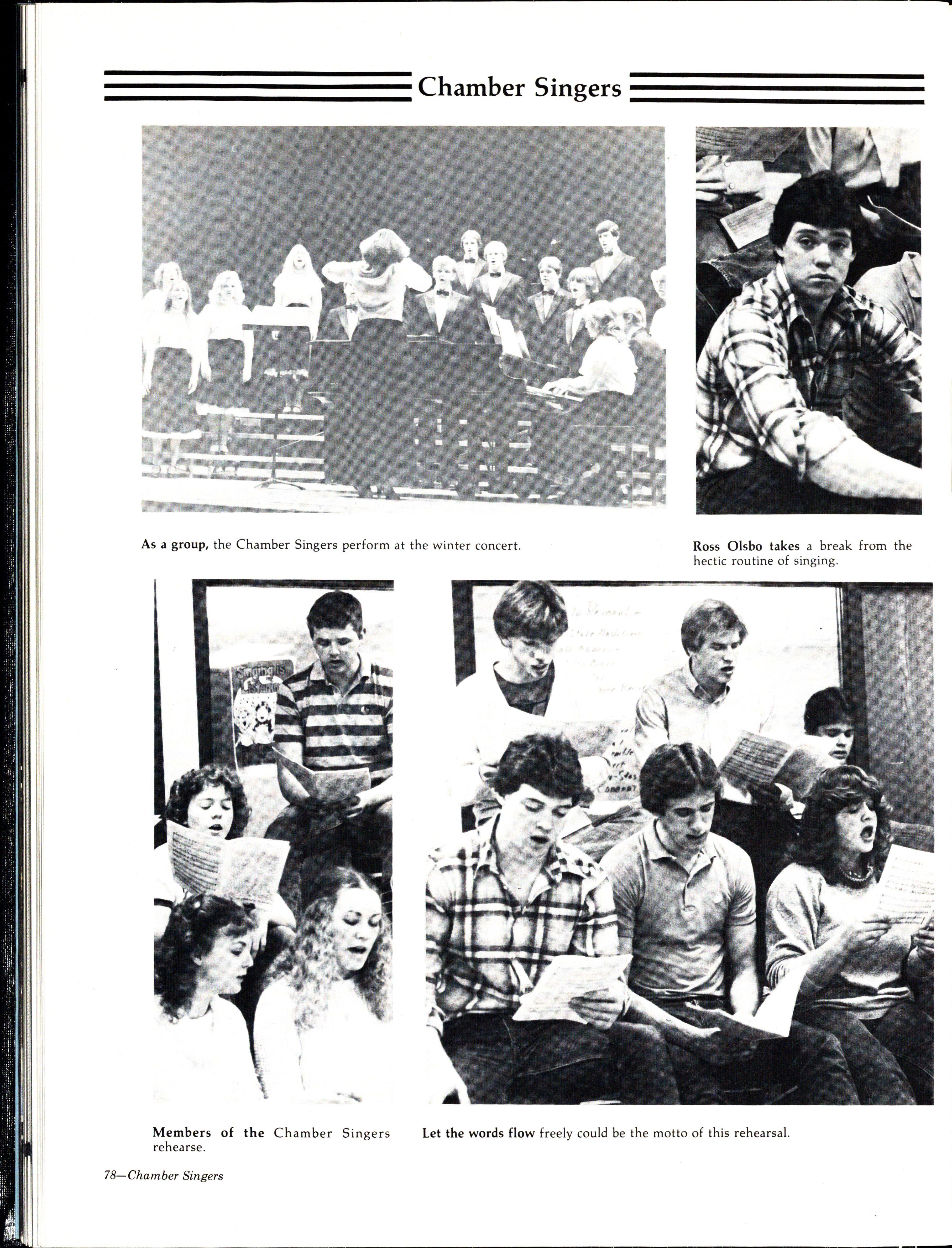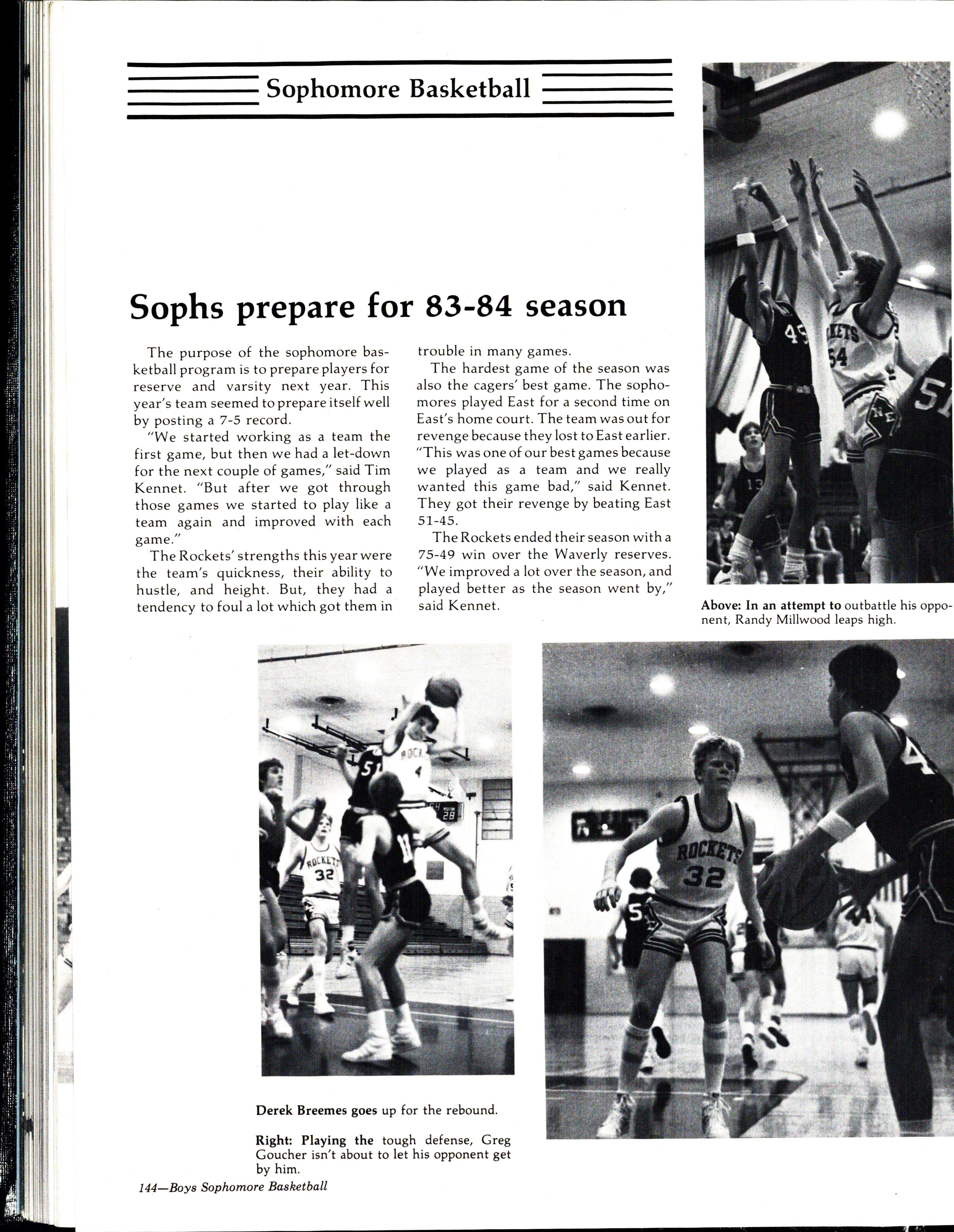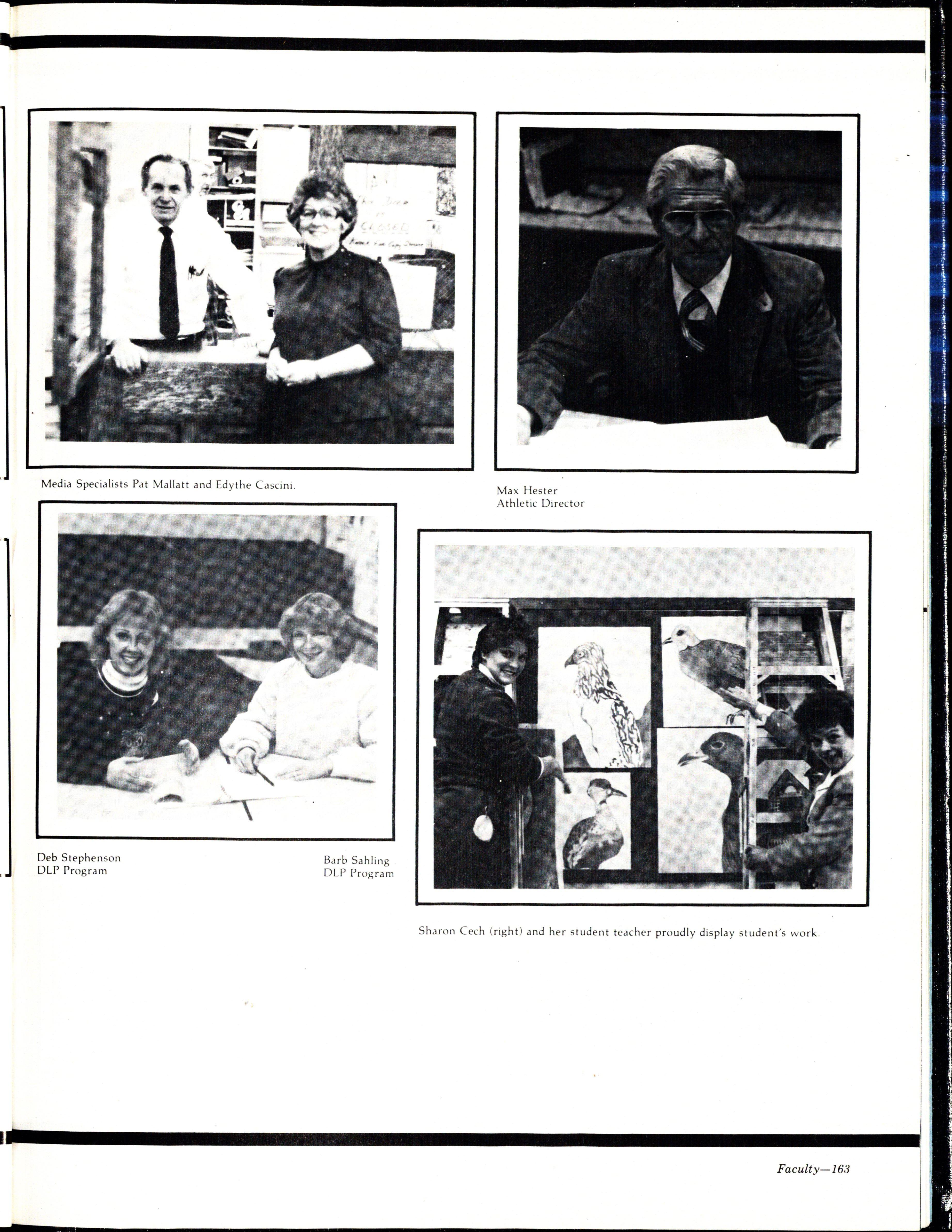 1983 ROCKET Staff (I. tor.) Back Row: Kyle Beals (Sports), Amy Kadavy (Clubs ), Lori Pickerel (Student Section Editor ), Rene Bomberger (Faculty Section Editor), Kathy Smith (Faculty). Third Row: Dawn Zoller (Students), Tammy Johnson (Ad Staff), Shawna Standley (Students) , and Cindy Lesoing (Clu b Section Edito r). Second Row: Steve Higgins (Photographer), Tyra Isaacson (Clu bs ), Doug Kapeller (Photographer-In-Chief), David Scott (Ad Staff) , and Amy Squire (Sports Editor) Front Row: Chris Fusco (Ad Staff), and Jacki Wilke (Sports). •