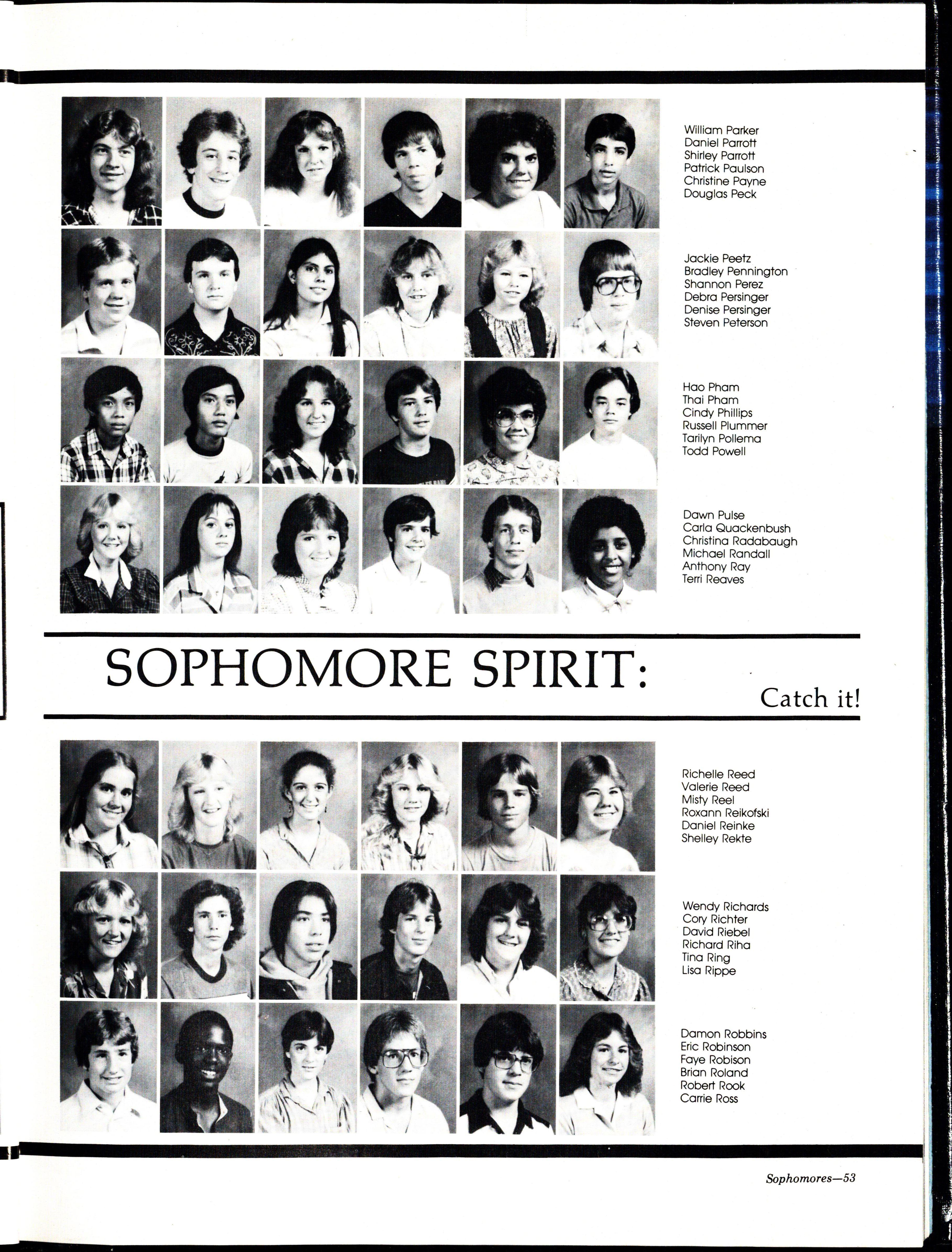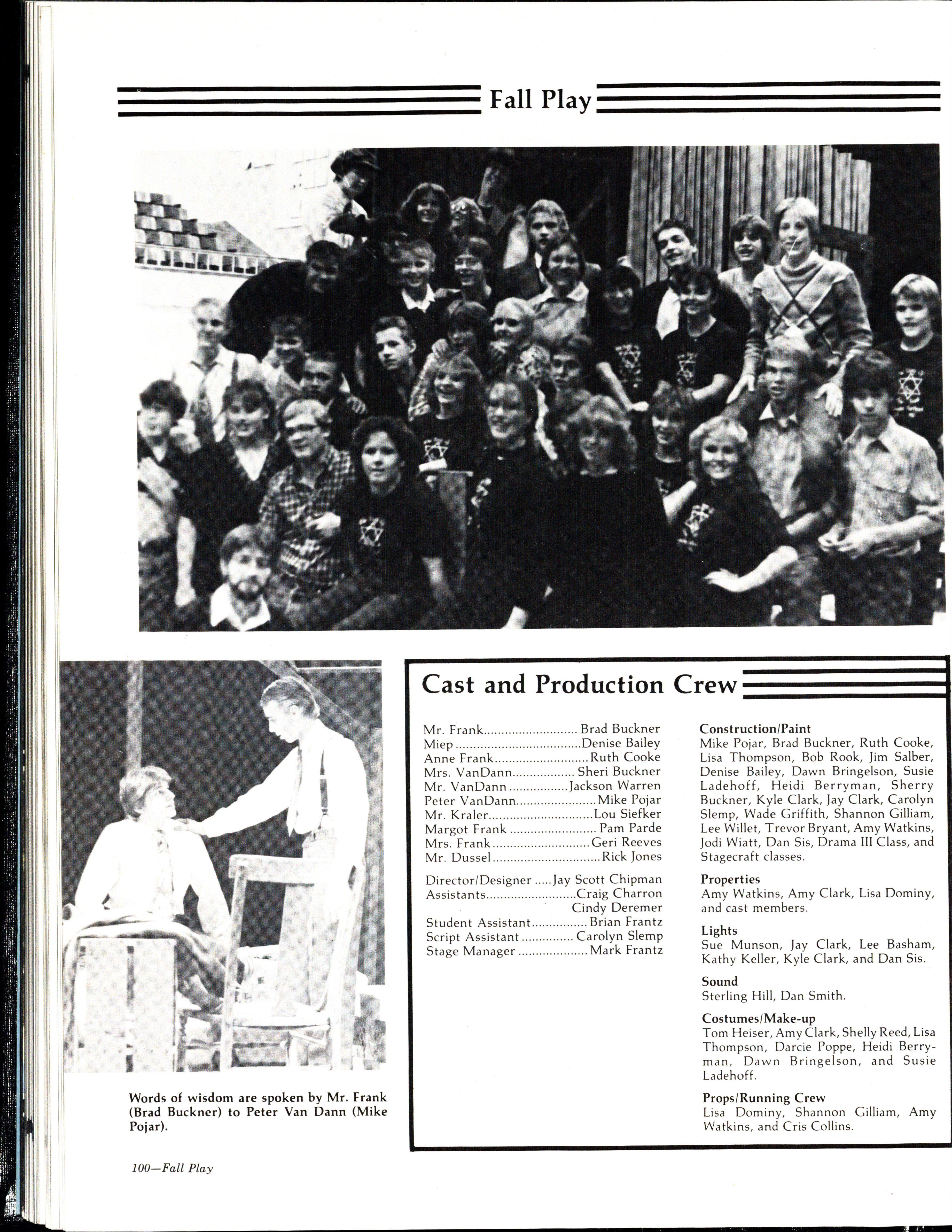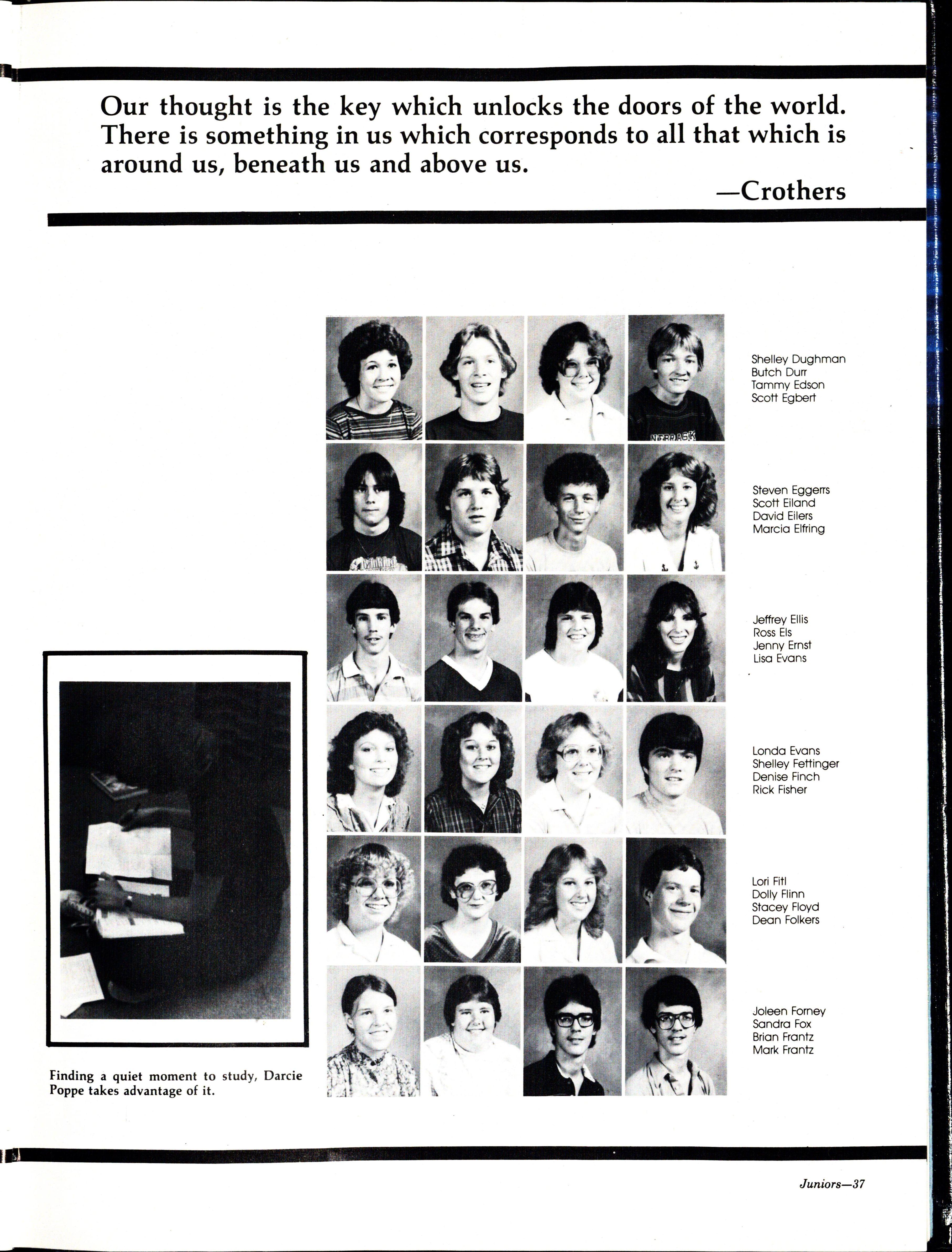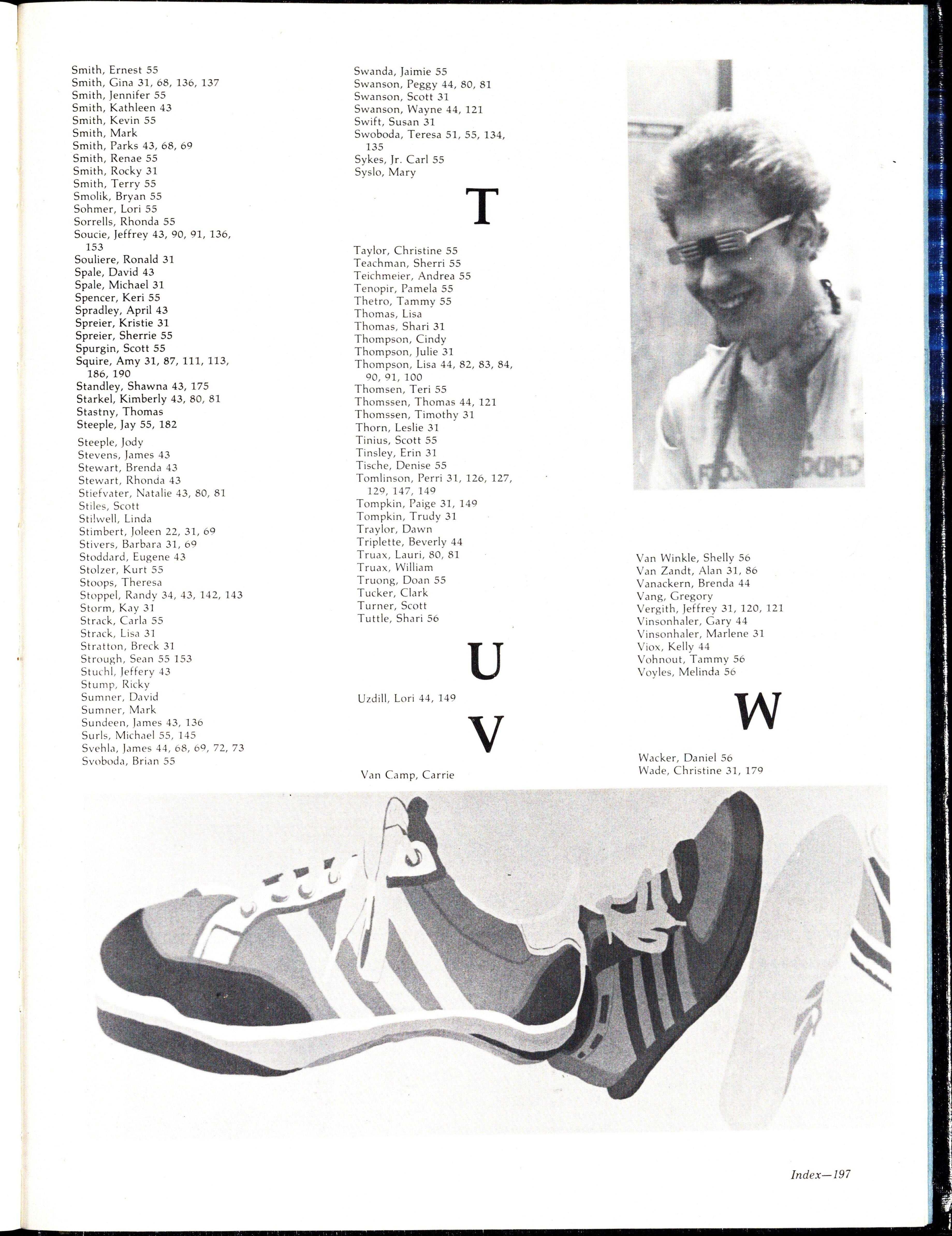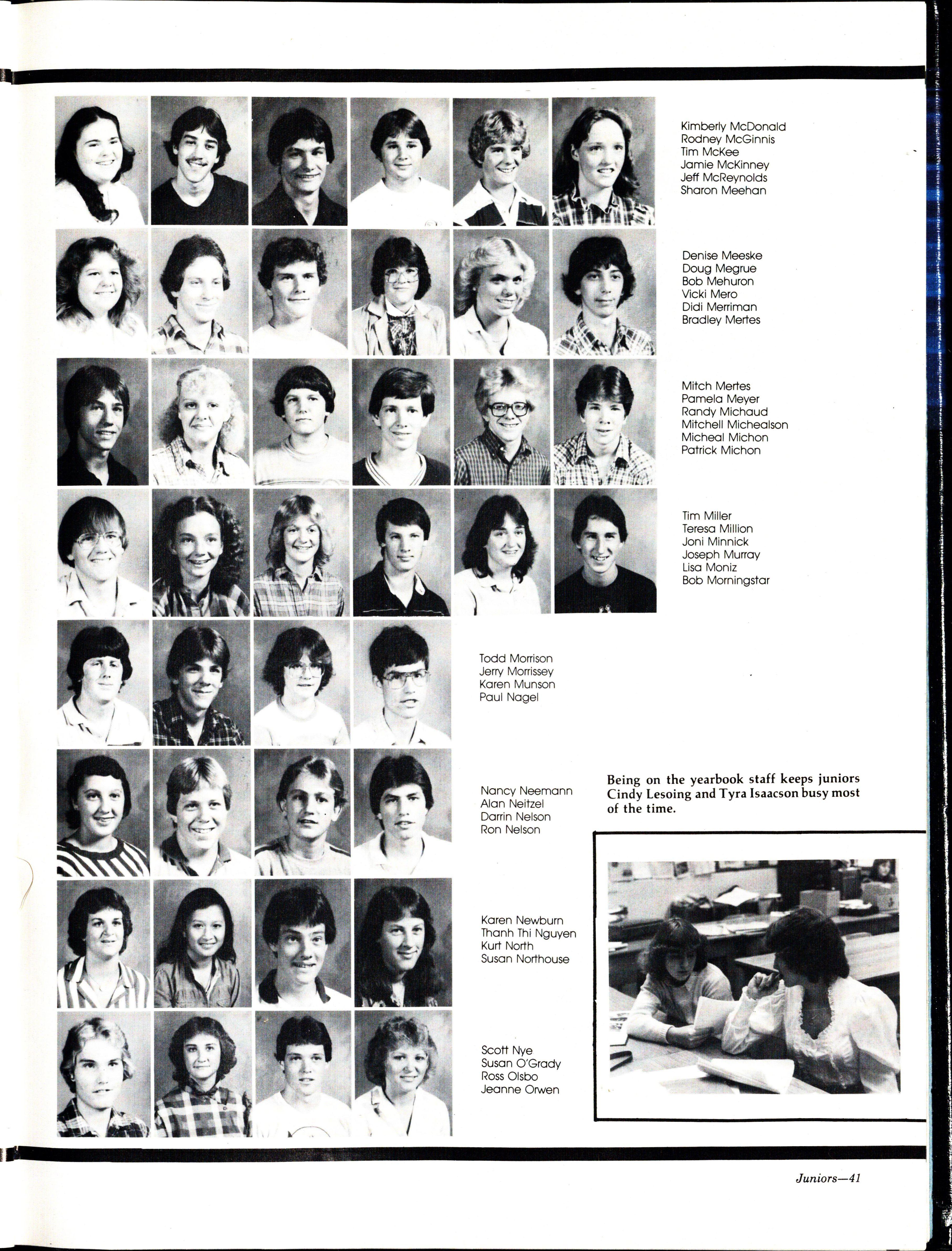 1983 ROCKET Staff (I. tor.) Back Row: Kyle Beals (Sports), Amy Kadavy (Clubs ), Lori Pickerel (Student Section Editor ), Rene Bomberger (Faculty Section Editor), Kathy Smith (Faculty). Third Row: Dawn Zoller (Students), Tammy Johnson (Ad Staff), Shawna Standley (Students) , and Cindy Lesoing (Clu b Section Edito r). Second Row: Steve Higgins (Photographer), Tyra Isaacson (Clu bs ), Doug Kapeller (Photographer-In-Chief), David Scott (Ad Staff) , and Amy Squire (Sports Editor) Front Row: Chris Fusco (Ad Staff), and Jacki Wilke (Sports). •