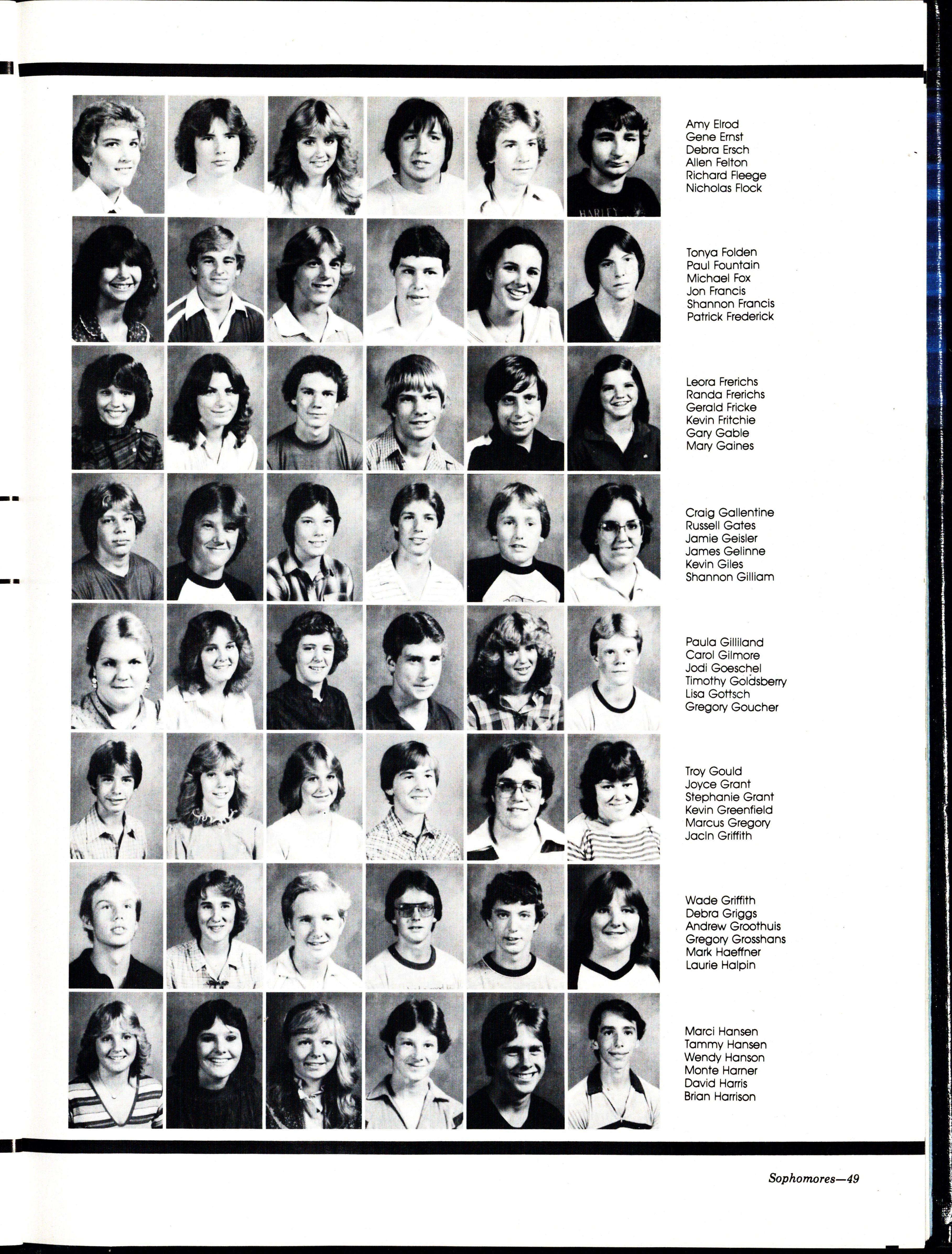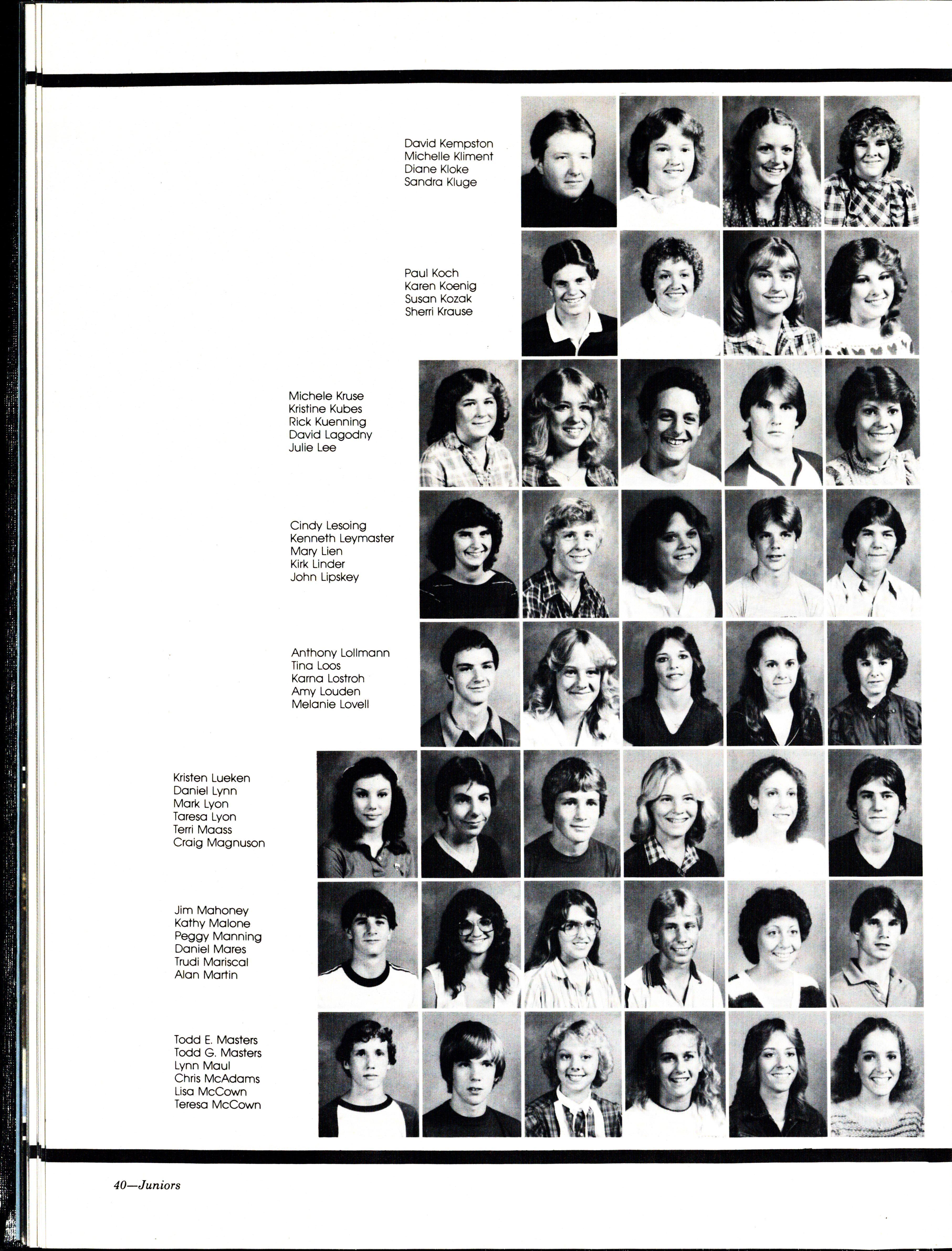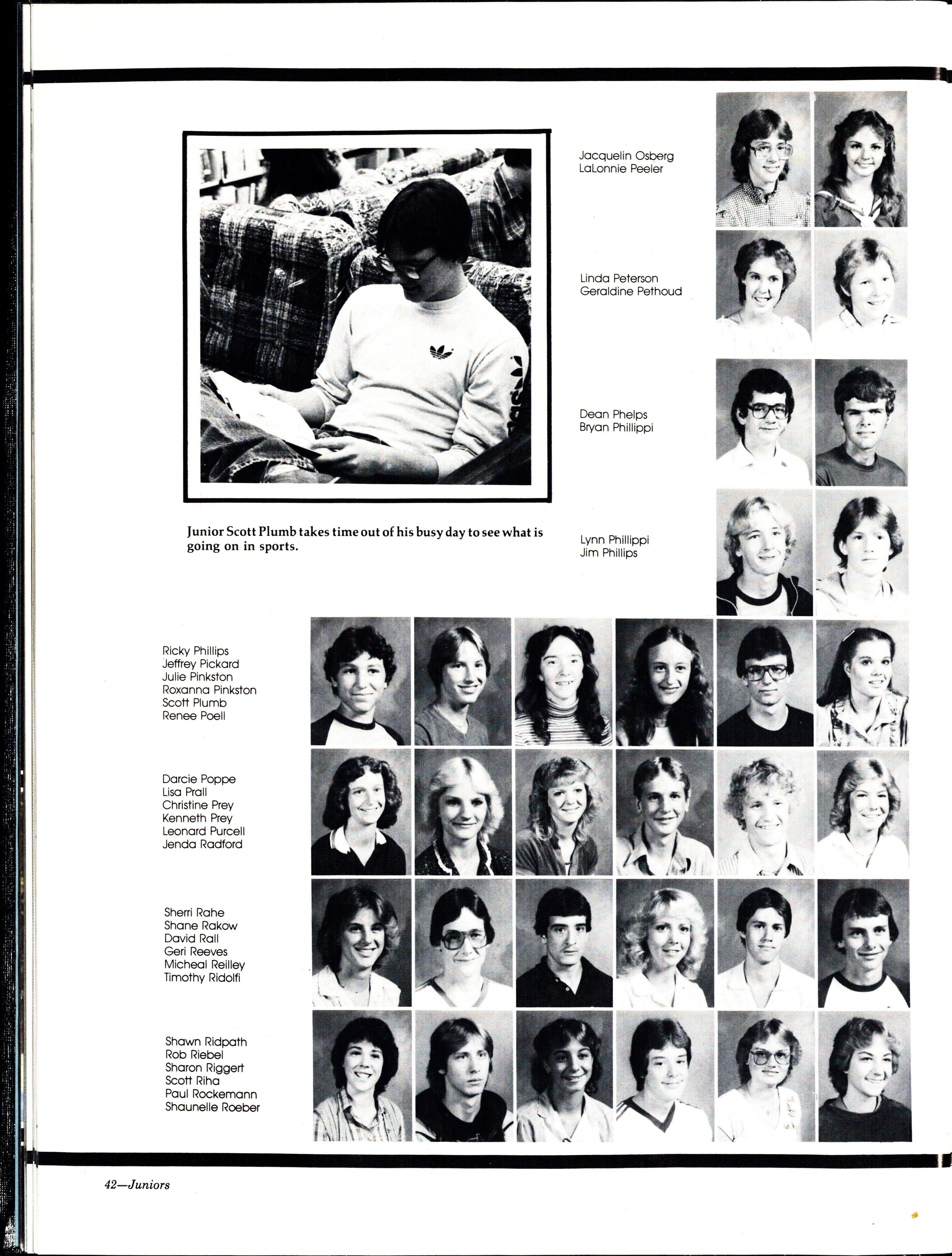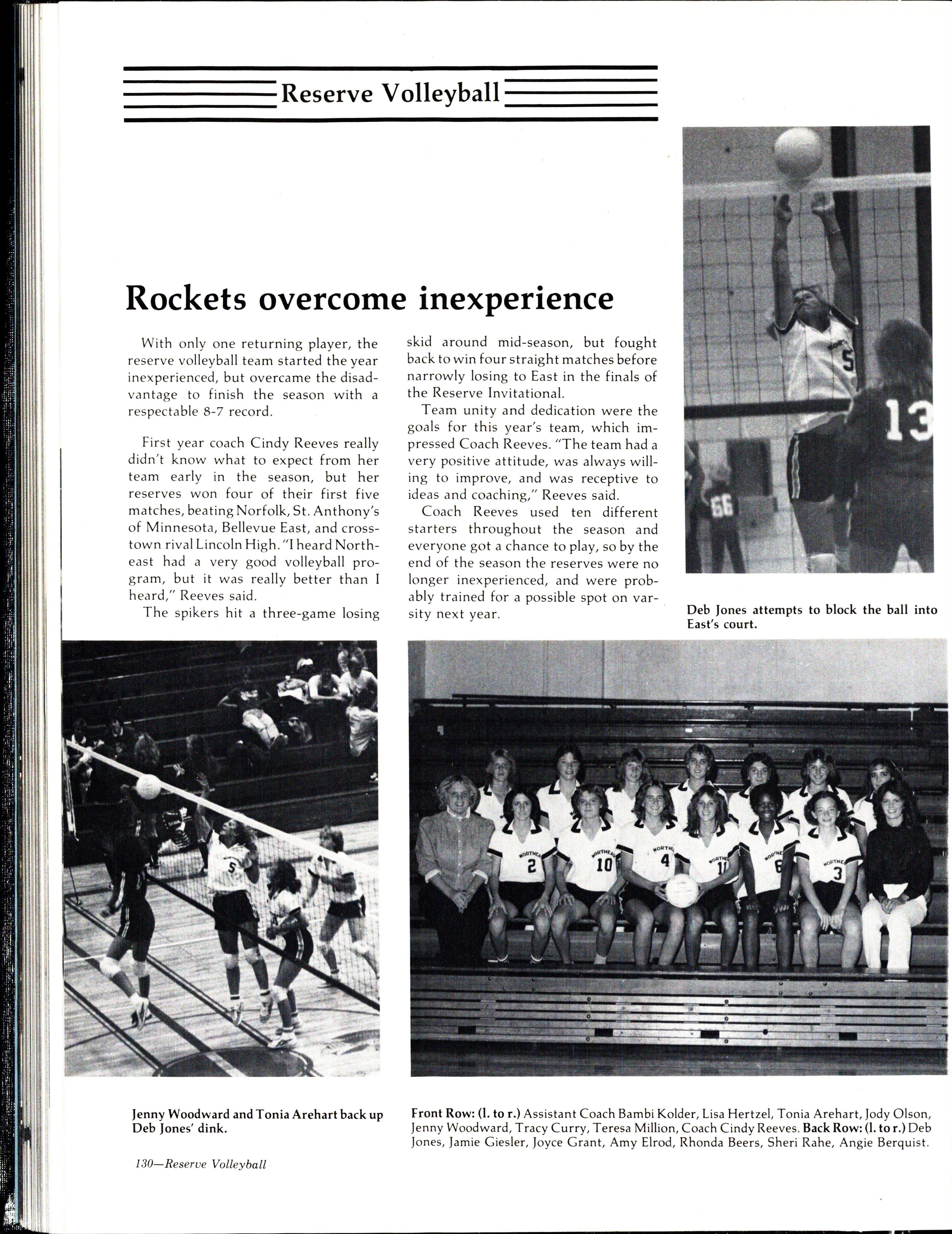 1983 ROCKET Staff (I. tor.) Back Row: Kyle Beals (Sports), Amy Kadavy (Clubs ), Lori Pickerel (Student Section Editor ), Rene Bomberger (Faculty Section Editor), Kathy Smith (Faculty). Third Row: Dawn Zoller (Students), Tammy Johnson (Ad Staff), Shawna Standley (Students) , and Cindy Lesoing (Clu b Section Edito r). Second Row: Steve Higgins (Photographer), Tyra Isaacson (Clu bs ), Doug Kapeller (Photographer-In-Chief), David Scott (Ad Staff) , and Amy Squire (Sports Editor) Front Row: Chris Fusco (Ad Staff), and Jacki Wilke (Sports). •