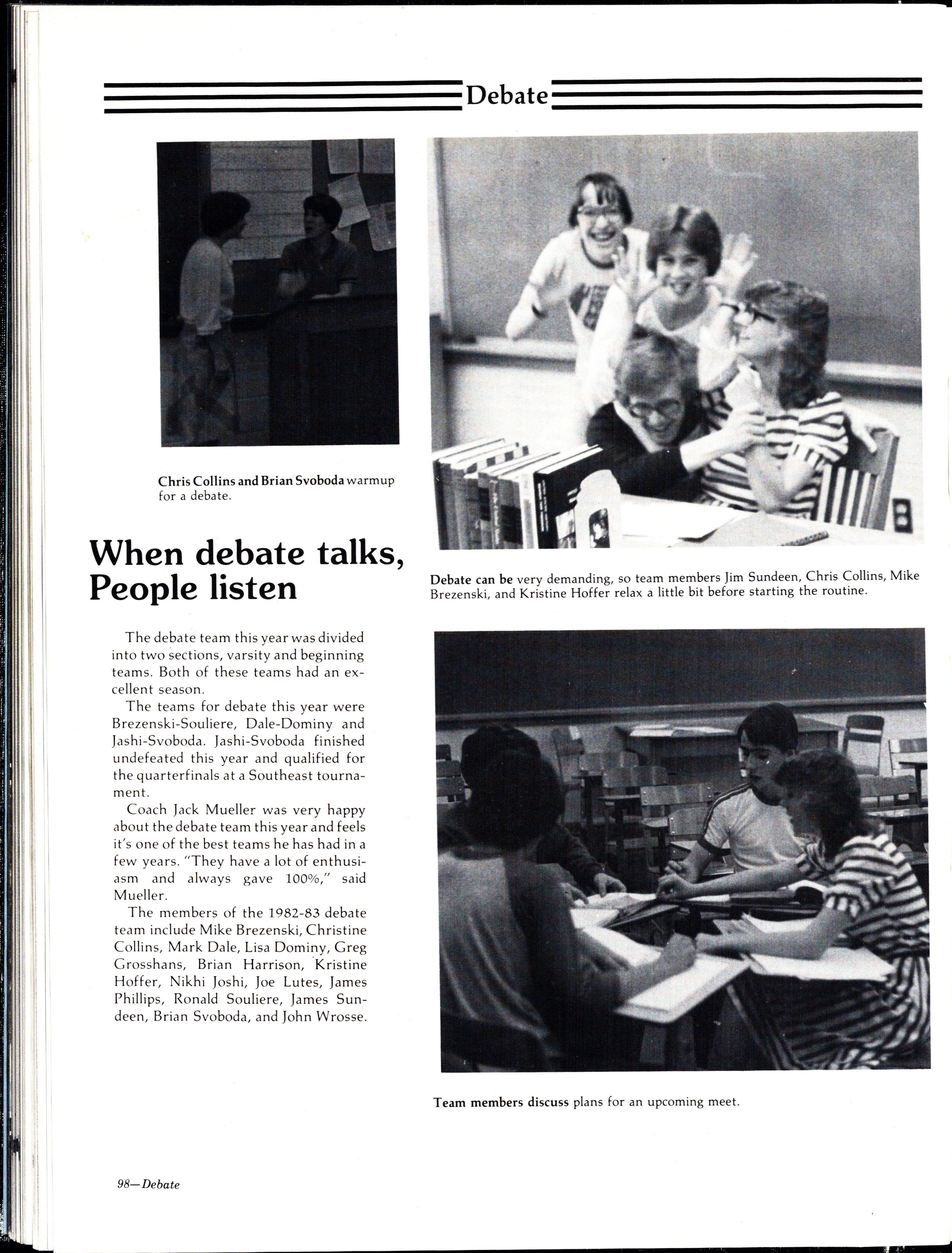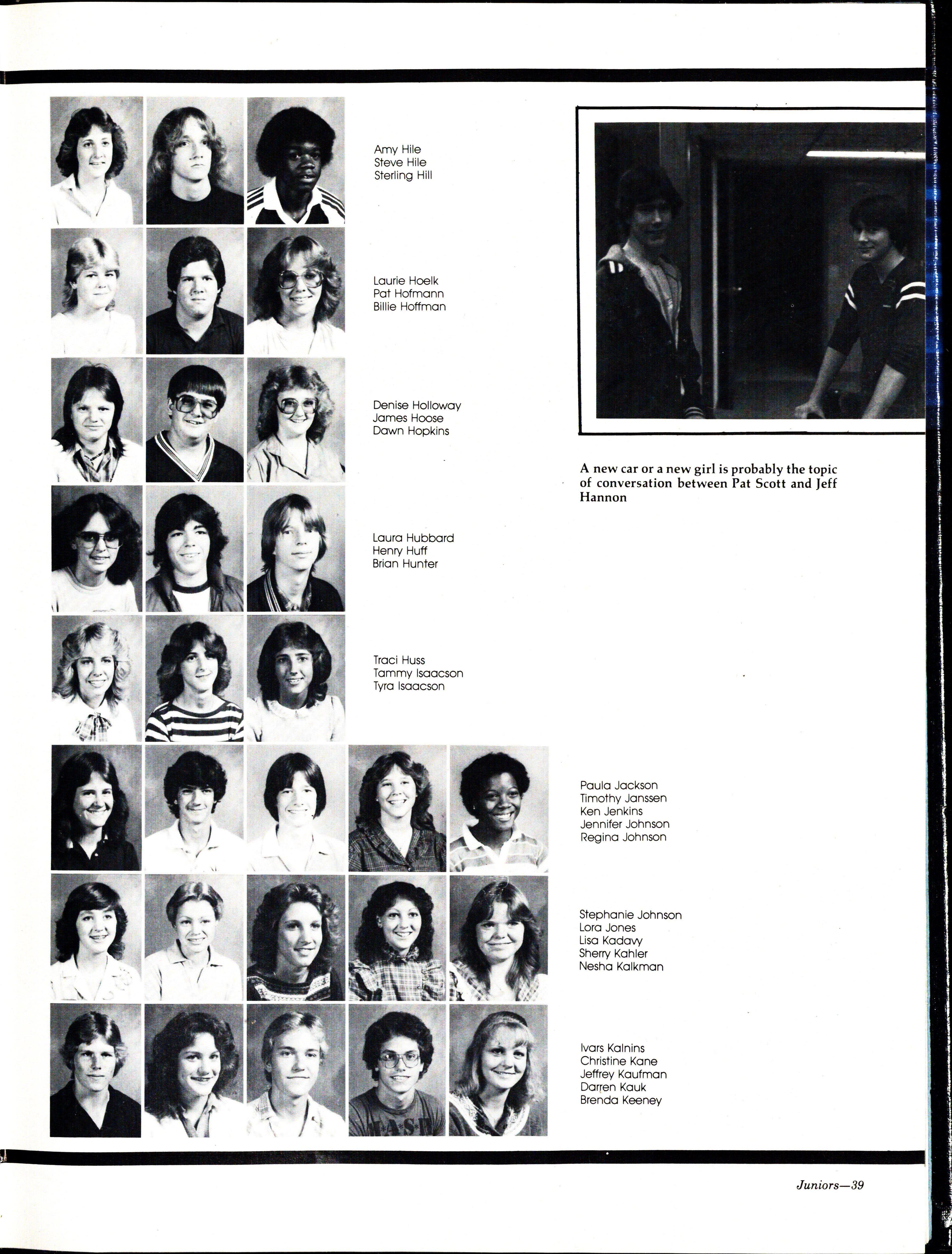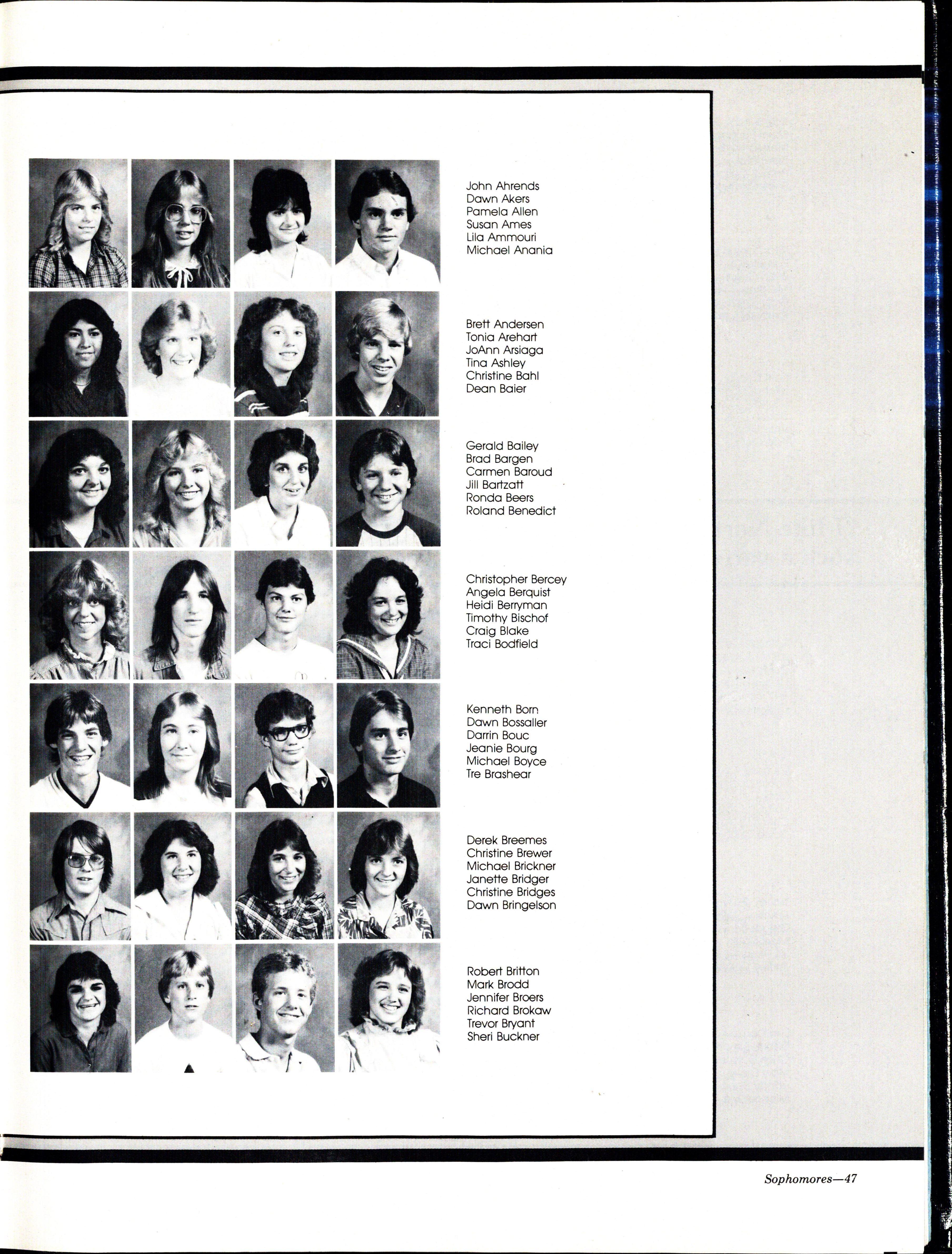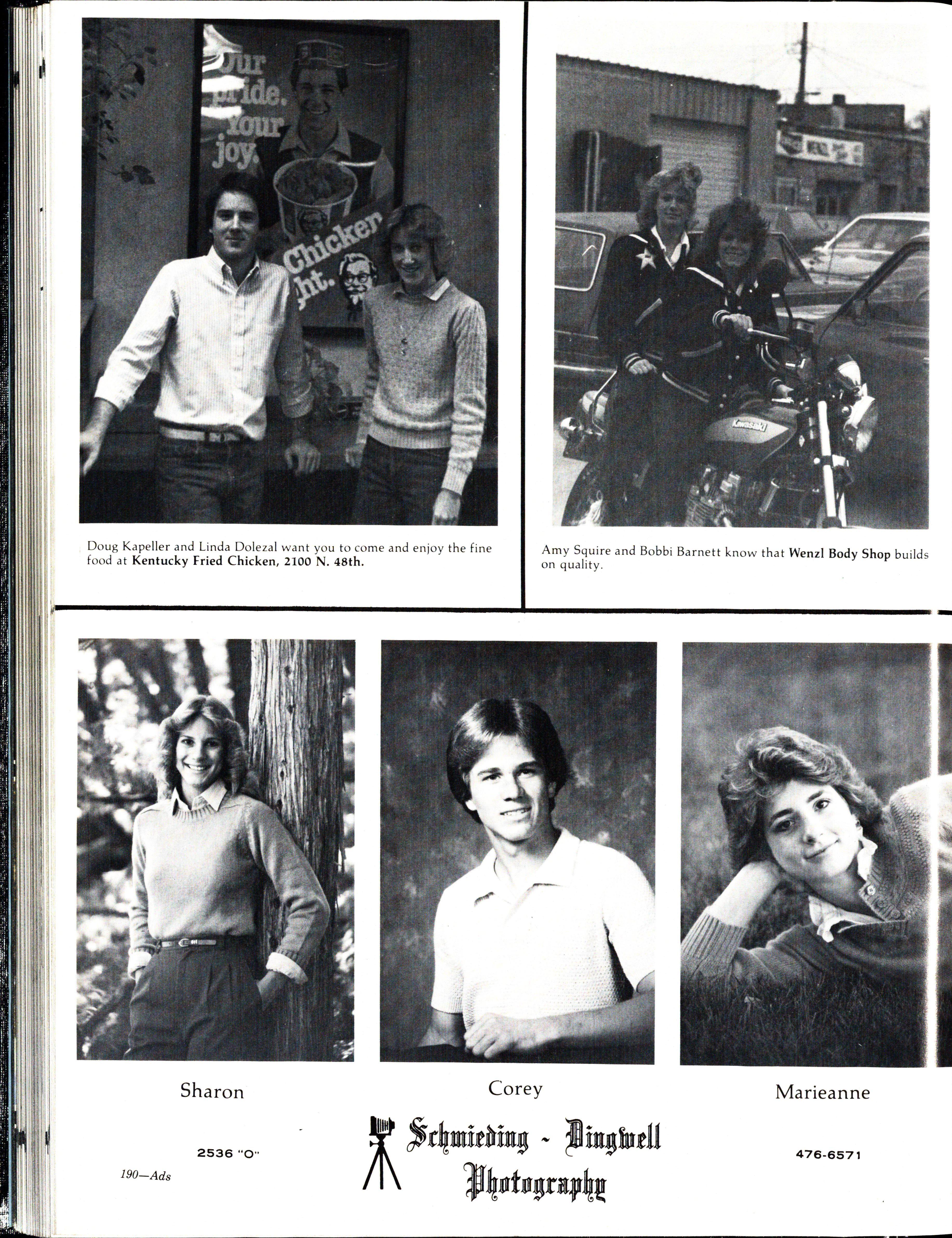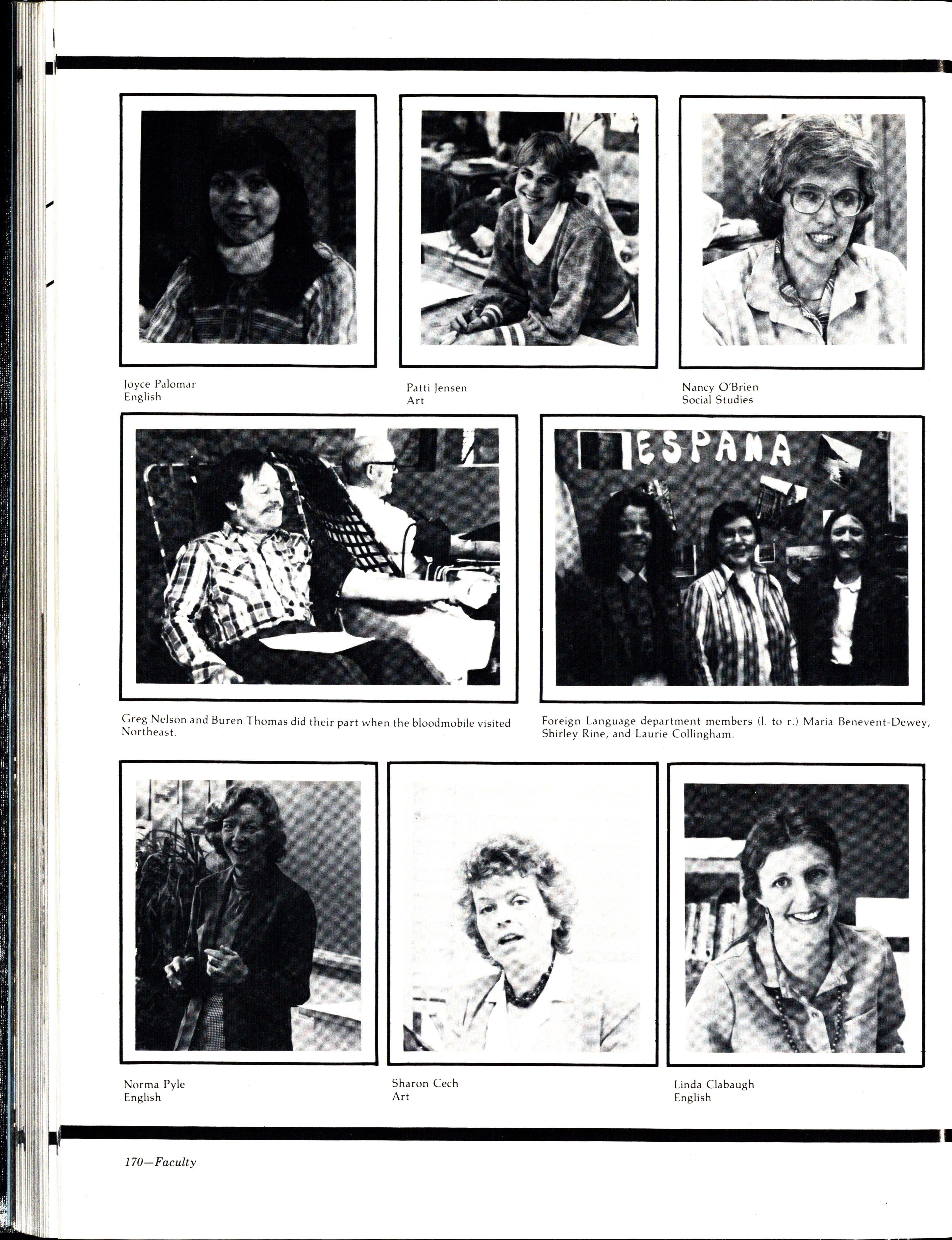 1983 ROCKET Staff (I. tor.) Back Row: Kyle Beals (Sports), Amy Kadavy (Clubs ), Lori Pickerel (Student Section Editor ), Rene Bomberger (Faculty Section Editor), Kathy Smith (Faculty). Third Row: Dawn Zoller (Students), Tammy Johnson (Ad Staff), Shawna Standley (Students) , and Cindy Lesoing (Clu b Section Edito r). Second Row: Steve Higgins (Photographer), Tyra Isaacson (Clu bs ), Doug Kapeller (Photographer-In-Chief), David Scott (Ad Staff) , and Amy Squire (Sports Editor) Front Row: Chris Fusco (Ad Staff), and Jacki Wilke (Sports). •