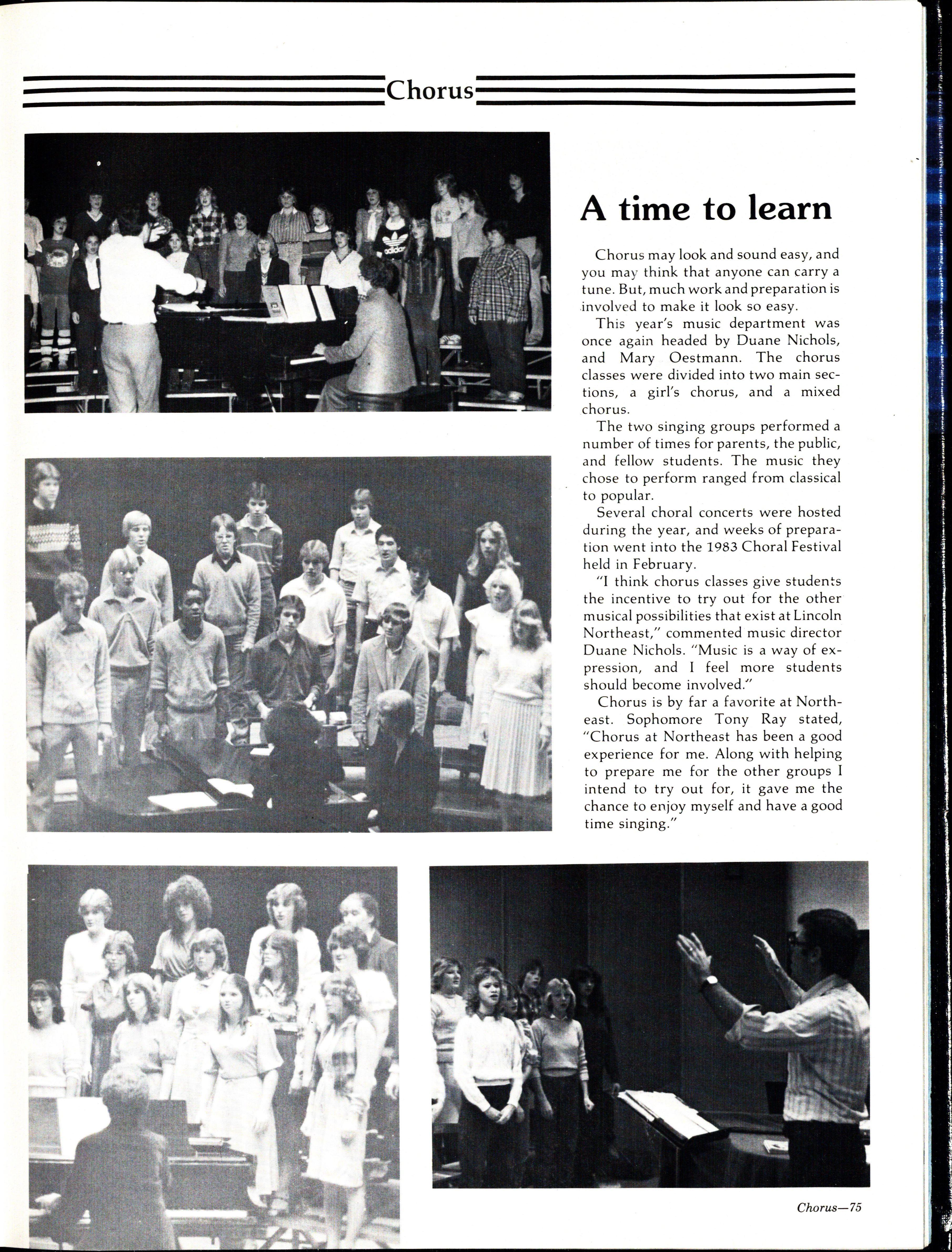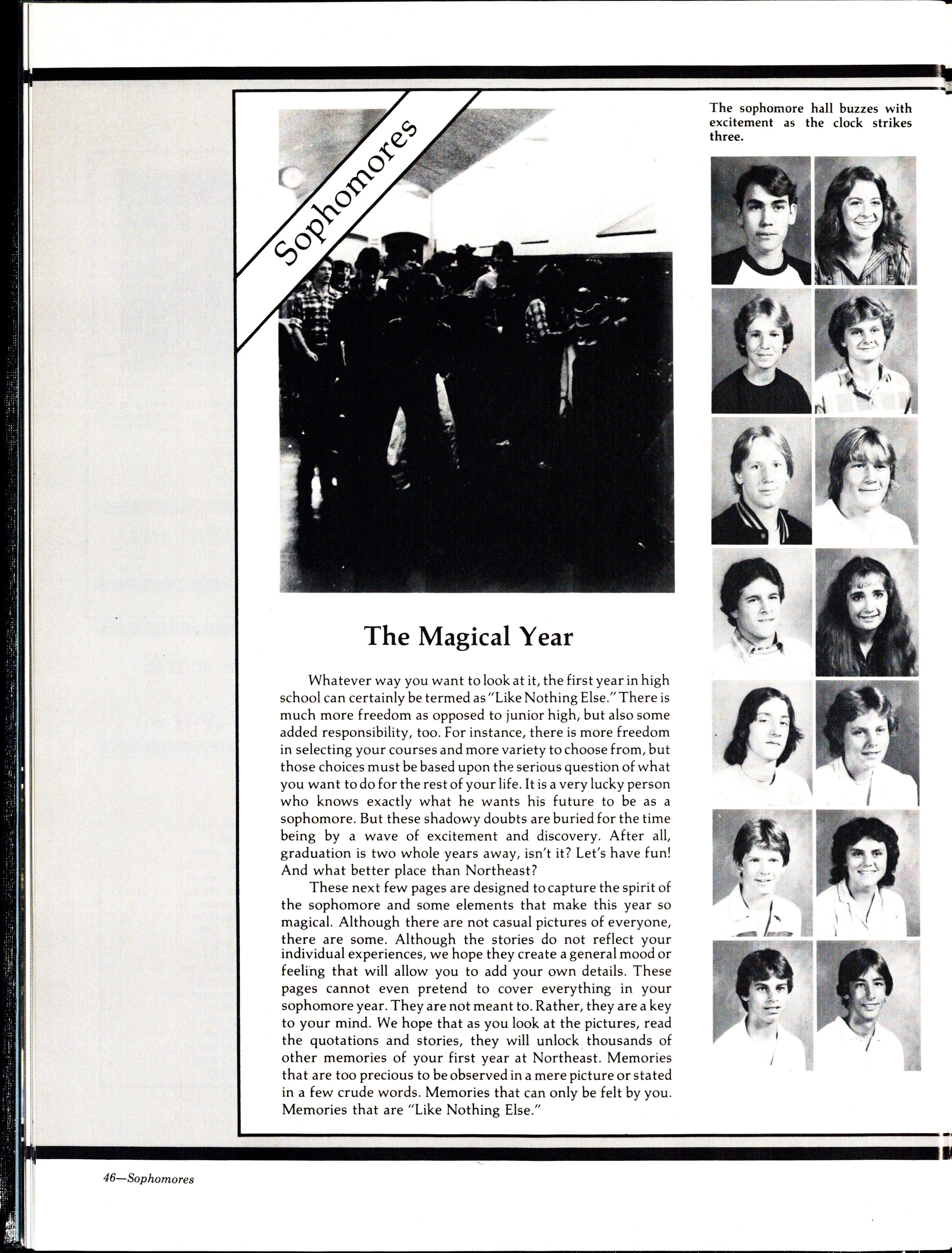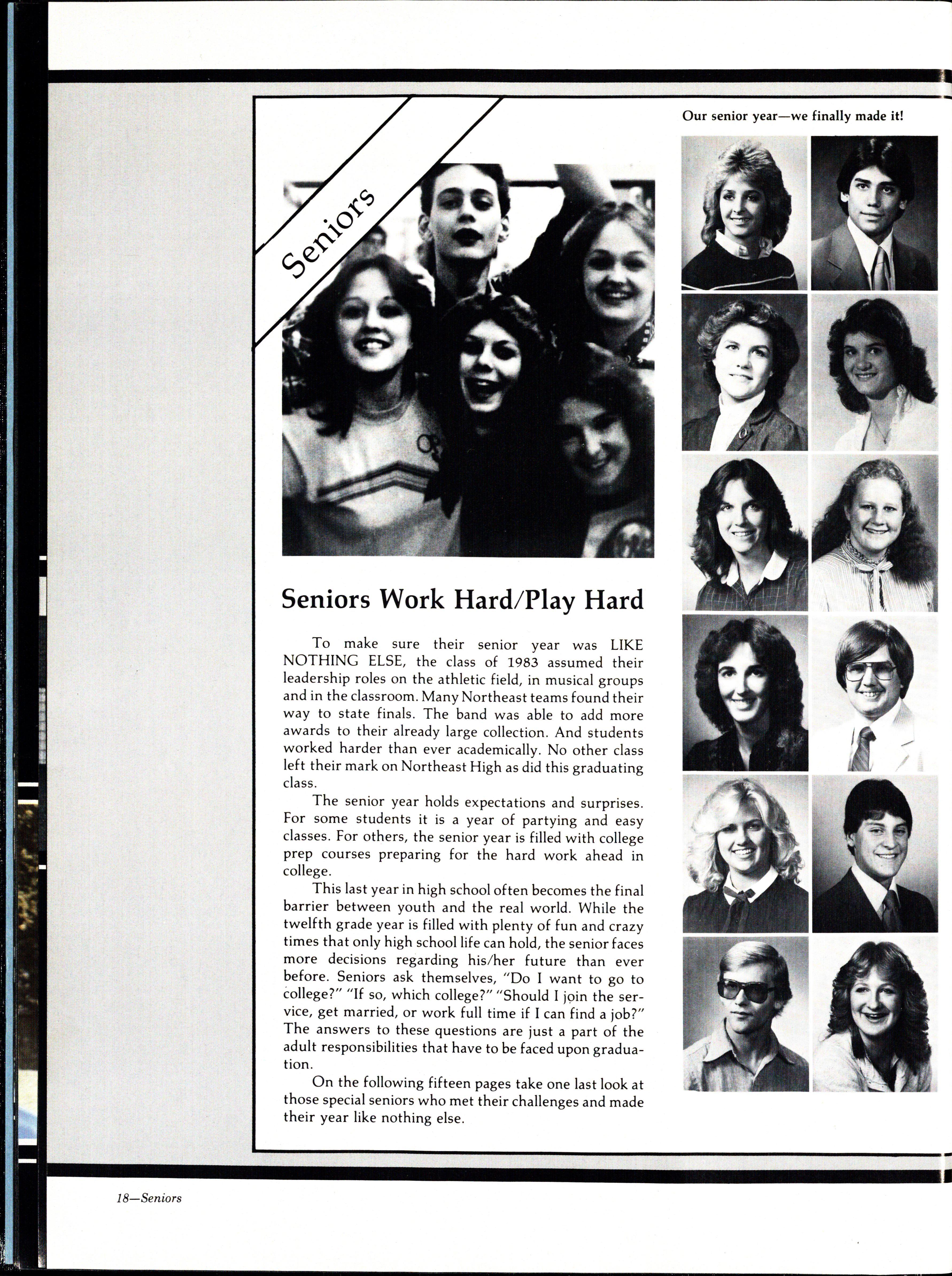 To make sure their senior year was LIKE NOTHING ELSE, the class of 1983 assumed their leadership roles on the athletic field, in musical groups and in the classroom Many Northeast teams found their way to state finals. The band was able to add more awards to their already large collection. And students worked harder than ever academically. No other class left their mark on Northeast High as did this graduating class