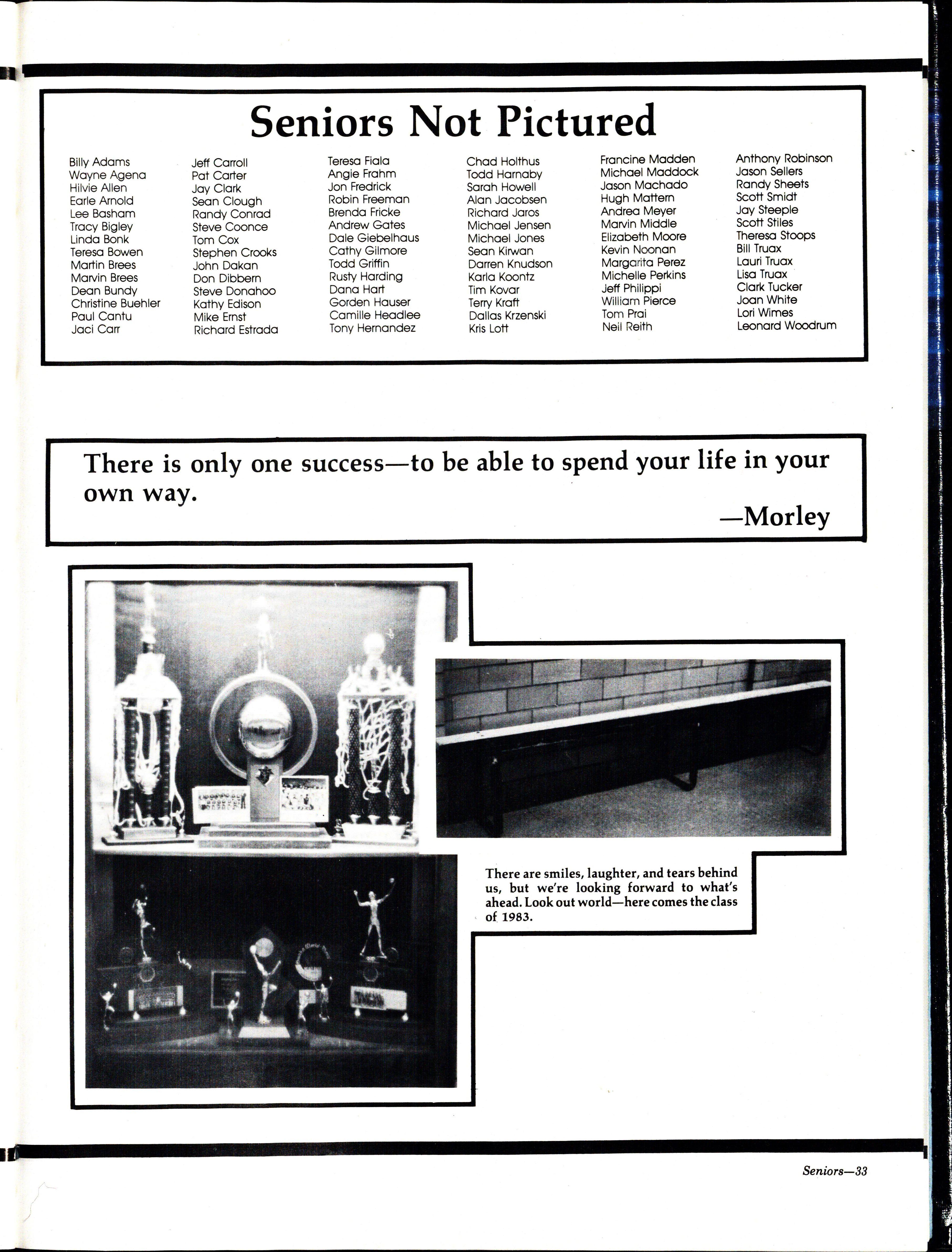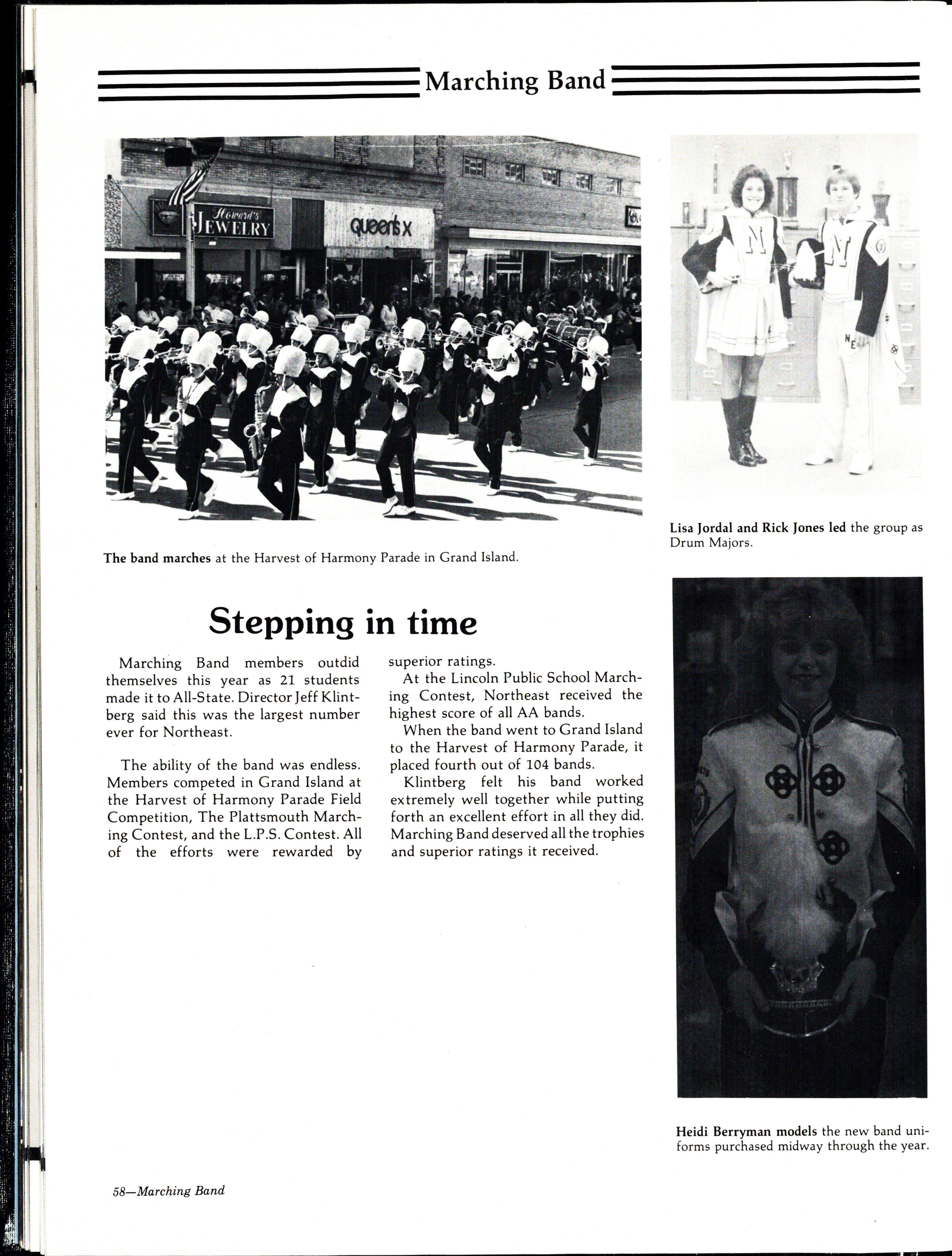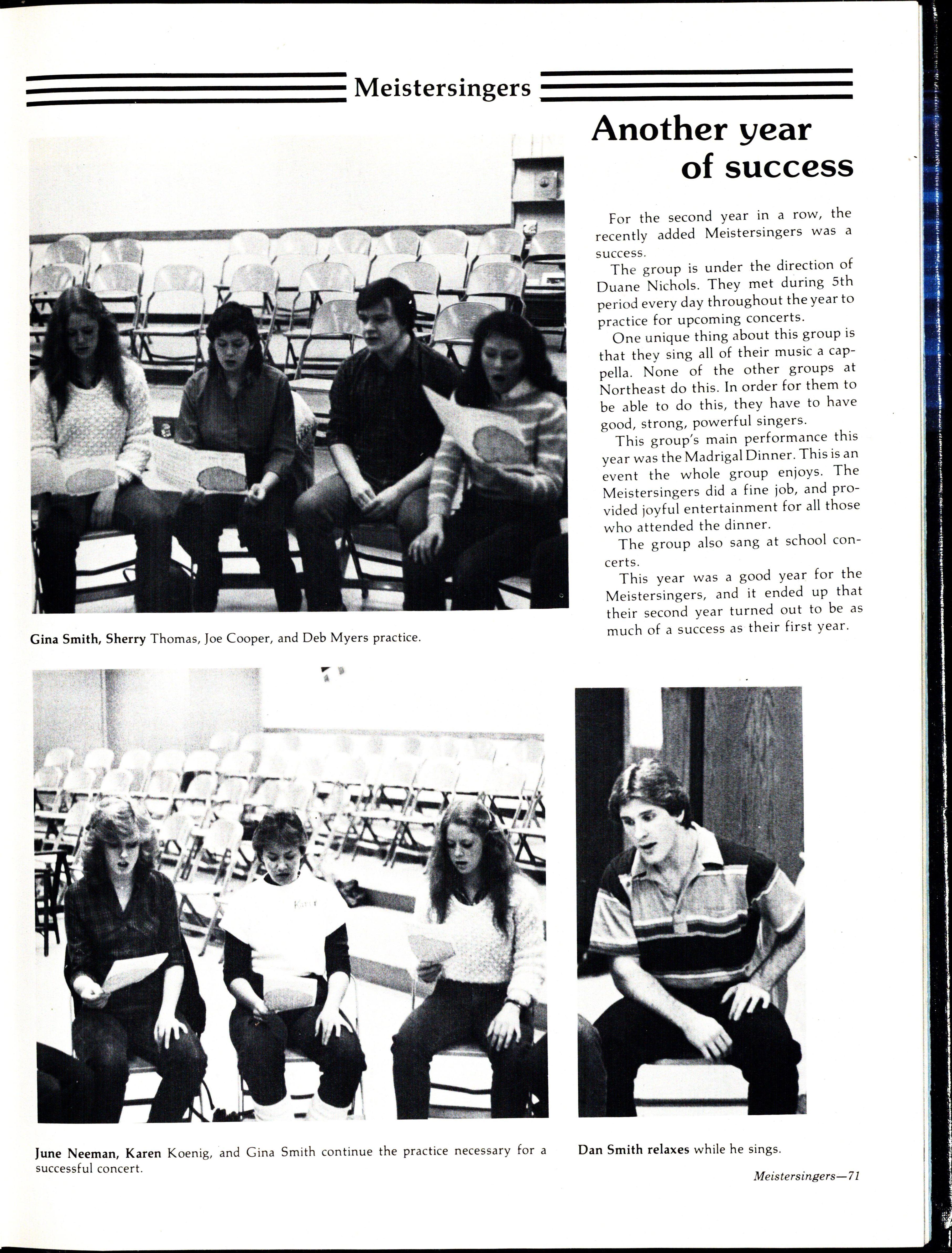 To make sure their senior year was LIKE NOTHING ELSE, the class of 1983 assumed their leadership roles on the athletic field, in musical groups and in the classroom Many Northeast teams found their way to state finals. The band was able to add more awards to their already large collection. And students worked harder than ever academically. No other class left their mark on Northeast High as did this graduating class