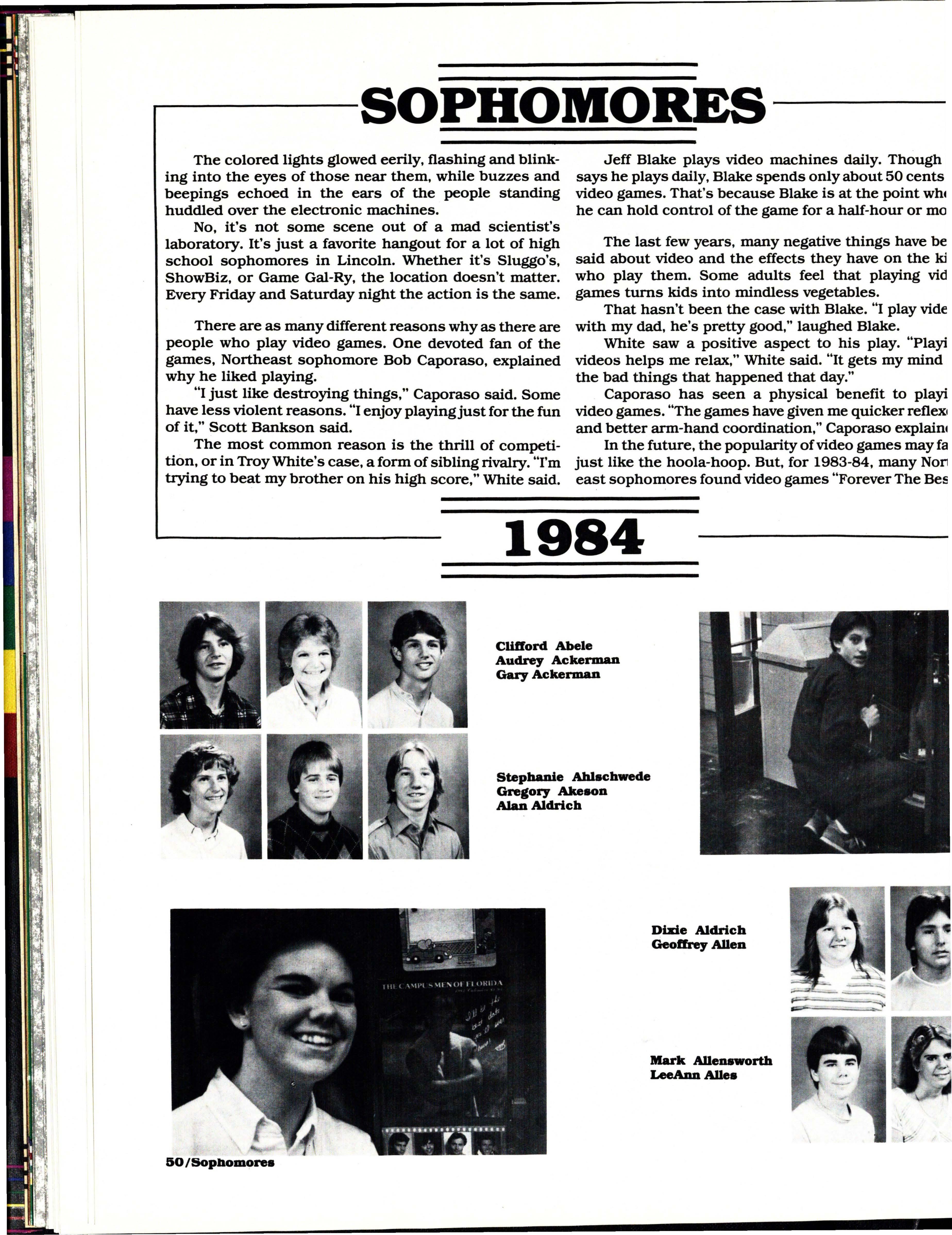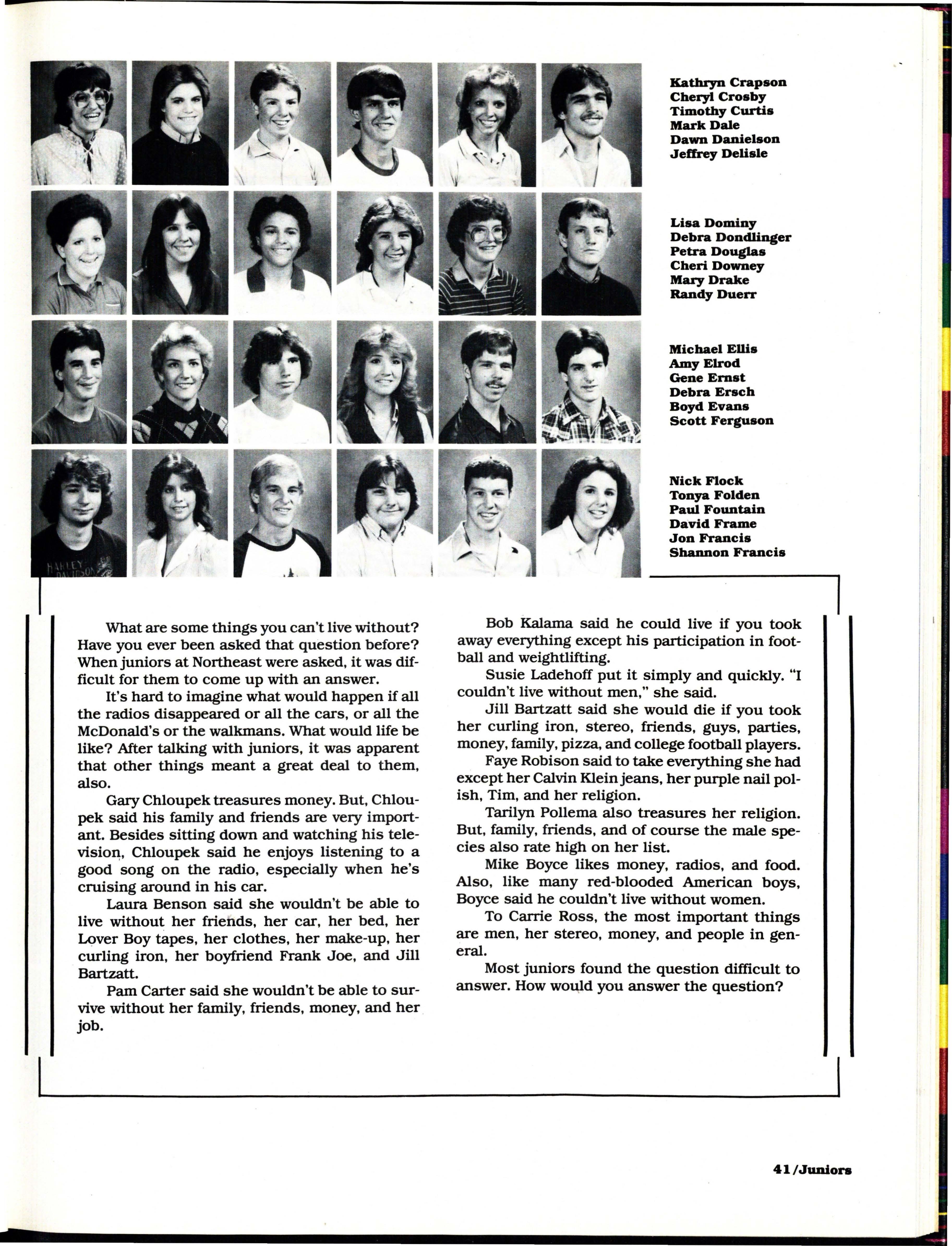 About 1.400 students made the halls and classrooms of Northeast their home for a few hours each day during the 1983-84 school year. Take a stroll down memory lane and see how many faces you can recognize 66-125