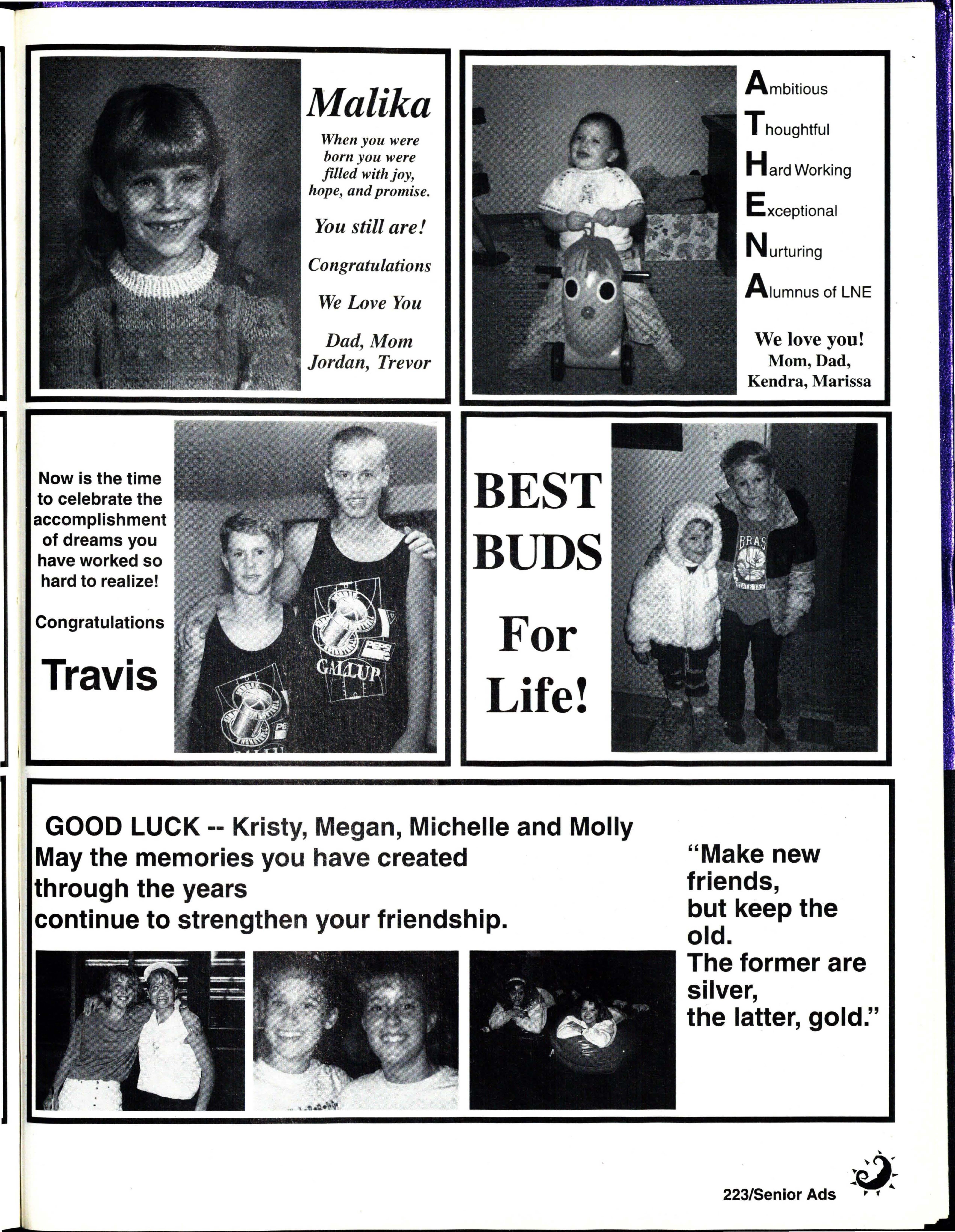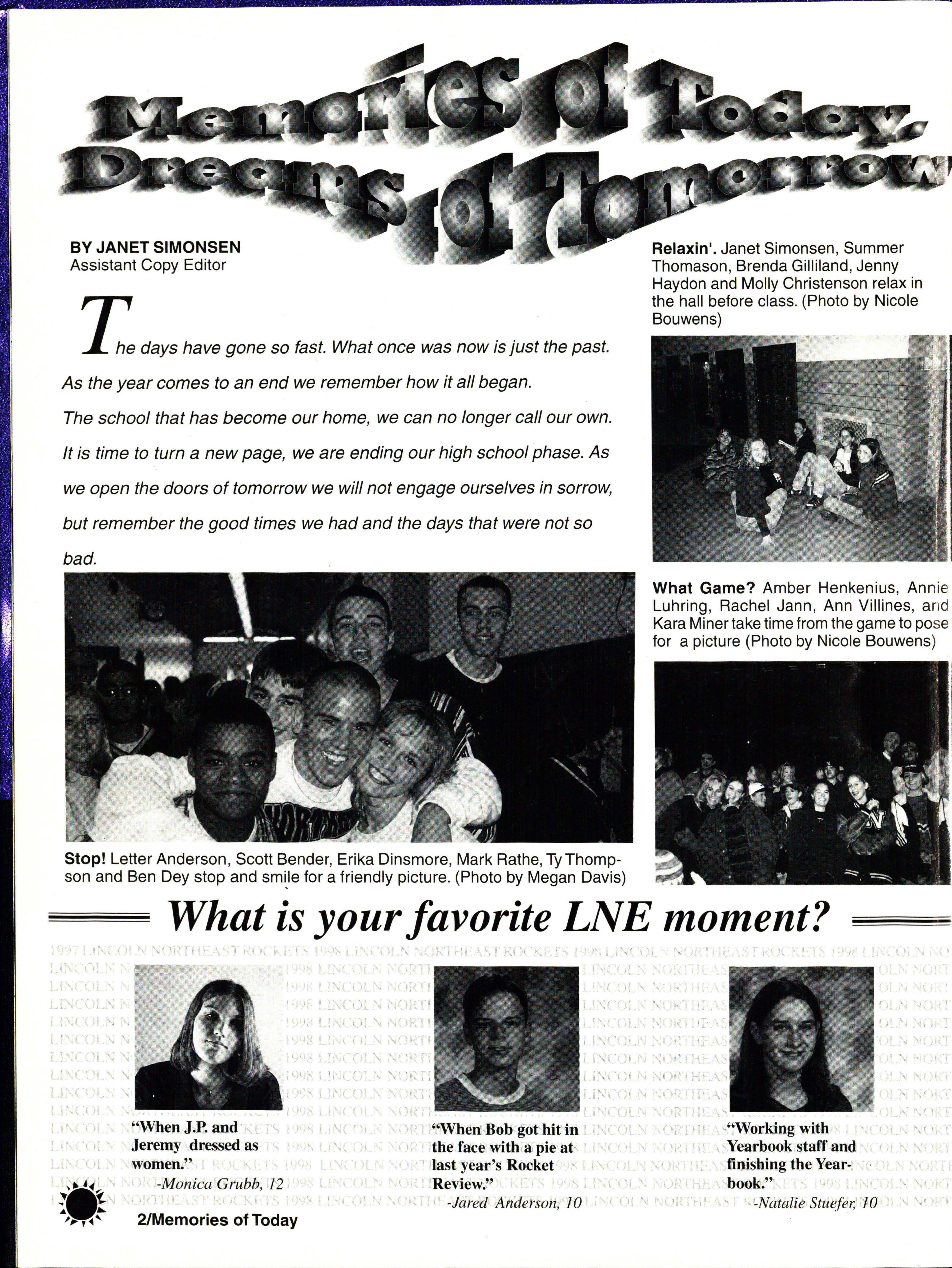 • .The theme chosen was, "Memories of Today; Dreams of Tomorrow" . Both the theme and the cover were developed by LNE Seniors ; There were 1,200copies produced. They soldfor $30the first week of sales in September, then jumped to $35 aftedhat. ·1n December they sold for $40 and $45 in ApriL This is the most expensive book ever produced by LNE . · •