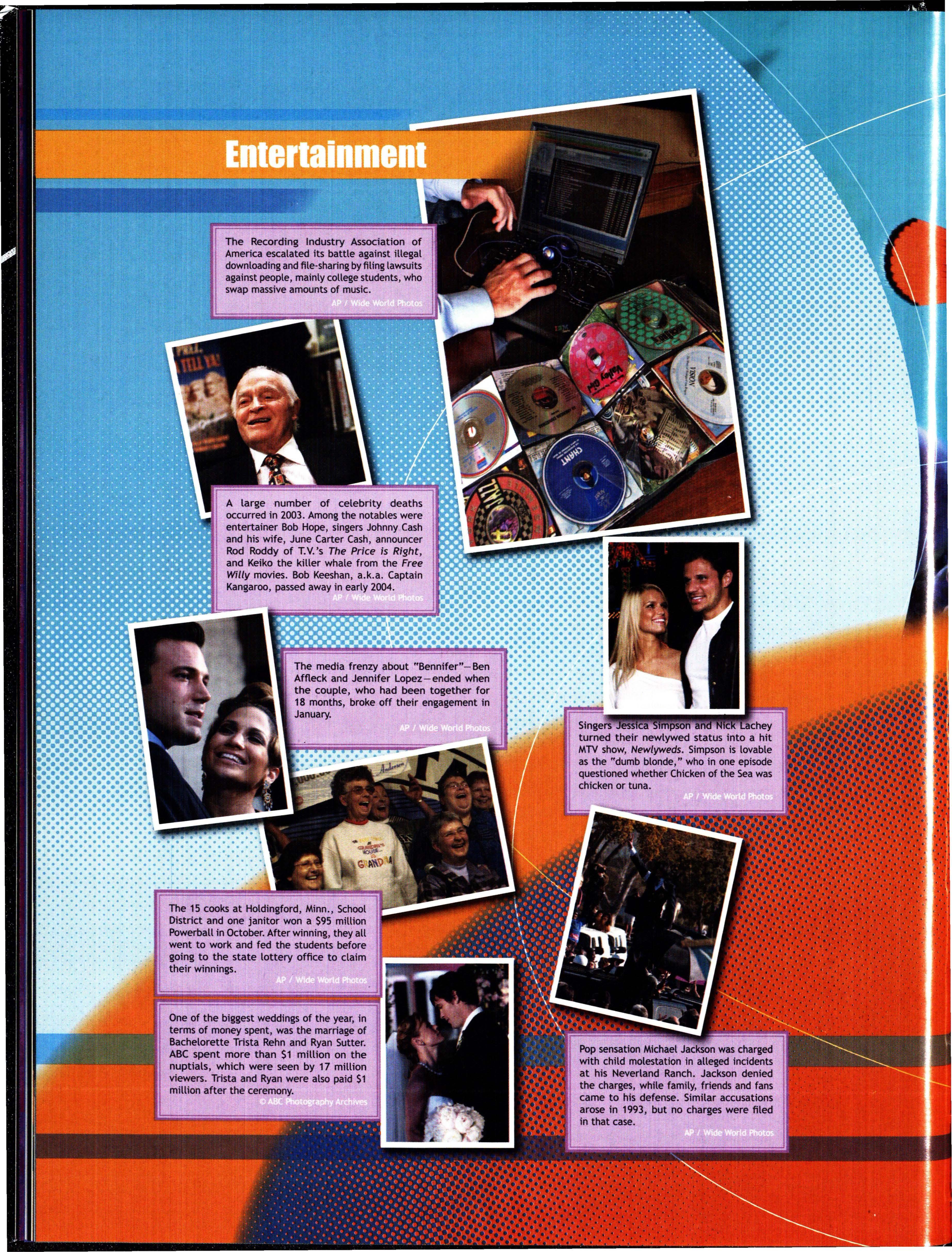 A large -number of celebrity deaths occurred in 2003. Among the notables were entertainer Bob Hope, singers Johnny Cash and his wife, June Carter Cash, announcer Rod Roddy of T.V.'s The Price is Right, and Keiko the killer whale from the Free Willy movies. Bob Keeshan, a.k.a. Captain Kangaroo, passed away in early 2004.