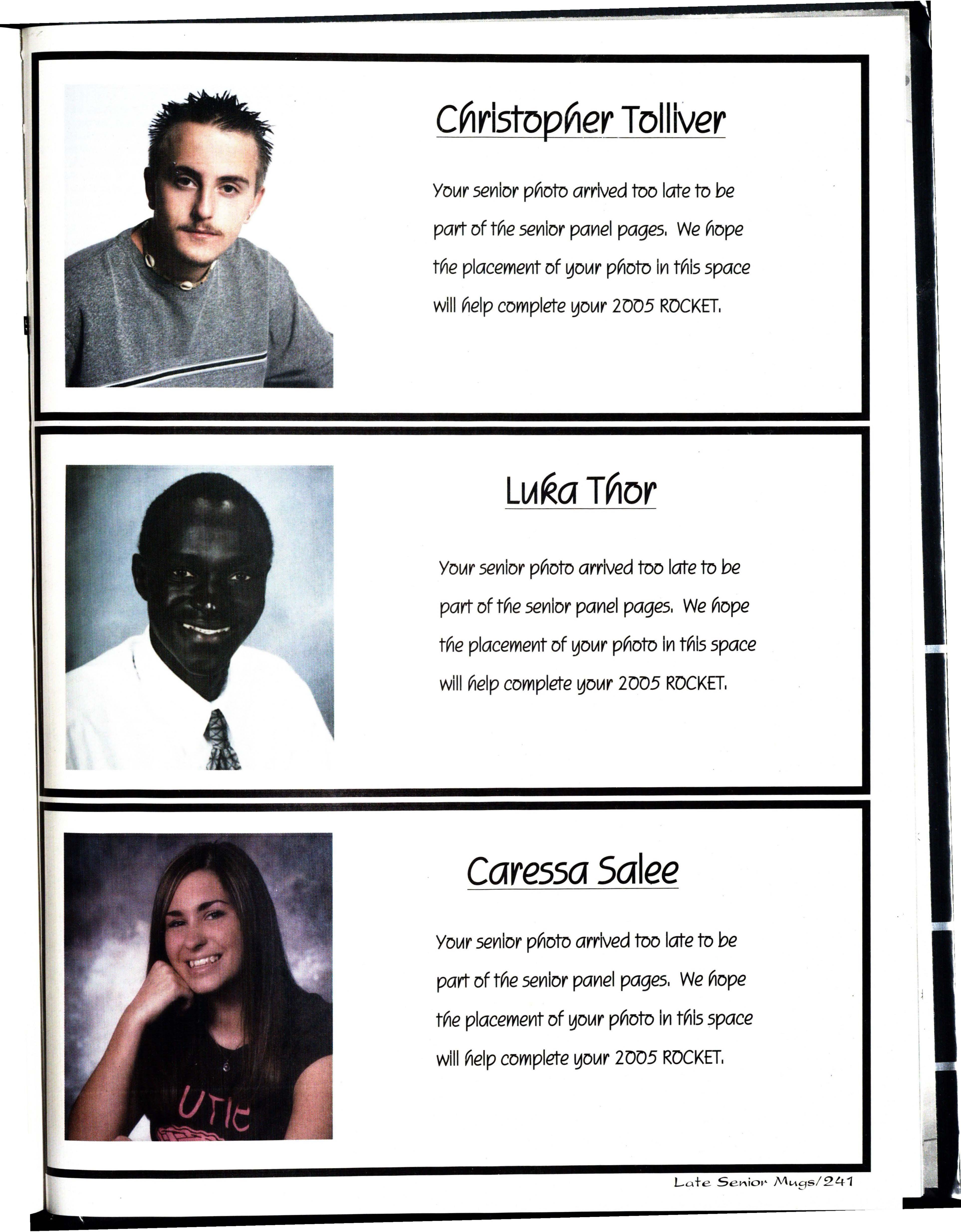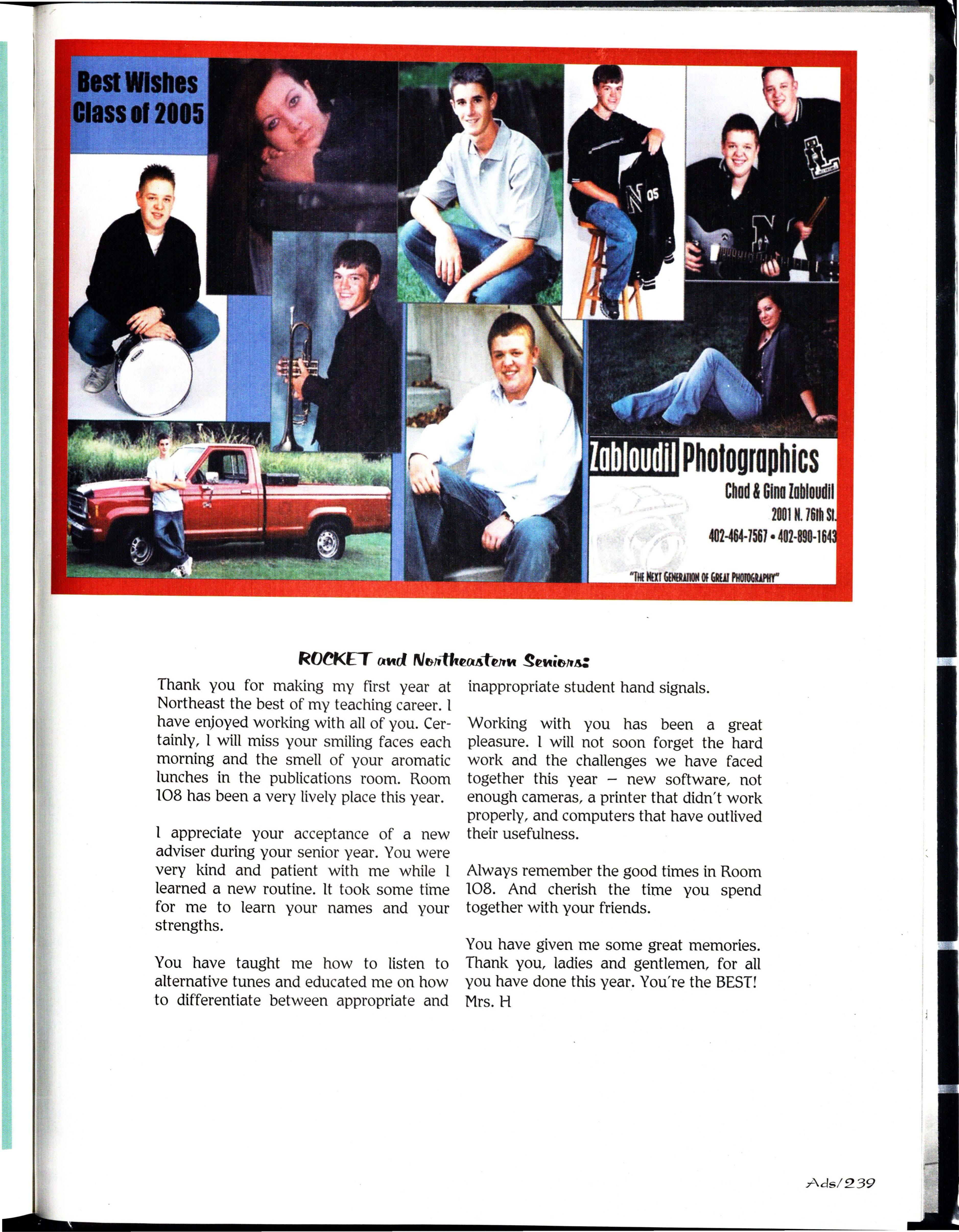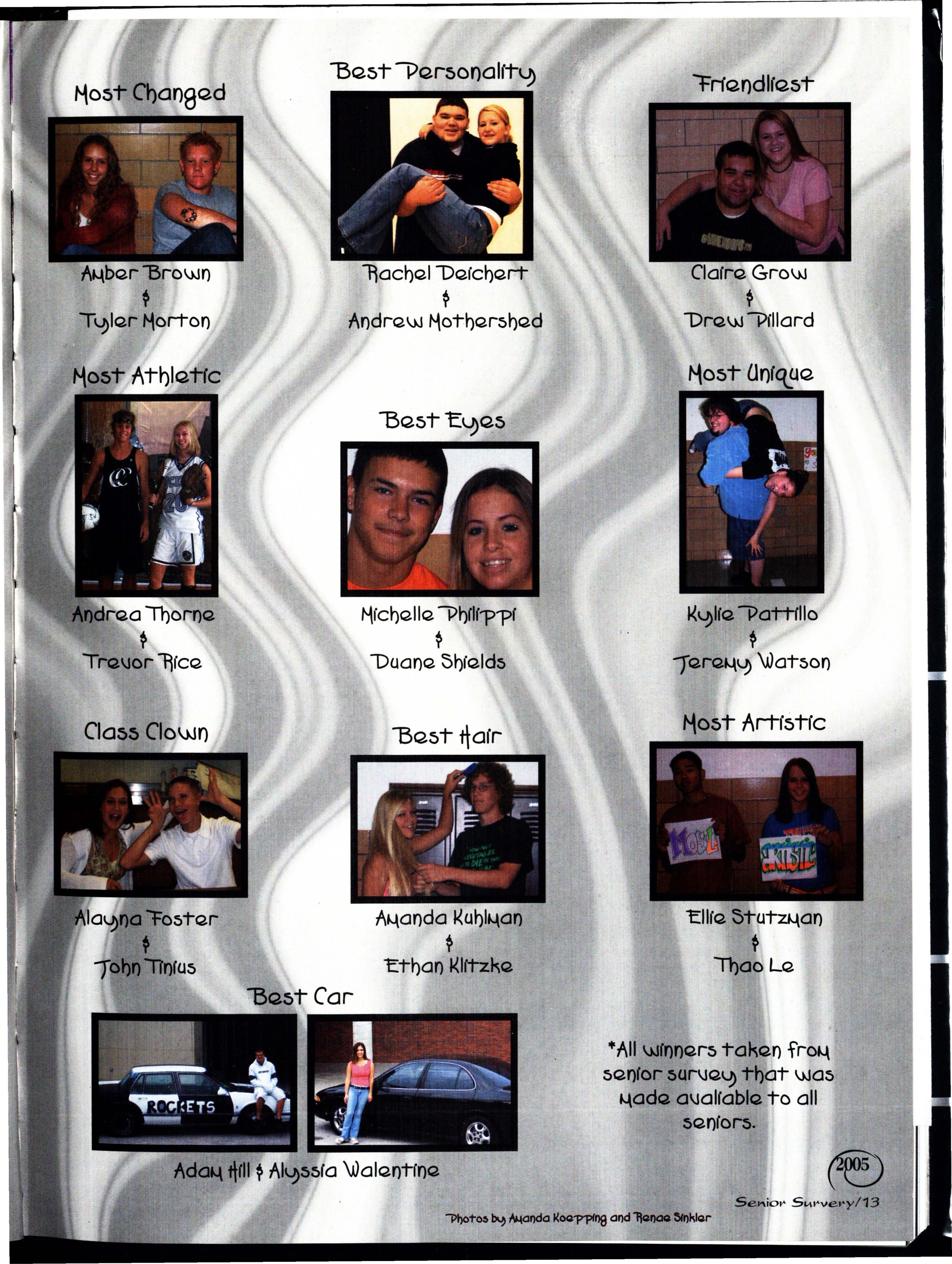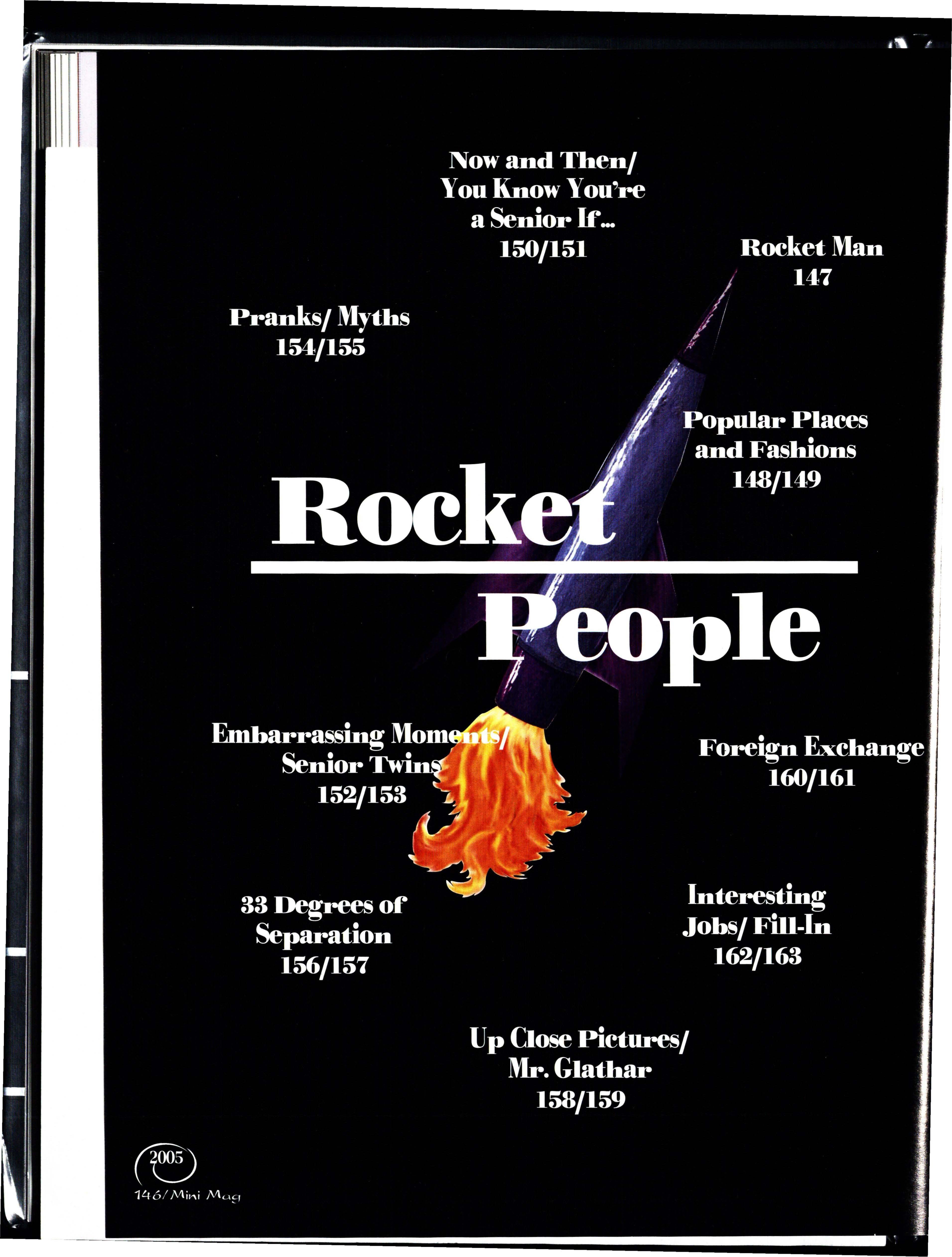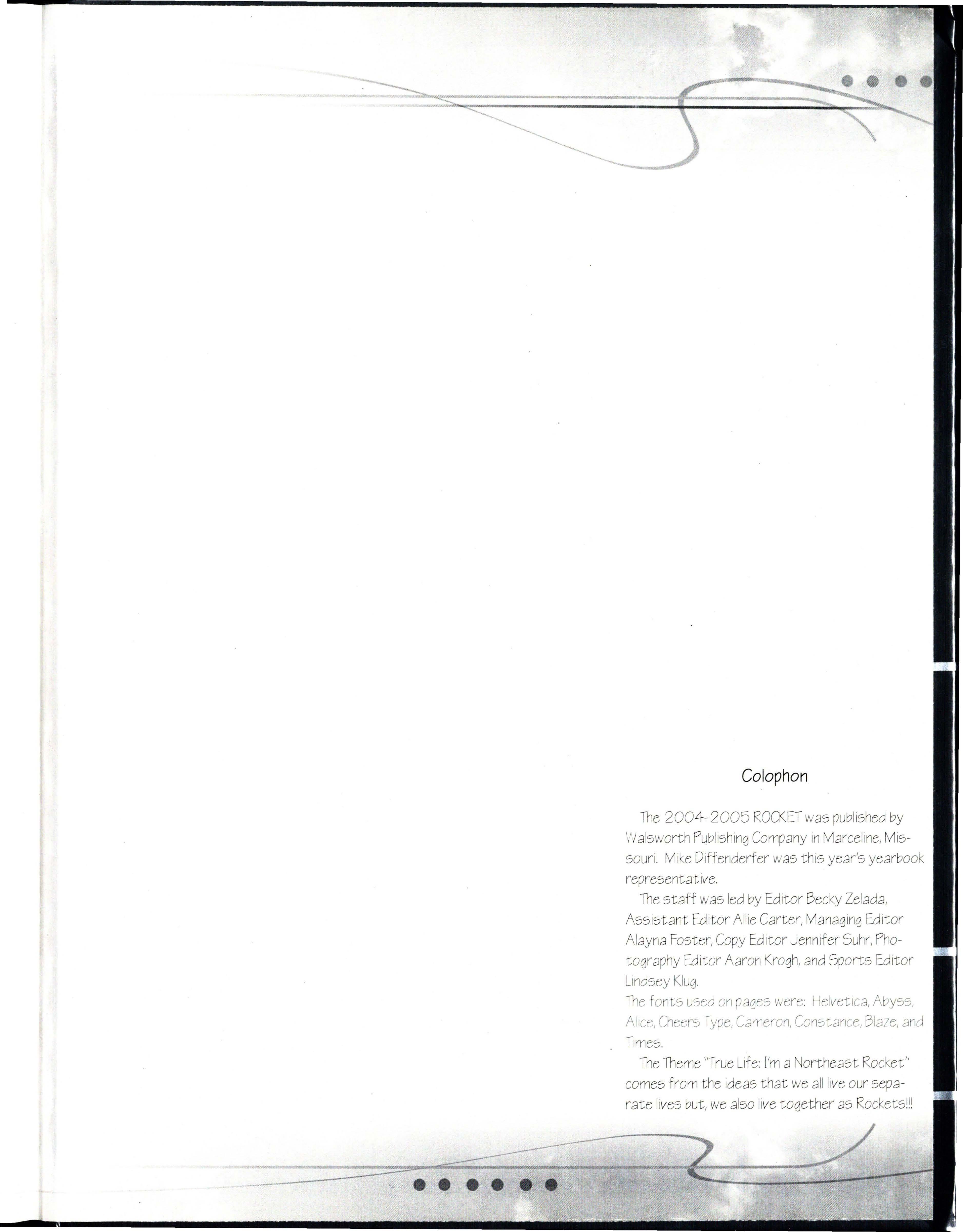 The 2004 - 2005 ROCKET was pub lished by Pub lishing Company in Marceline, Missouri. i e Diffenderfer was this year 's yearboo representative