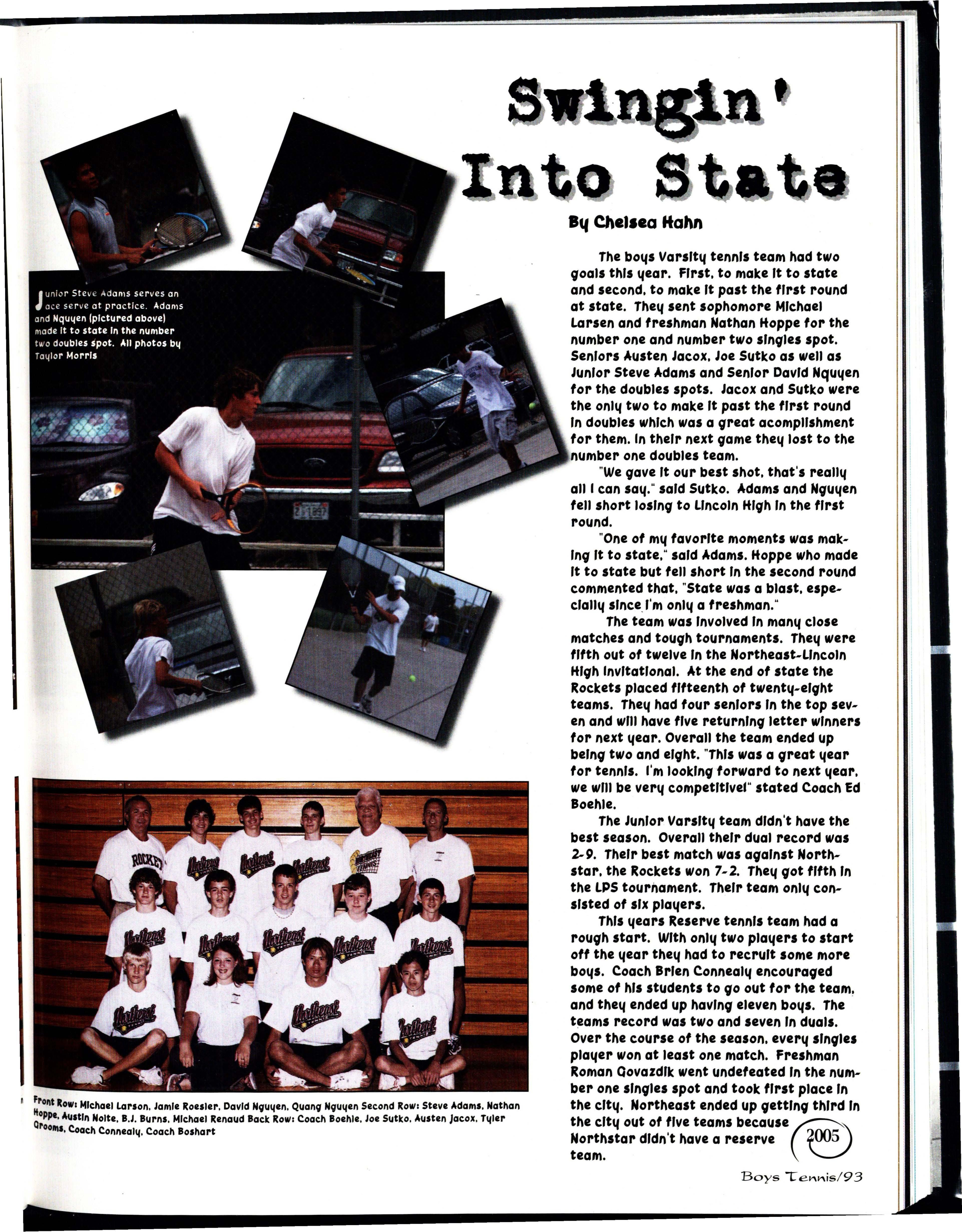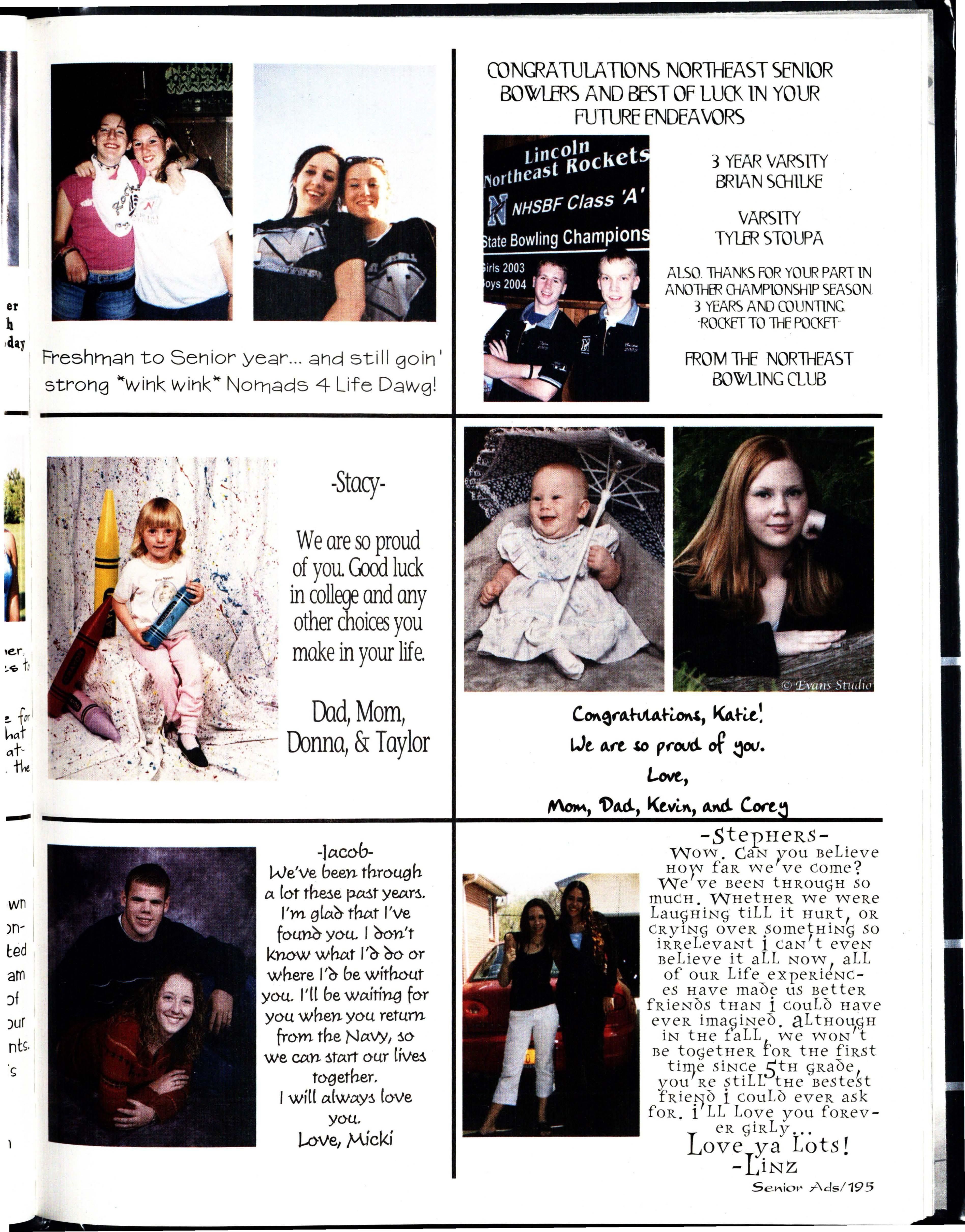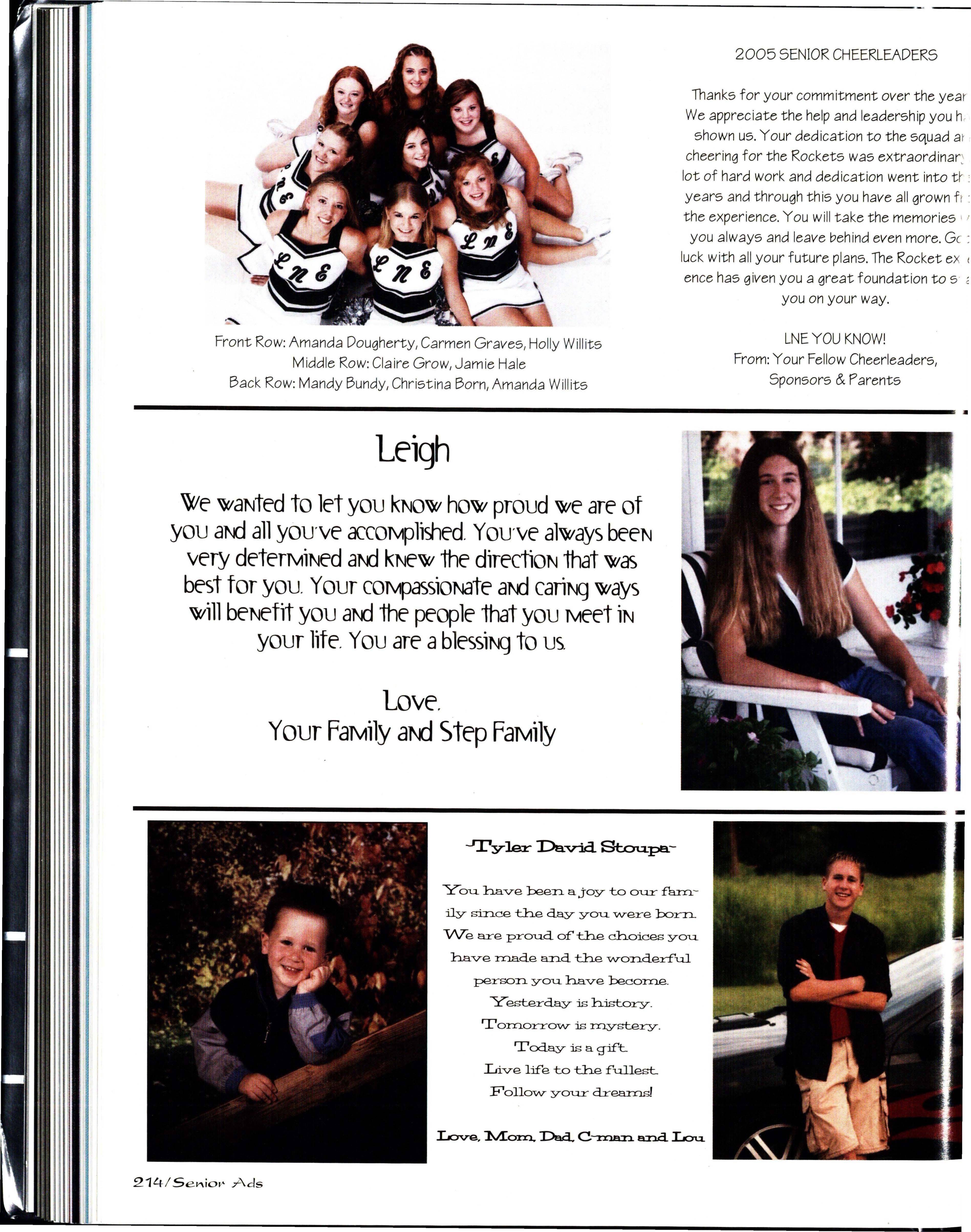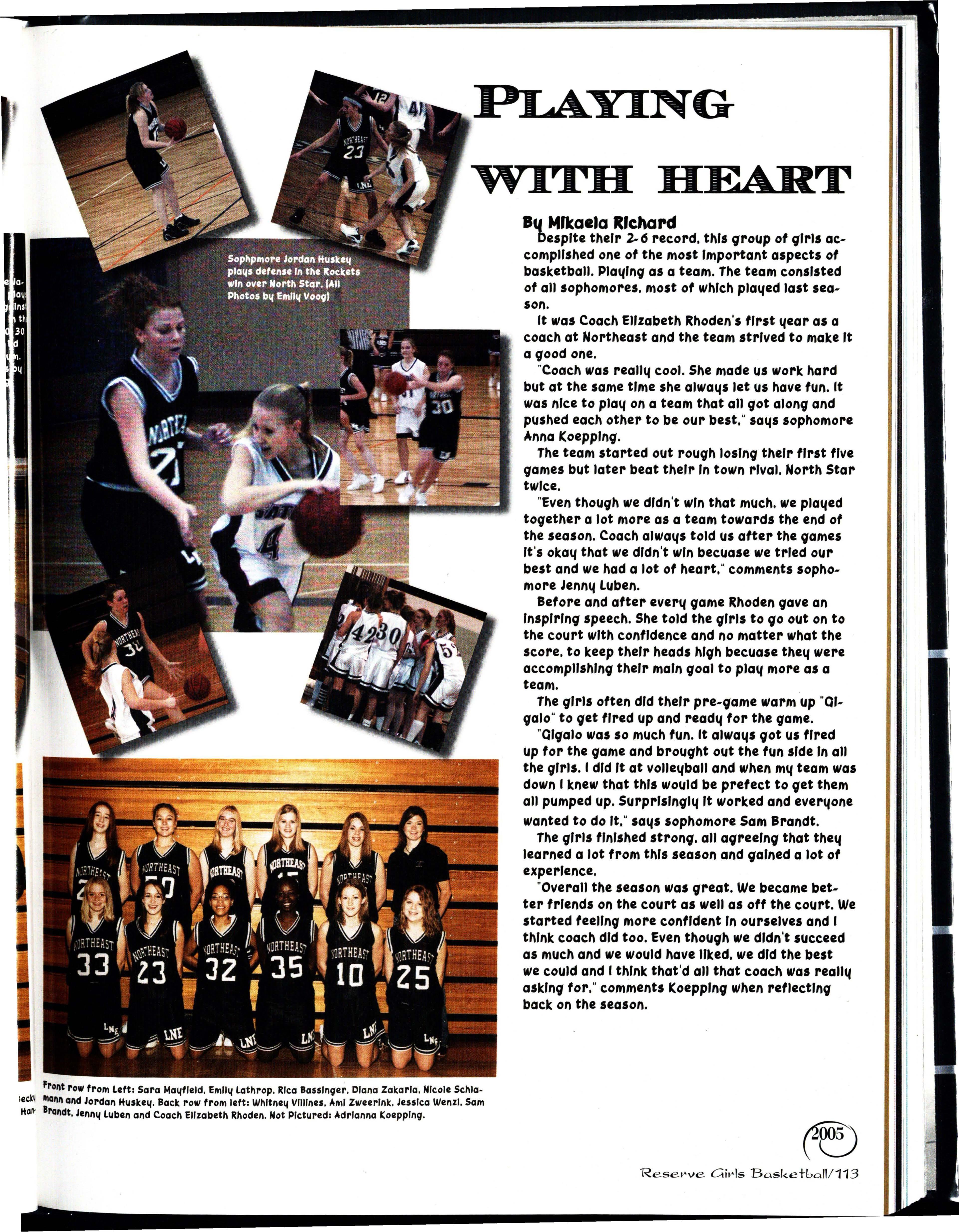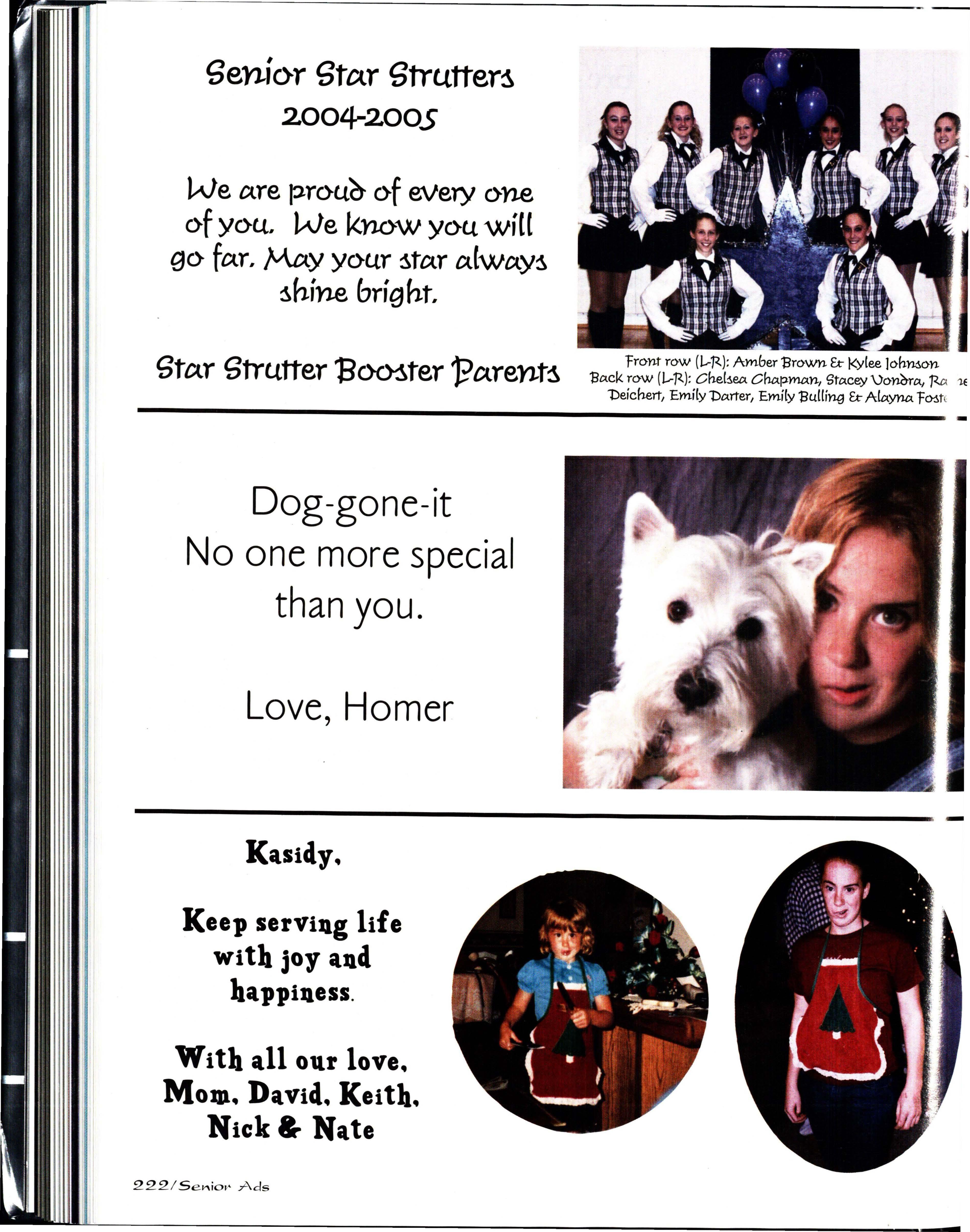 The 2004 - 2005 ROCKET was pub lished by Pub lishing Company in Marceline, Missouri. i e Diffenderfer was this year 's yearboo representative