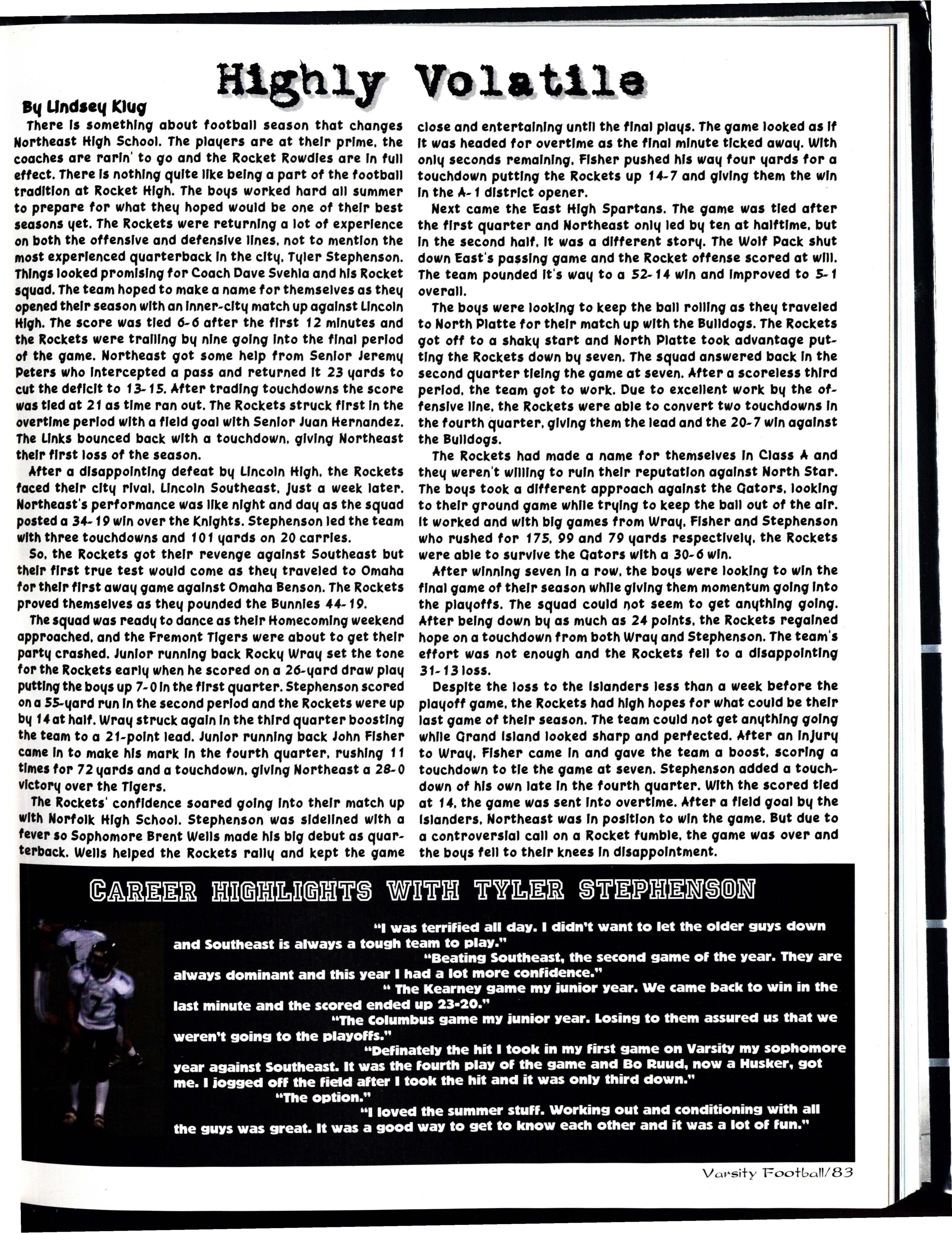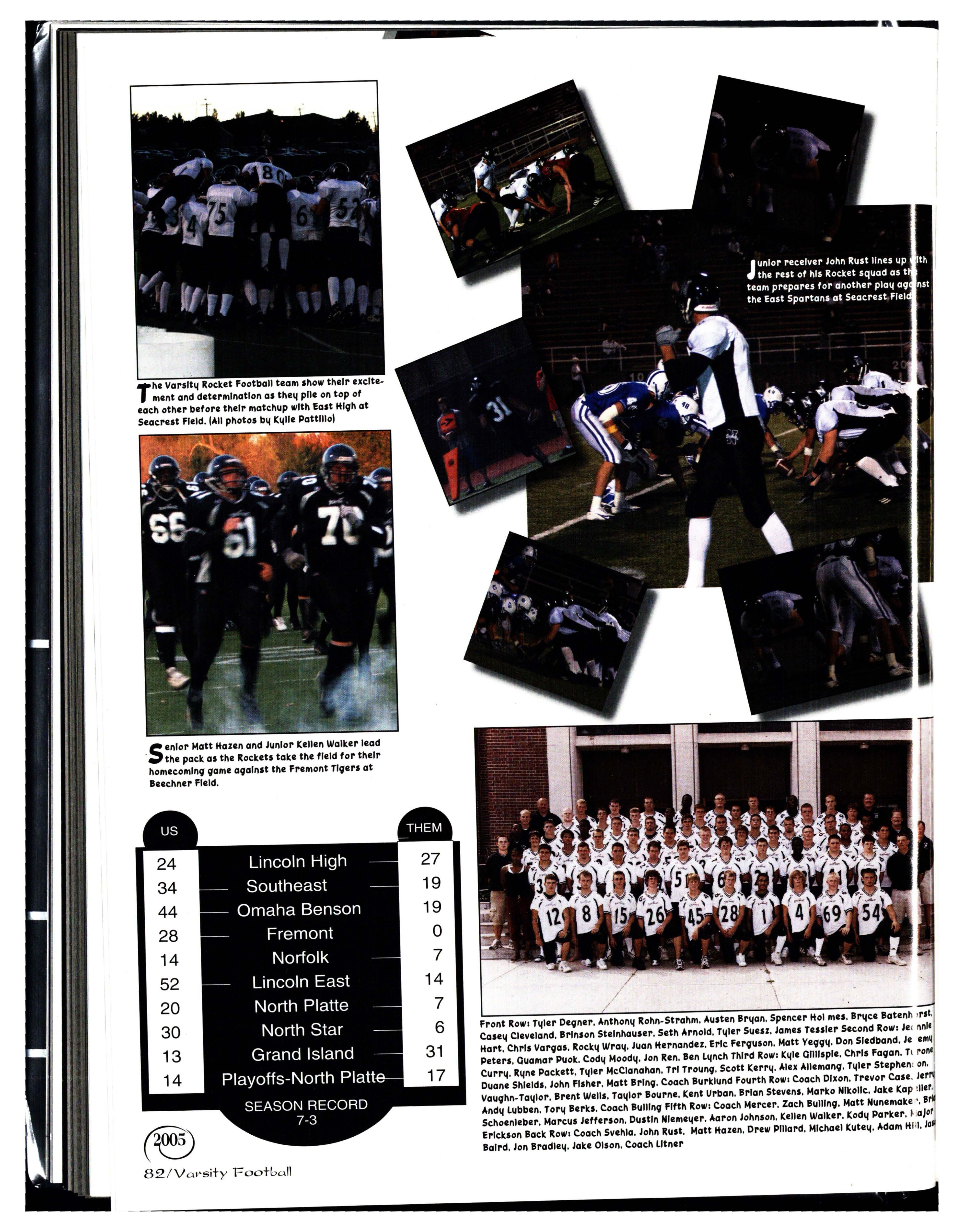 2. Seniors Tony Howard, Jason Karabel, and Dustin Graviette root for the ir# 1 Rockets at the first varsity football game a0ainstlincoln High on Sept. 3. (Photo by Kylie Pattillo)