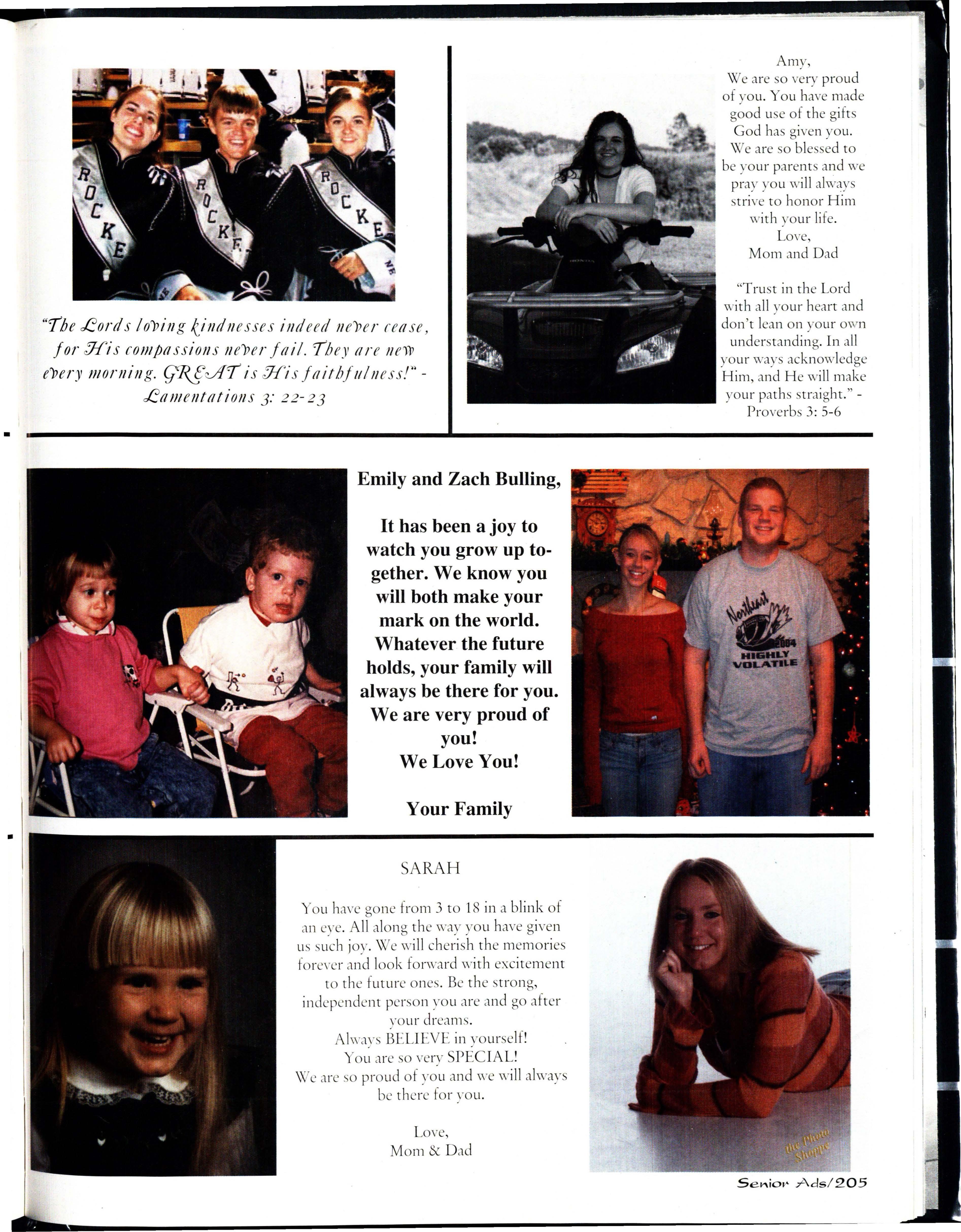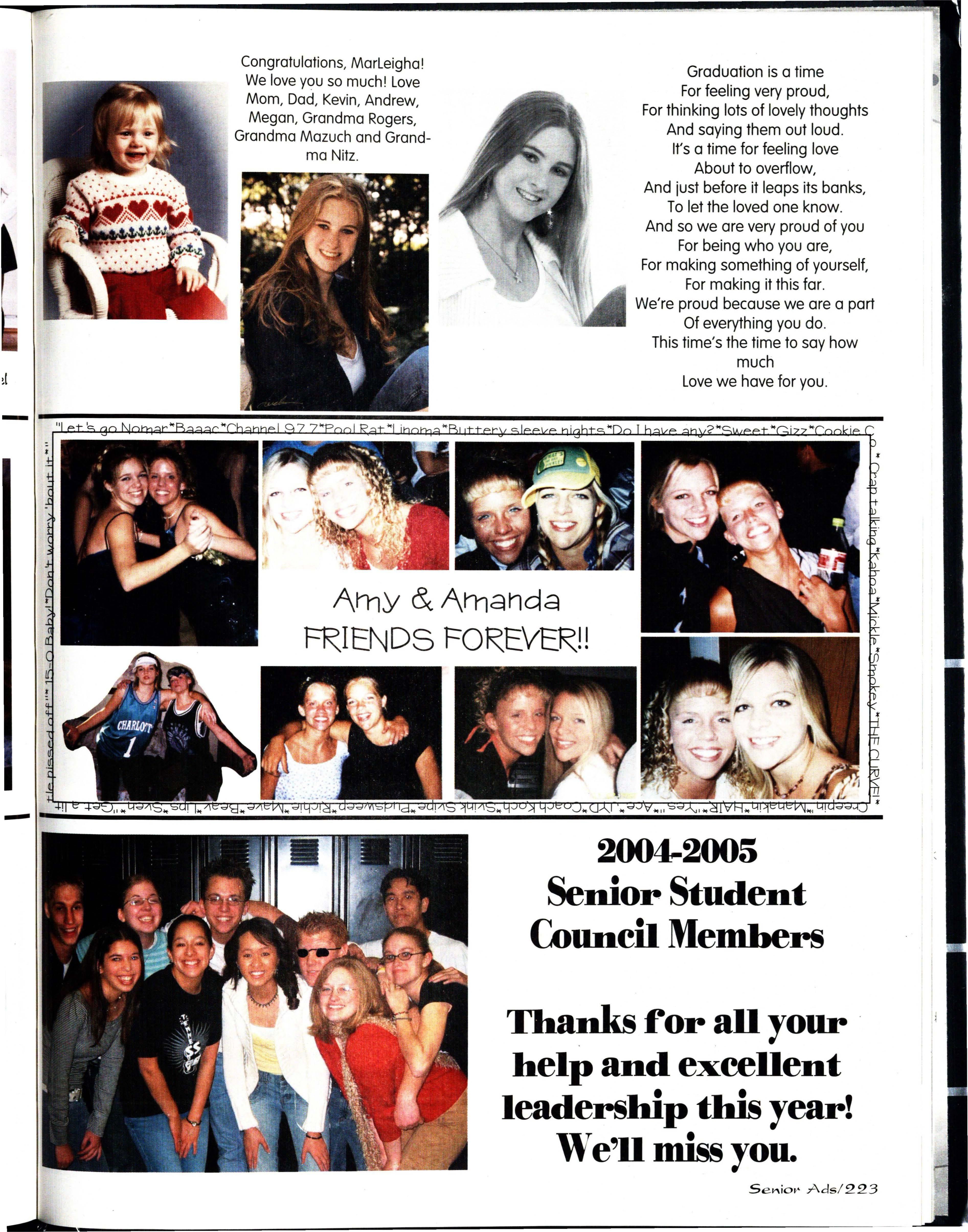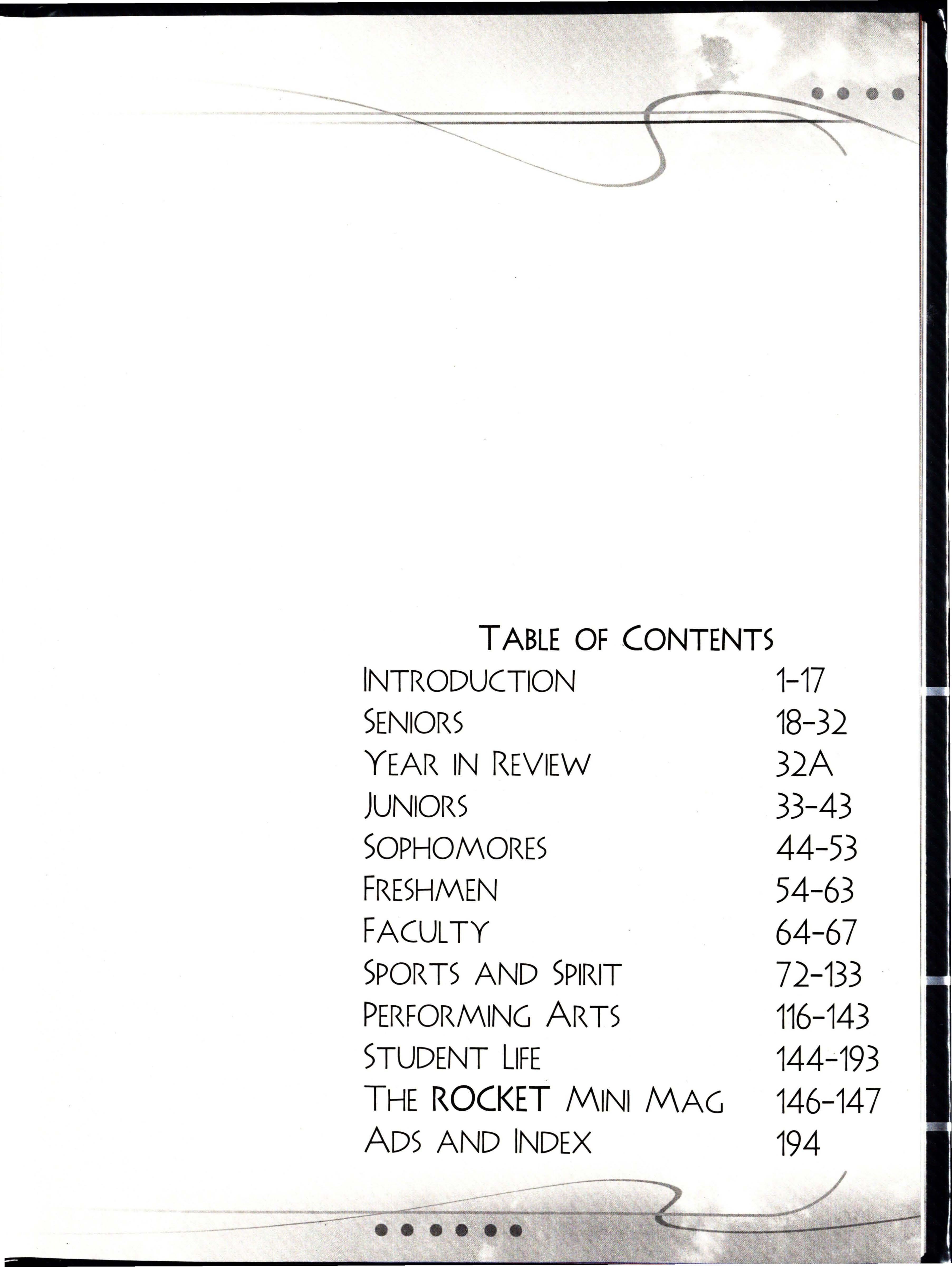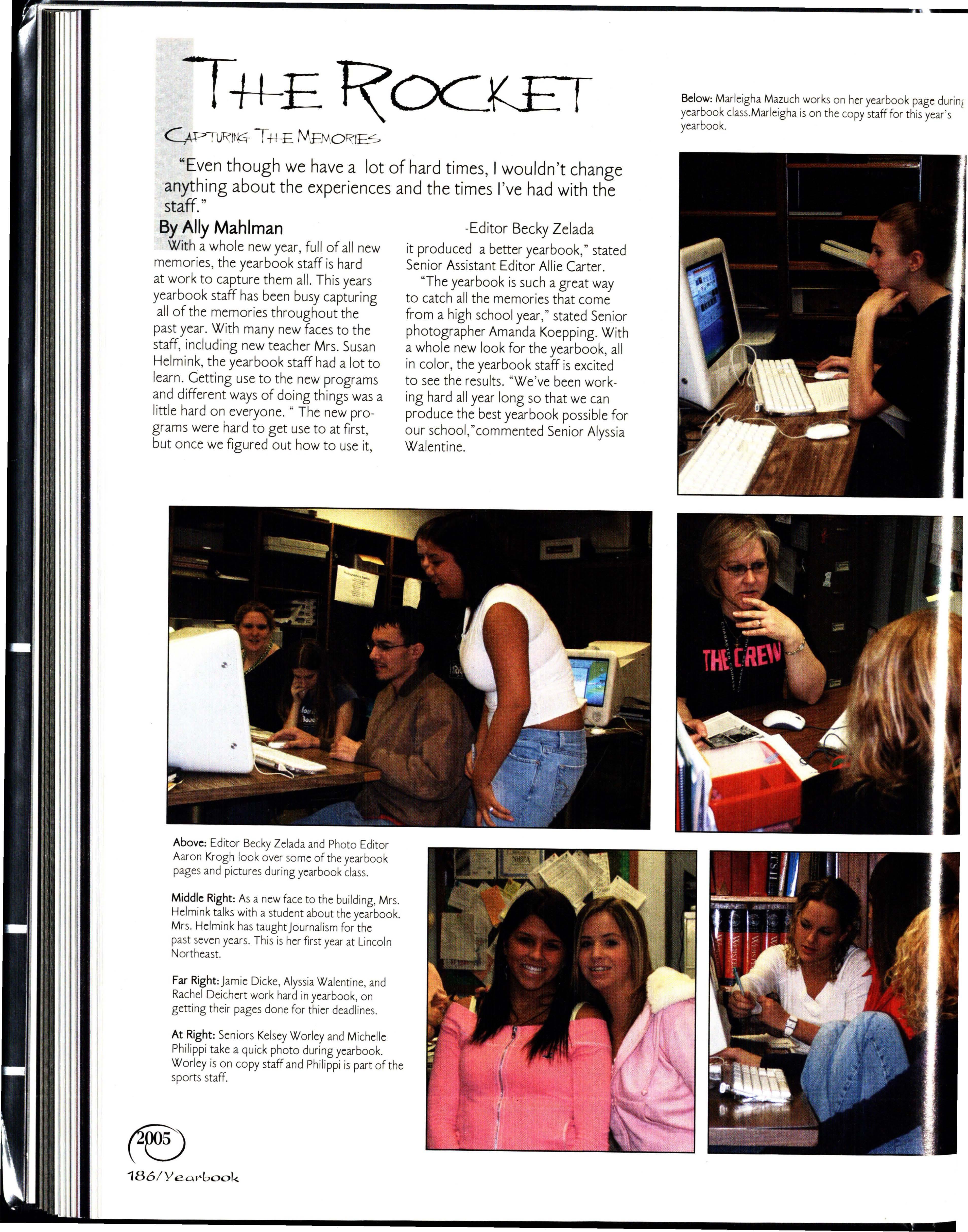 The 2004 - 2005 ROCKET was pub lished by Pub lishing Company in Marceline, Missouri. i e Diffenderfer was this year 's yearboo representative