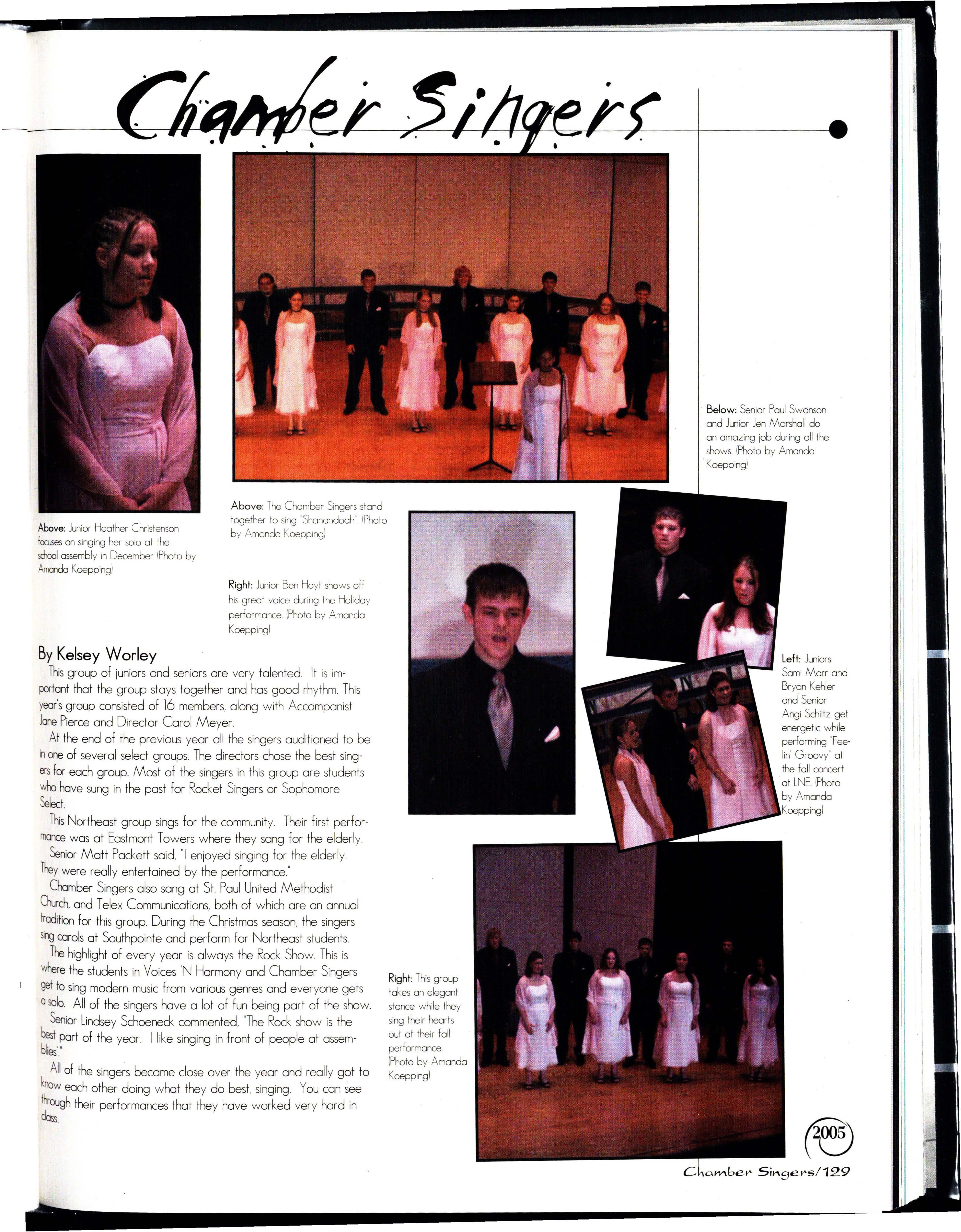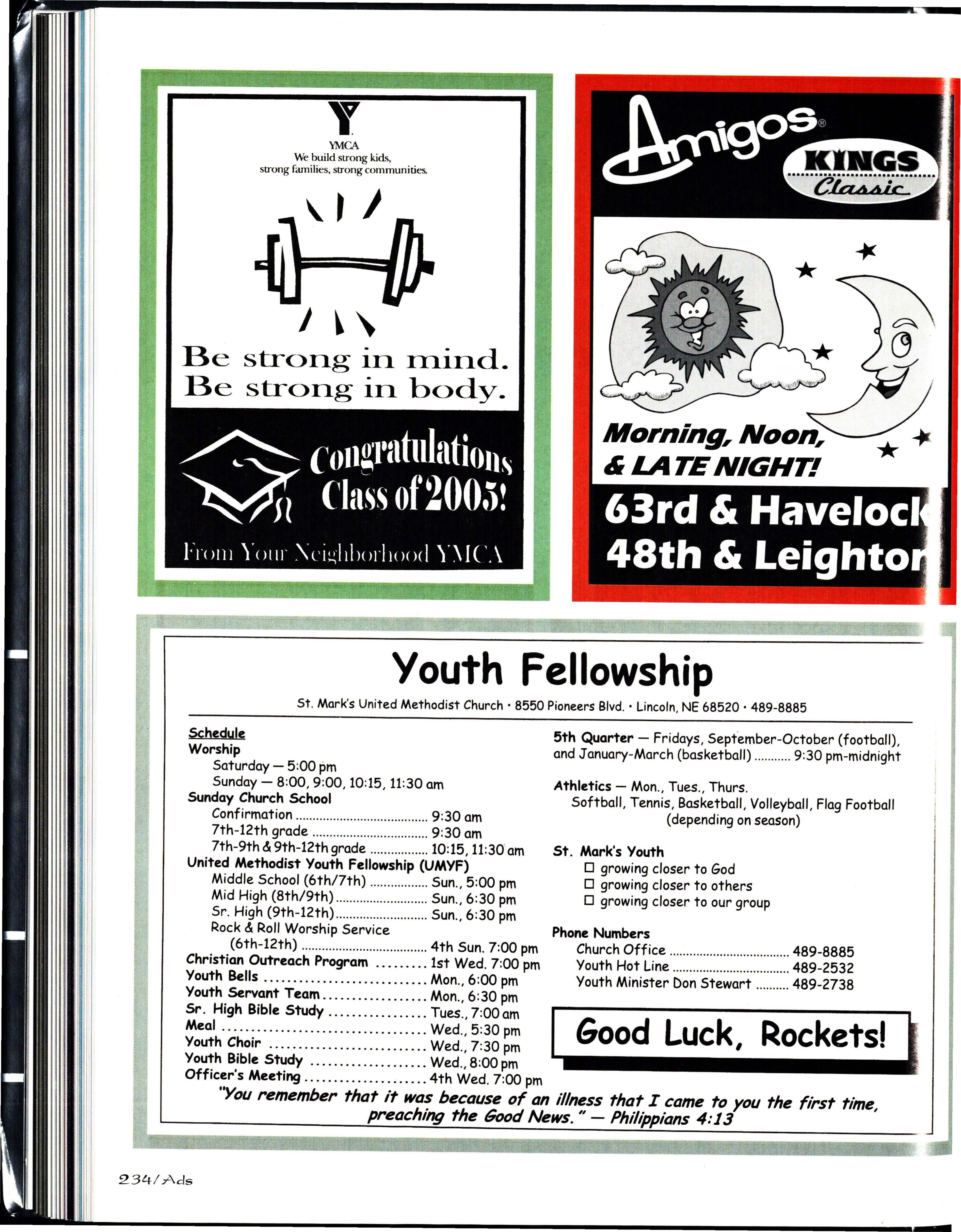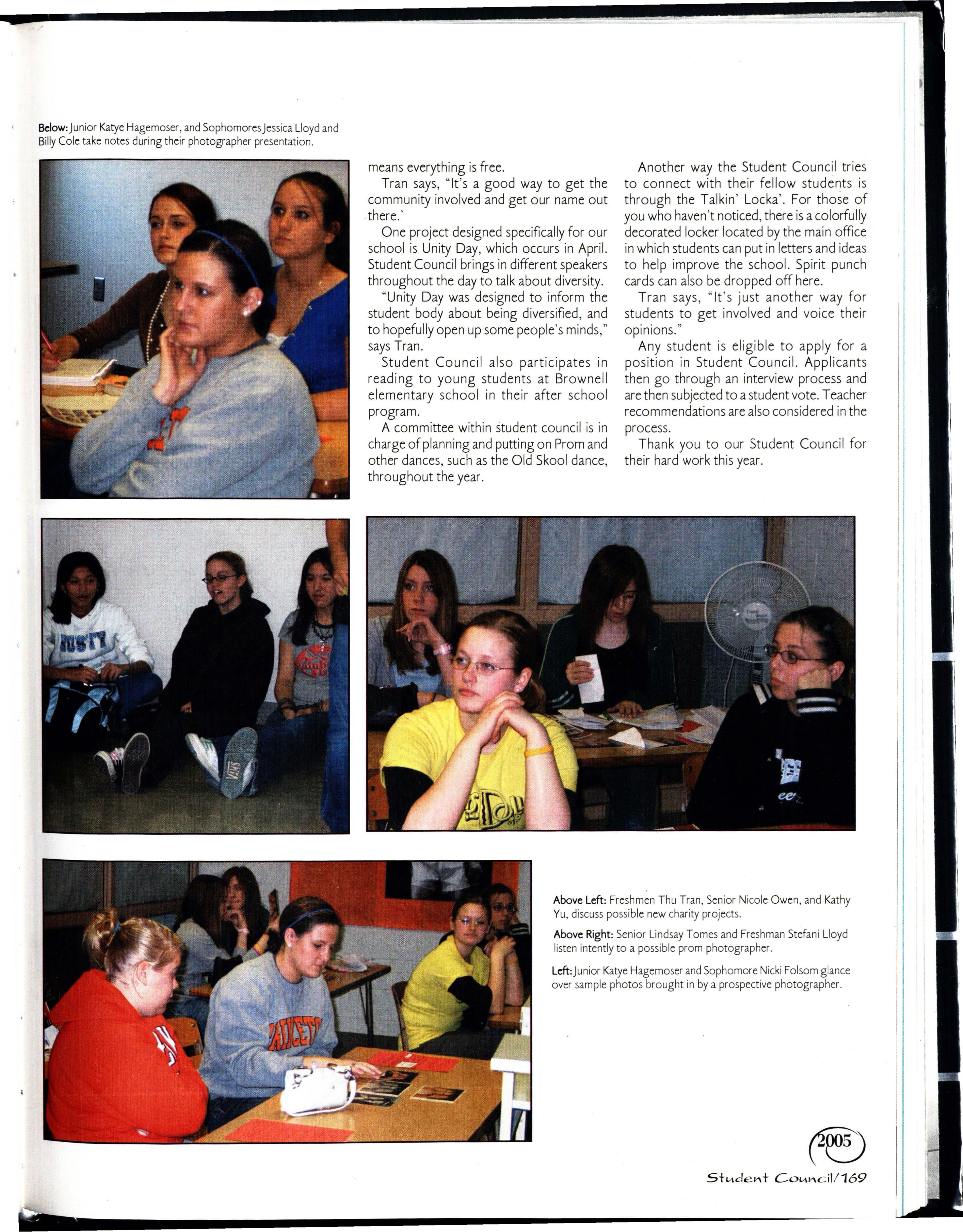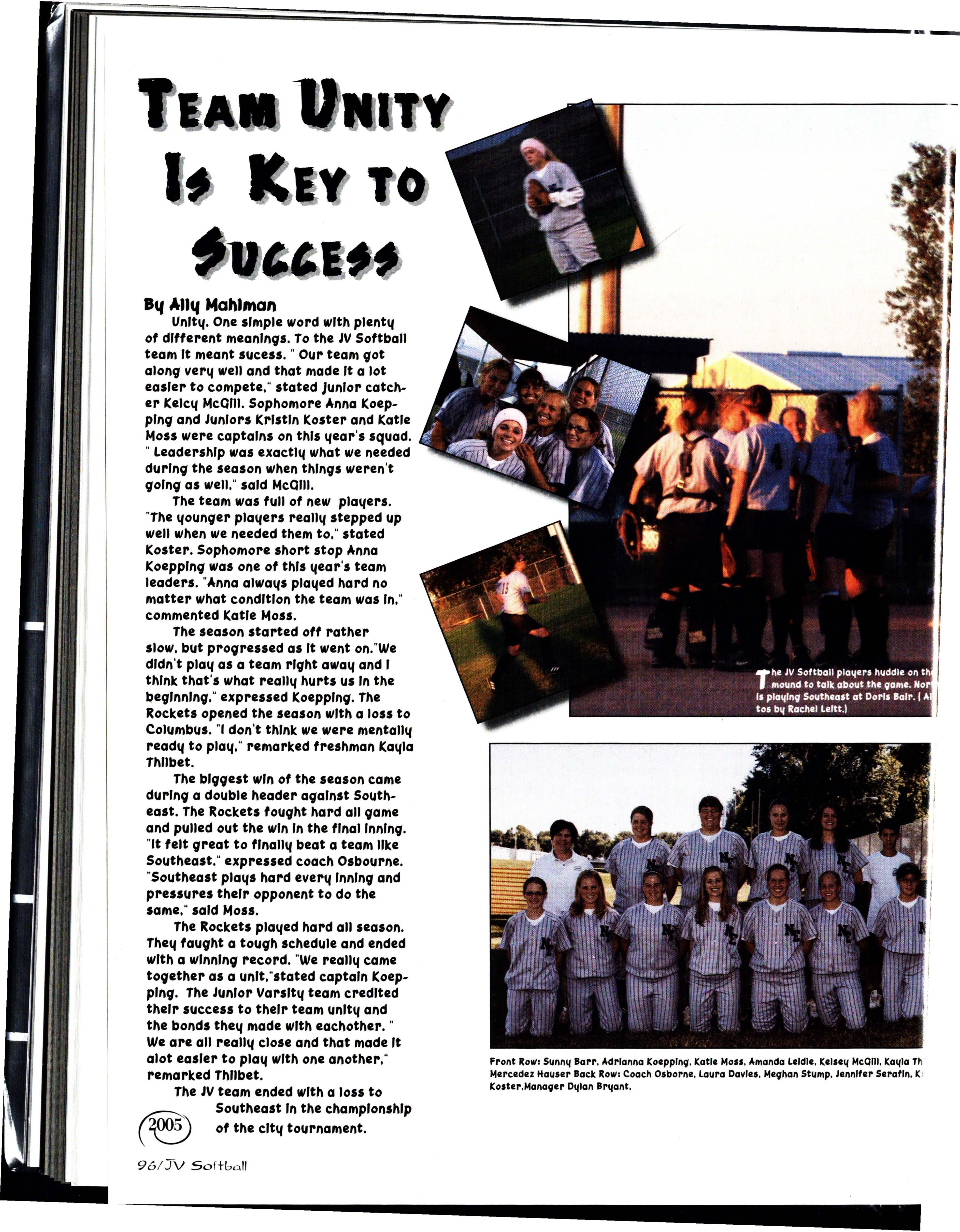 The 2004 - 2005 ROCKET was pub lished by Pub lishing Company in Marceline, Missouri. i e Diffenderfer was this year 's yearboo representative