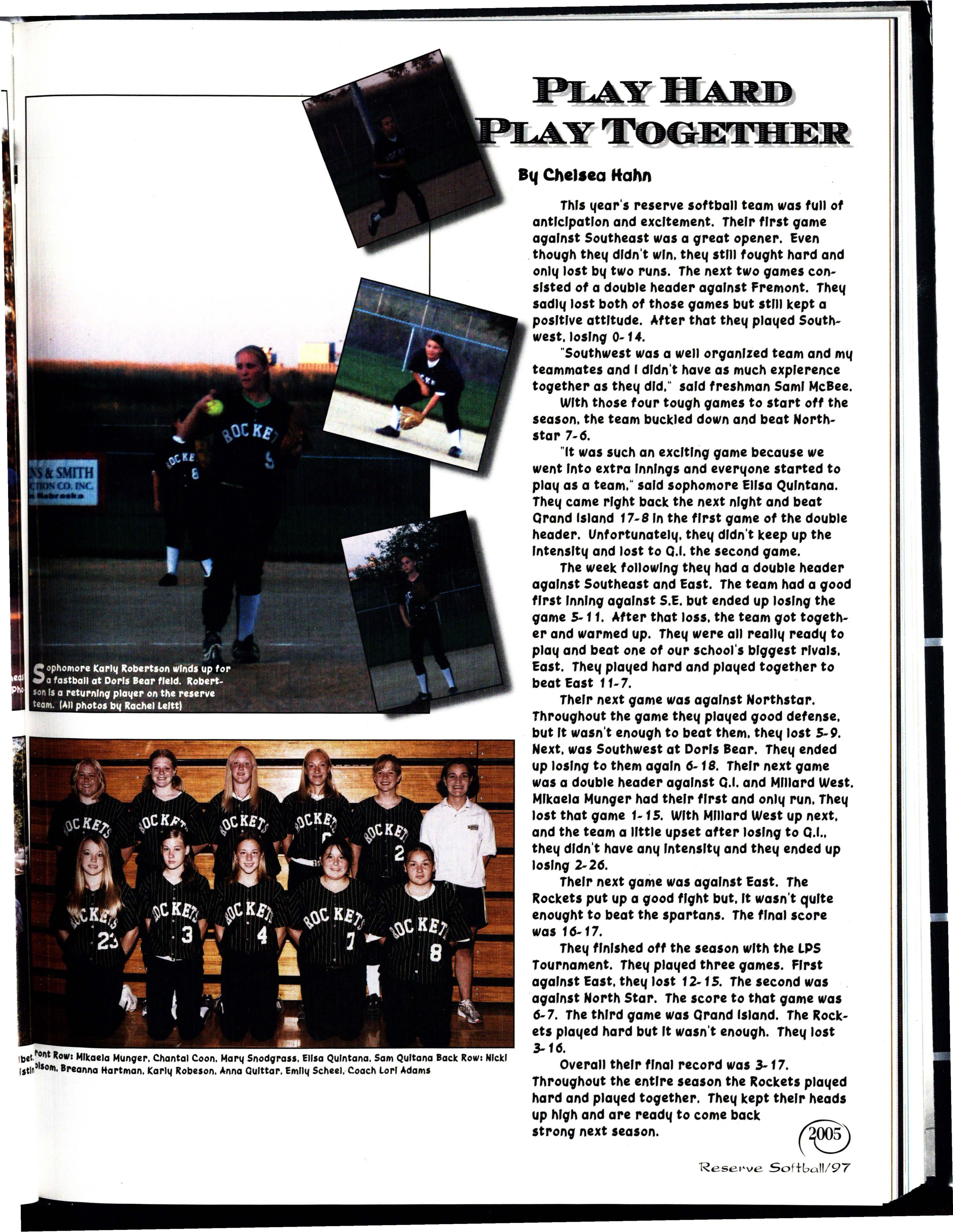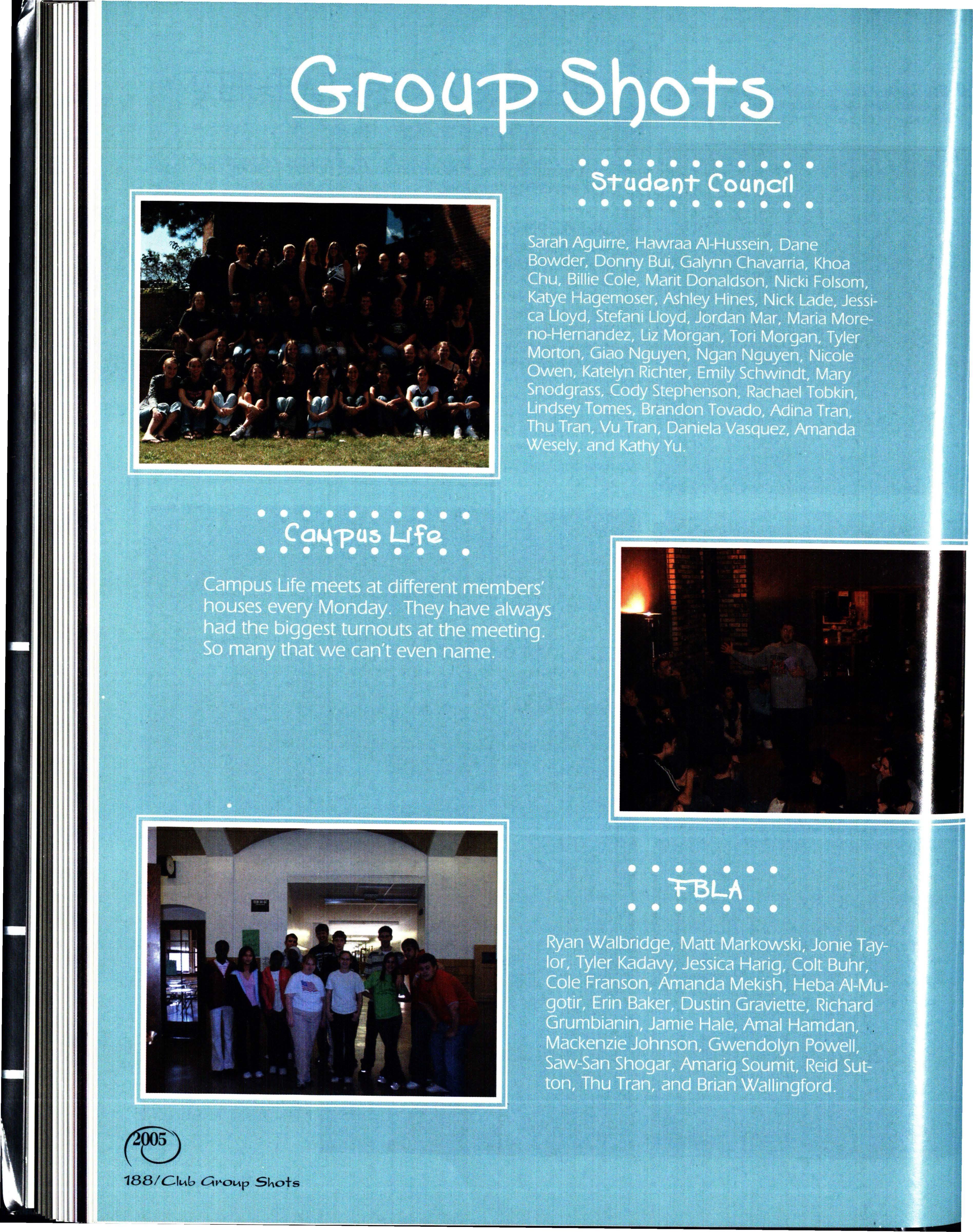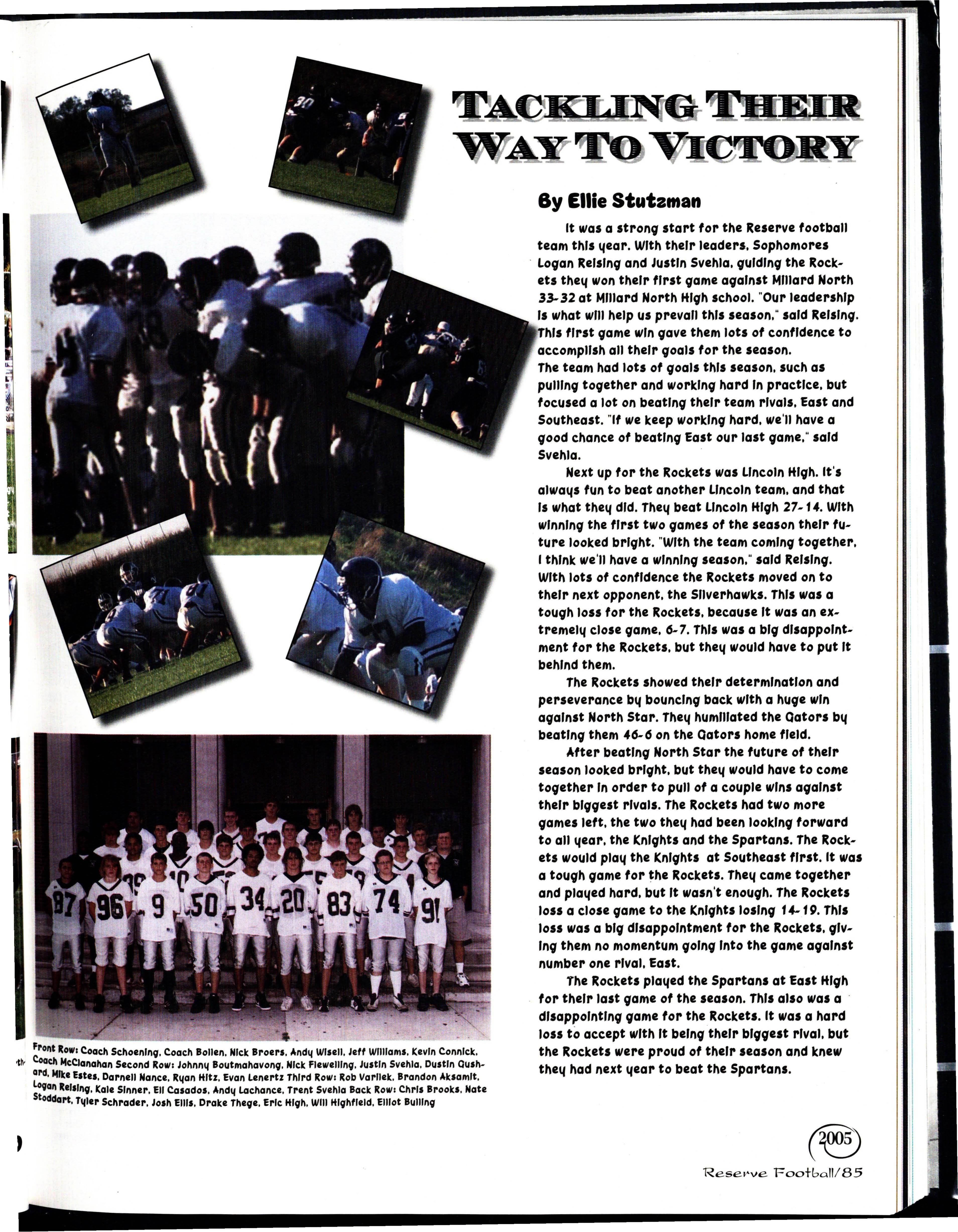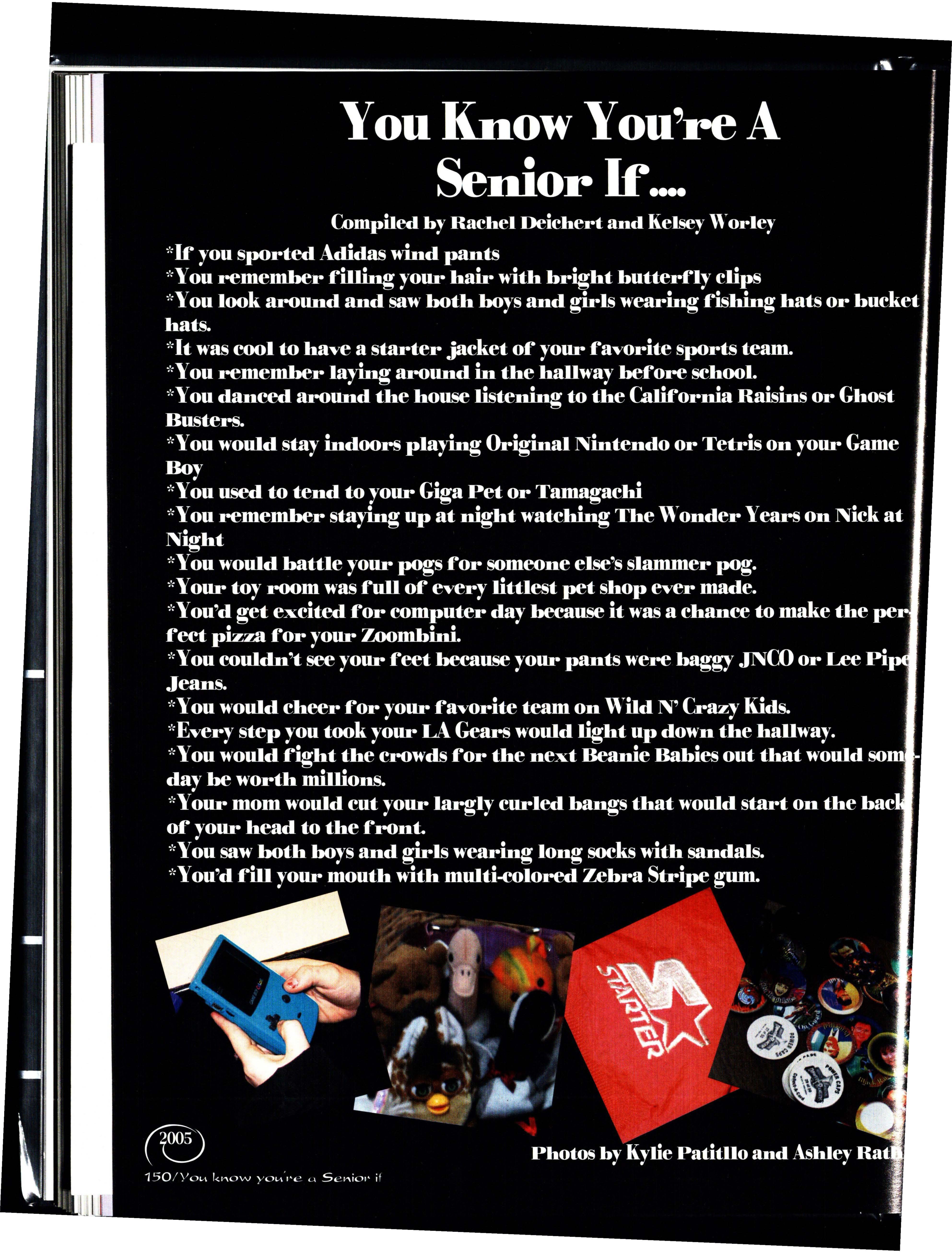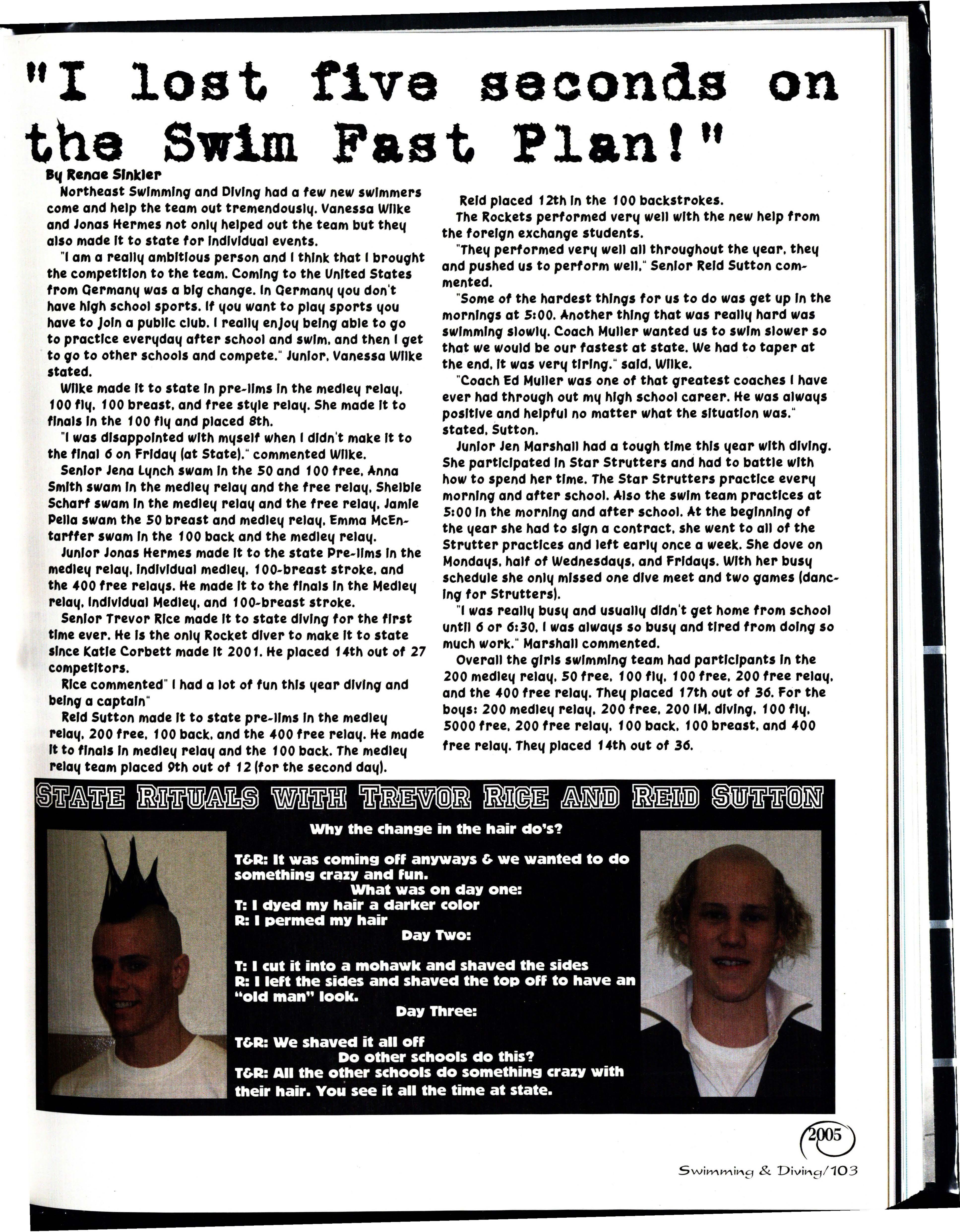 The 2004 - 2005 ROCKET was pub lished by Pub lishing Company in Marceline, Missouri. i e Diffenderfer was this year 's yearboo representative