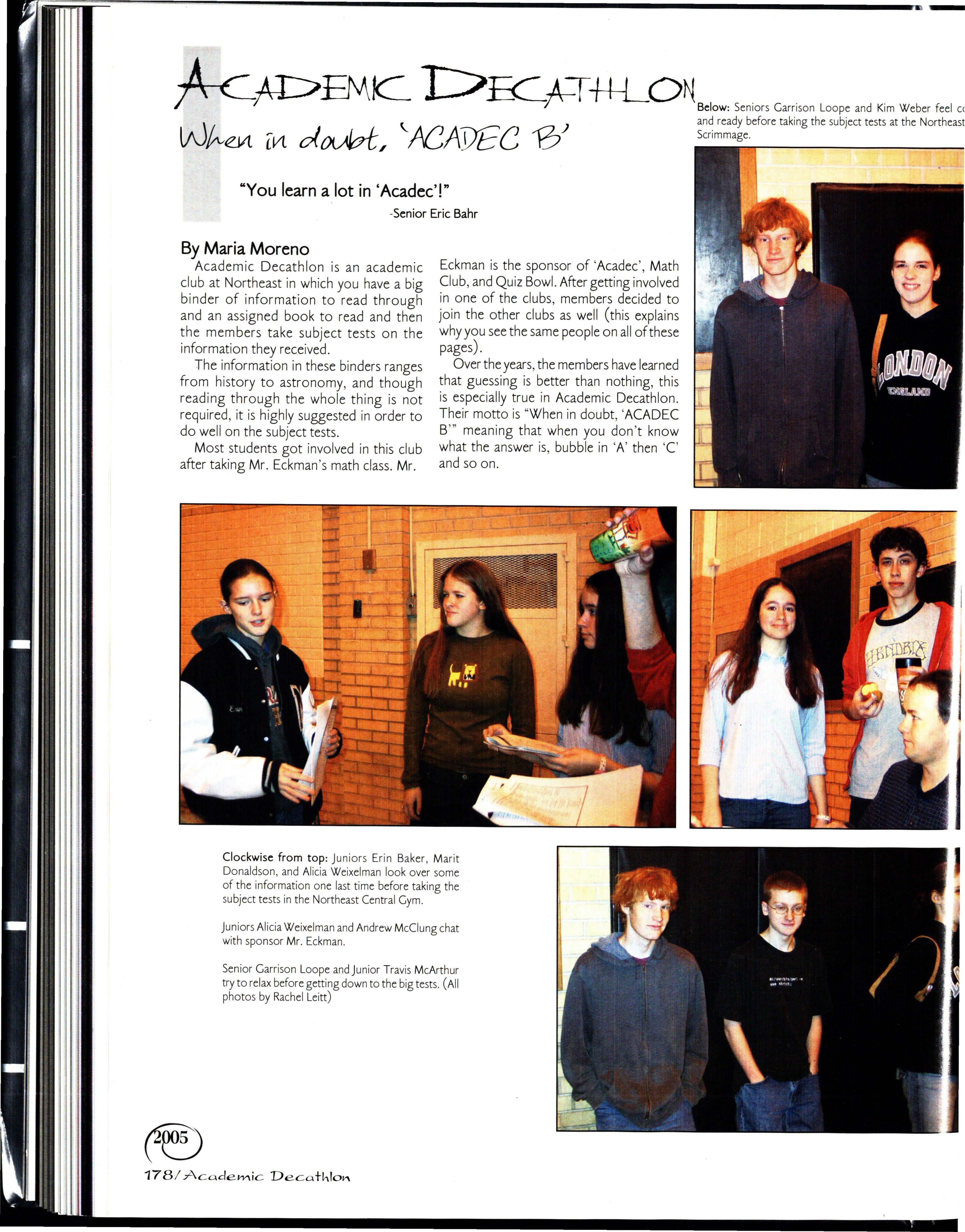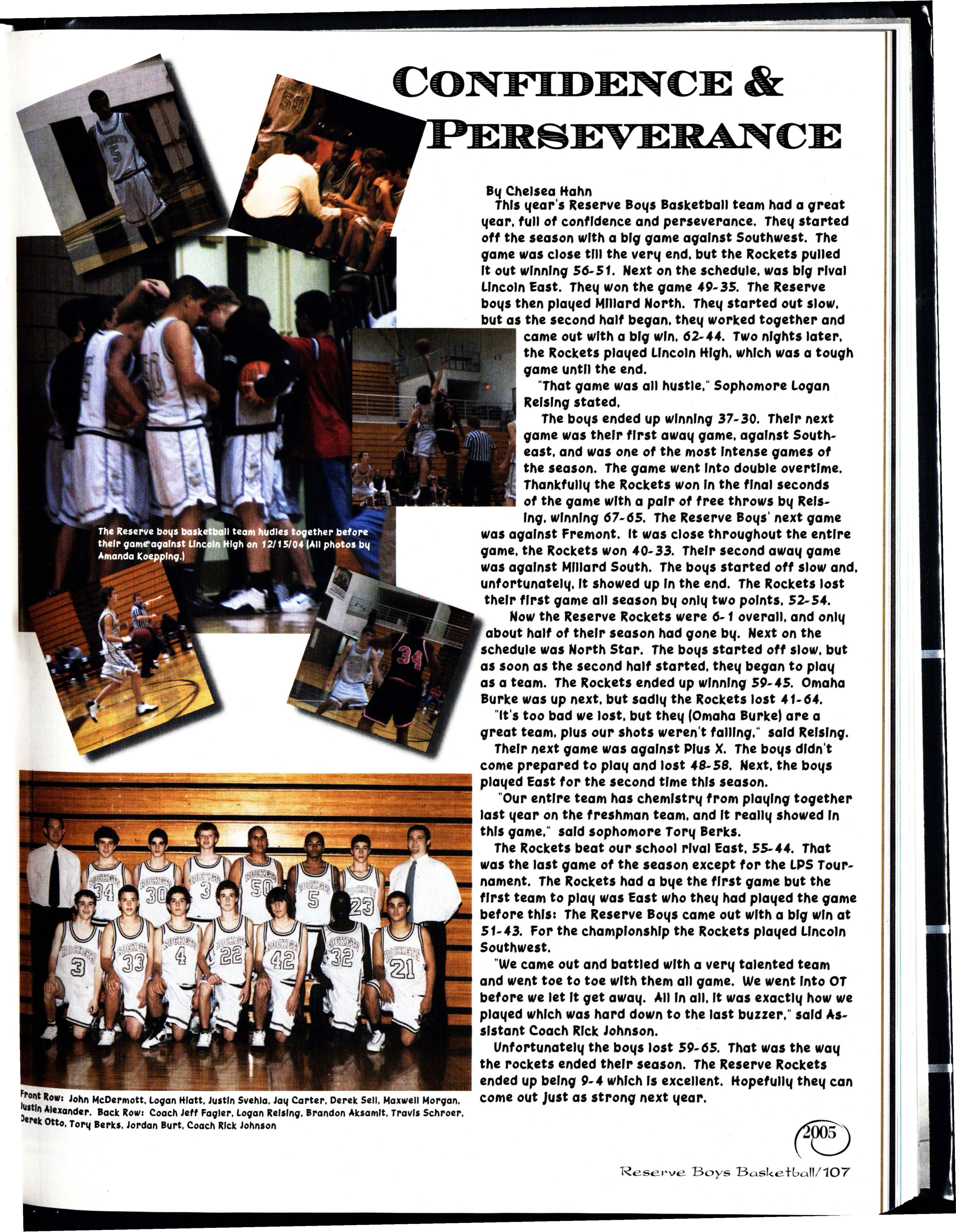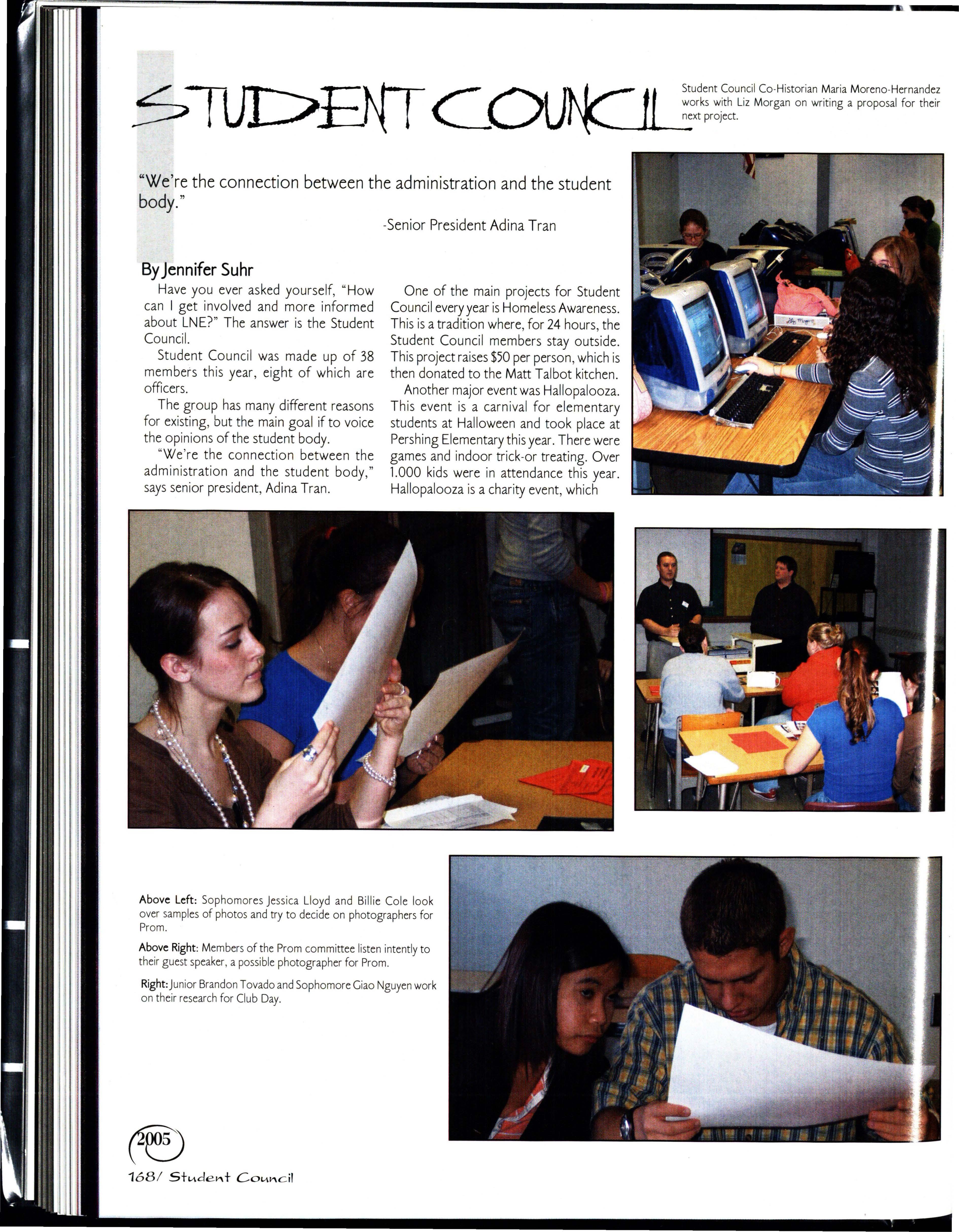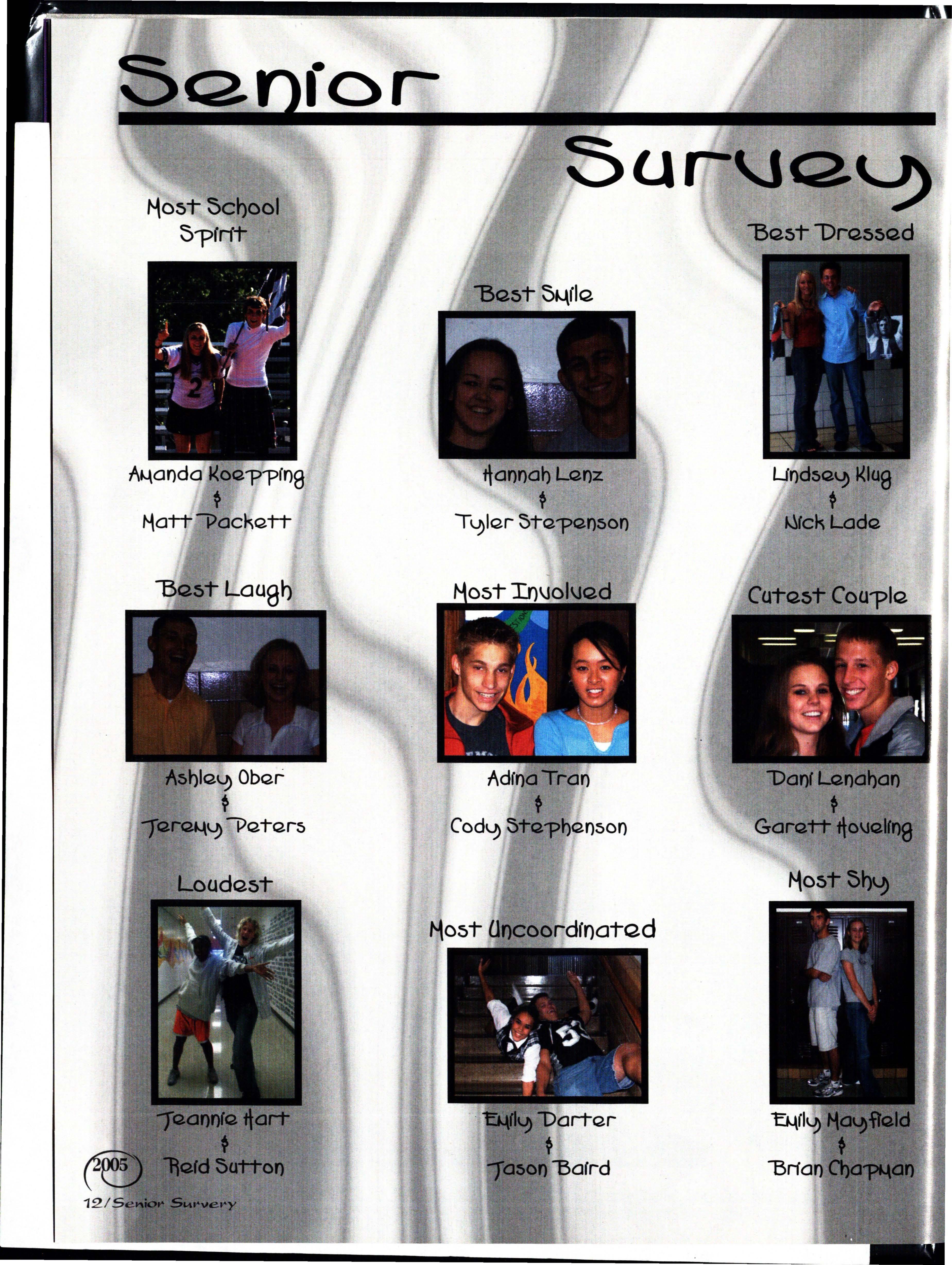 The 2004 - 2005 ROCKET was pub lished by Pub lishing Company in Marceline, Missouri. i e Diffenderfer was this year 's yearboo representative