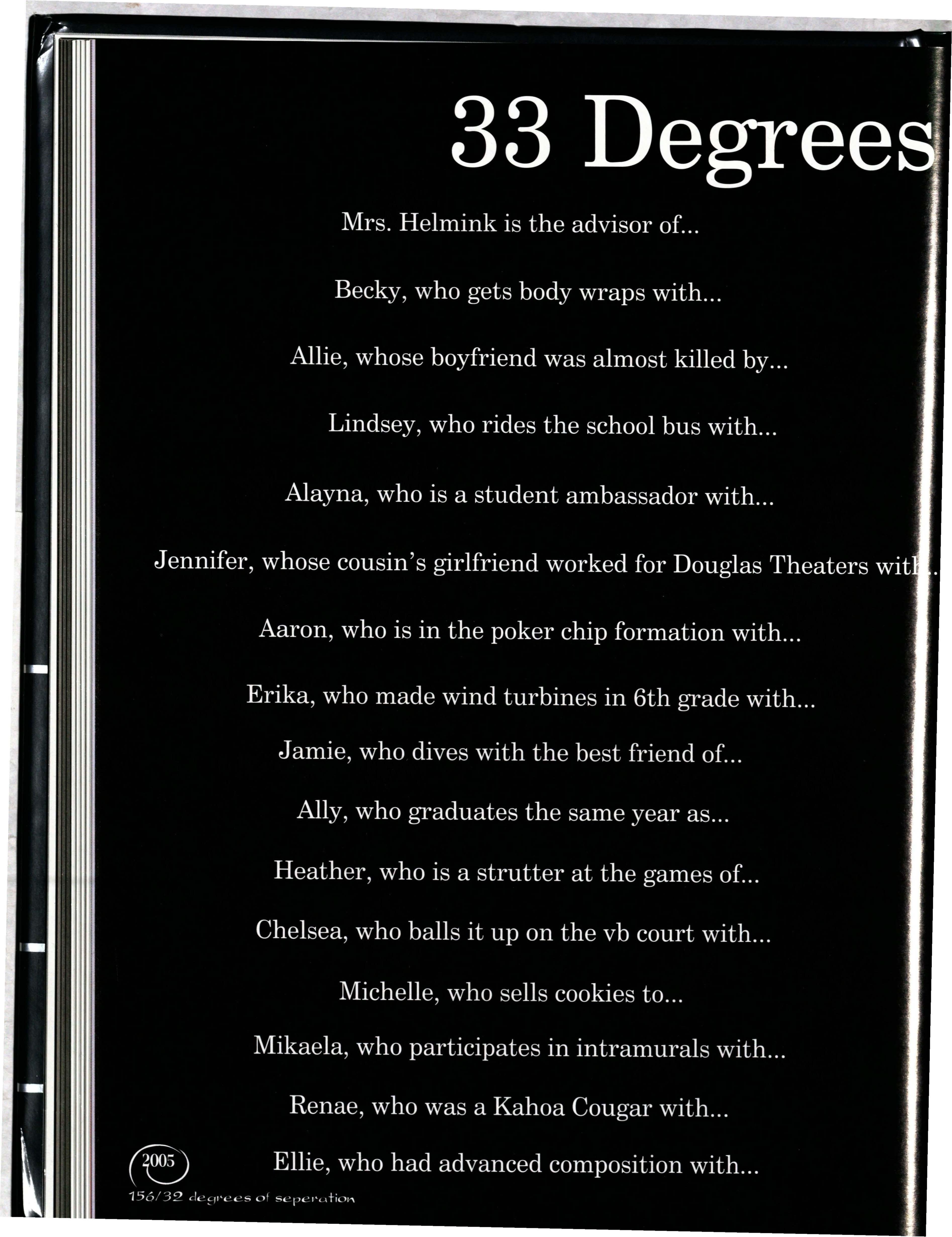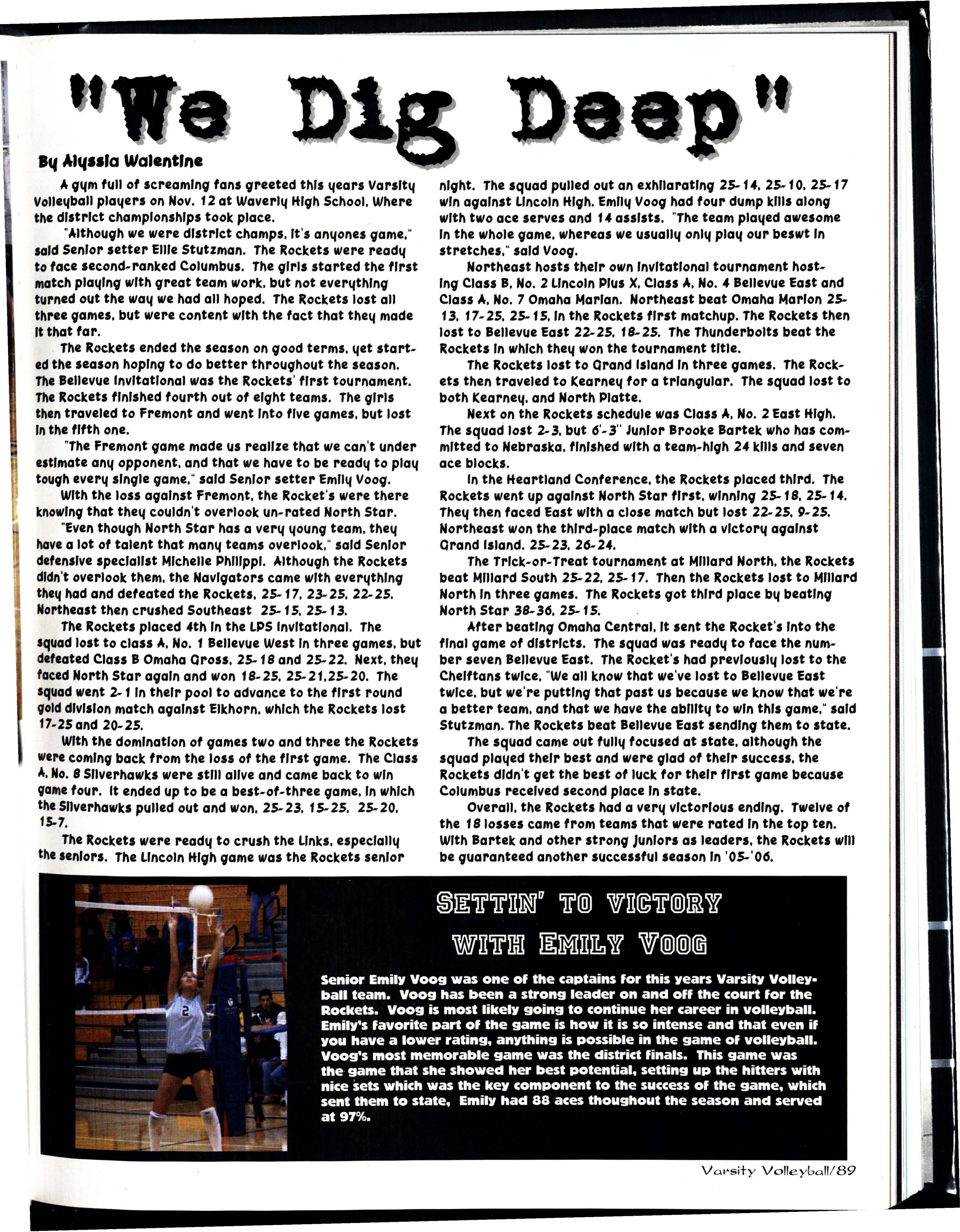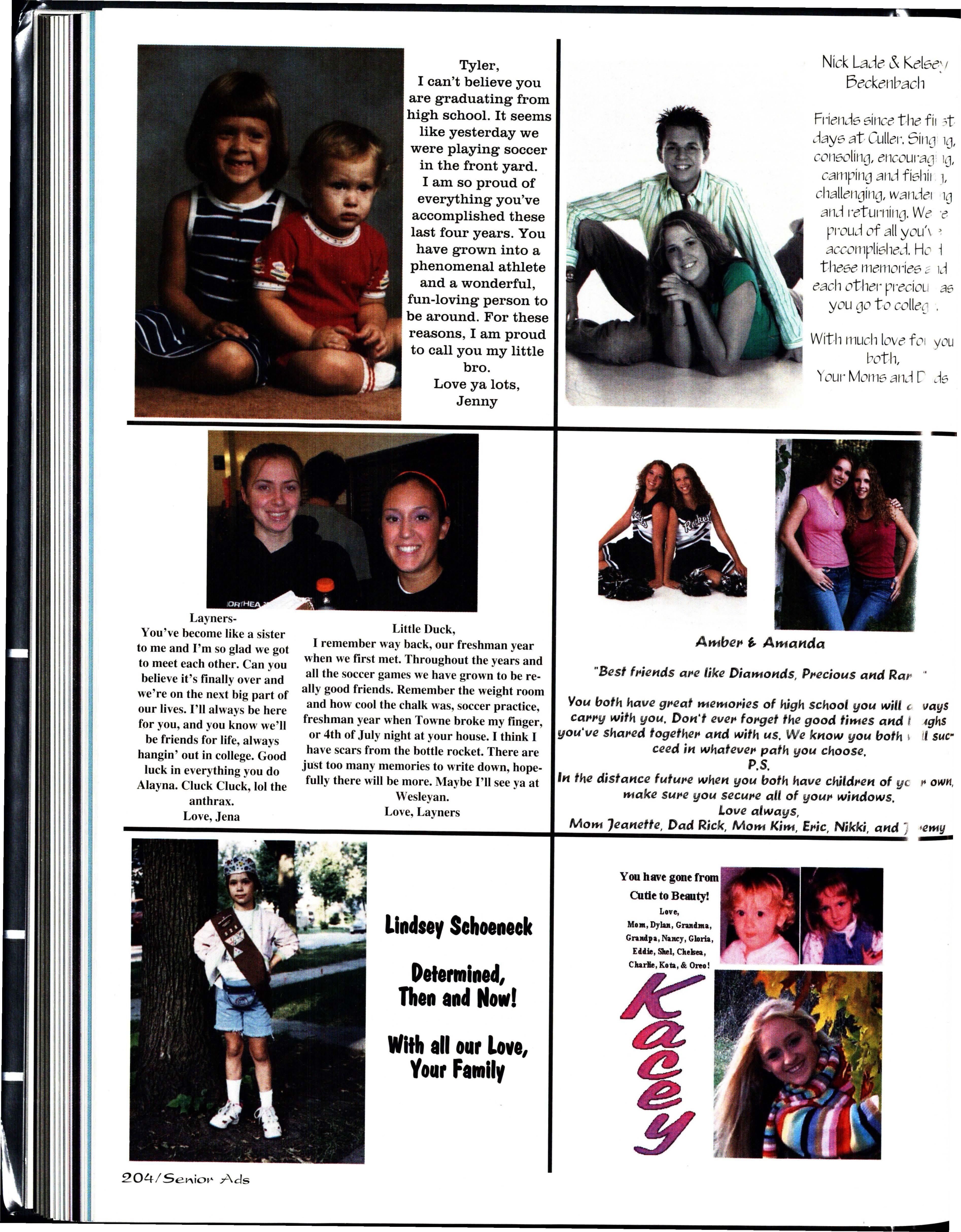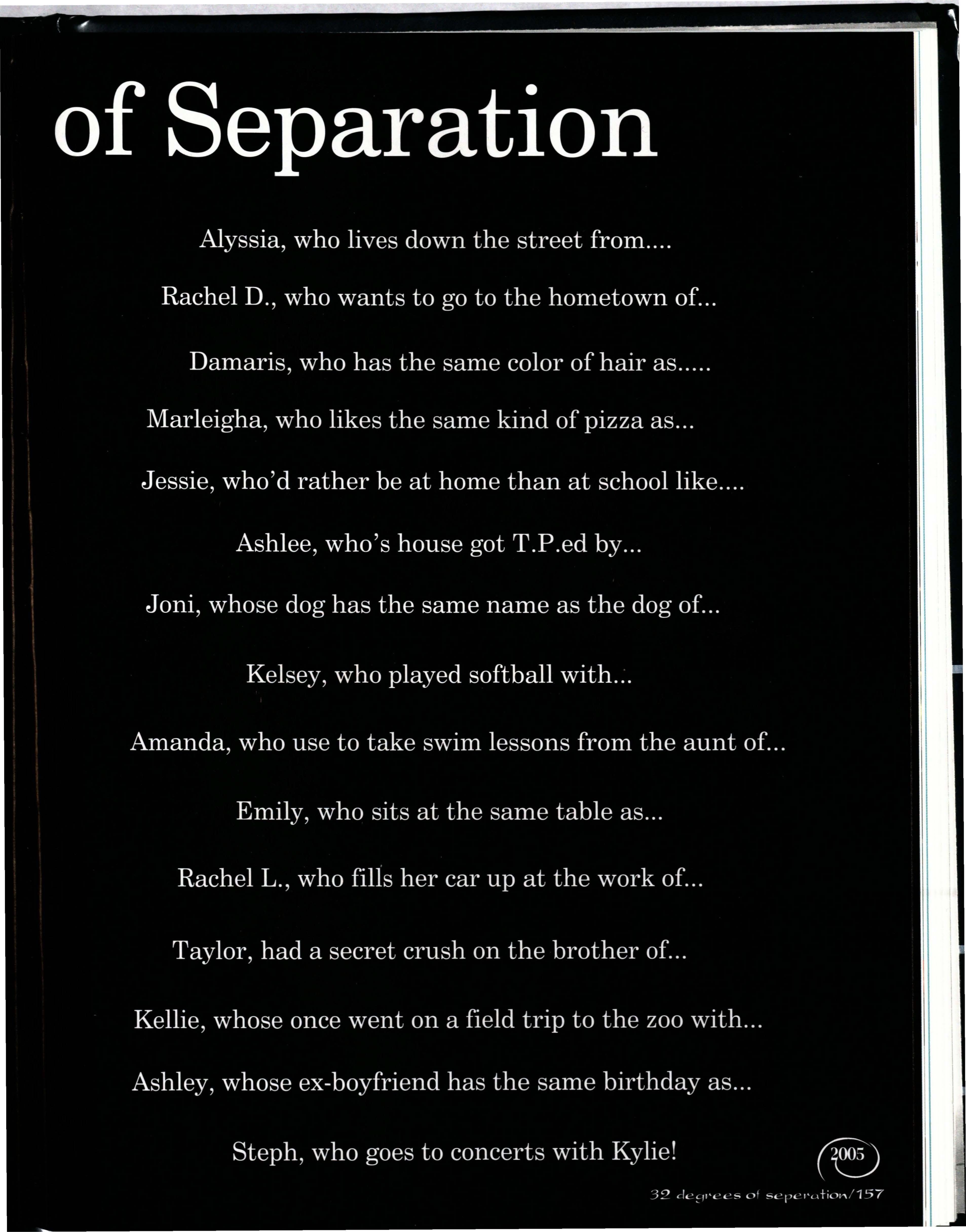 The 2004 - 2005 ROCKET was pub lished by Pub lishing Company in Marceline, Missouri. i e Diffenderfer was this year 's yearboo representative
