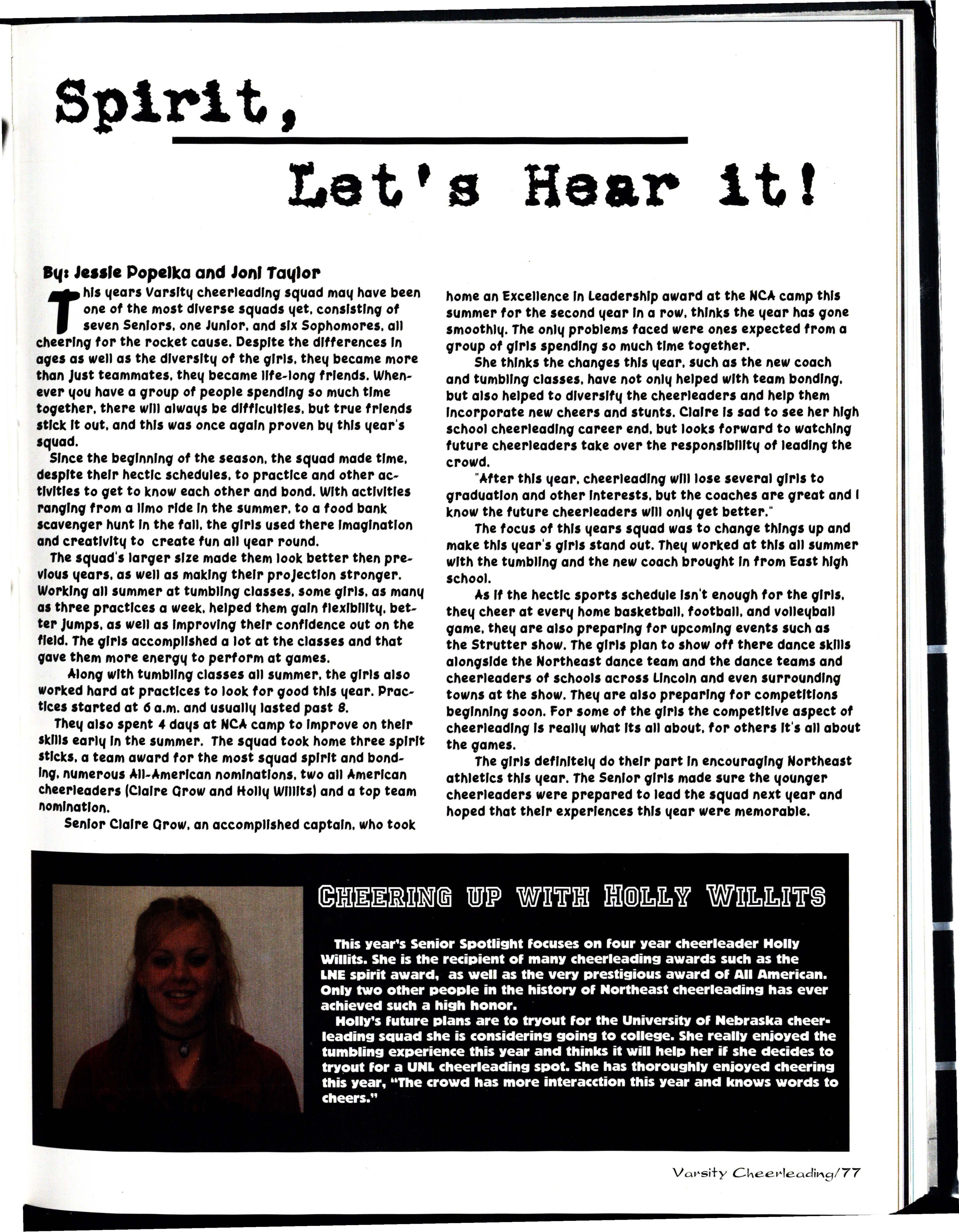 Thfs 4ears Varsft4 cheerleadlng squad matt have been one of the most diverse squads 4et, conslstf ng of seven Senfors, one Junfor, and sfx Sophomores. an cheering for the roctet cause. Despfte the differences In ages as wen as the dfverslt4 of the gf rls, the4 became more than Just teammates, the4 became Jffe-Jong frf ends. Whenever 4ou have a group of people spendf ng so much tf me together, there wm alwa4s be dffffcultles. but true frfends stfct ft out, and thfs was once again proven b\f this 4ear's squad.