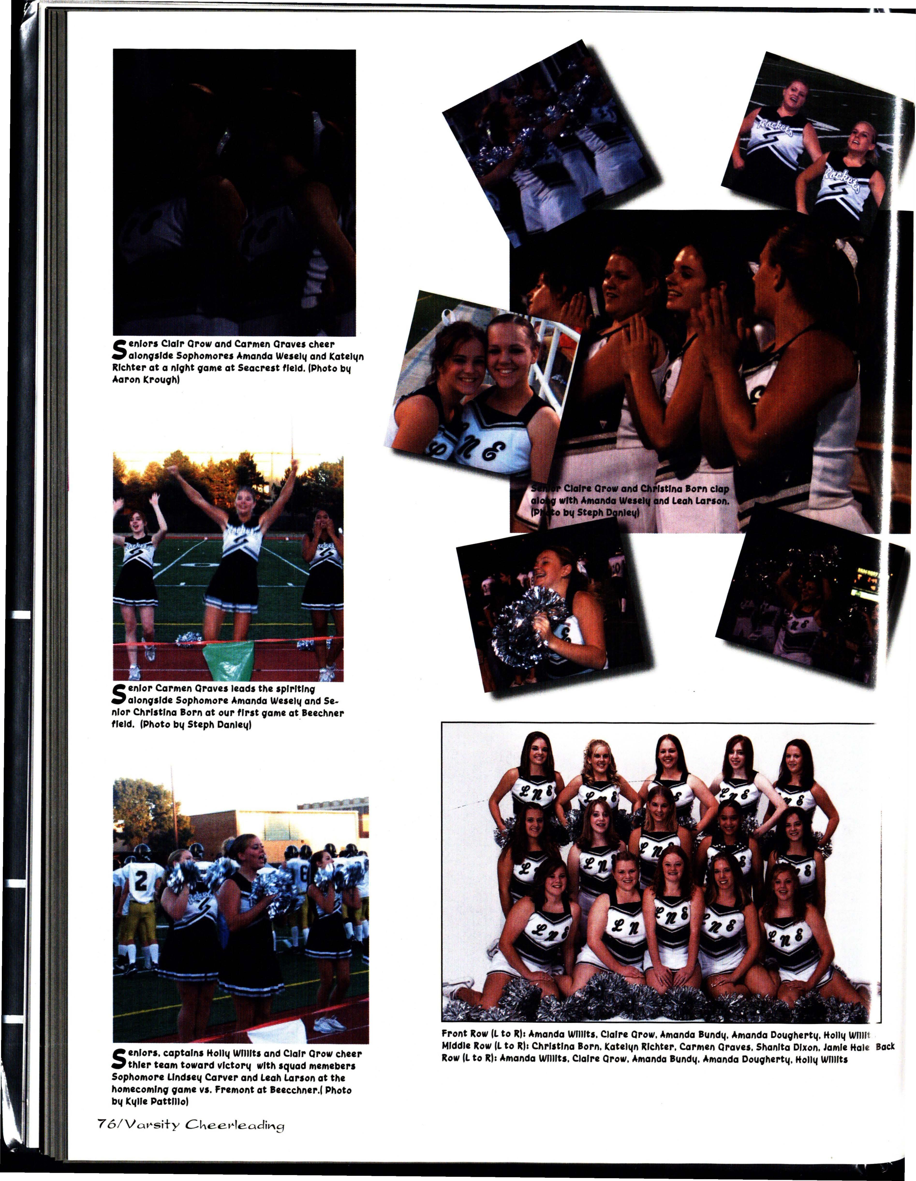 e11lors. captal11s ttoll4 Wflllta a11d Clafr Qrow cheer thfer team toward vfctortf with •quad memebera Sophomore U11dHtf Carver a11d Leah Larao11 at the homecoml119 9ame va. Fremo11t at Beecch11er l Photo blf 1Ct41fe Pattfllo)