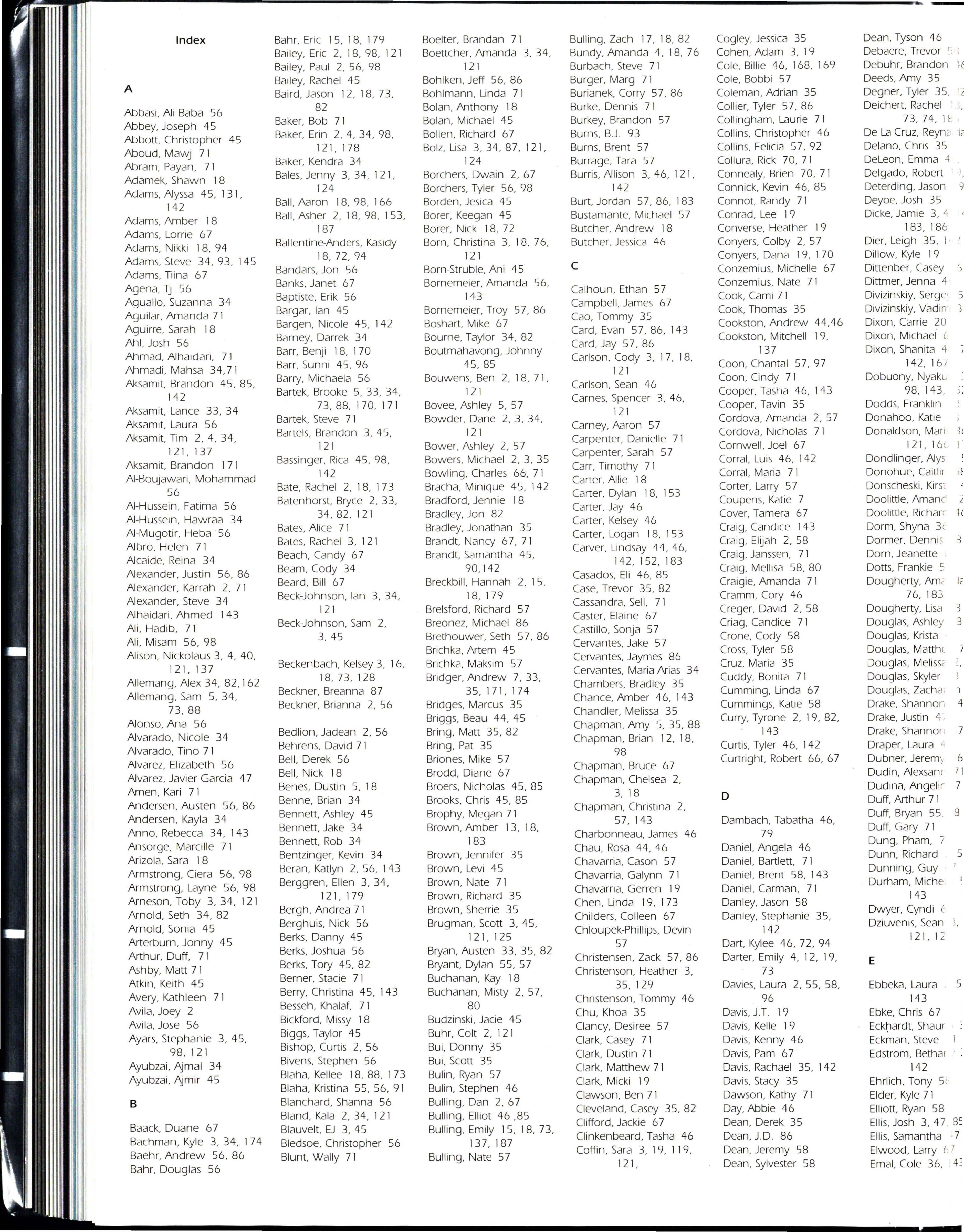 The staff was led by Editor Bec ky Ze lada , Assistant Editor A ll ie Carter, Managing Editor Alayna Foster, Copy Editor Jennifer Suhr, Photography Editor Aaron rogh , and Sports Editor Lin dse y lug . e ants used on ages vvere : Hevet1ca, A yss, Alice, Cheers Ty e, Ca eron, Cons-sance, laze, an Ti mes